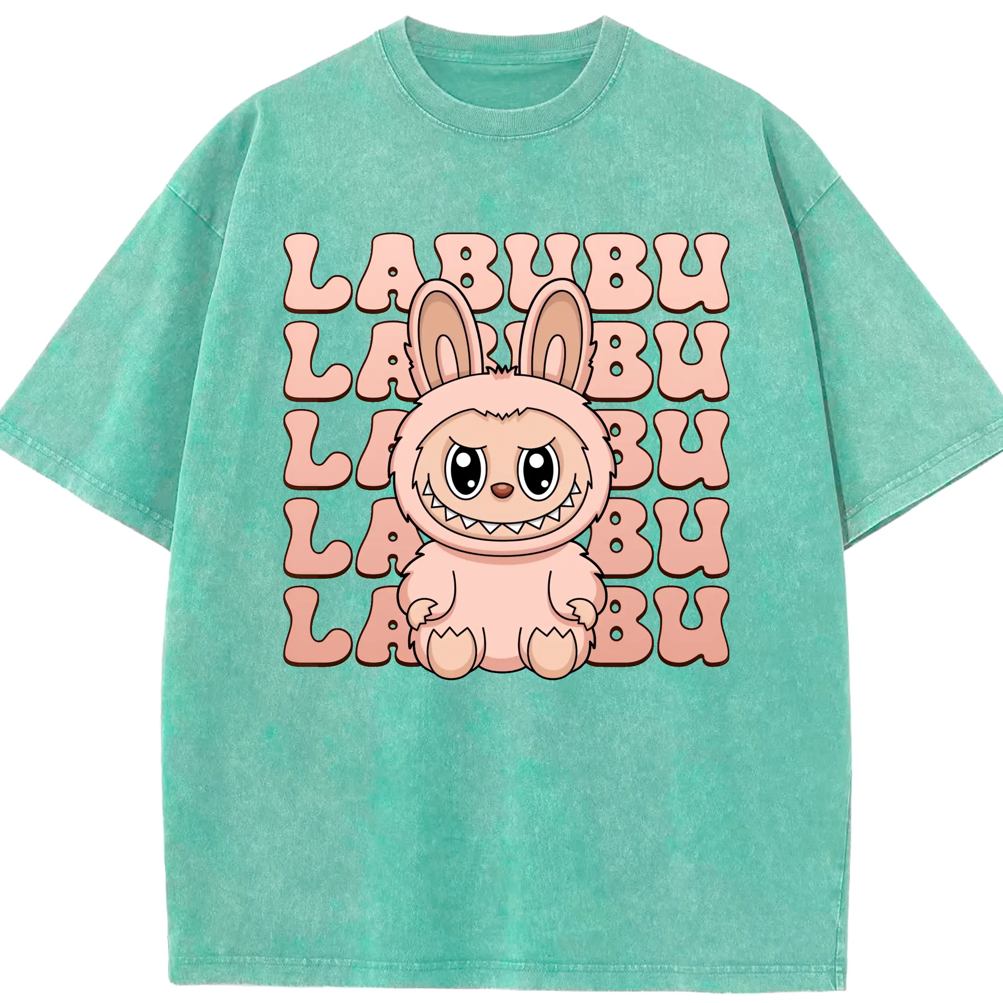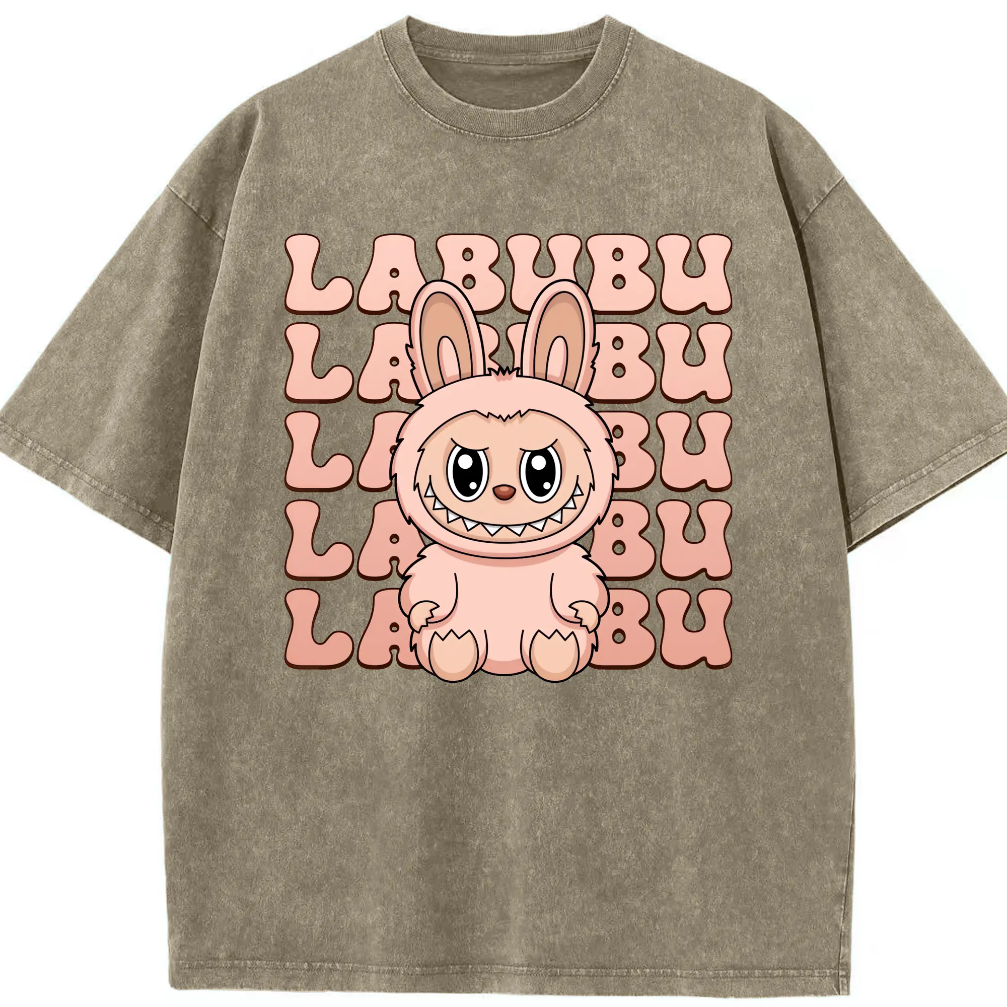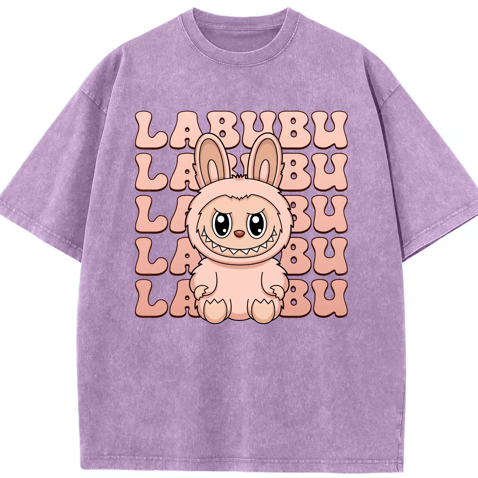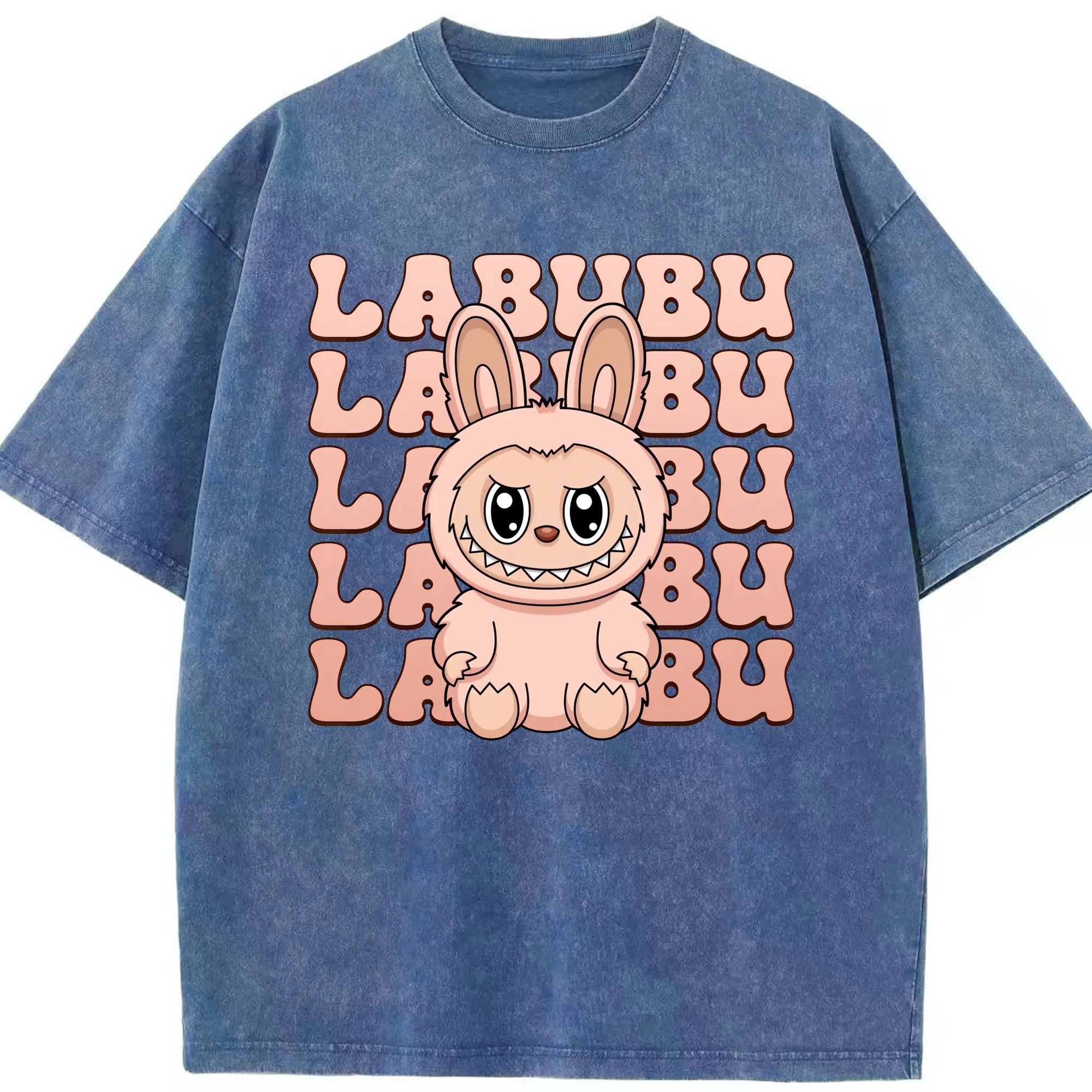 ラブブ グッズ ラブブ - 綿100% ヴィンテージ風 半袖Tシャツ ・ 背面プリント ・ 柔らか肌触り ・ 通気性 快適 ・ スポーツ カジュアル 外出用