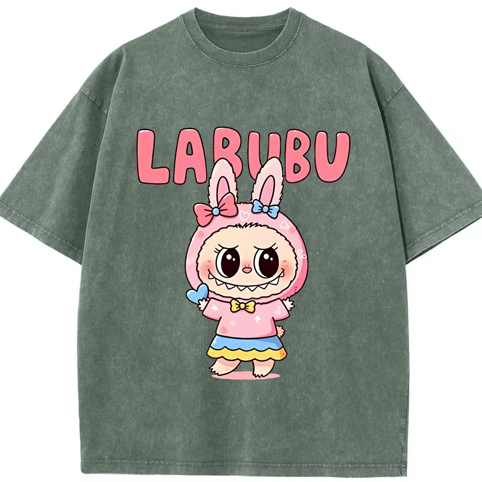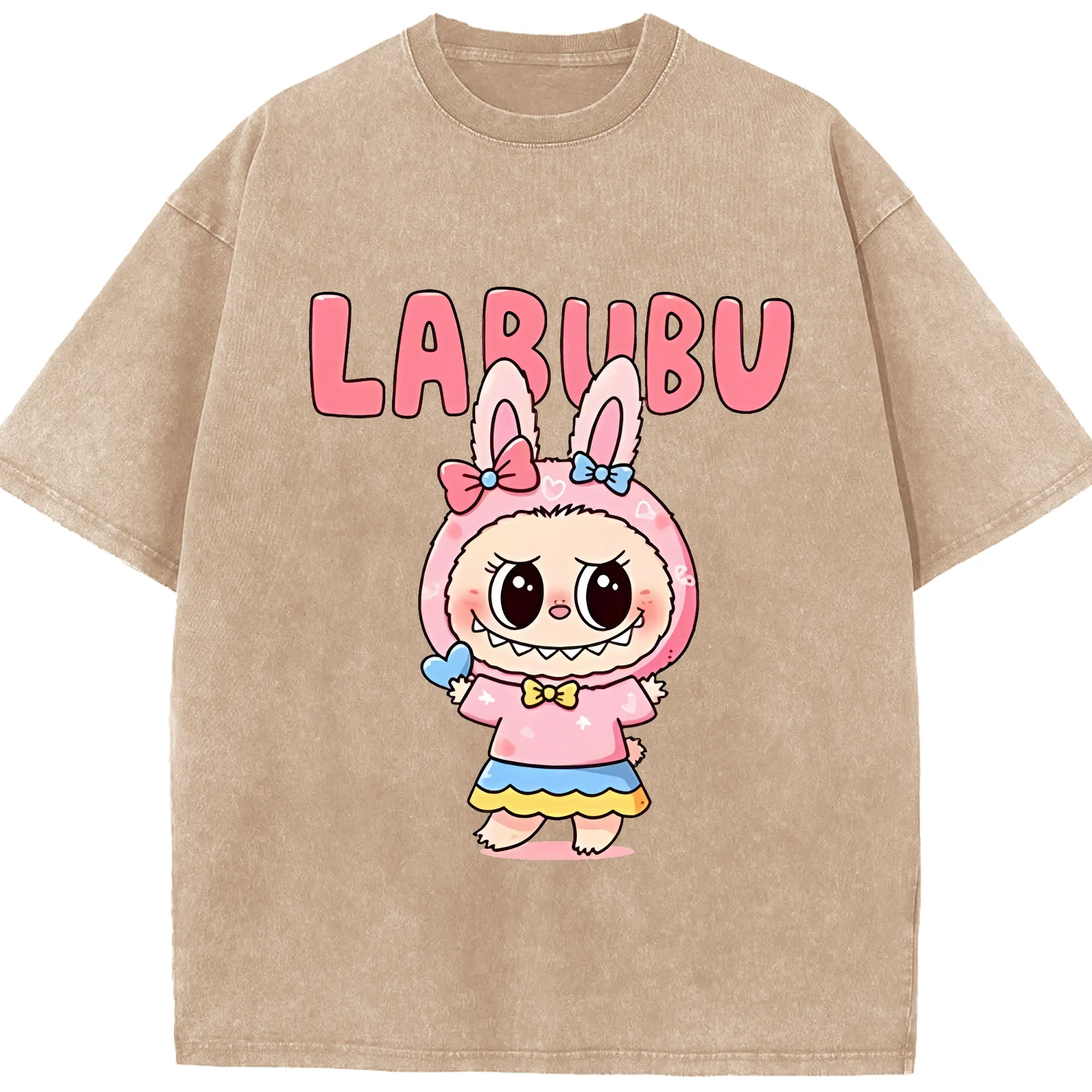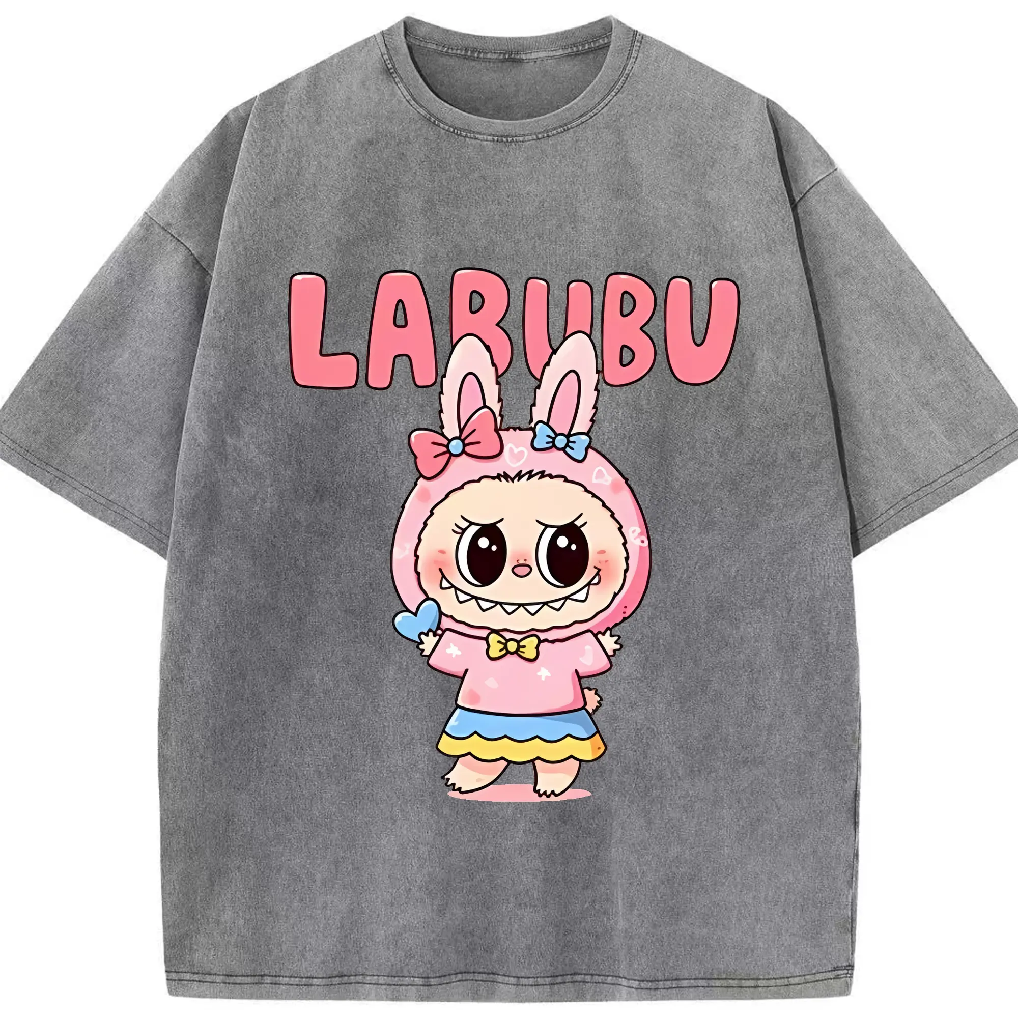 ラブブ グッズ ラブブ - 綿100% ヴィンテージ風 半袖Tシャツ ・ 背面プリント ・ 柔らか肌触り ・ 通気性 快適 ・ スポーツ カジュアル 外出用