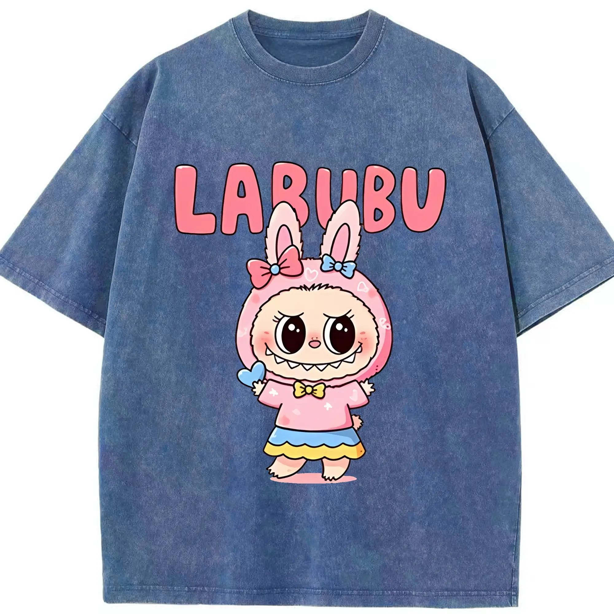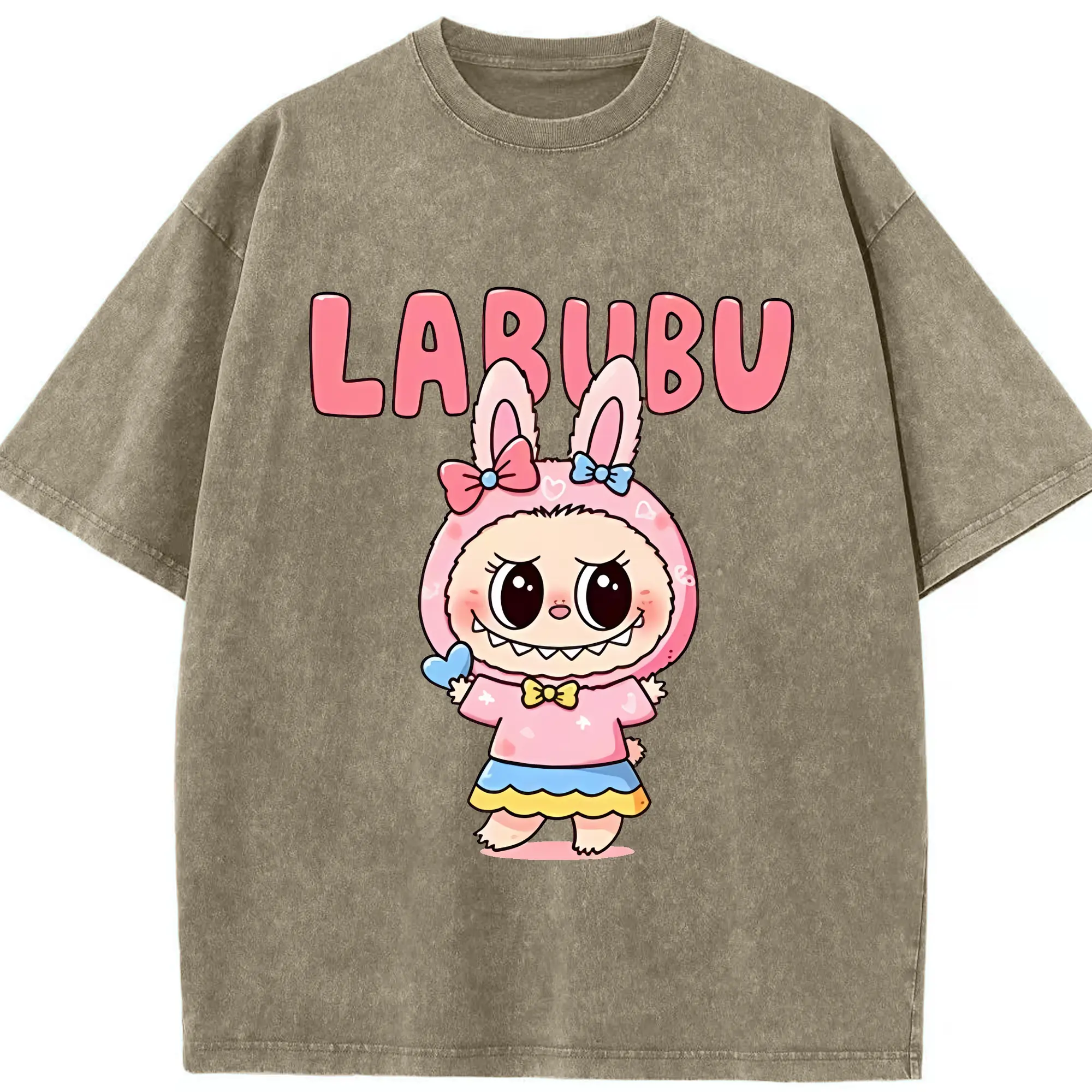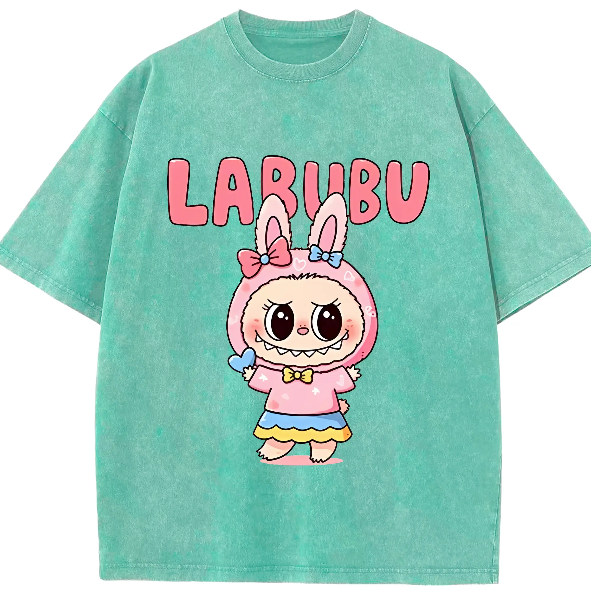 ラブブ グッズ ラブブ - 綿100% ヴィンテージ風 半袖Tシャツ ・ 背面プリント ・ 柔らか肌触り ・ 通気性 快適 ・ スポーツ カジュアル 外出用