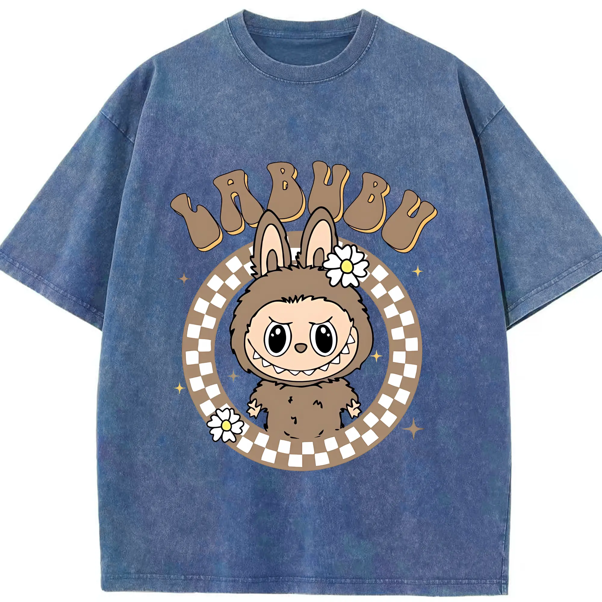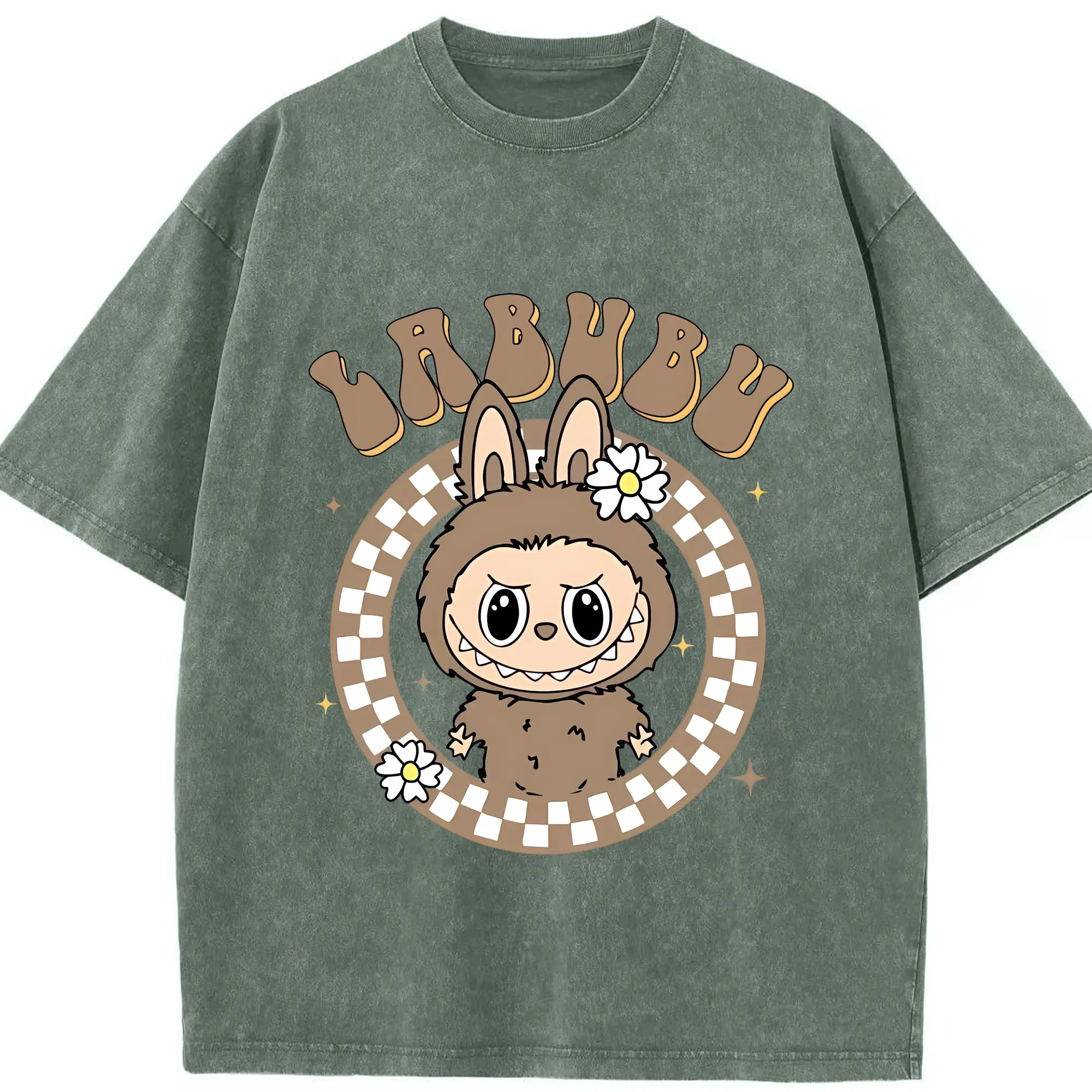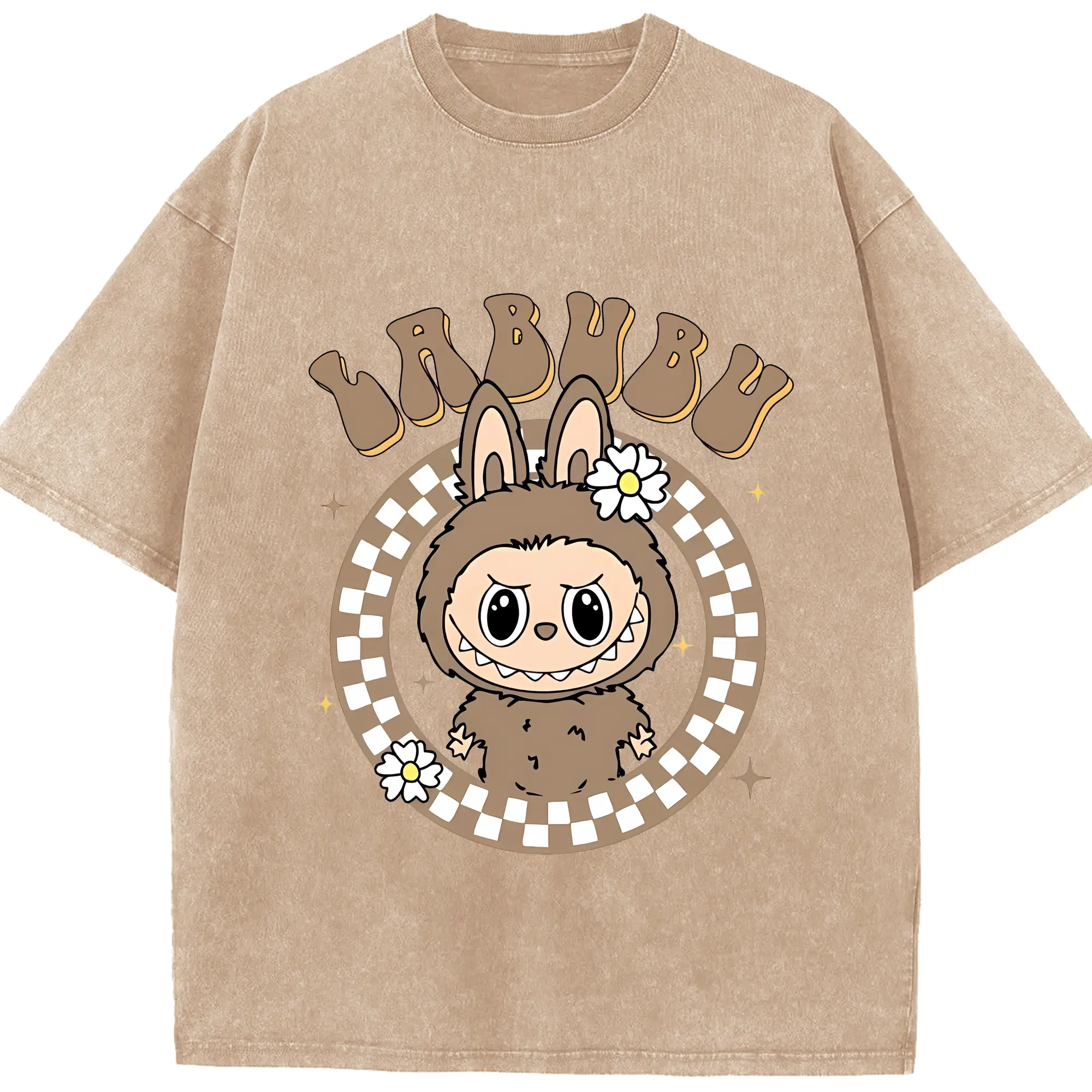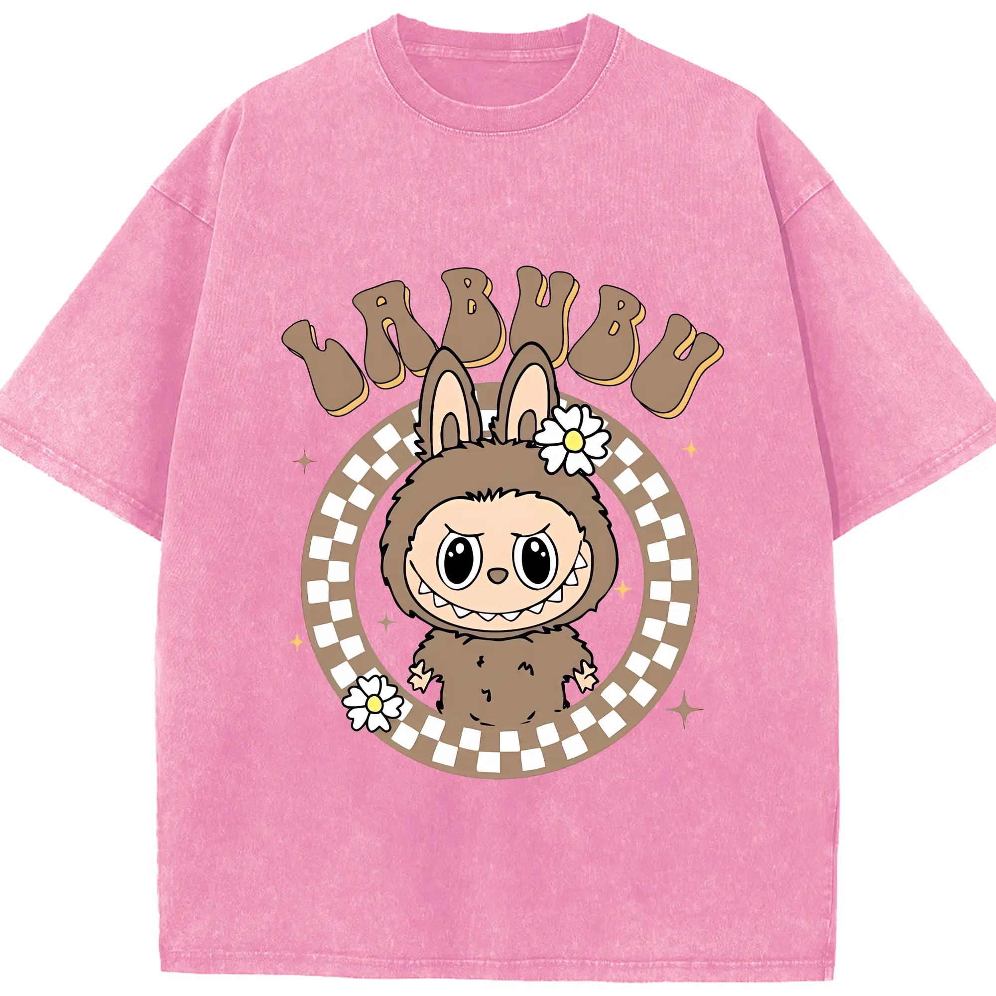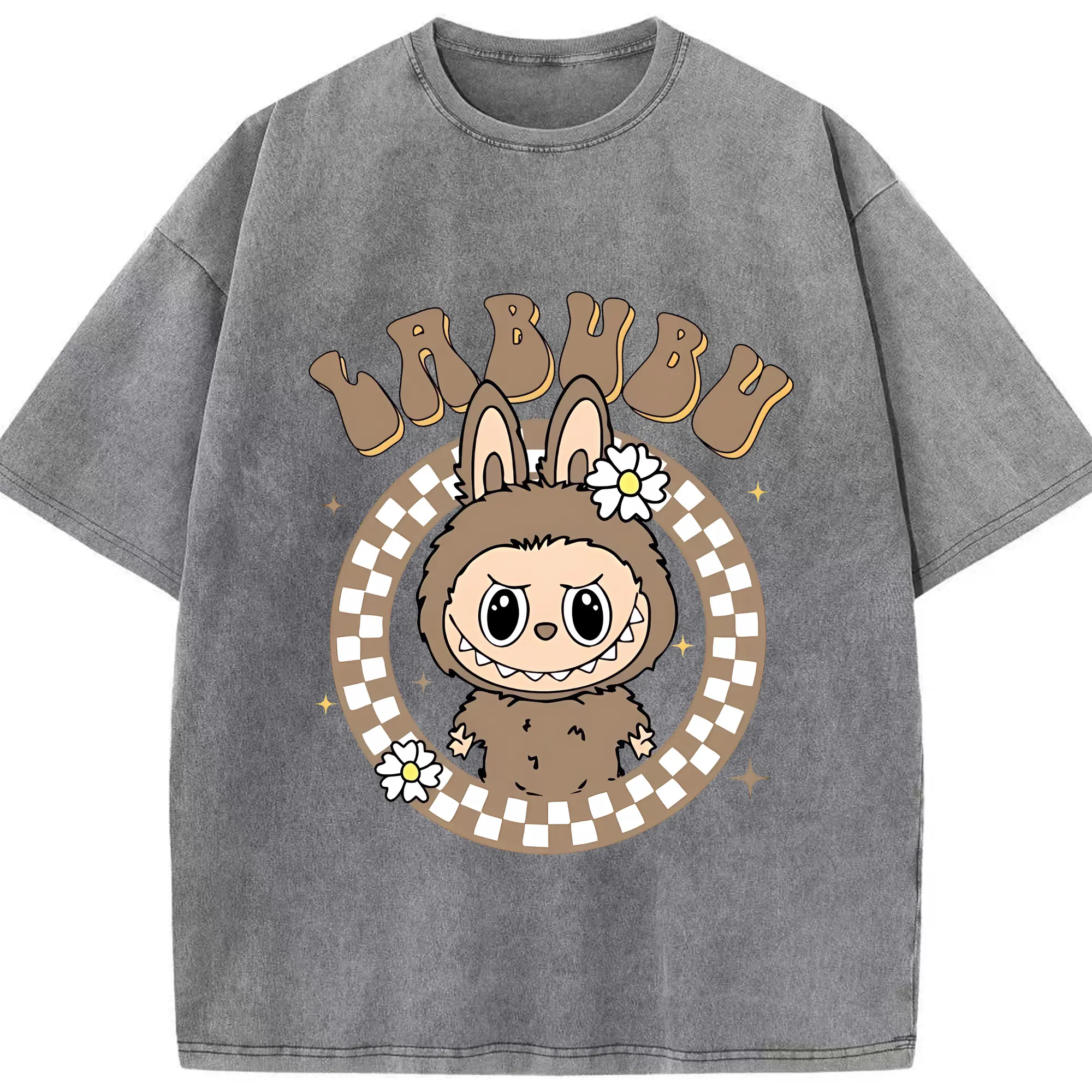 ラブブ グッズ ラブブ - 綿100% ヴィンテージ風 半袖Tシャツ ・ 背面プリント ・ 柔らか肌触り ・ 通気性 快適 ・ スポーツ カジュアル 外出用