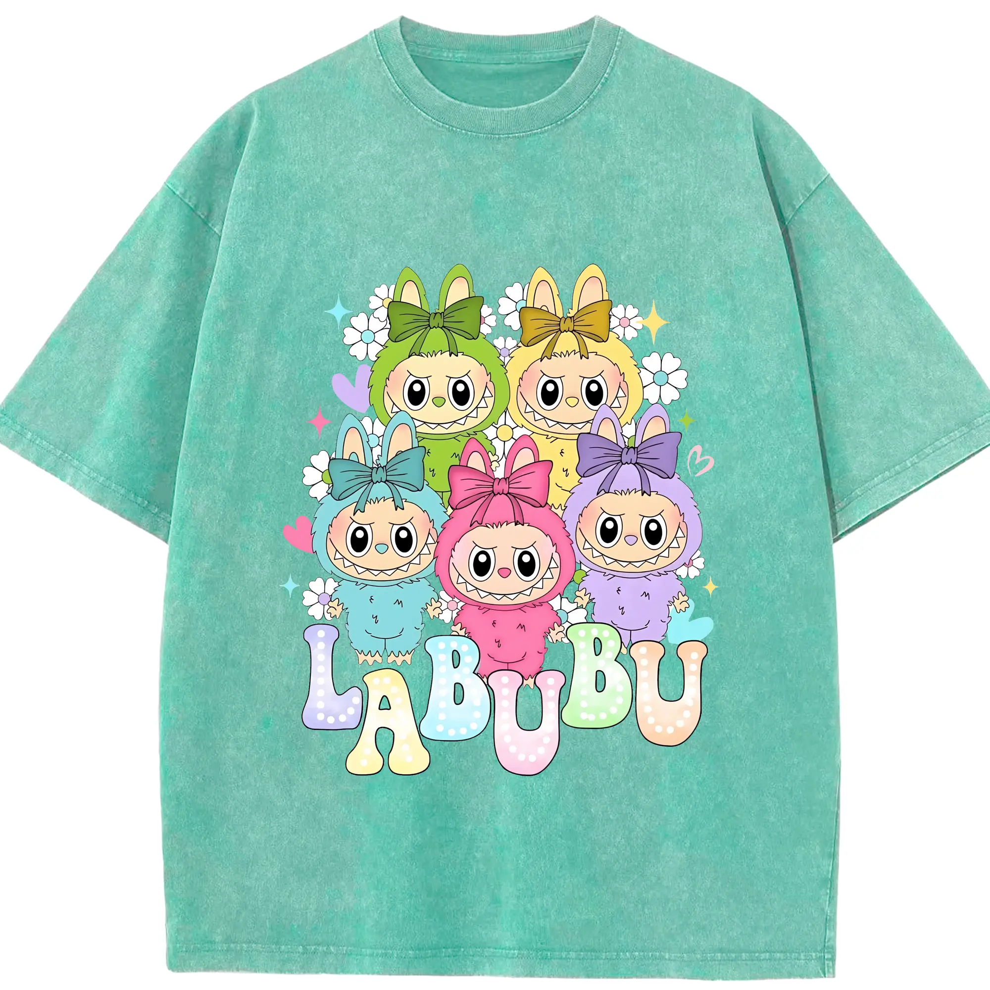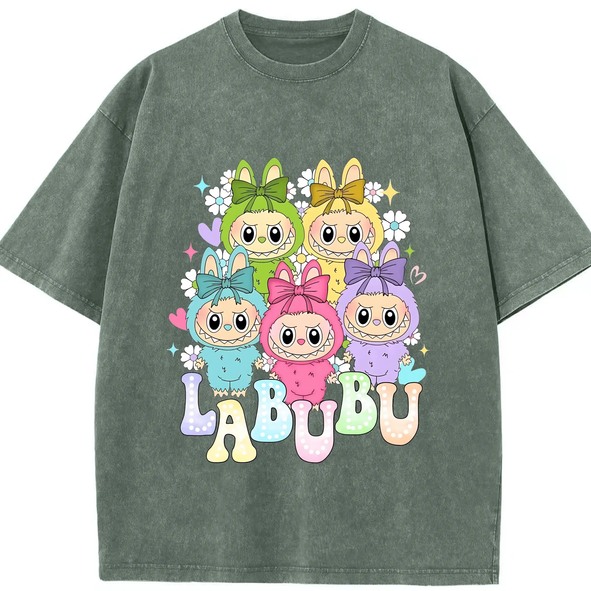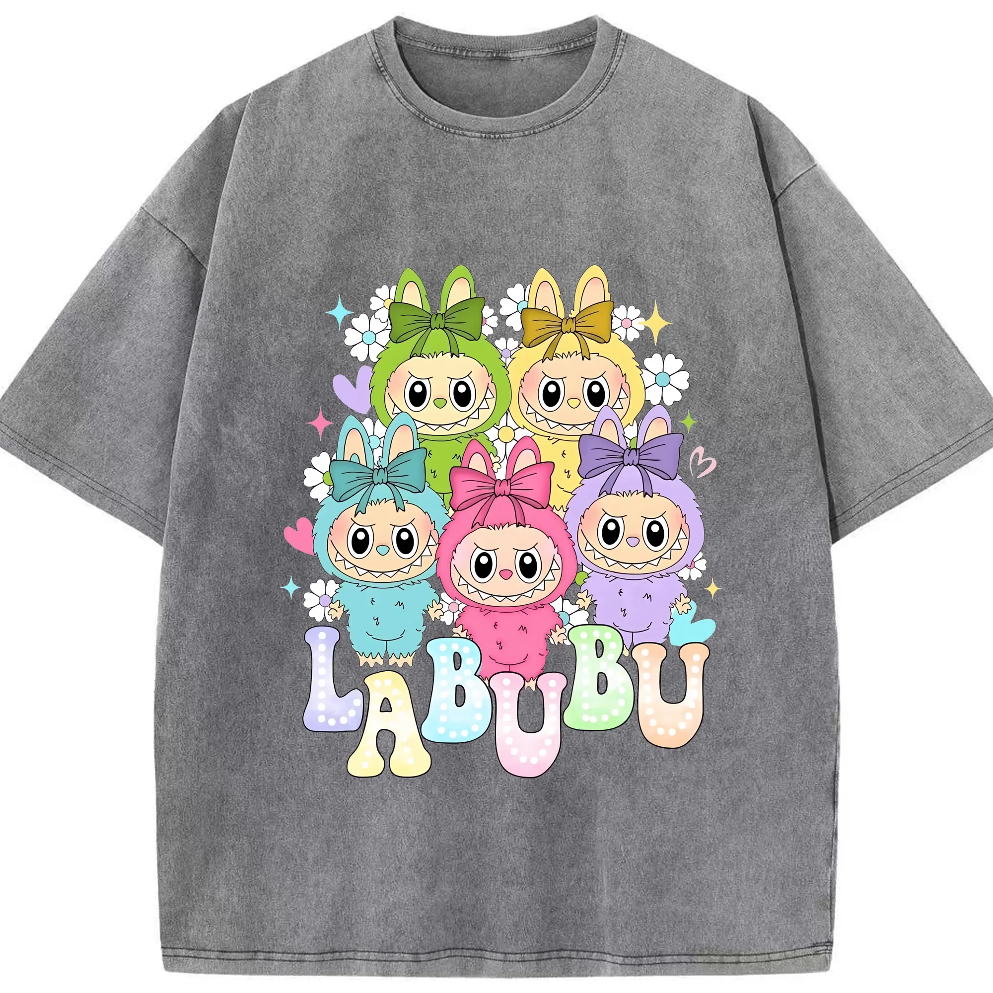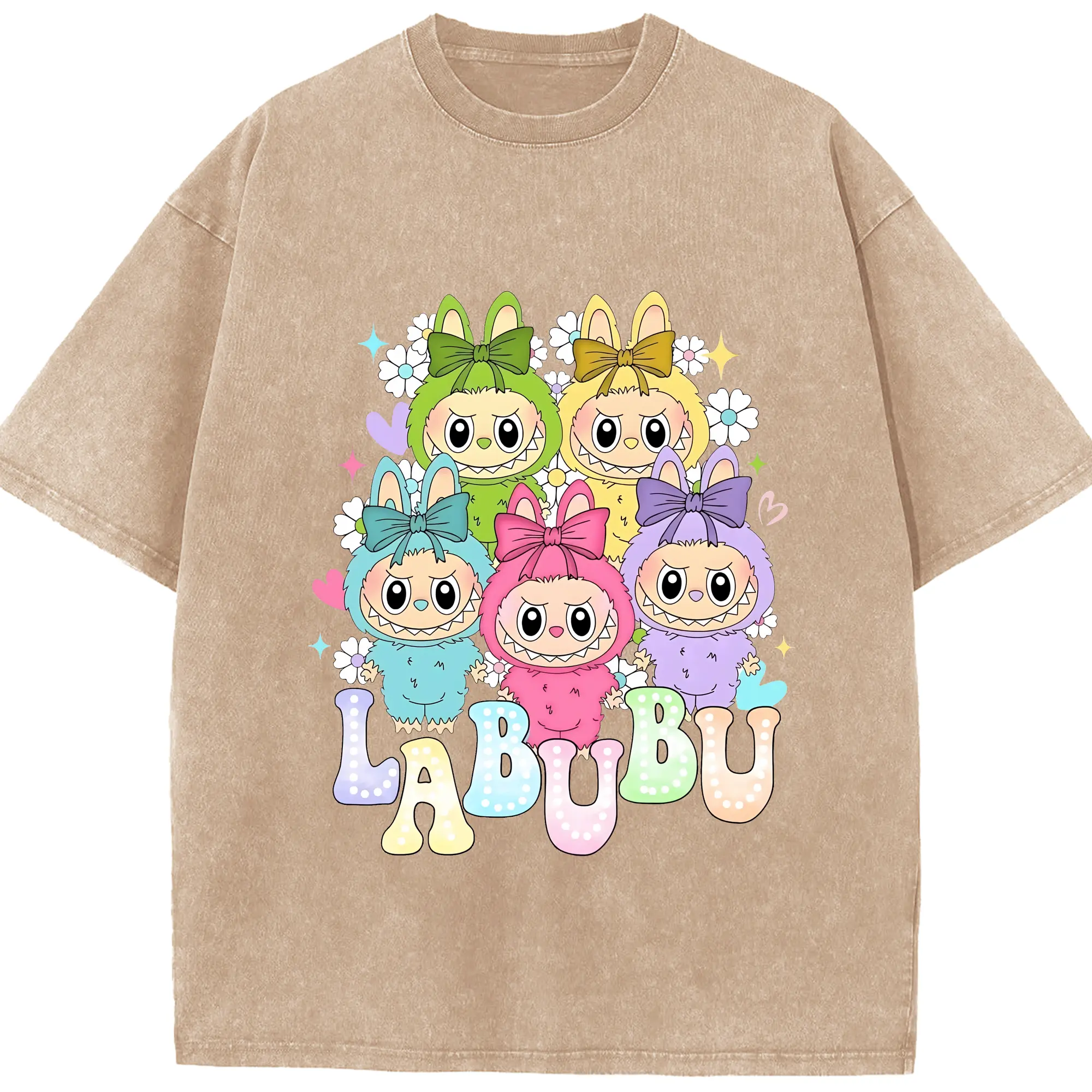 ラブブ グッズ ラブブ - 綿100% ヴィンテージ風 半袖Tシャツ ・ 背面プリント ・ 柔らか肌触り ・ 通気性 快適 ・ スポーツ カジュアル 外出用