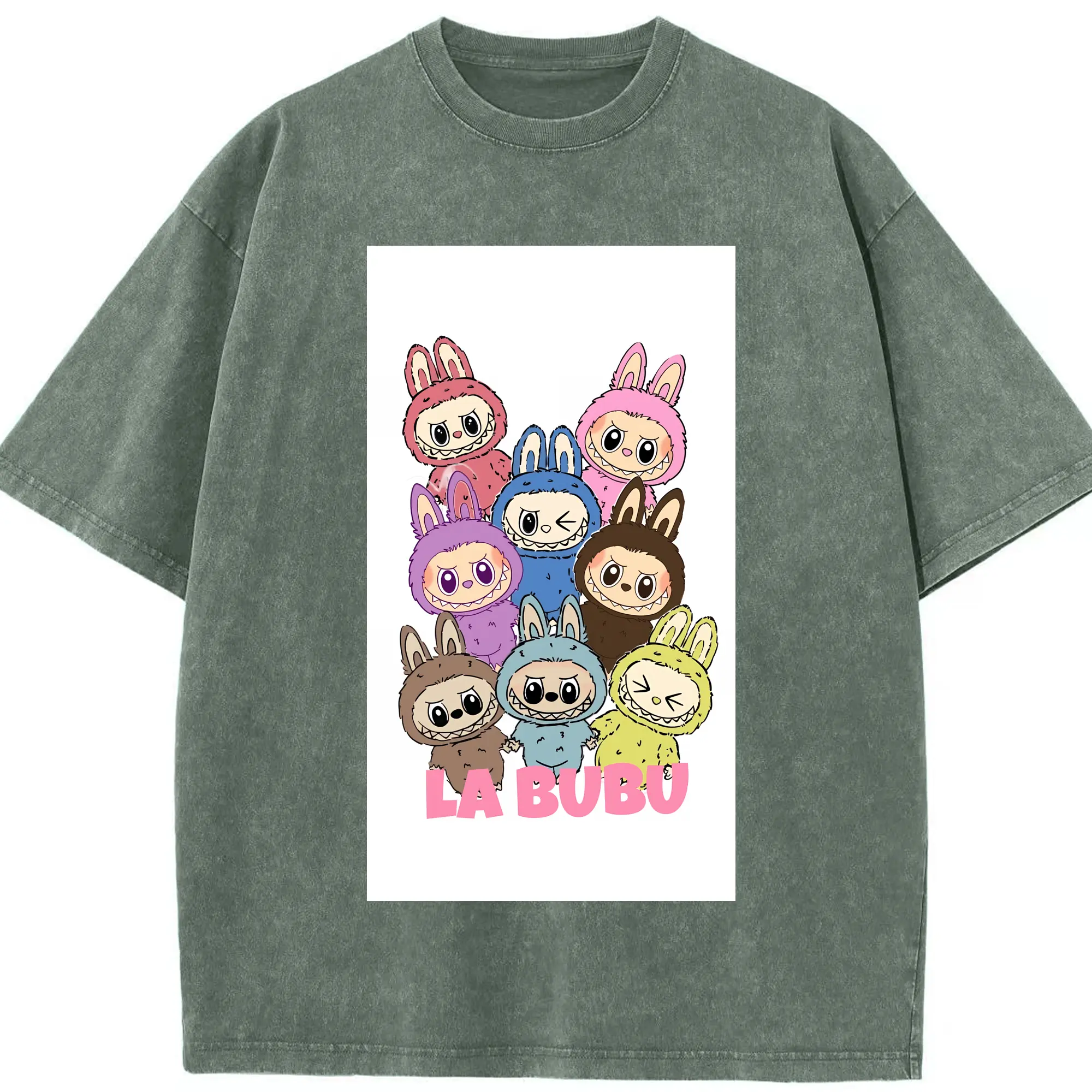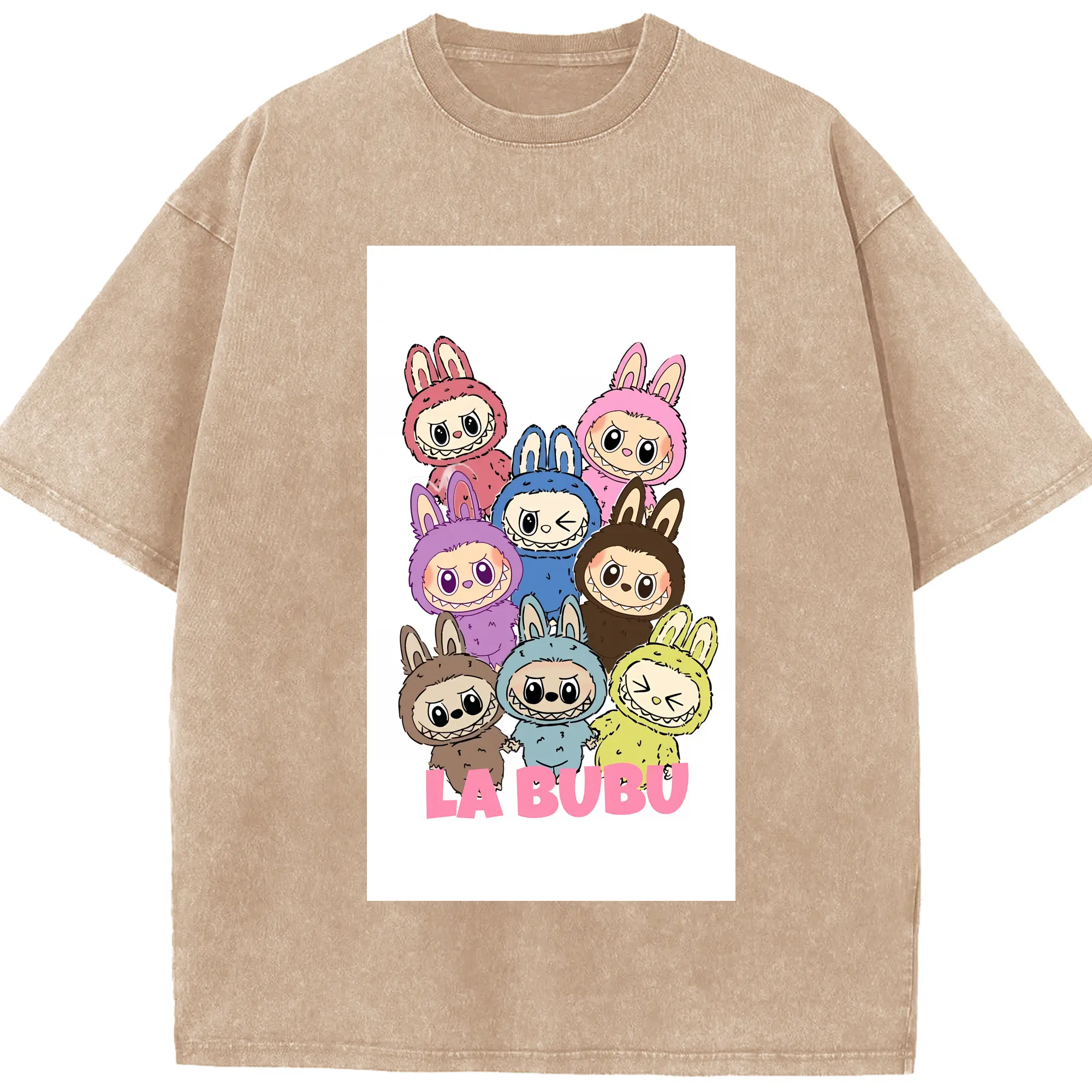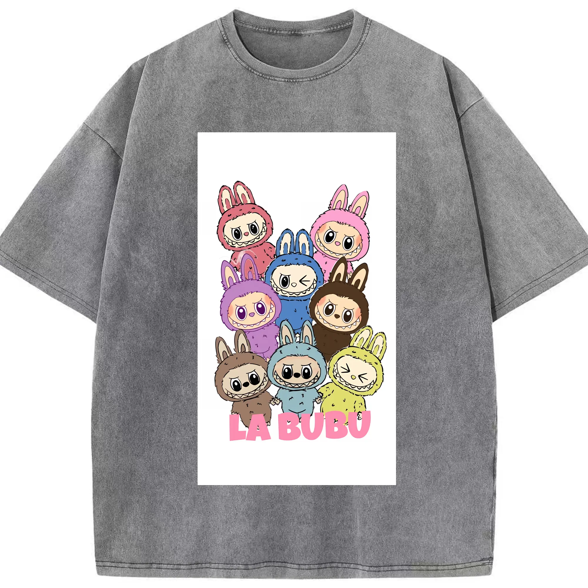 ラブブ グッズ ラブブ - 綿100% ヴィンテージ風 半袖Tシャツ ・ 背面プリント ・ 柔らか肌触り ・ 通気性 快適 ・ スポーツ カジュアル 外出用