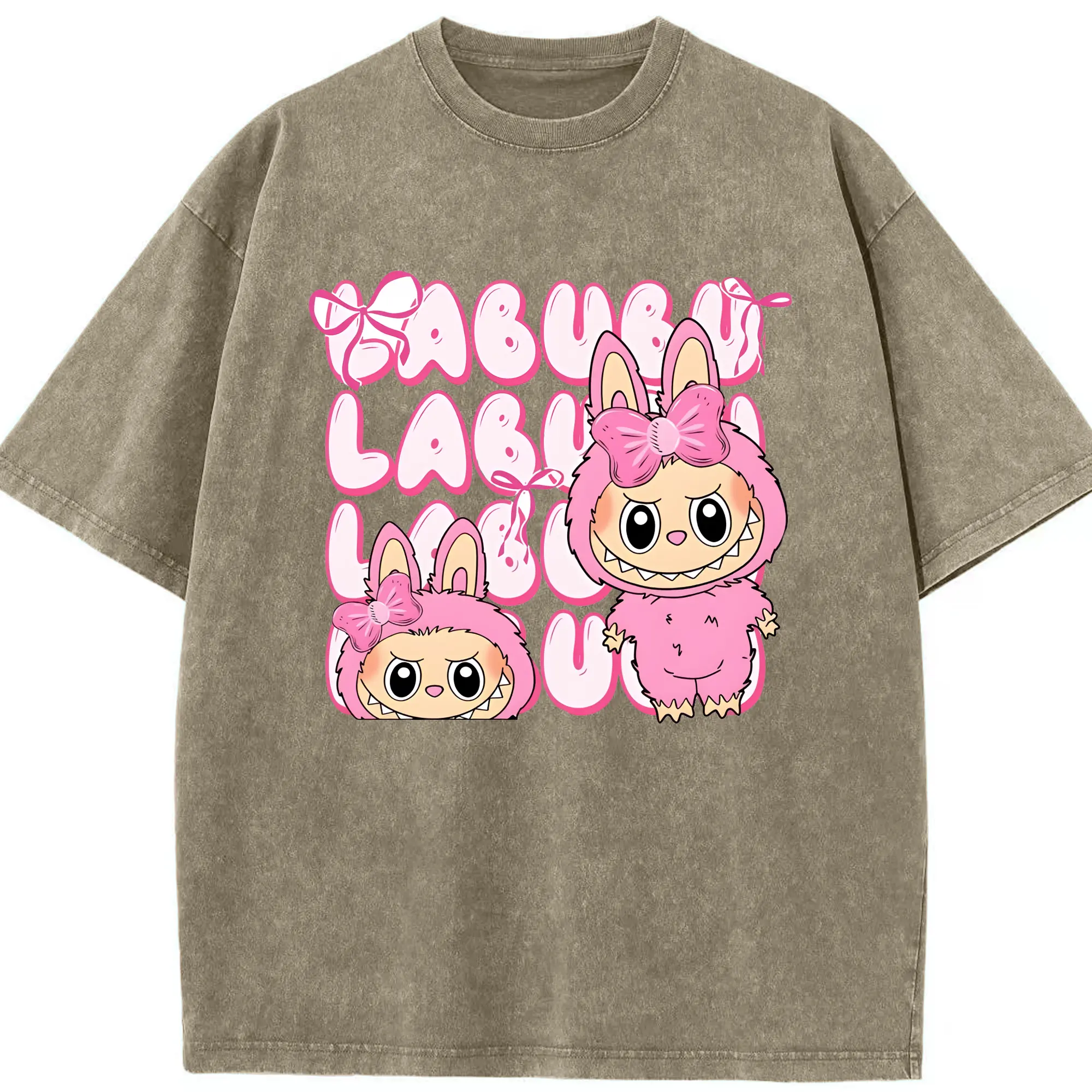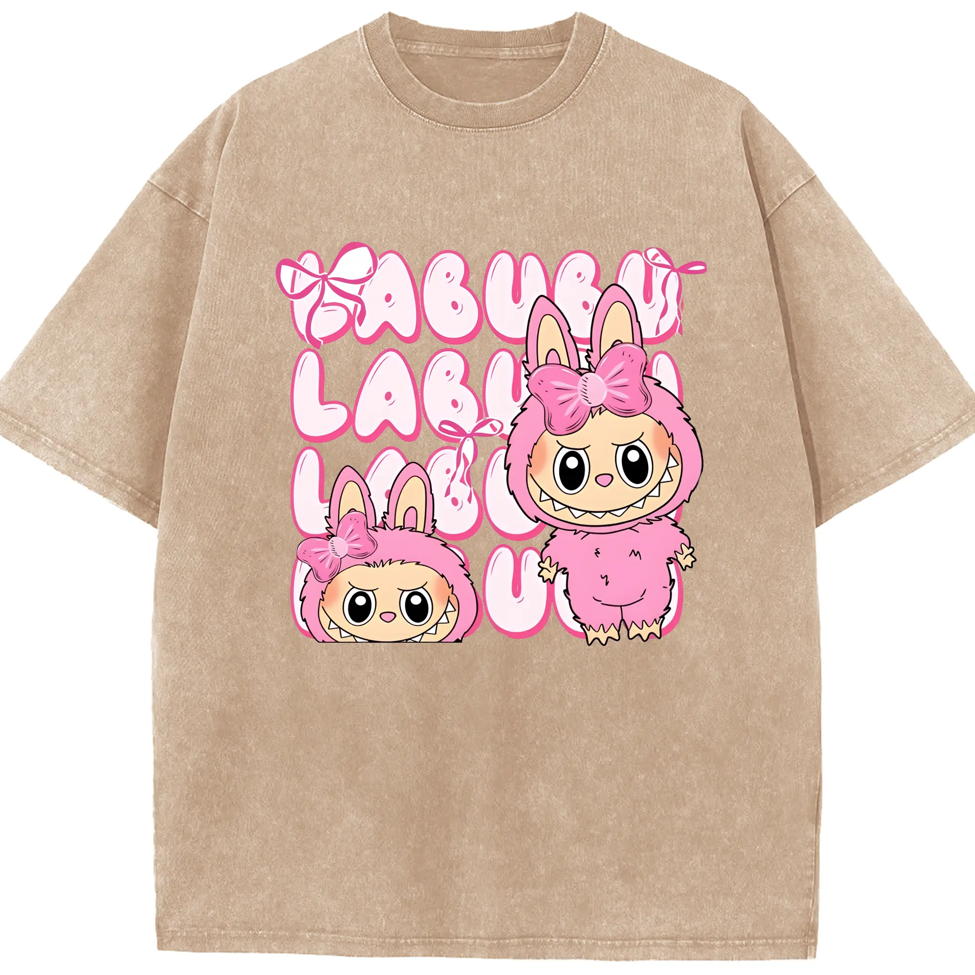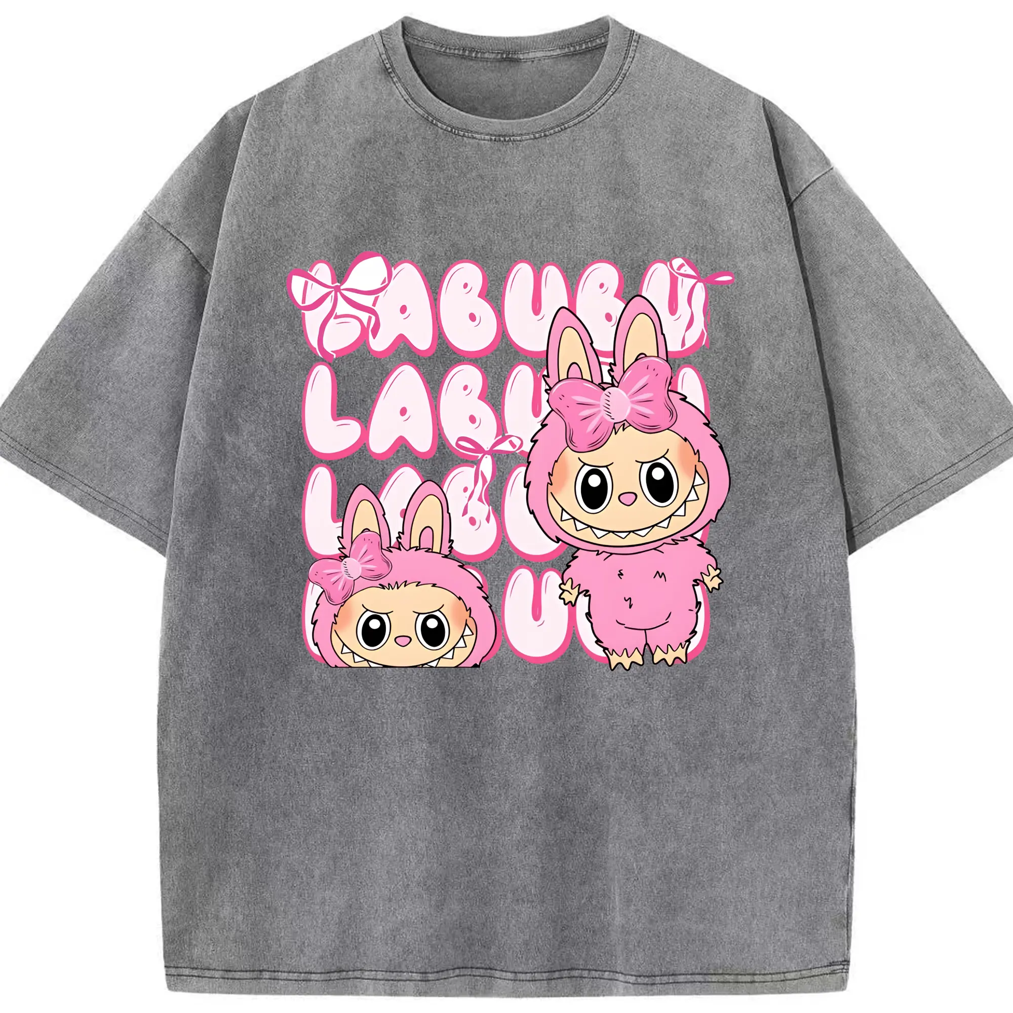 ラブブ グッズ ラブブ - 綿100% ヴィンテージ風 半袖Tシャツ ・ 背面プリント ・ 柔らか肌触り ・ 通気性 快適 ・ スポーツ カジュアル 外出用