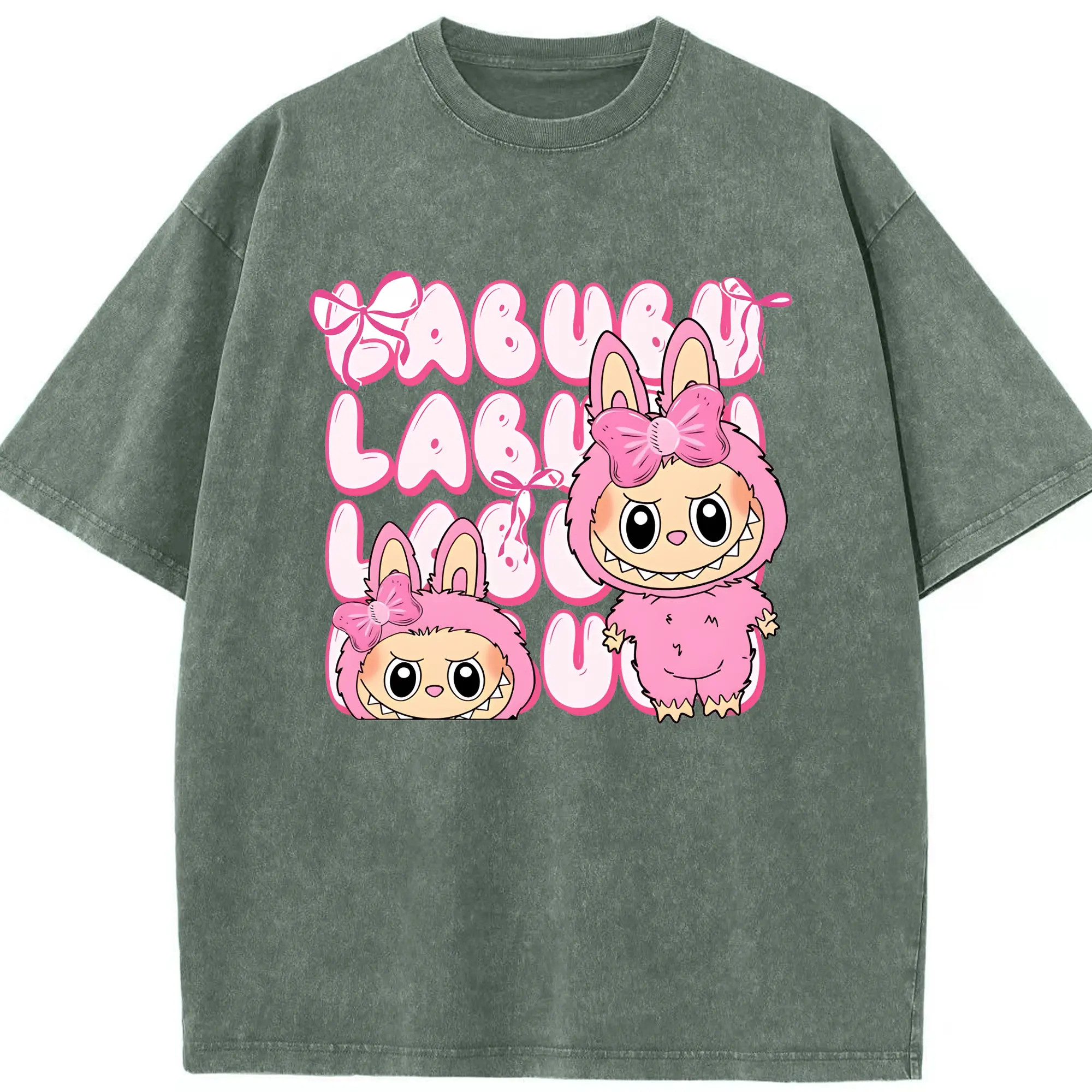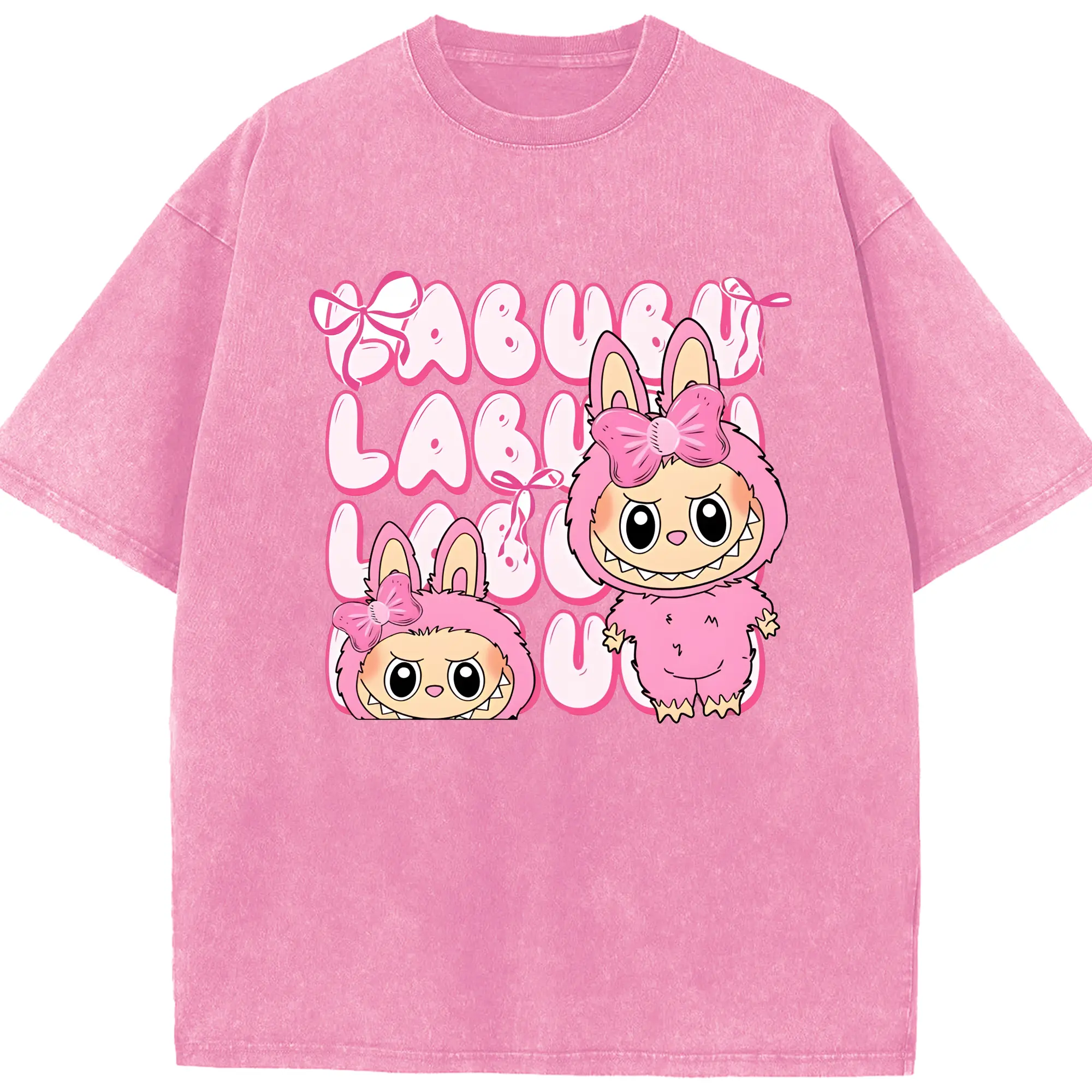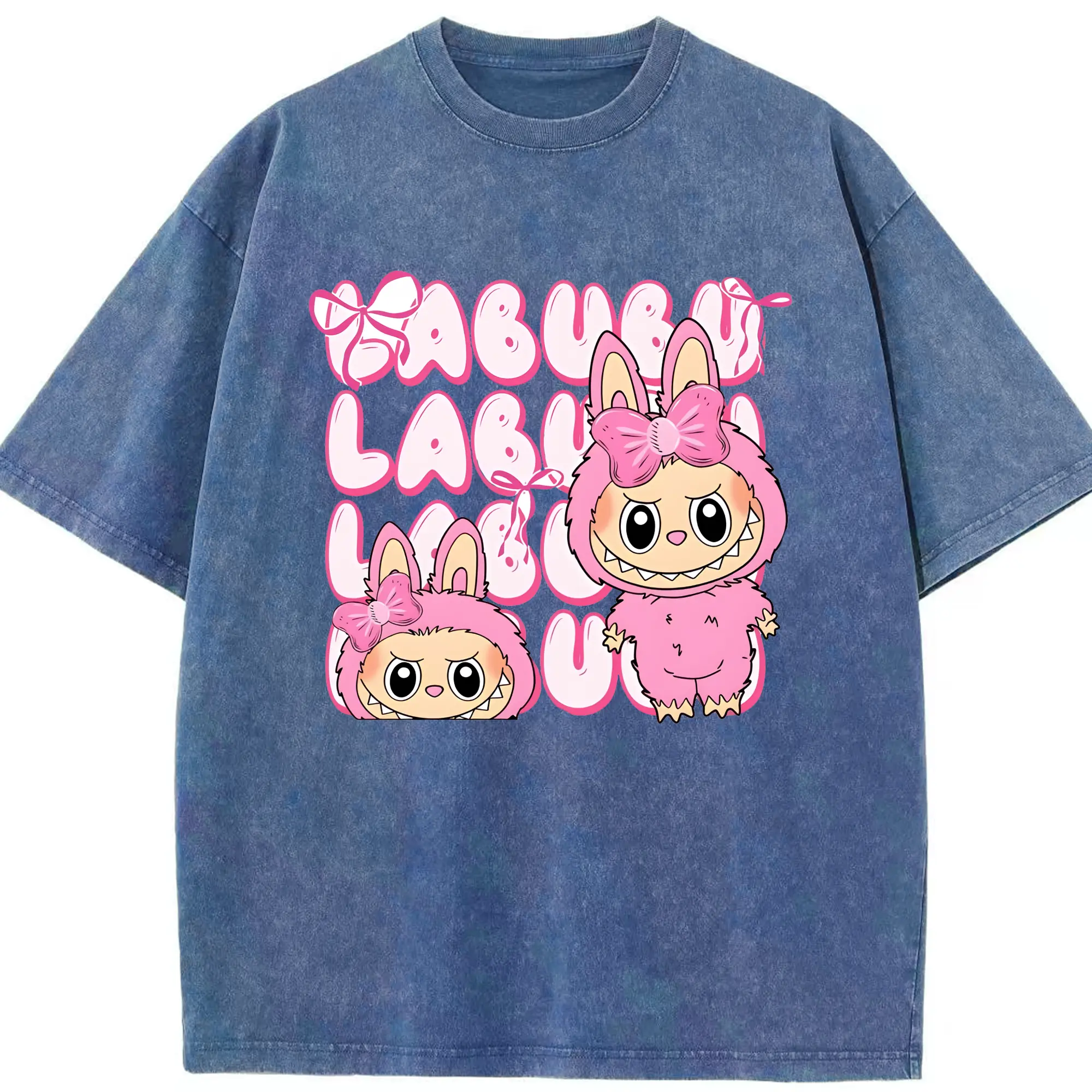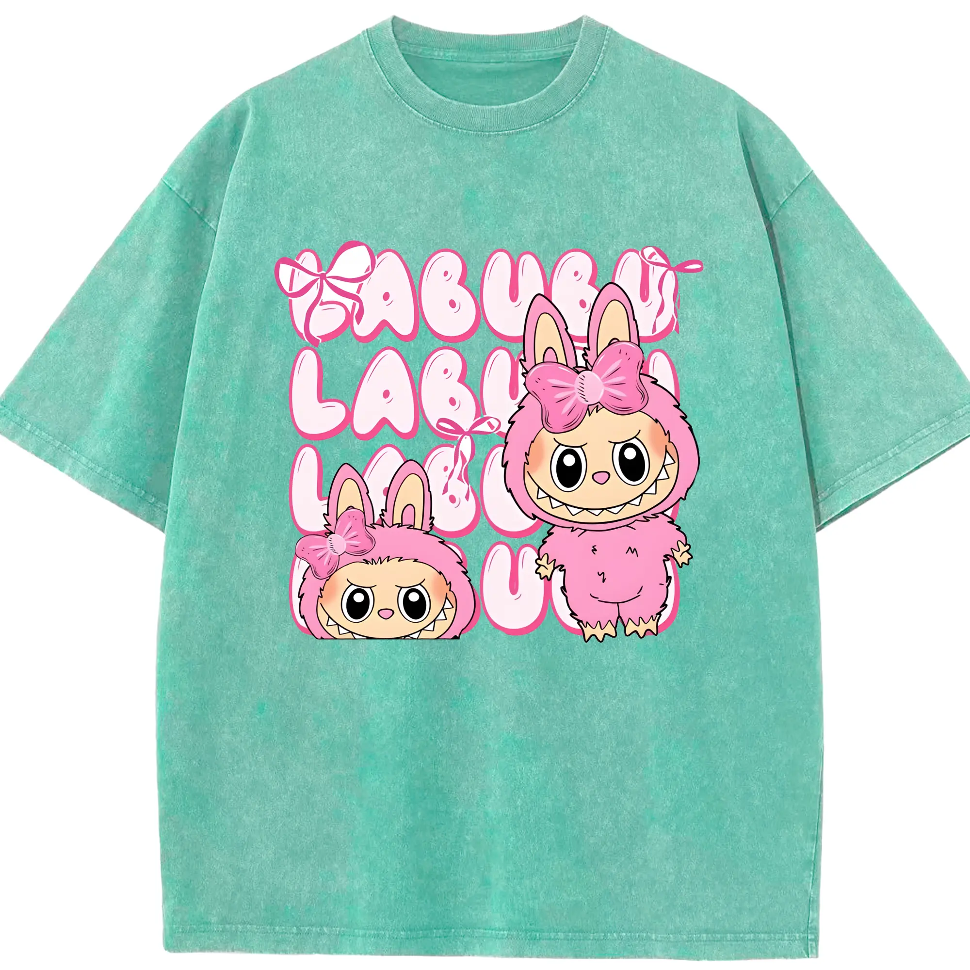 ラブブ グッズ ラブブ - 綿100% ヴィンテージ風 半袖Tシャツ ・ 背面プリント ・ 柔らか肌触り ・ 通気性 快適 ・ スポーツ カジュアル 外出用