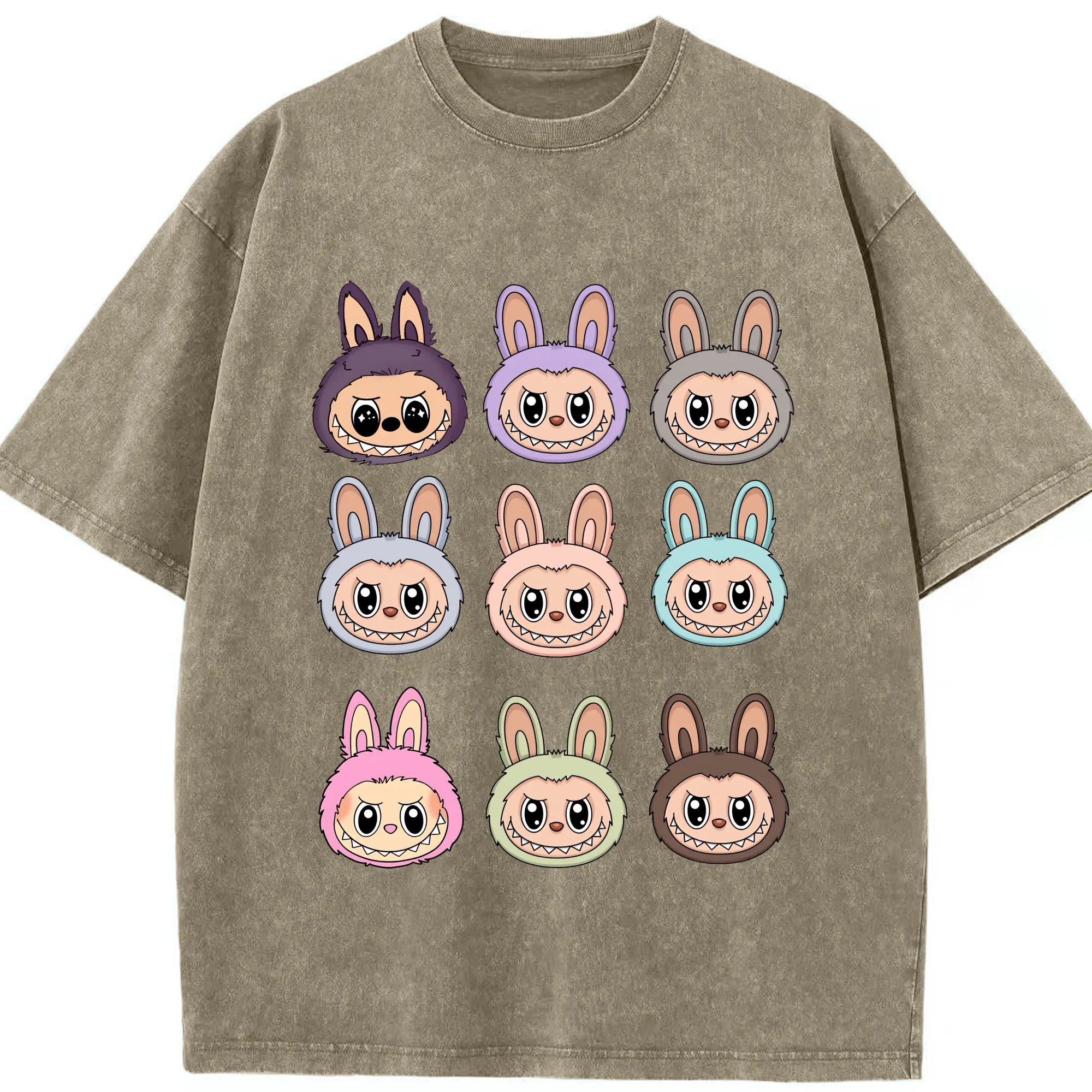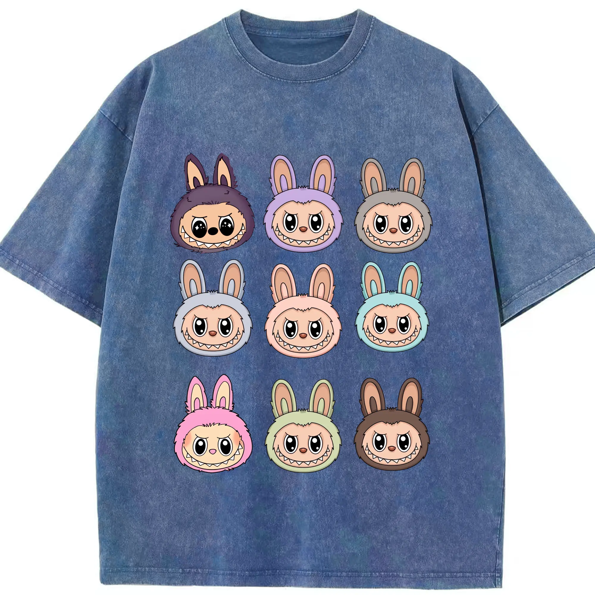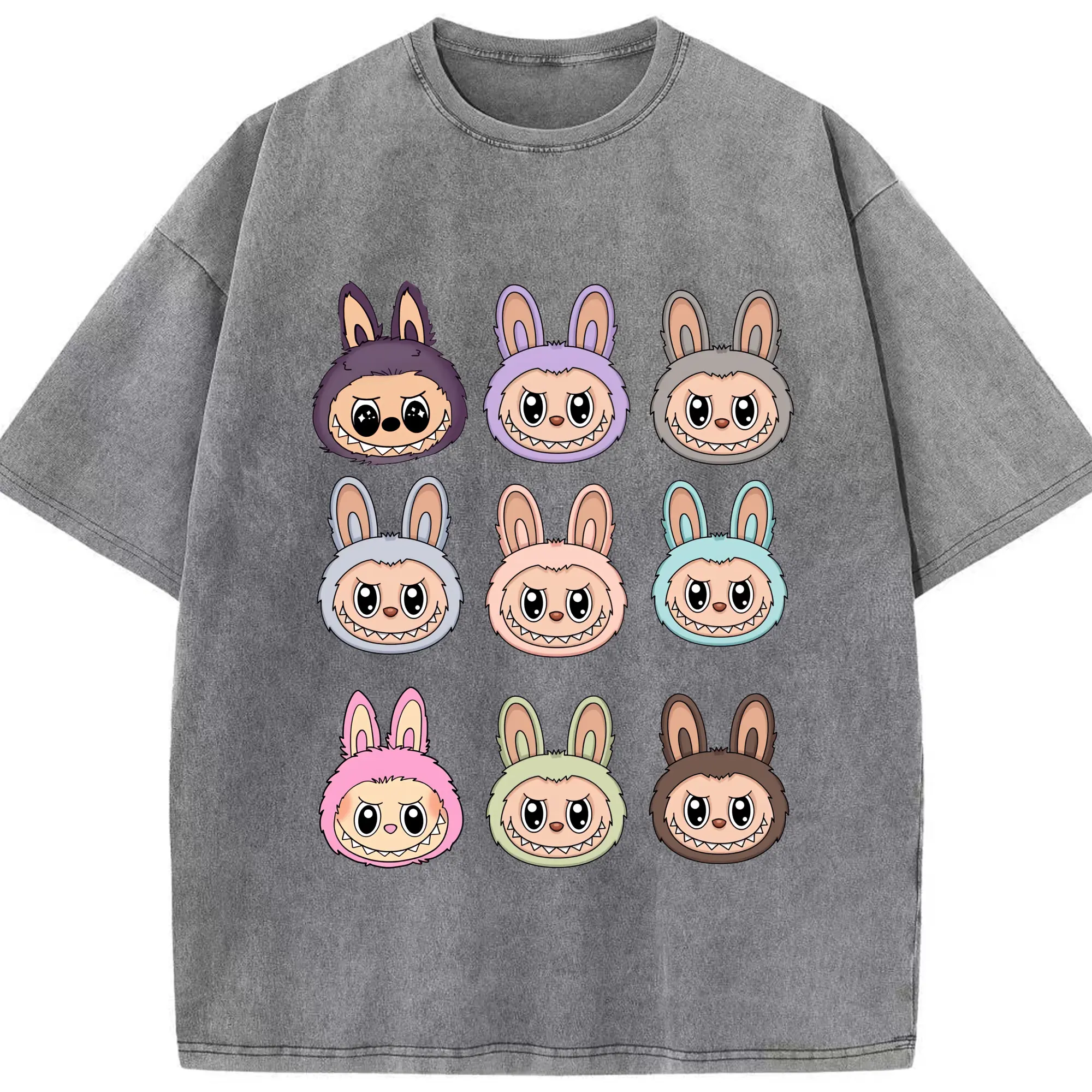 ラブブ グッズ ラブブ - 綿100% ヴィンテージ風 半袖Tシャツ ・ 背面プリント ・ 柔らか肌触り ・ 通気性 快適 ・ スポーツ カジュアル 外出用