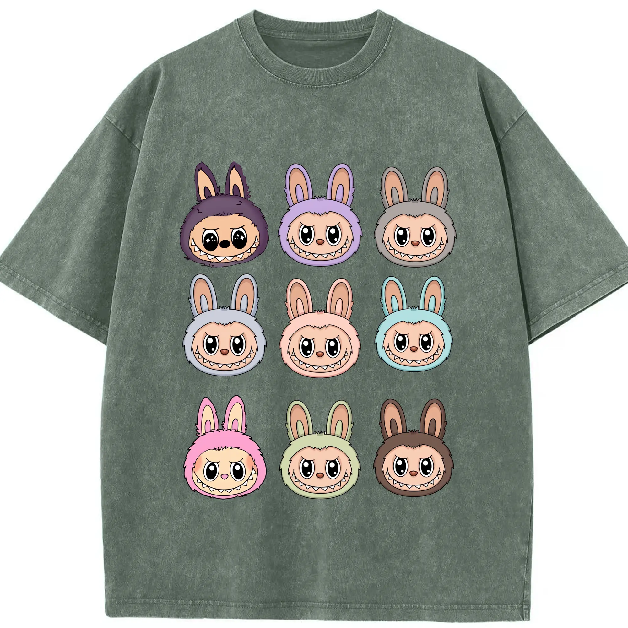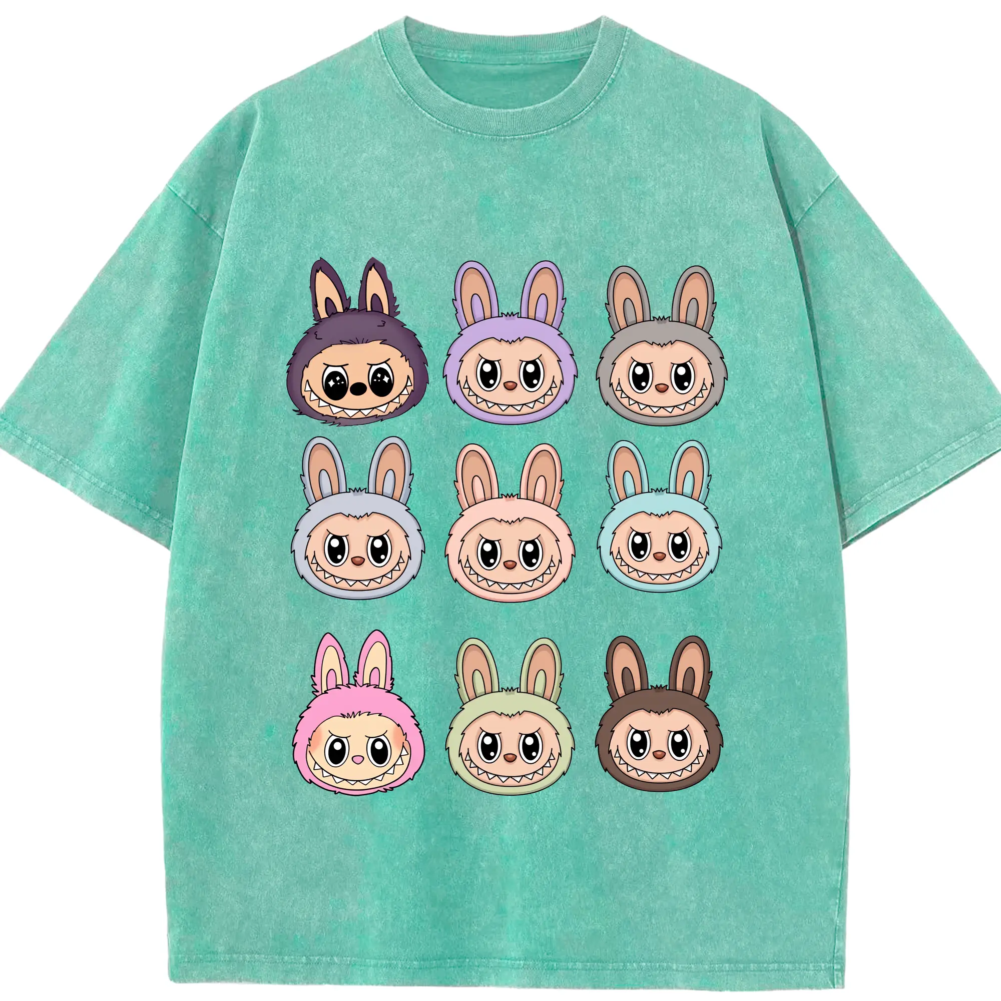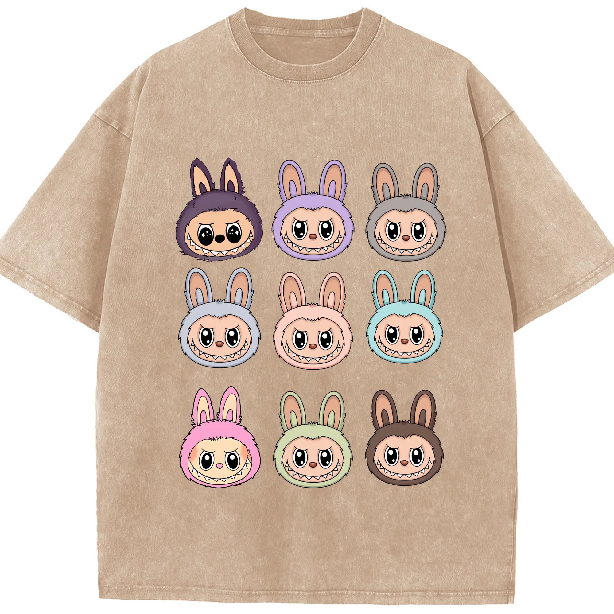 ラブブ グッズ ラブブ - 綿100% ヴィンテージ風 半袖Tシャツ ・ 背面プリント ・ 柔らか肌触り ・ 通気性 快適 ・ スポーツ カジュアル 外出用