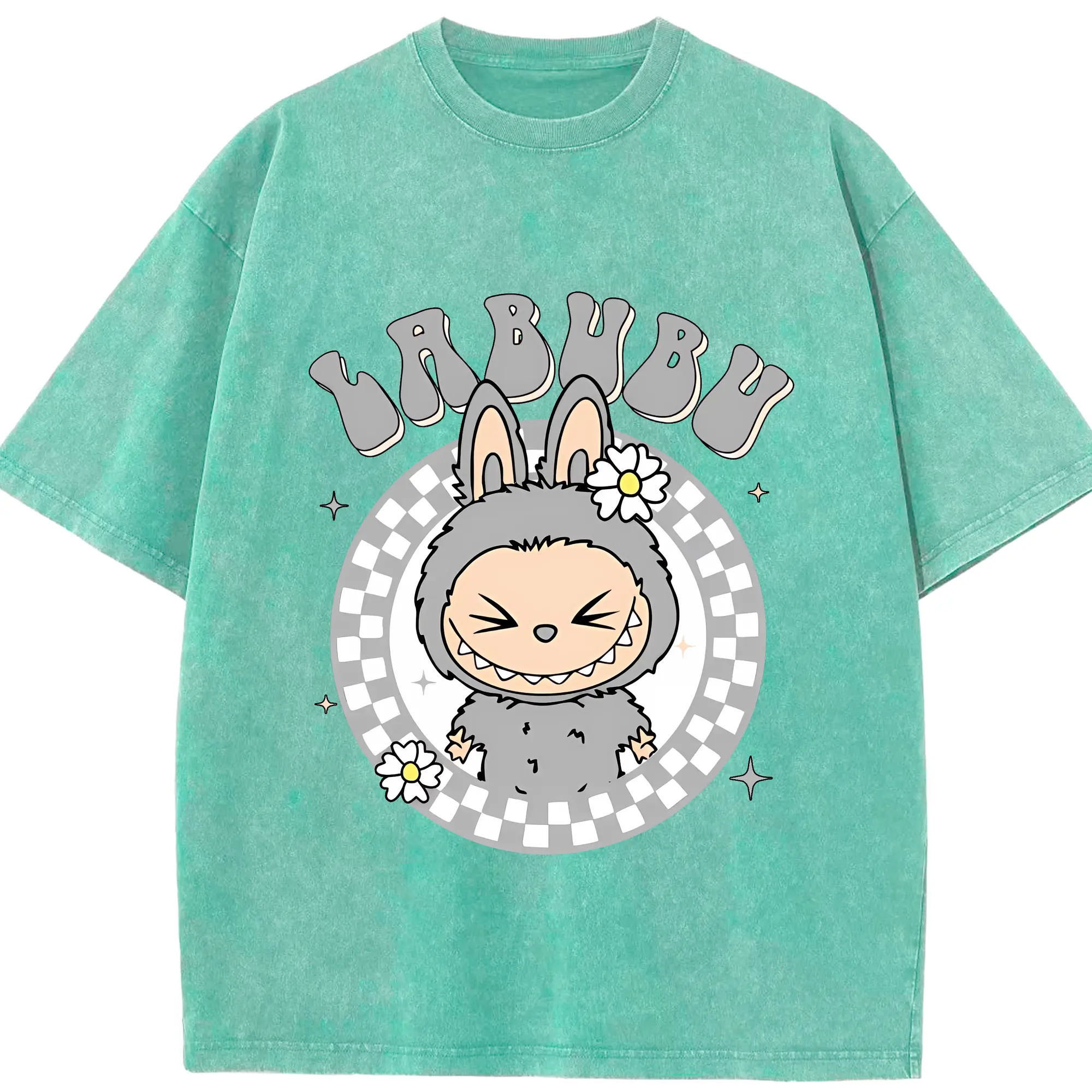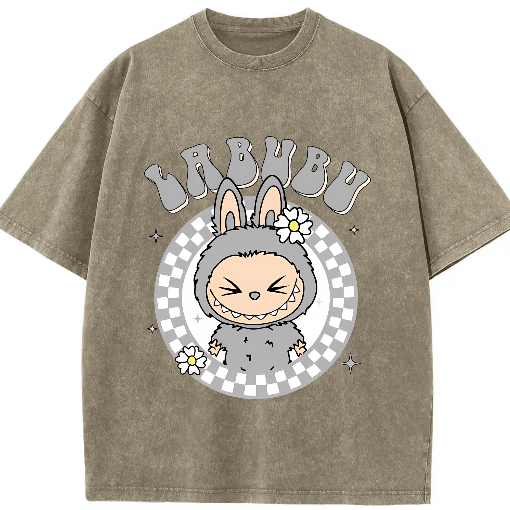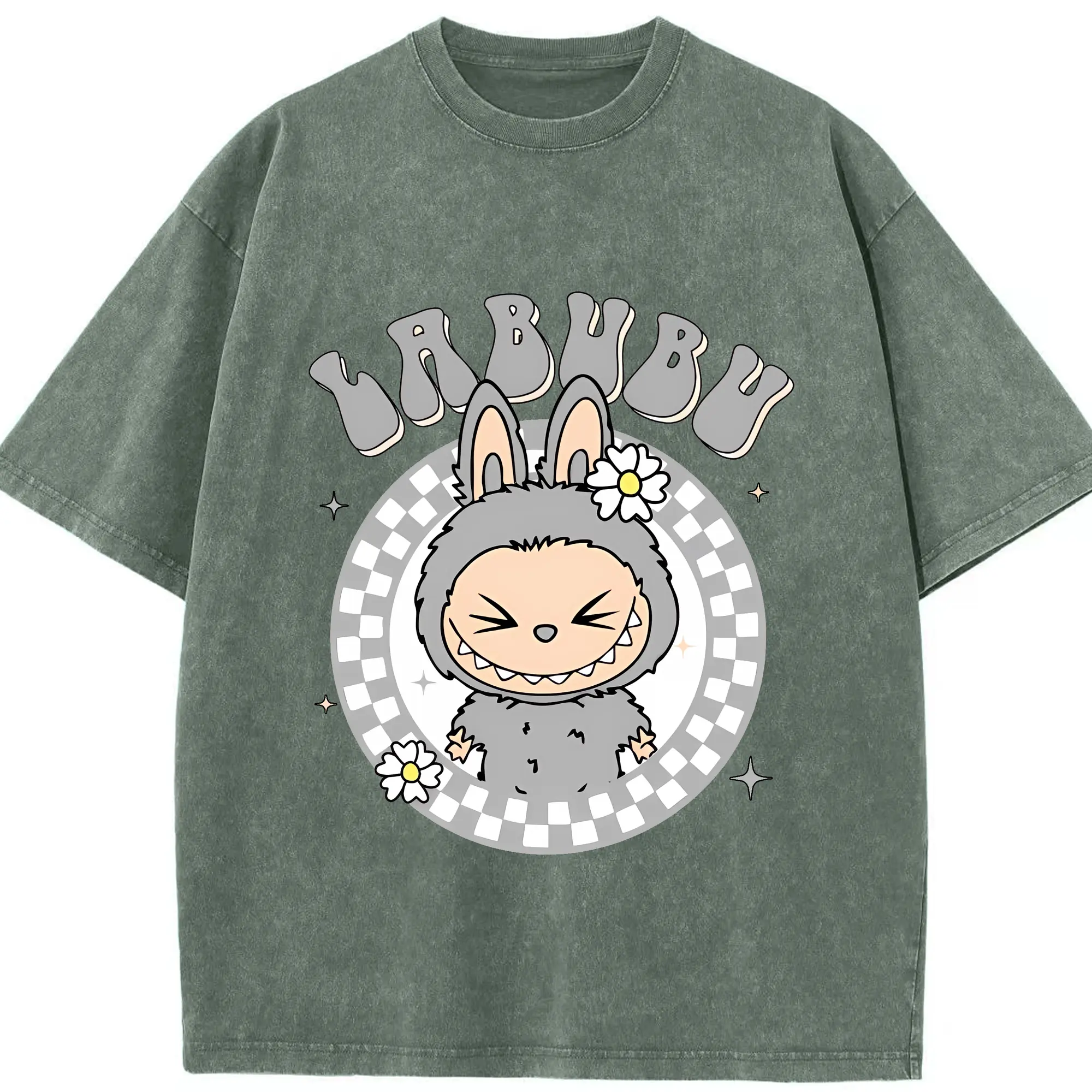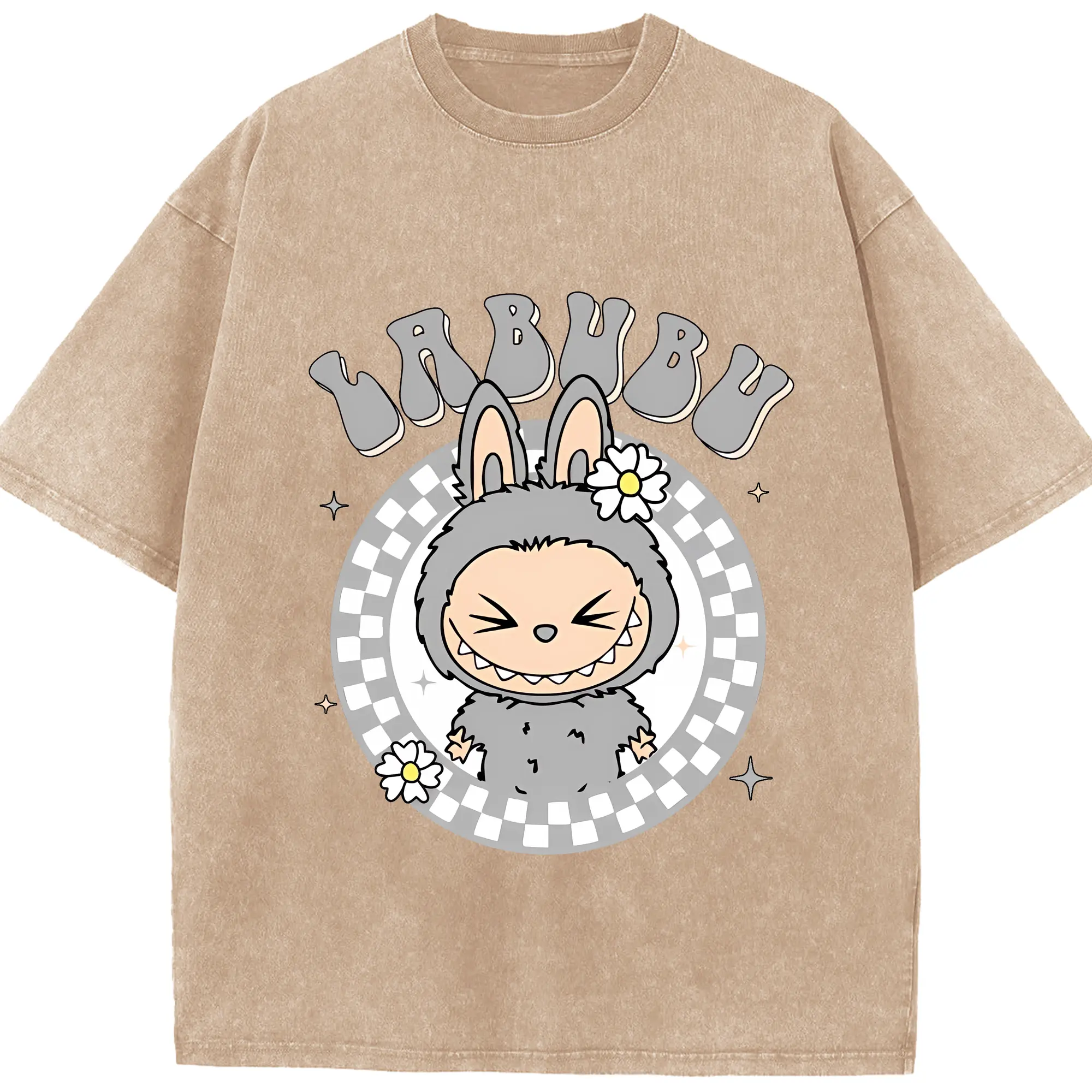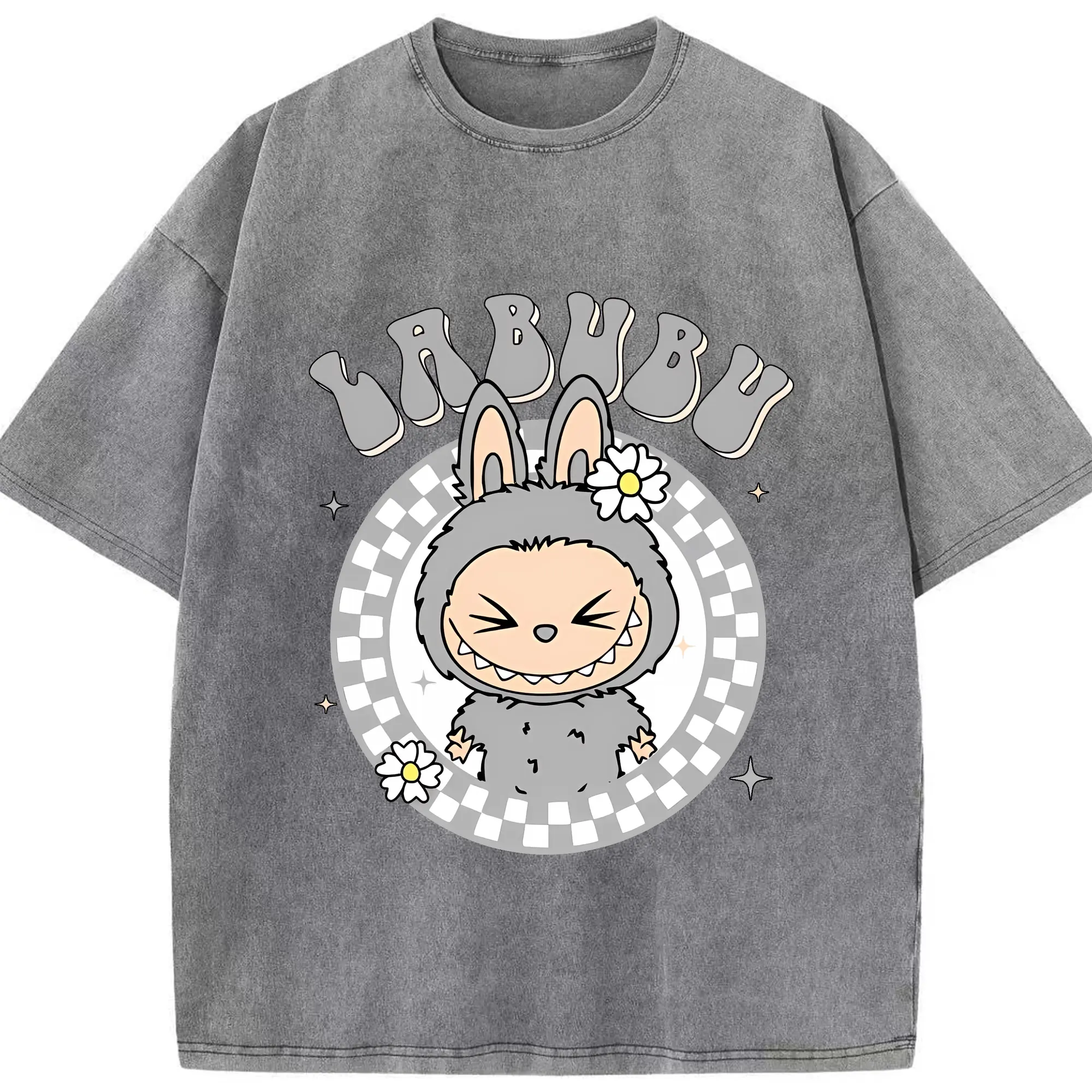 ラブブ グッズ ラブブ - 綿100% ヴィンテージ風 半袖Tシャツ ・ 背面プリント ・ 柔らか肌触り ・ 通気性 快適 ・ スポーツ カジュアル 外出用