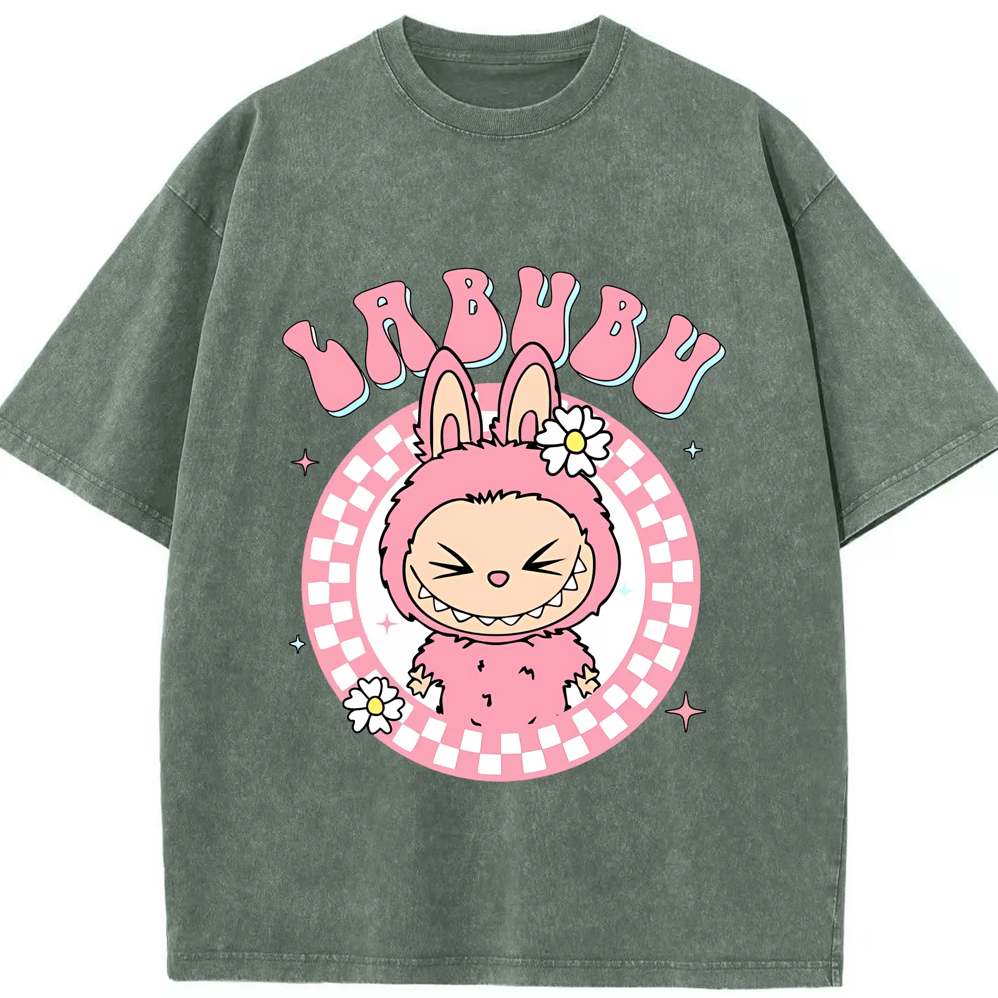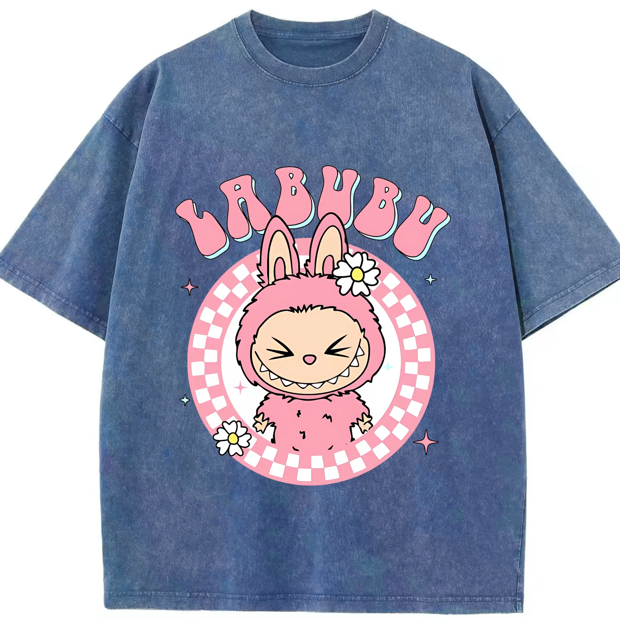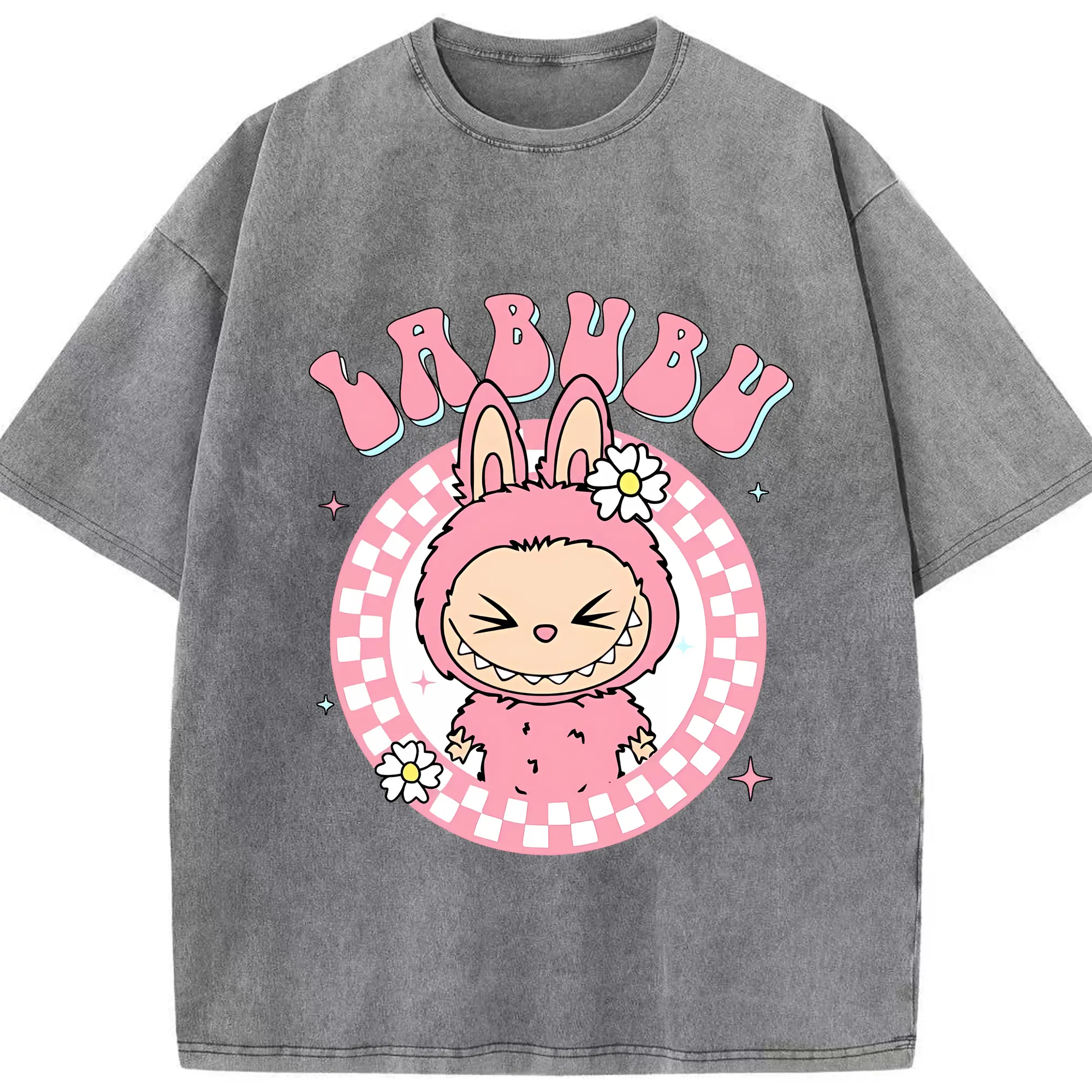 ラブブ グッズ ラブブ - 綿100% ヴィンテージ風 半袖Tシャツ ・ 背面プリント ・ 柔らか肌触り ・ 通気性 快適 ・ スポーツ カジュアル 外出用