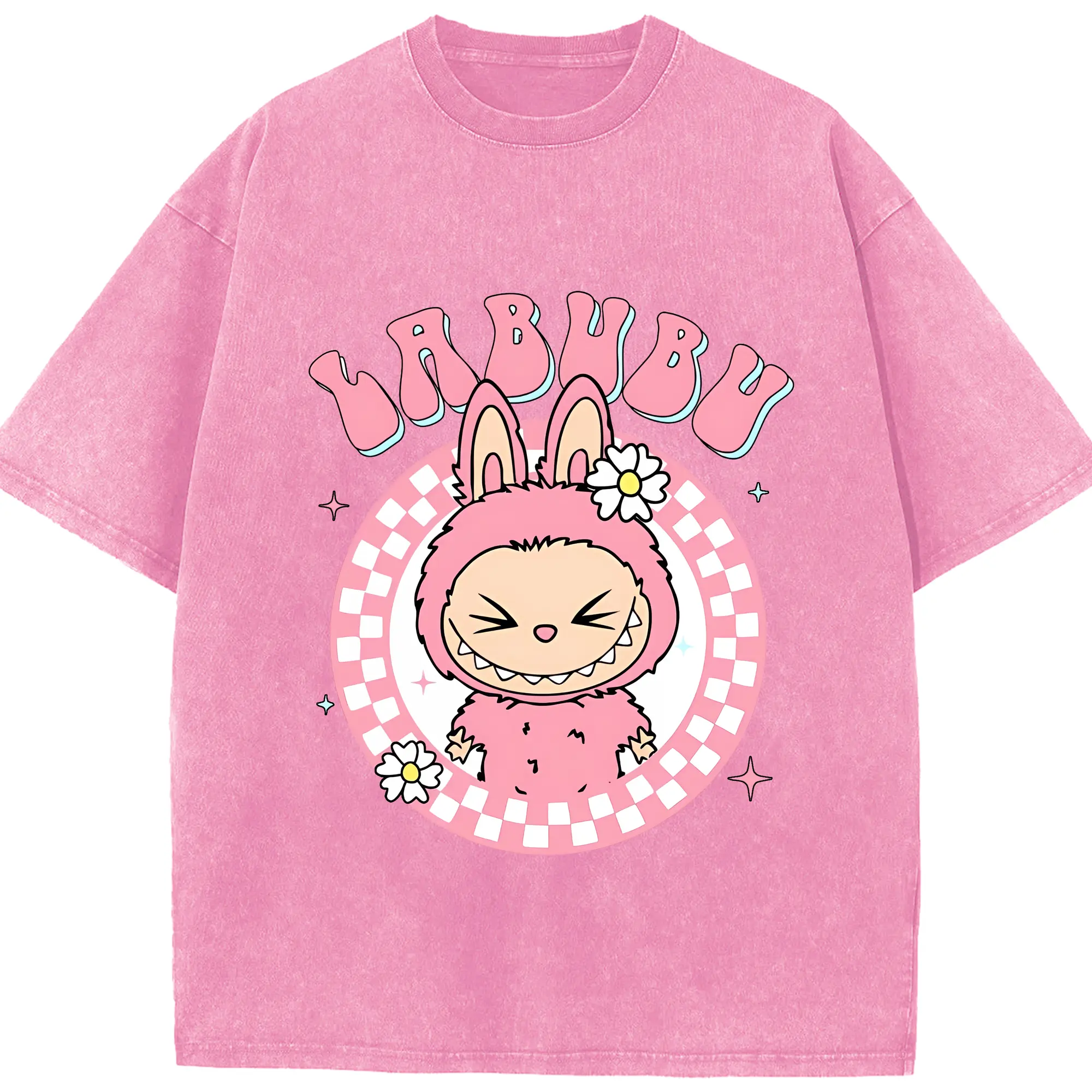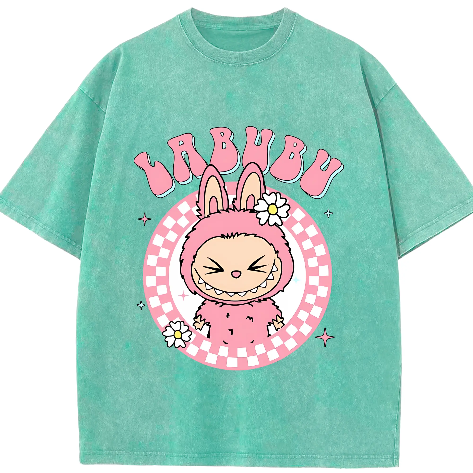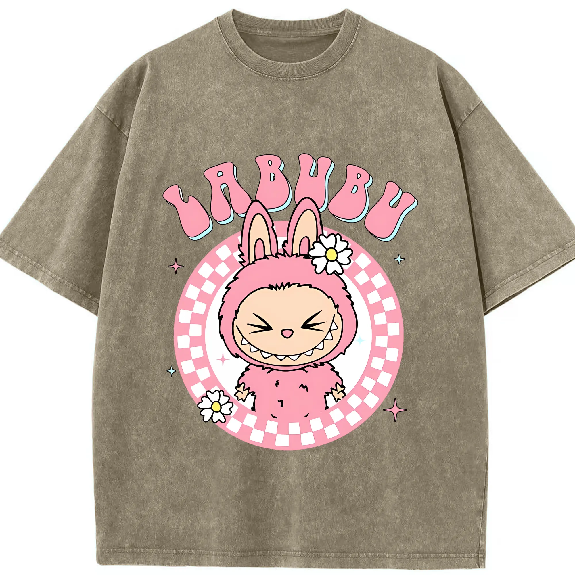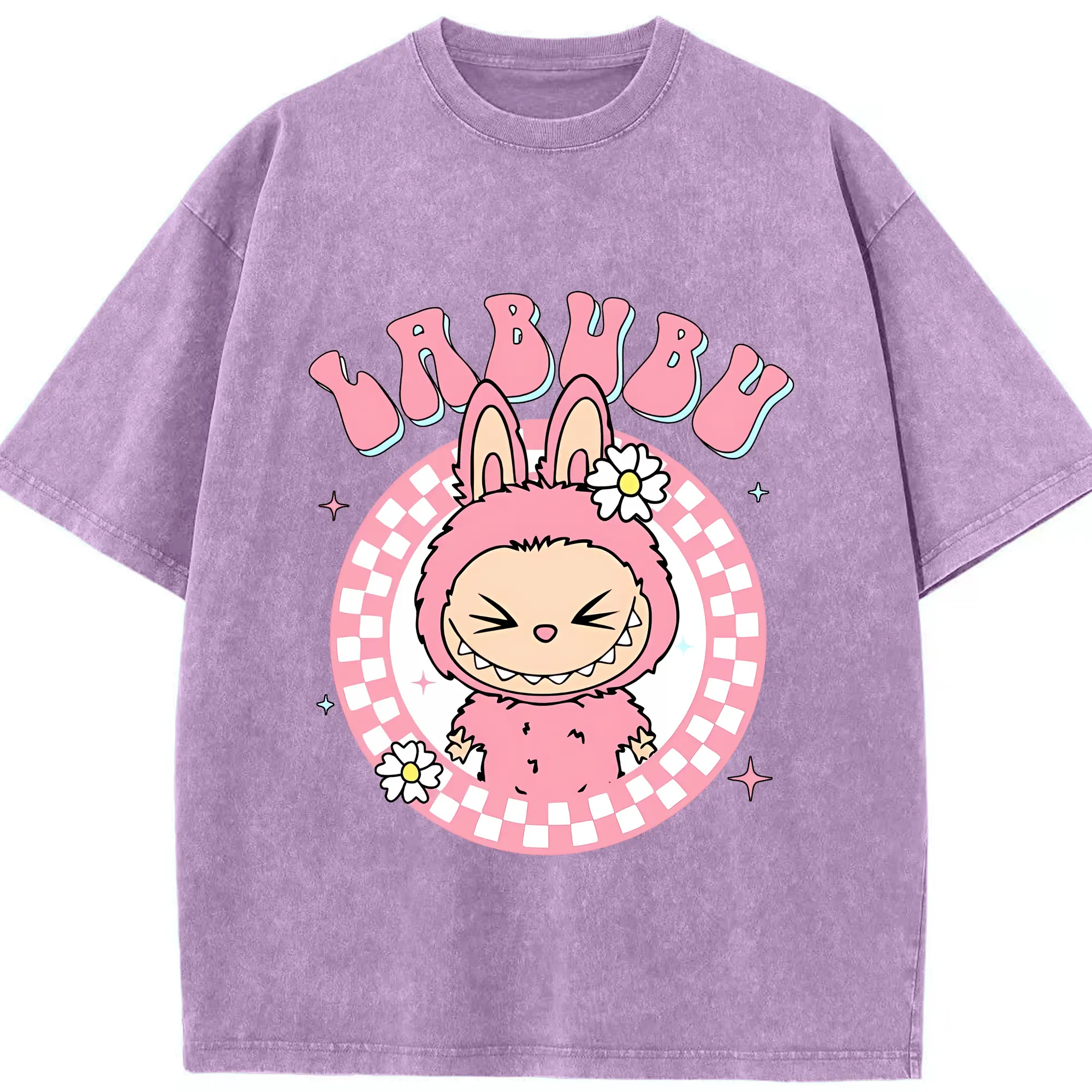 ラブブ グッズ ラブブ - 綿100% ヴィンテージ風 半袖Tシャツ ・ 背面プリント ・ 柔らか肌触り ・ 通気性 快適 ・ スポーツ カジュアル 外出用