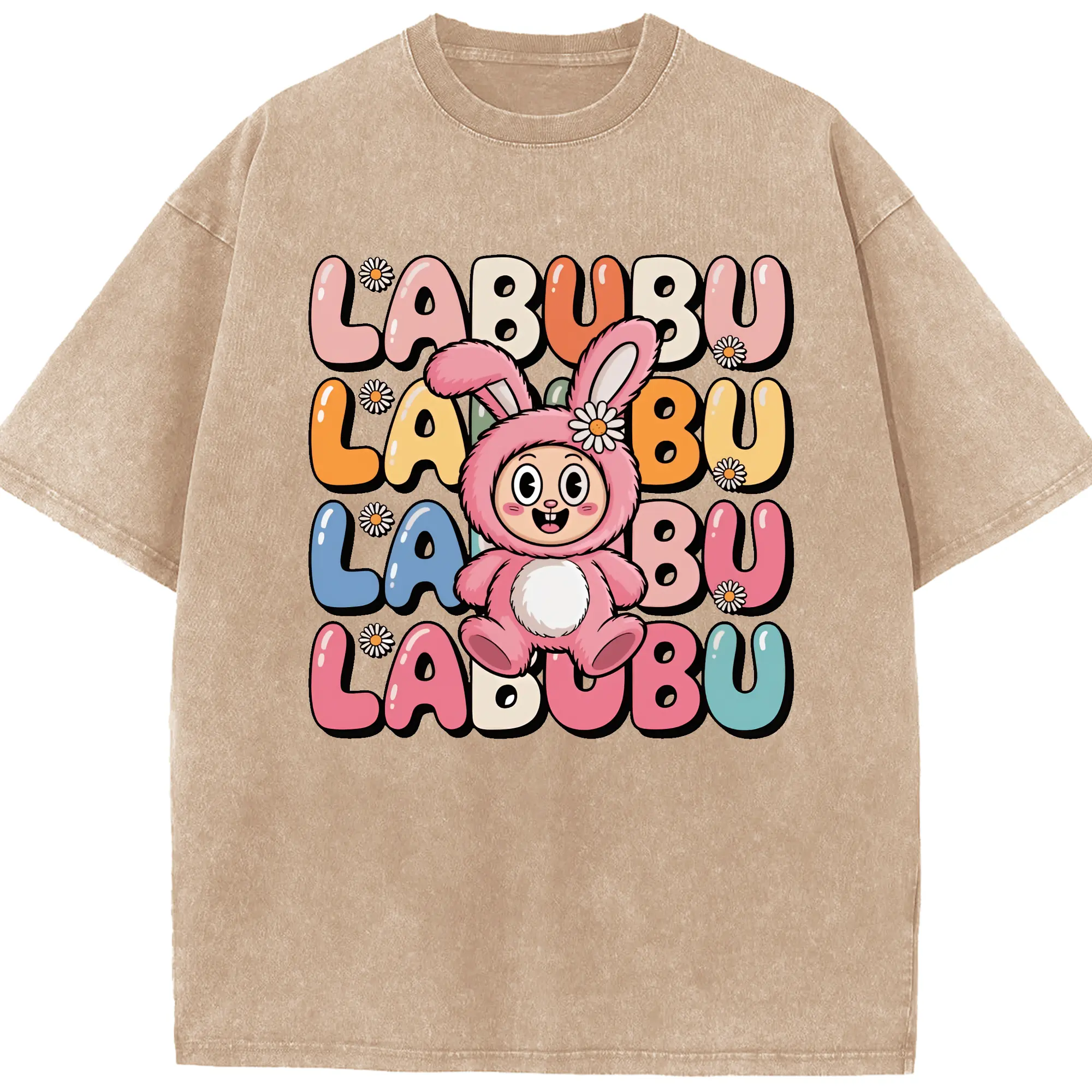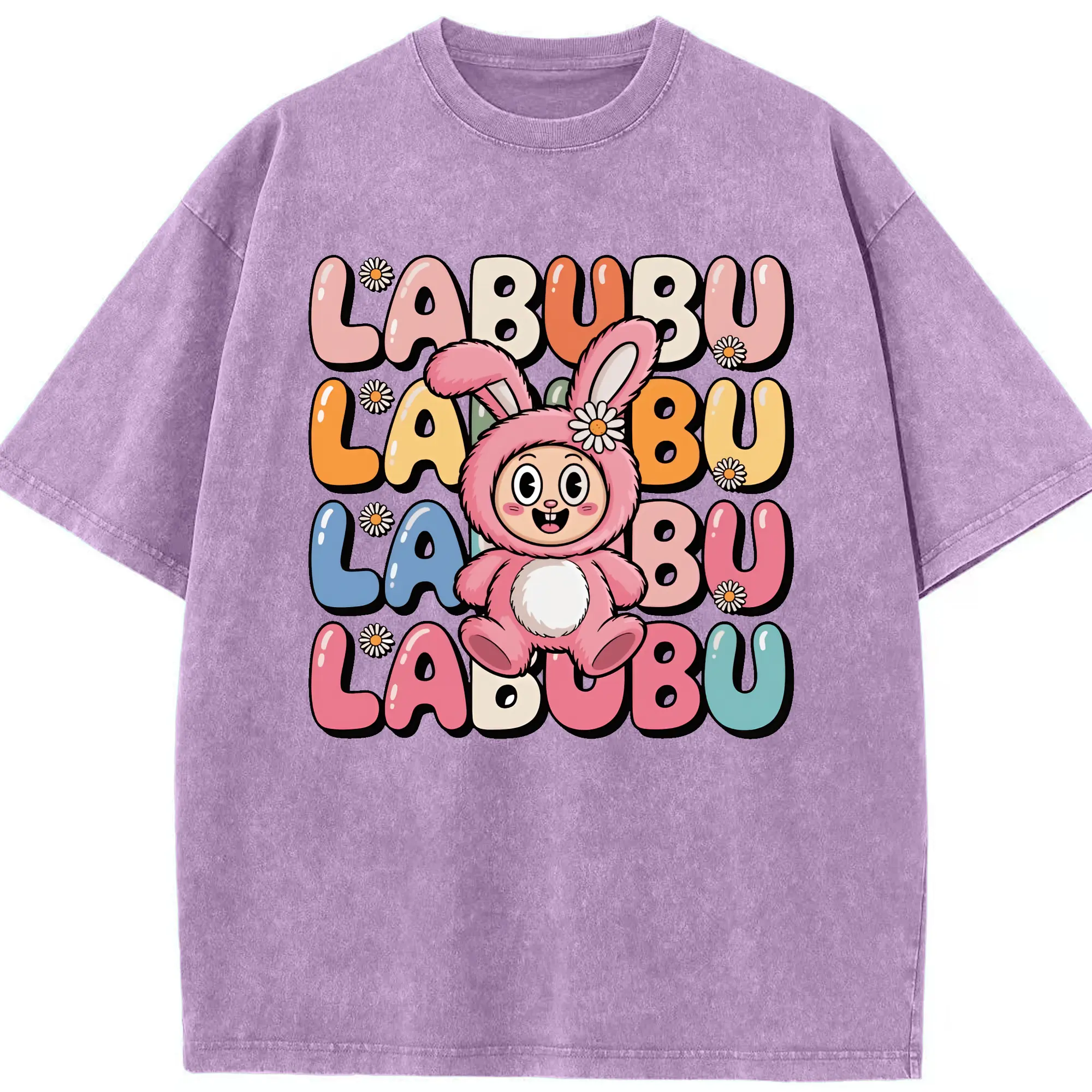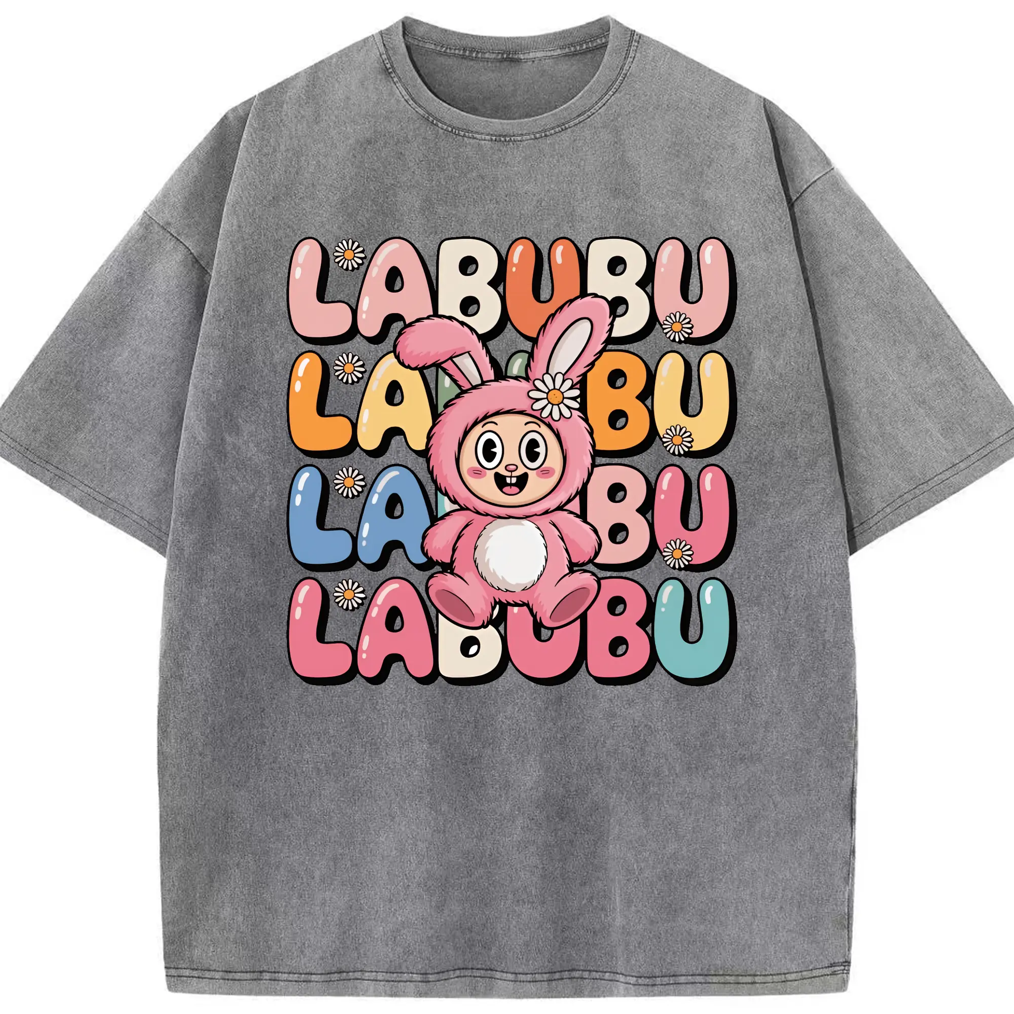 ラブブ グッズ ラブブ - 綿100% ヴィンテージ風 半袖Tシャツ ・ 背面プリント ・ 柔らか肌触り ・ 通気性 快適 ・ スポーツ カジュアル 外出用