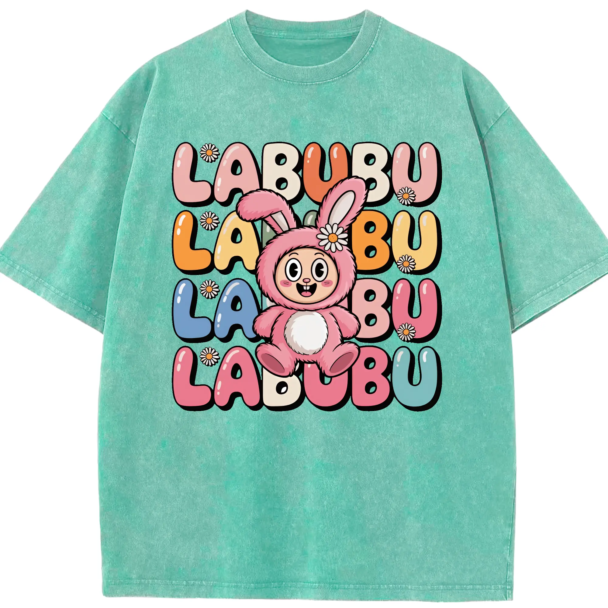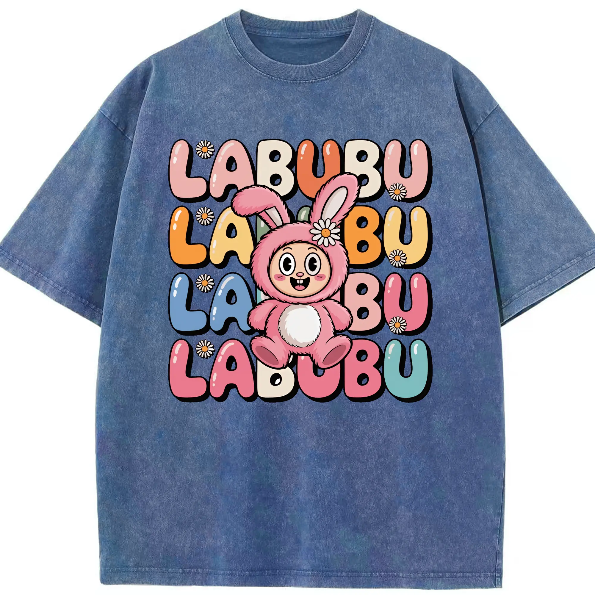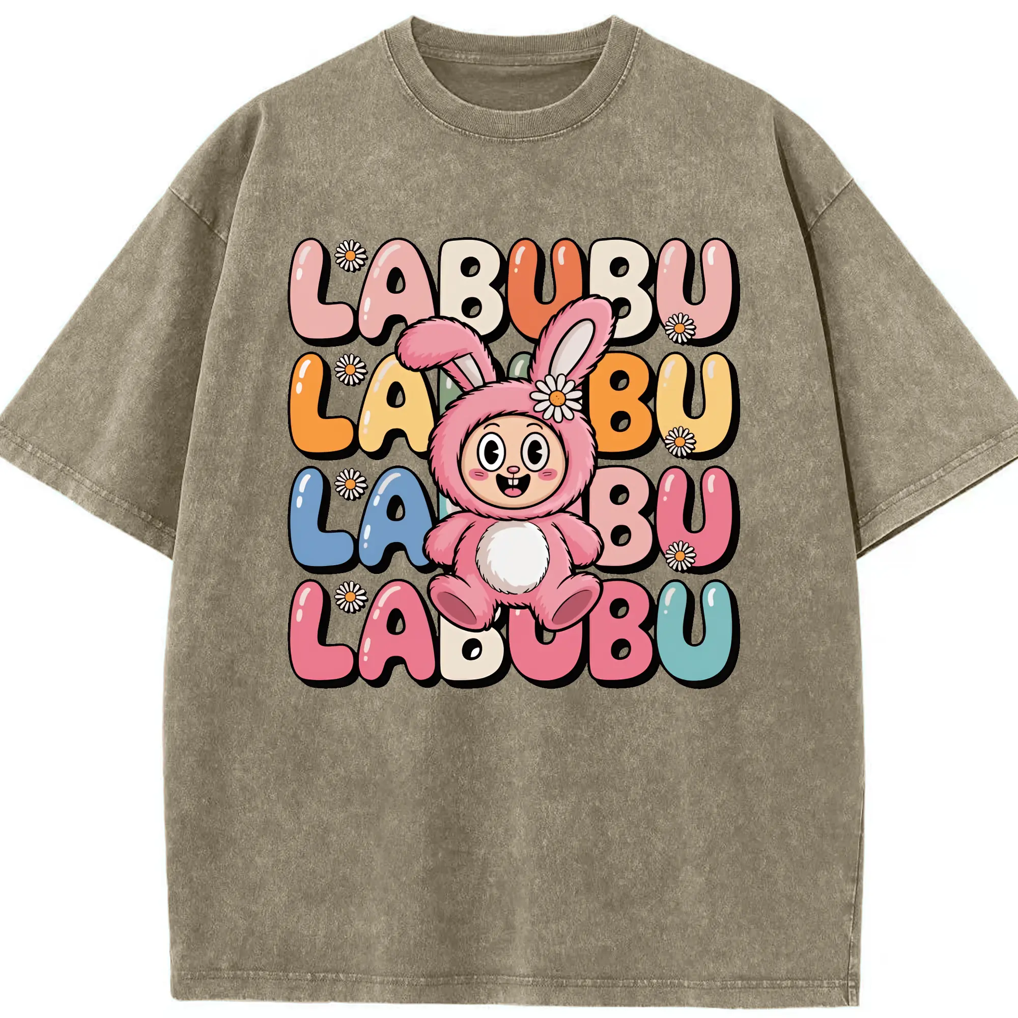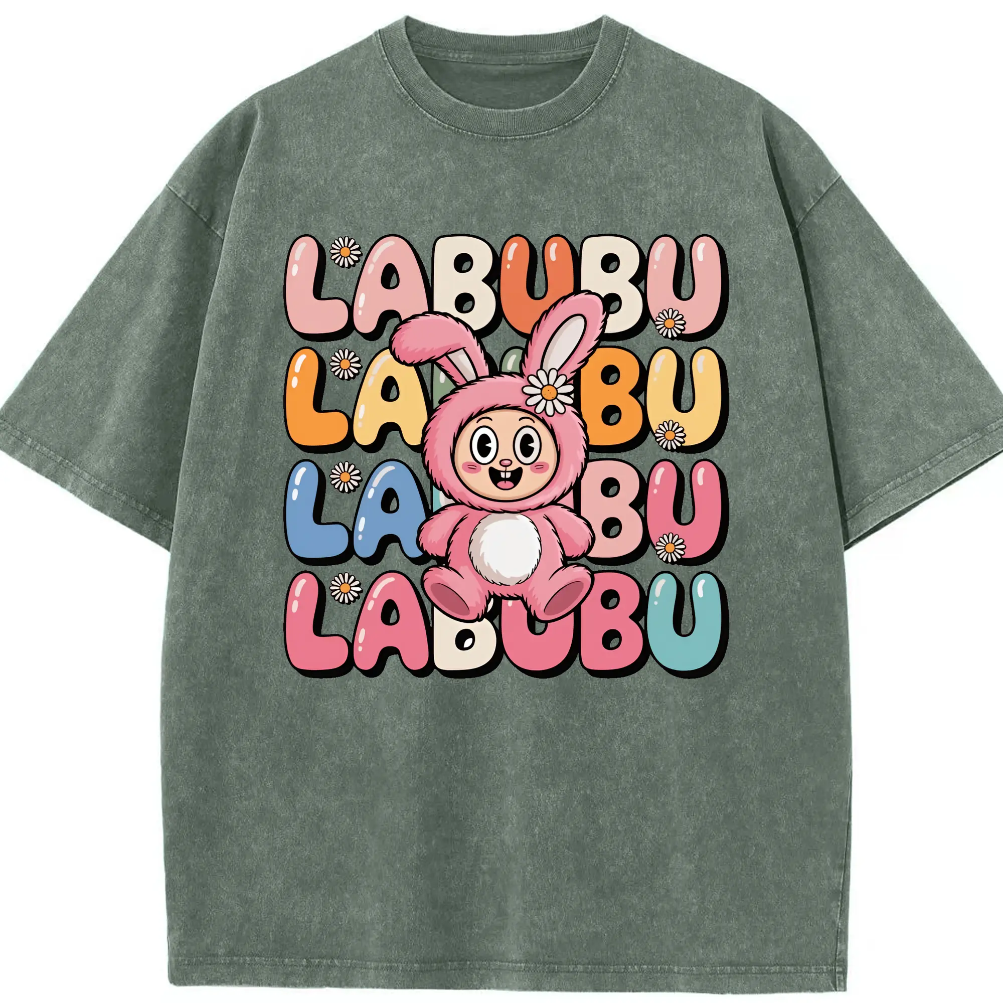ラブブ グッズ ラブブ - 綿100% ヴィンテージ風 半袖Tシャツ ・ 背面プリント ・ 柔らか肌触り ・ 通気性 快適 ・ スポーツ カジュアル 外出用
