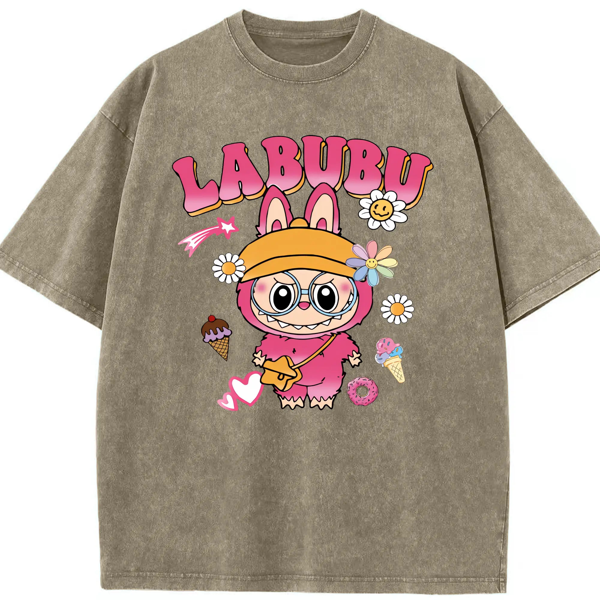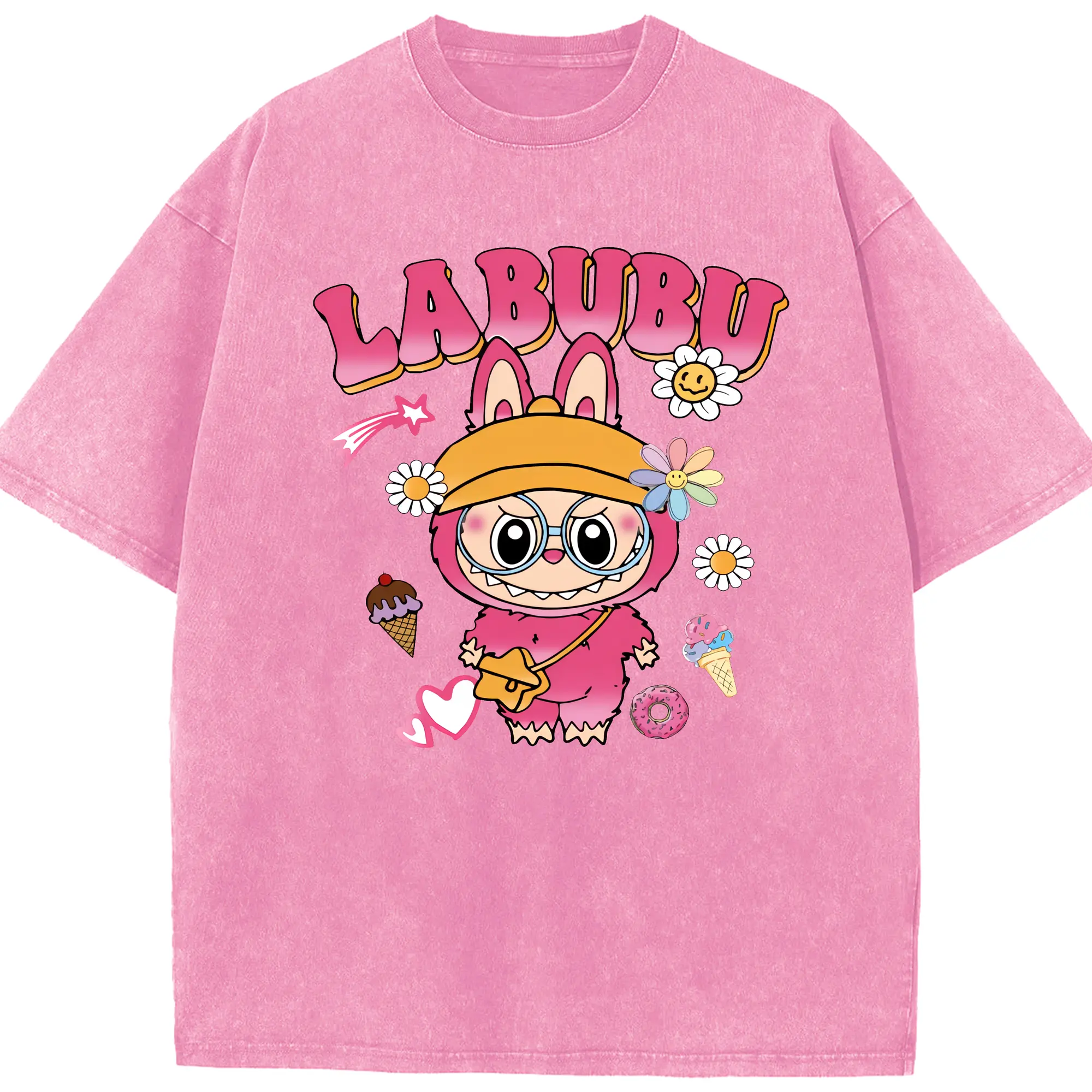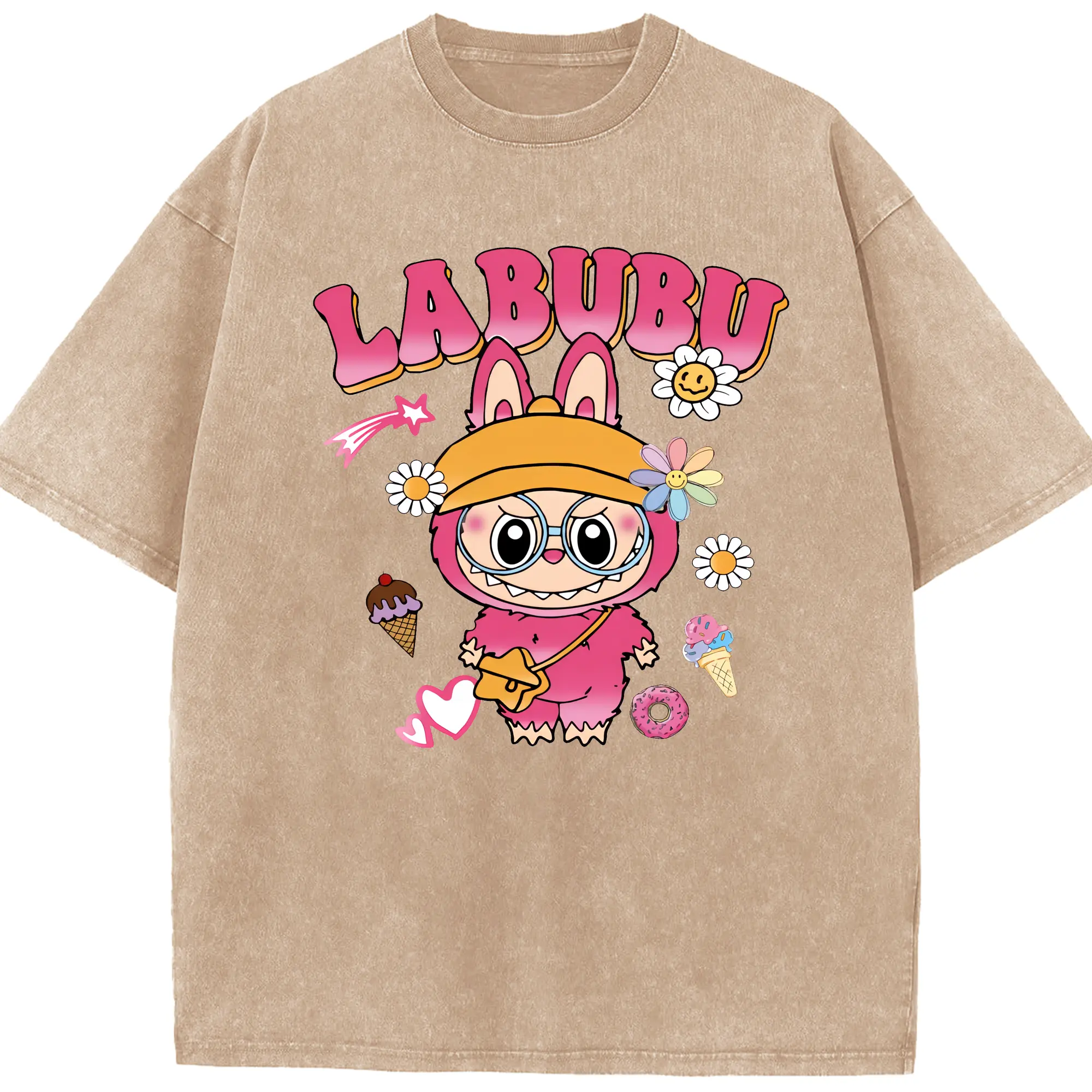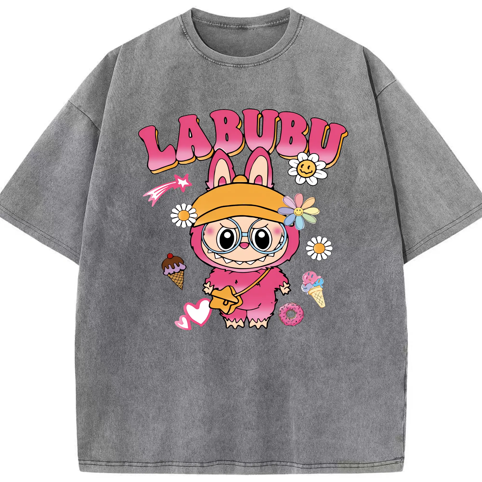 ラブブ グッズ ラブブ - 綿100% ヴィンテージ風 半袖Tシャツ ・ 背面プリント ・ 柔らか肌触り ・ 通気性 快適 ・ スポーツ カジュアル 外出用