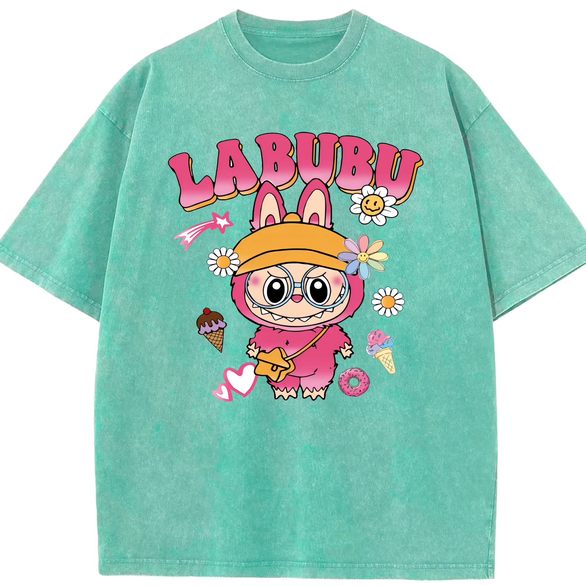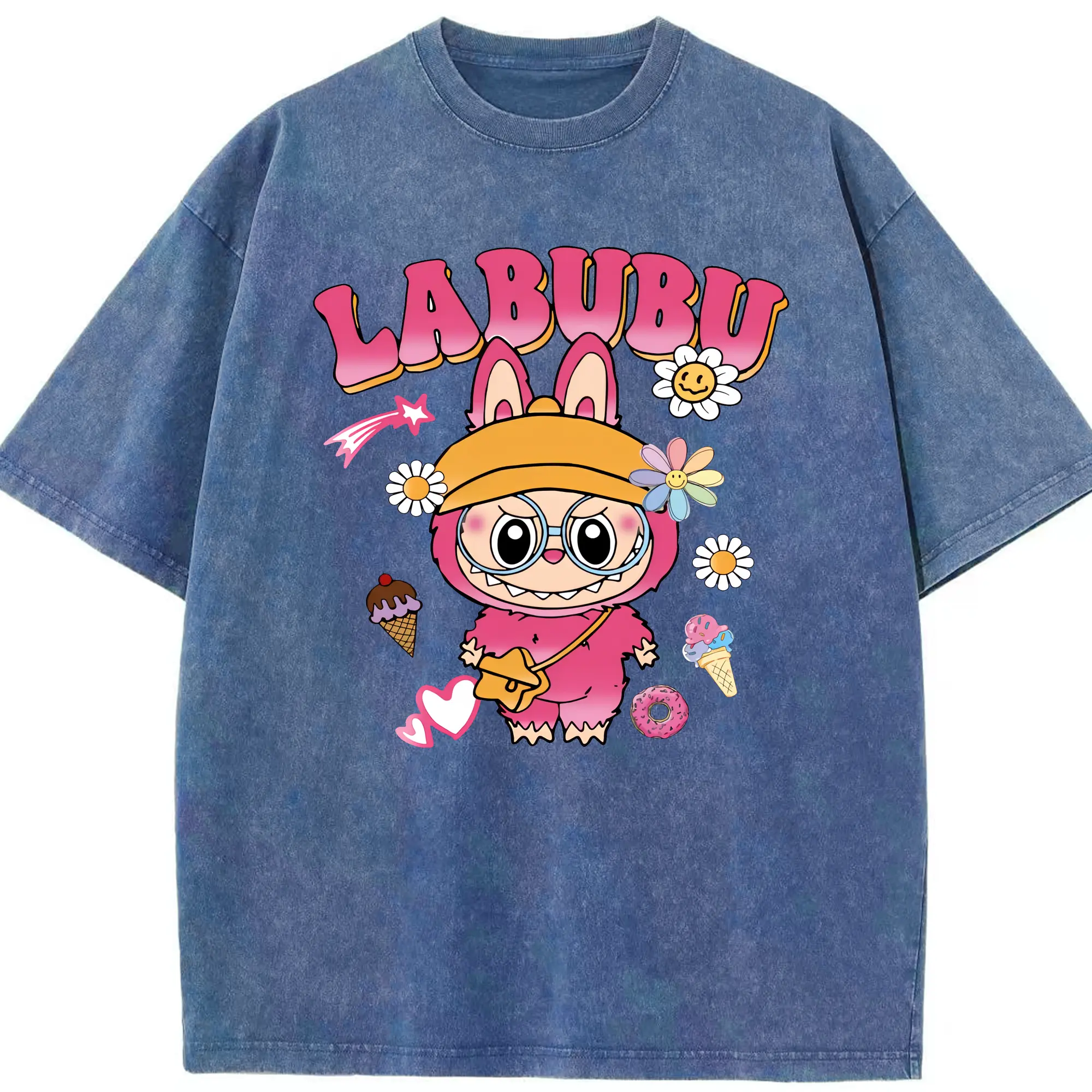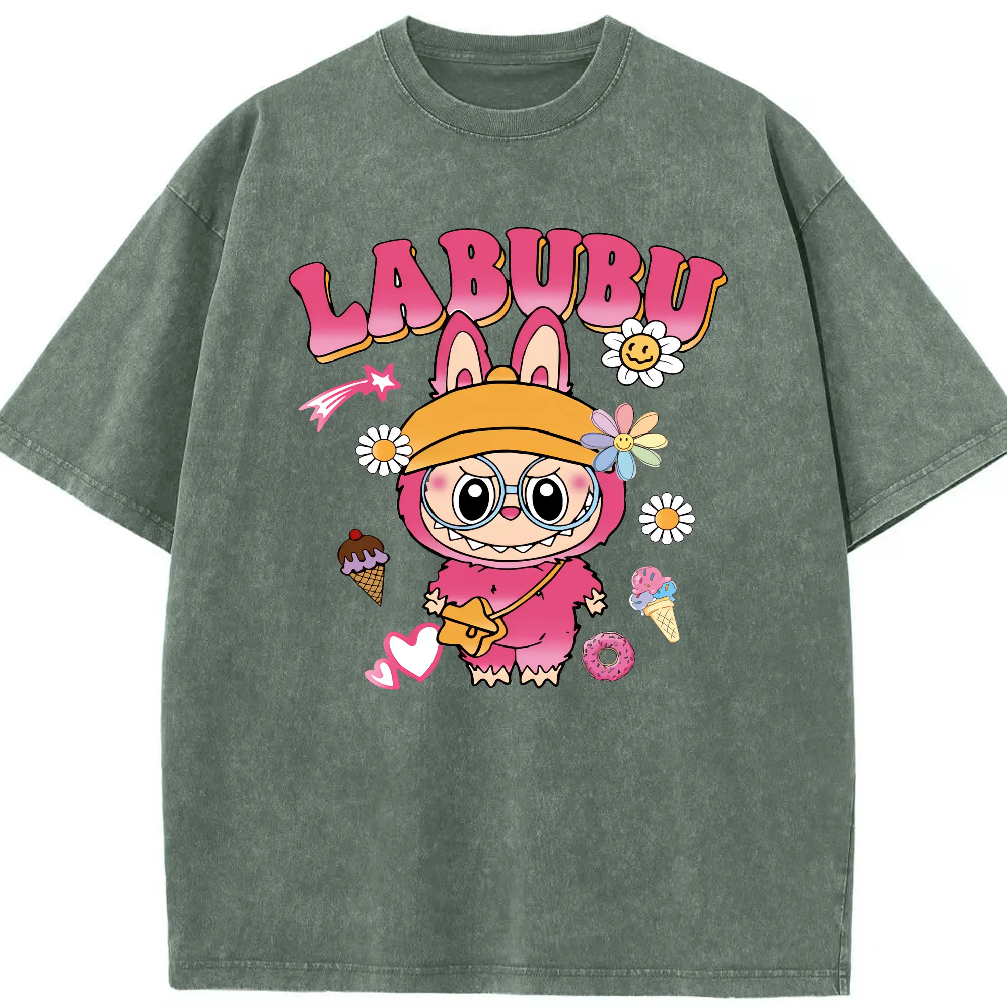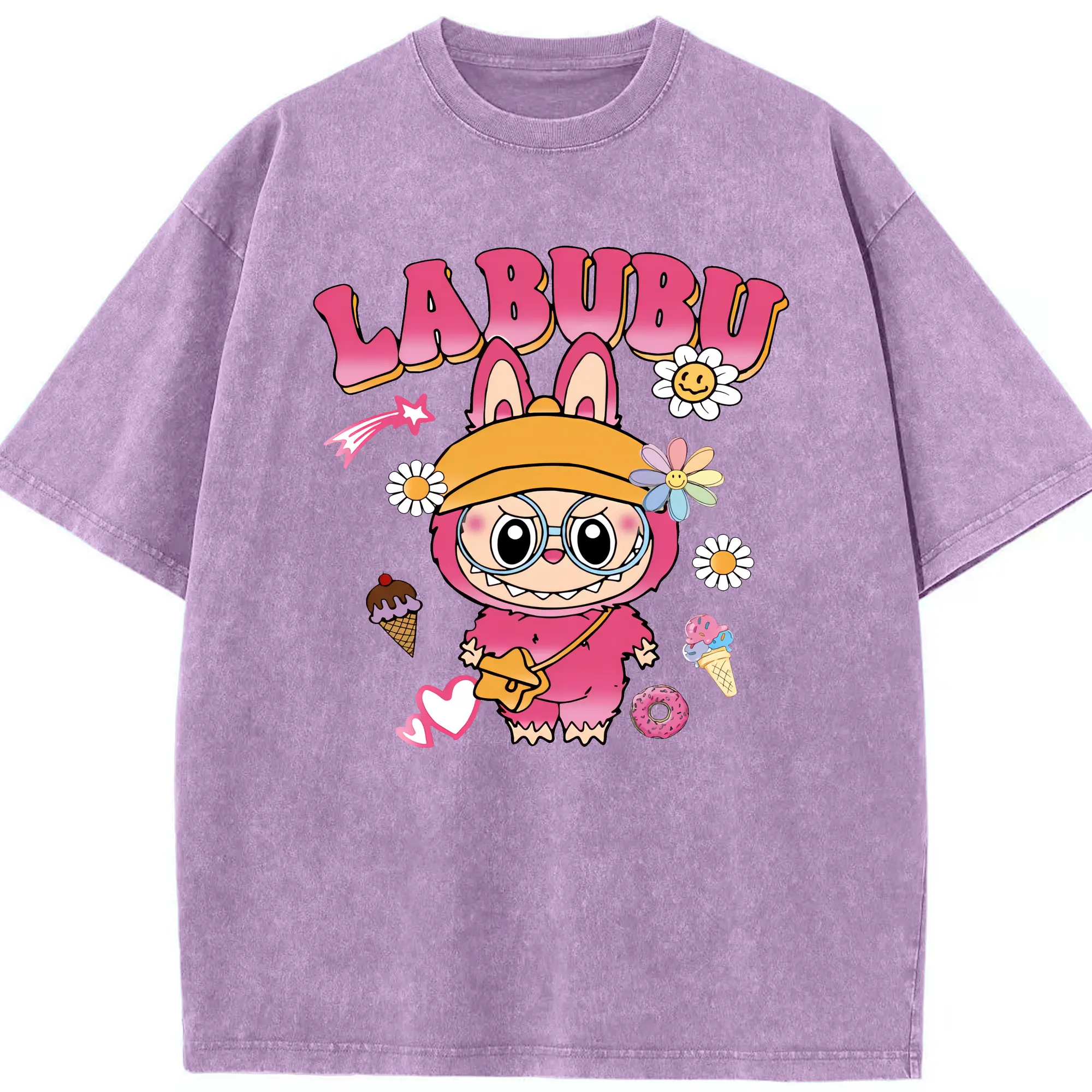 ラブブ グッズ ラブブ - 綿100% ヴィンテージ風 半袖Tシャツ ・ 背面プリント ・ 柔らか肌触り ・ 通気性 快適 ・ スポーツ カジュアル 外出用