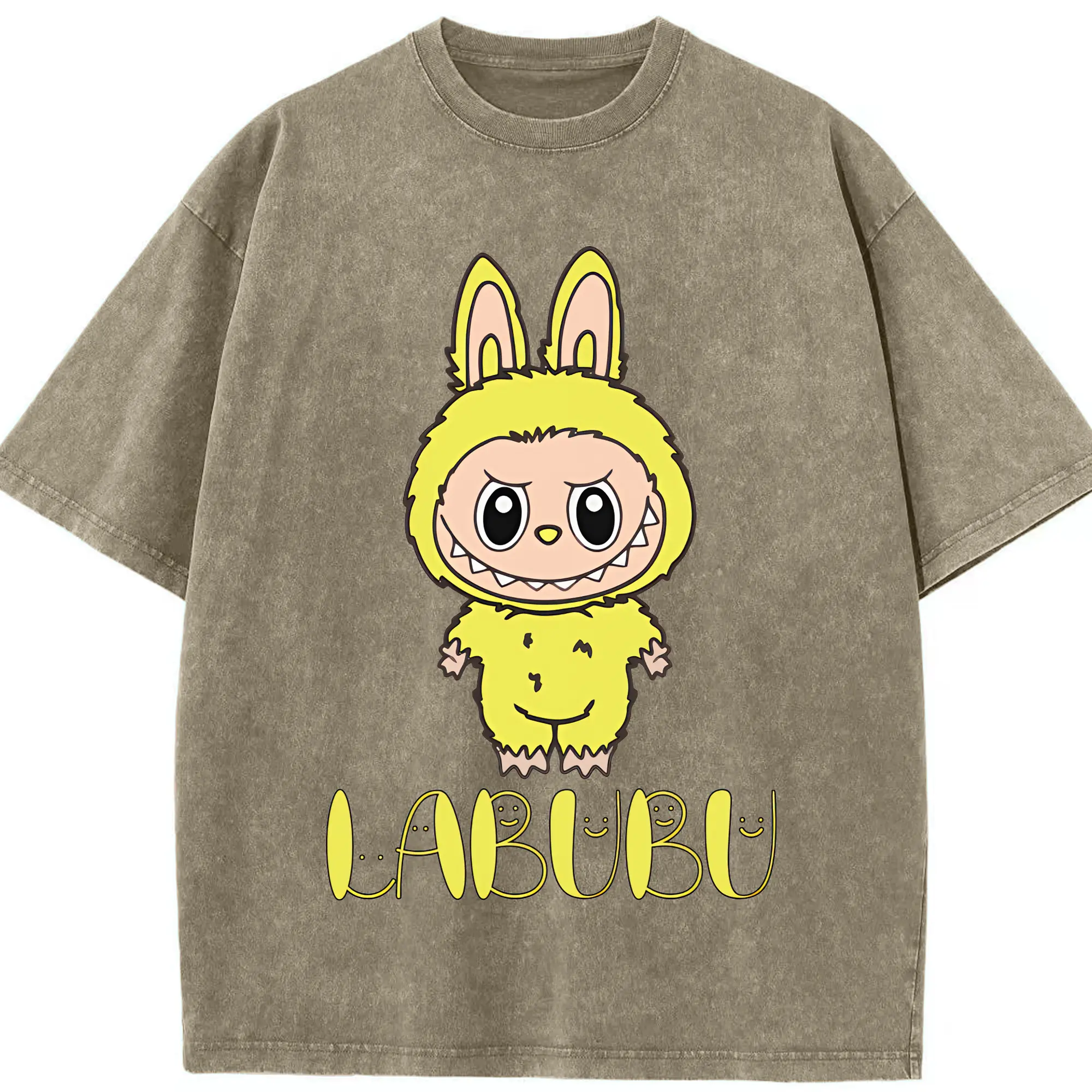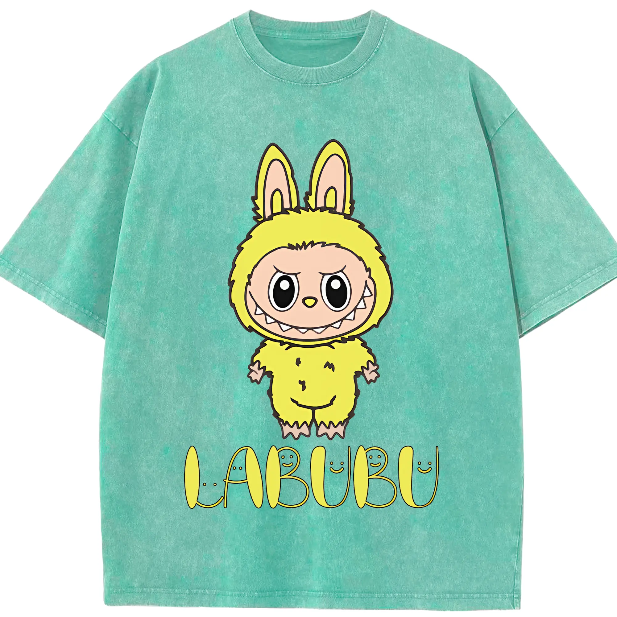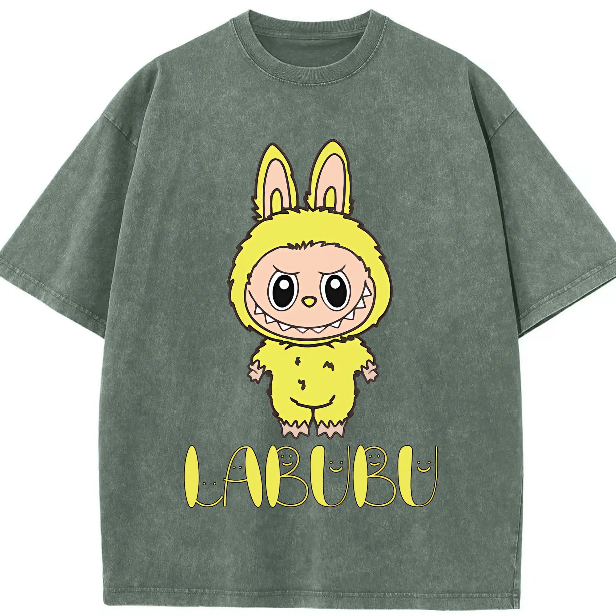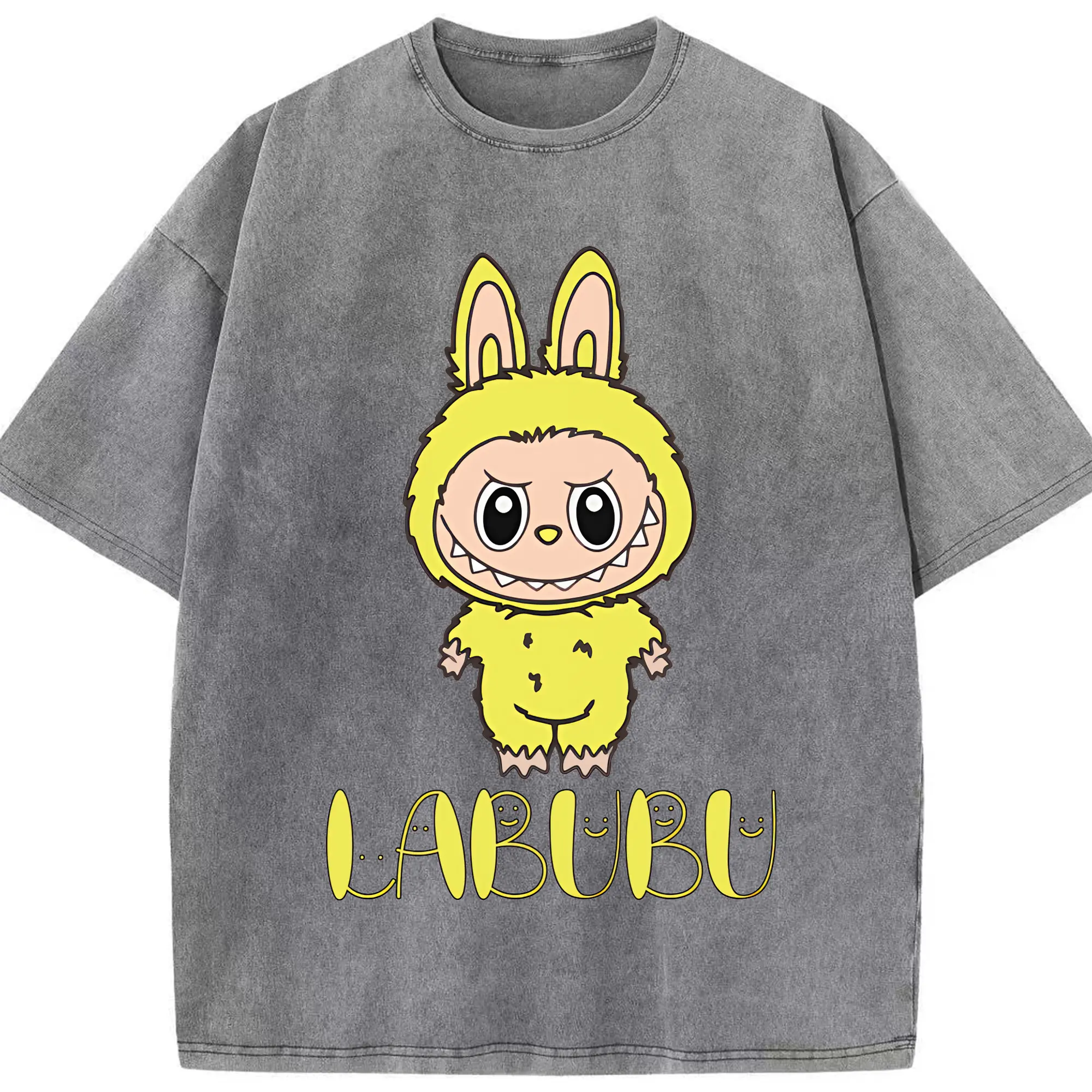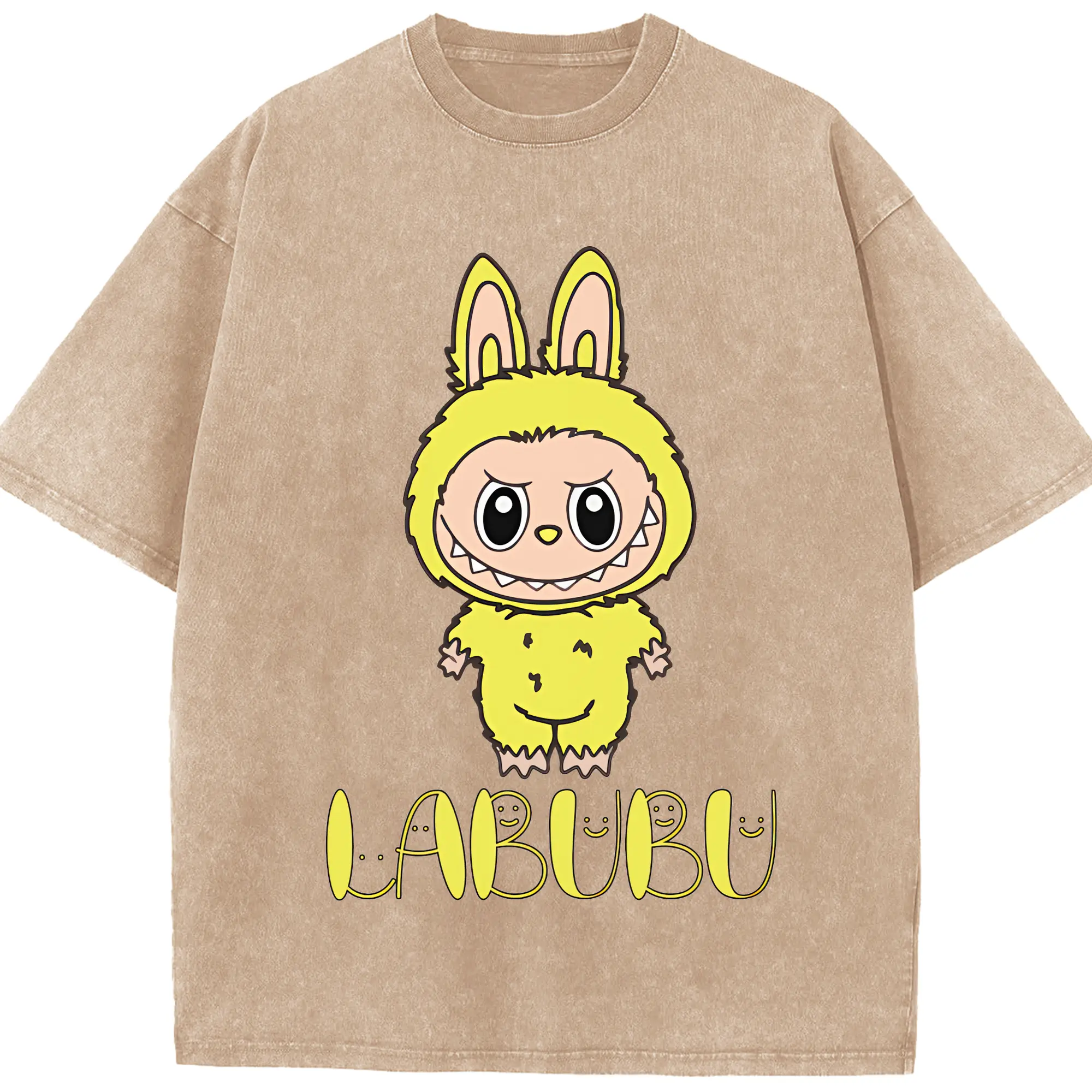 ラブブ グッズ ラブブ - 綿100% ヴィンテージ風 半袖Tシャツ ・ 背面プリント ・ 柔らか肌触り ・ 通気性 快適 ・ スポーツ カジュアル 外出用