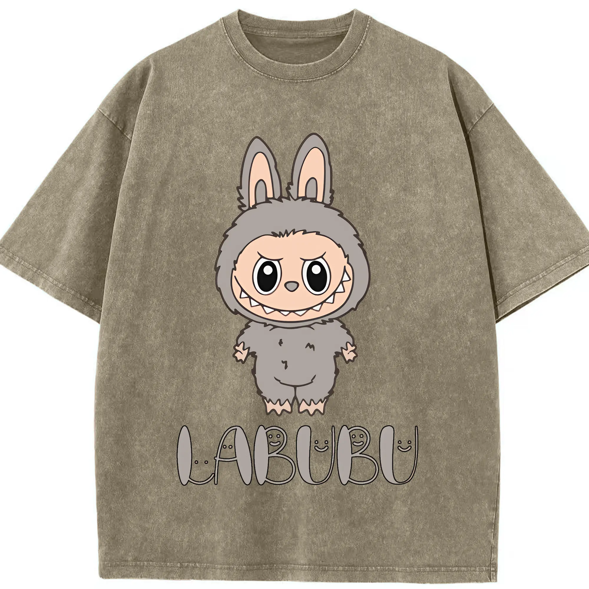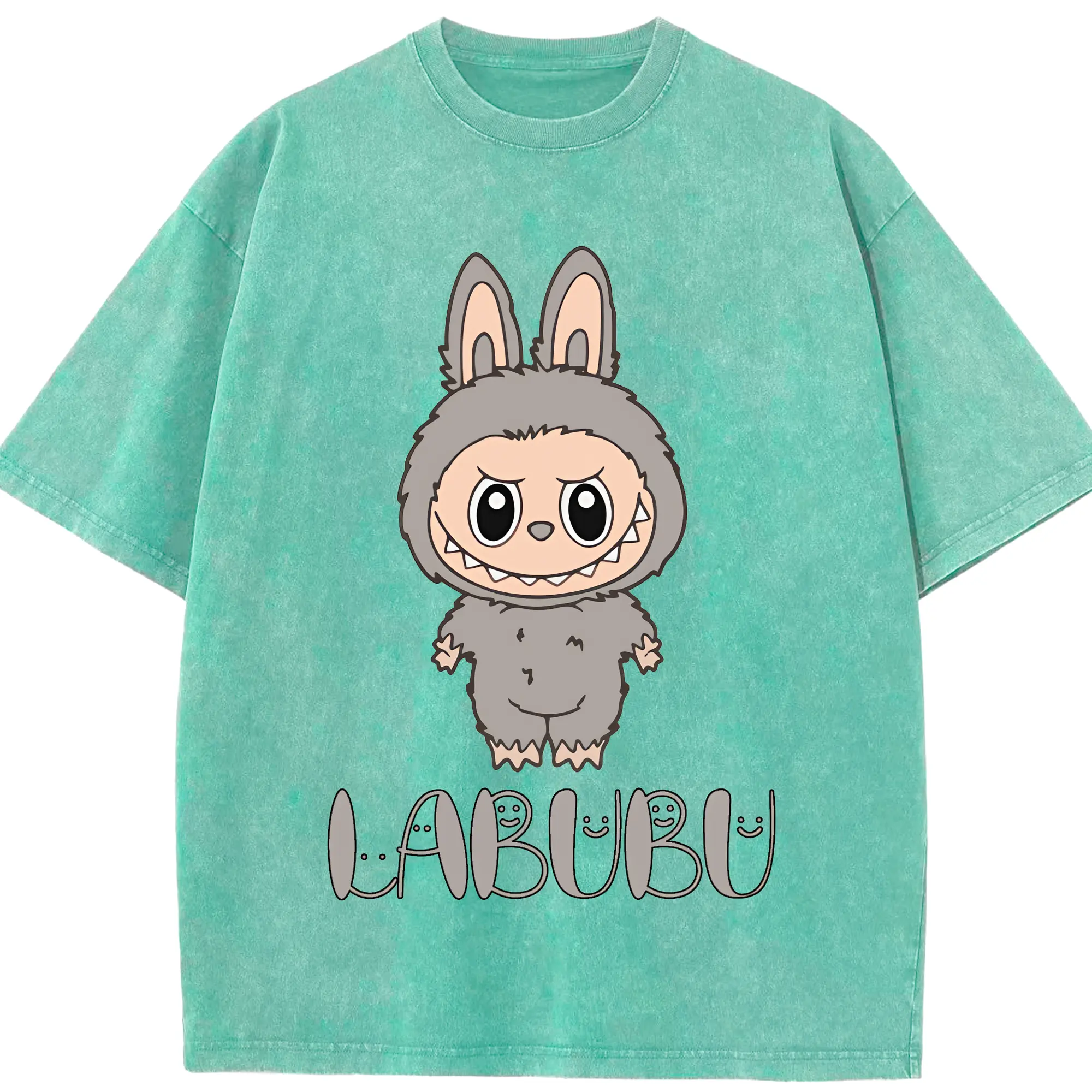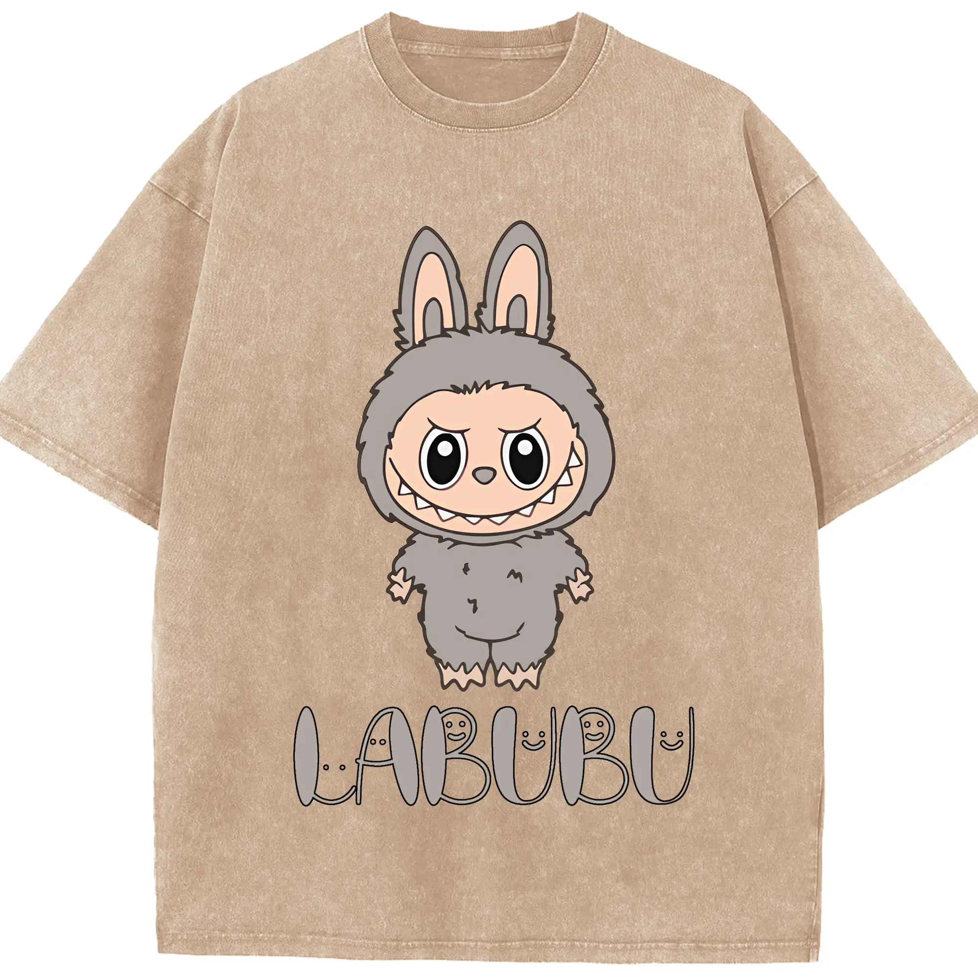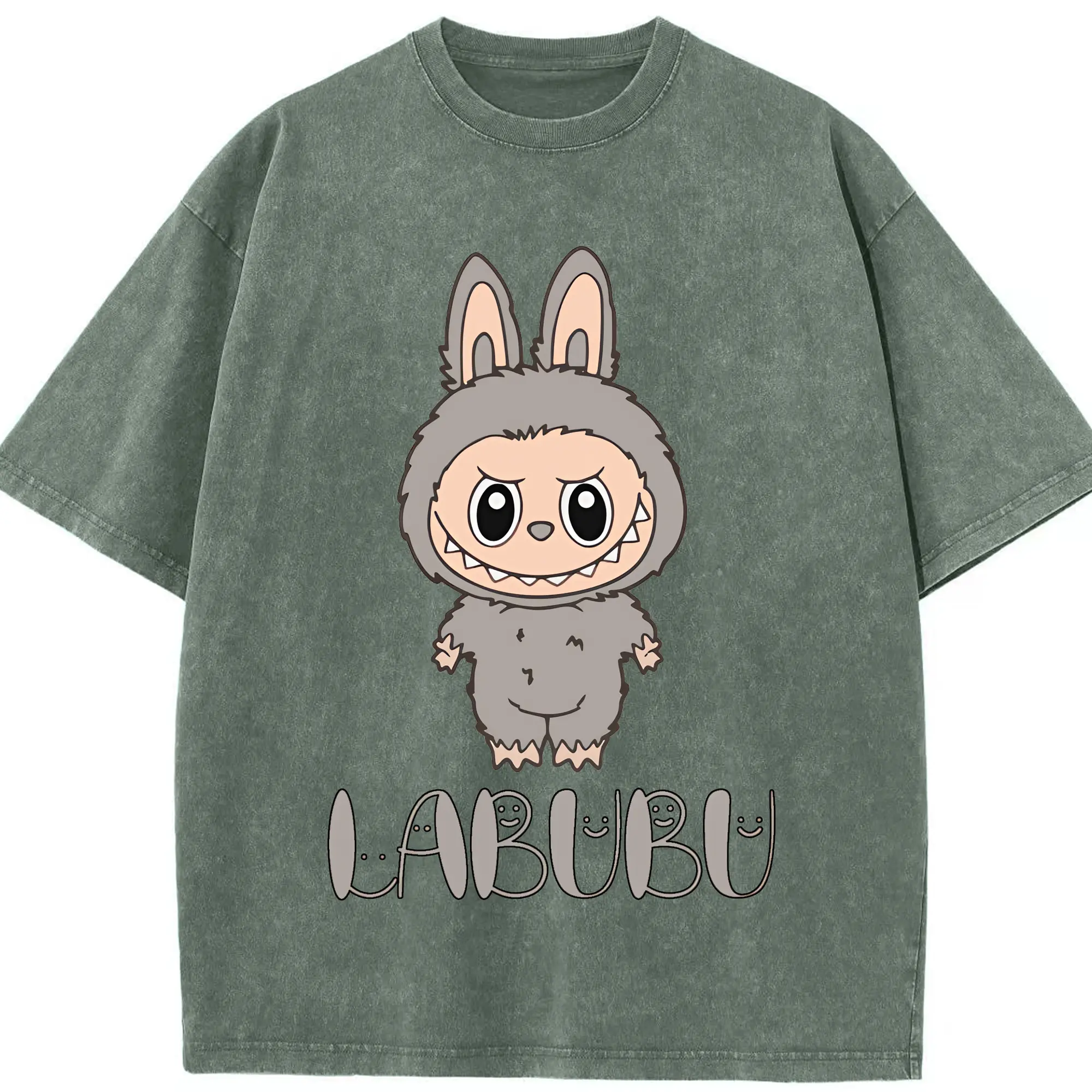 ラブブ グッズ ラブブ - 綿100% ヴィンテージ風 半袖Tシャツ ・ 背面プリント ・ 柔らか肌触り ・ 通気性 快適 ・ スポーツ カジュアル 外出用