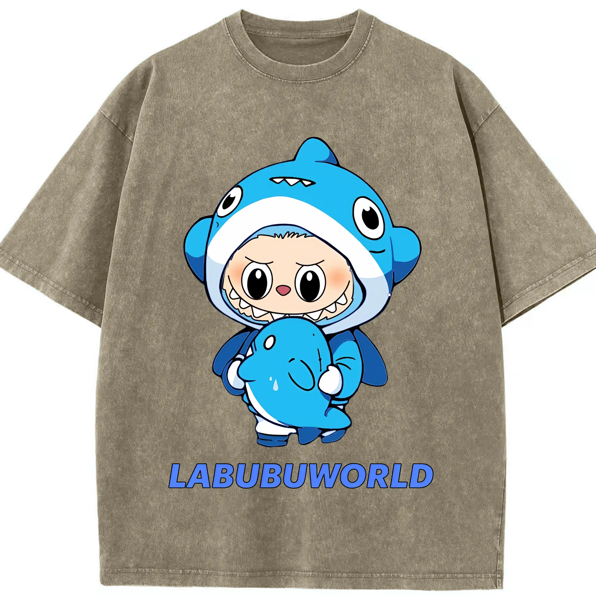ラブブ グッズ ラブブ - 綿100% ヴィンテージ風 半袖Tシャツ ・ 背面プリント ・ 柔らか肌触り ・ 通気性 快適 ・ スポーツ カジュアル 外出用