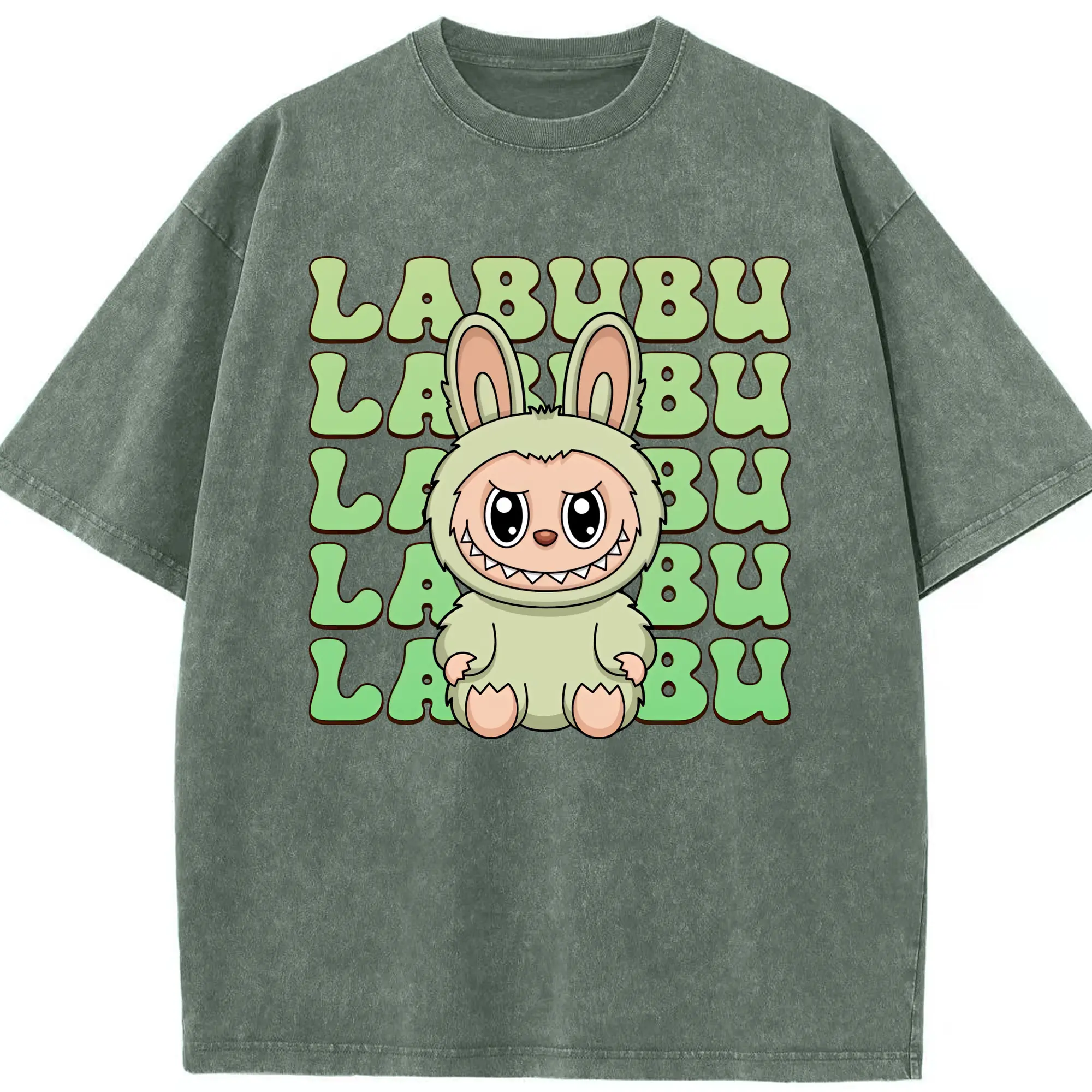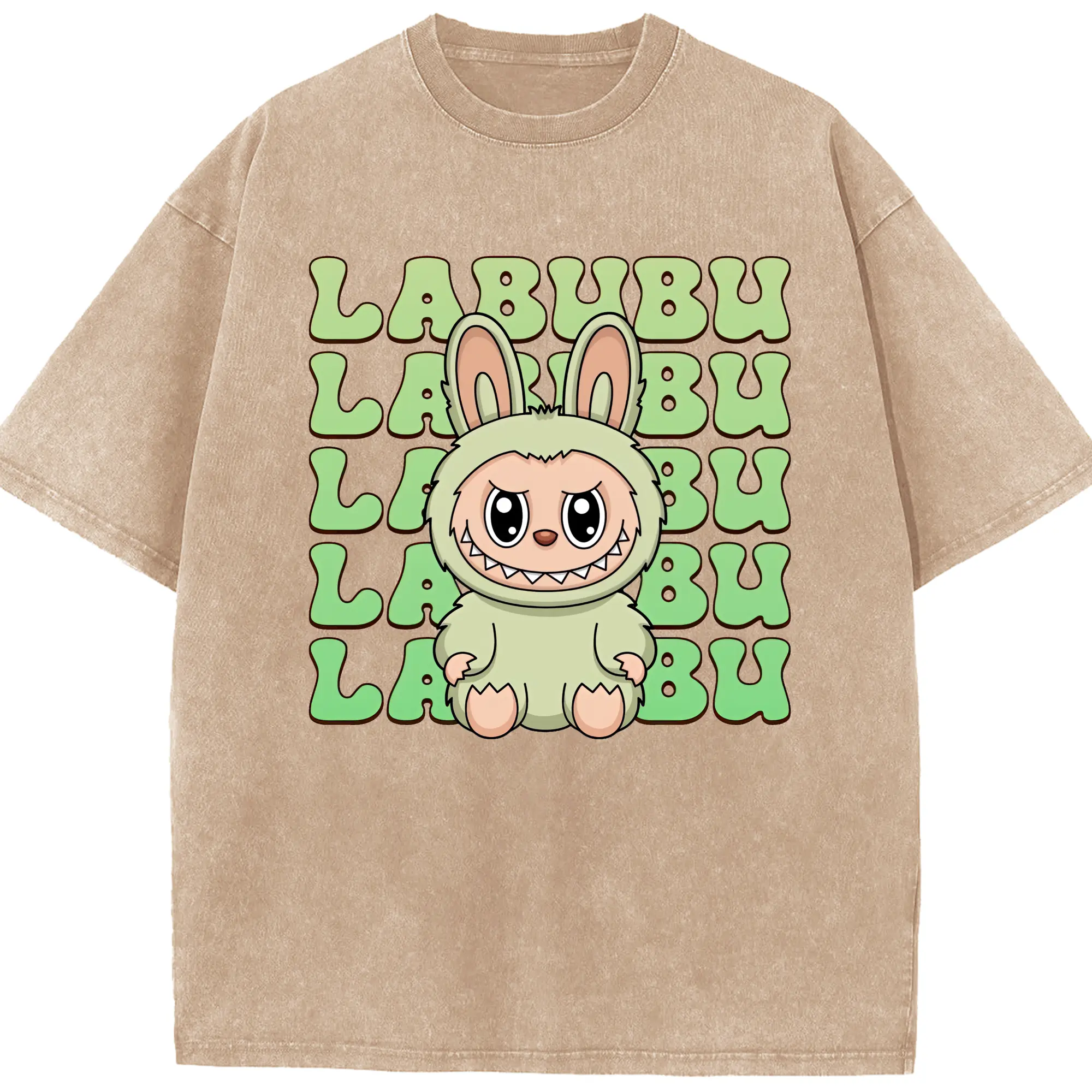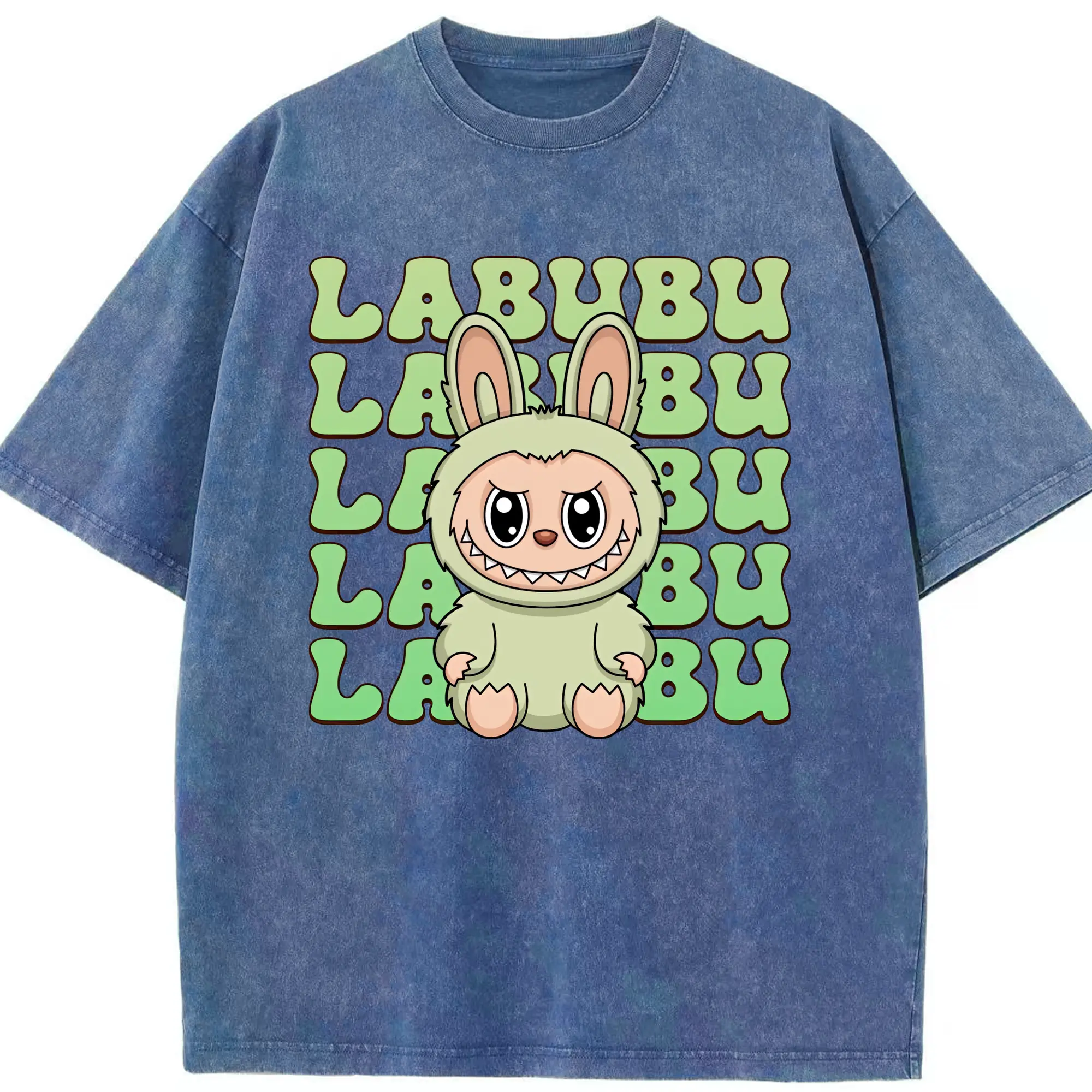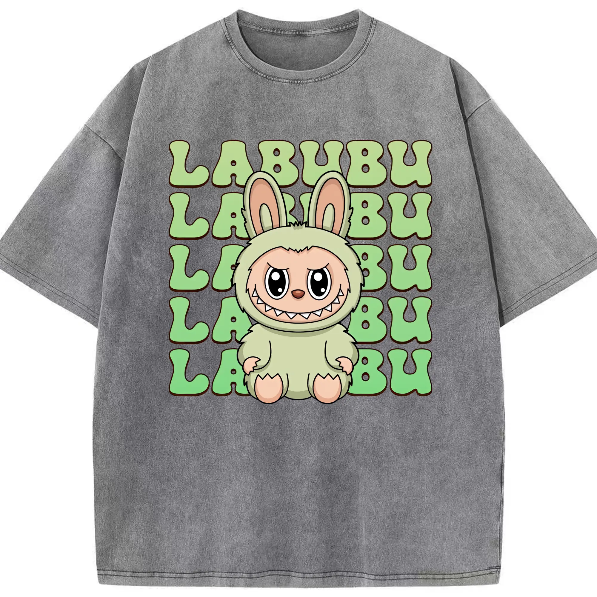 ラブブ グッズ ラブブ - 綿100% ヴィンテージ風 半袖Tシャツ ・ フロントプリント ・ 柔らか肌触り ・ 通気性 快適 ・ スポーツ カジュアル 外出用