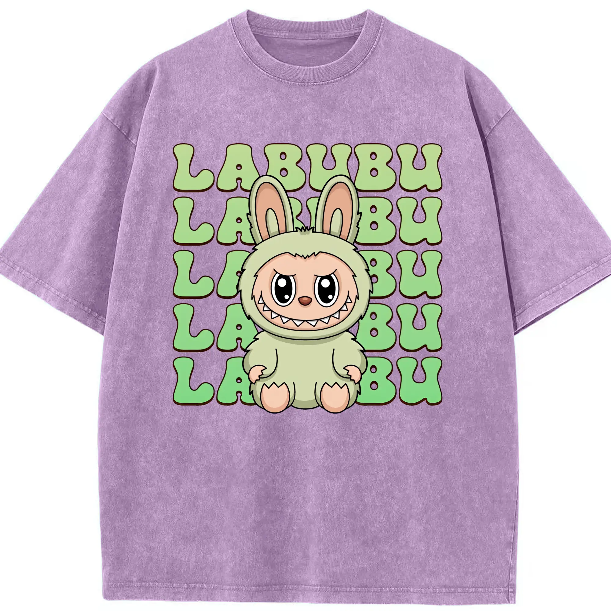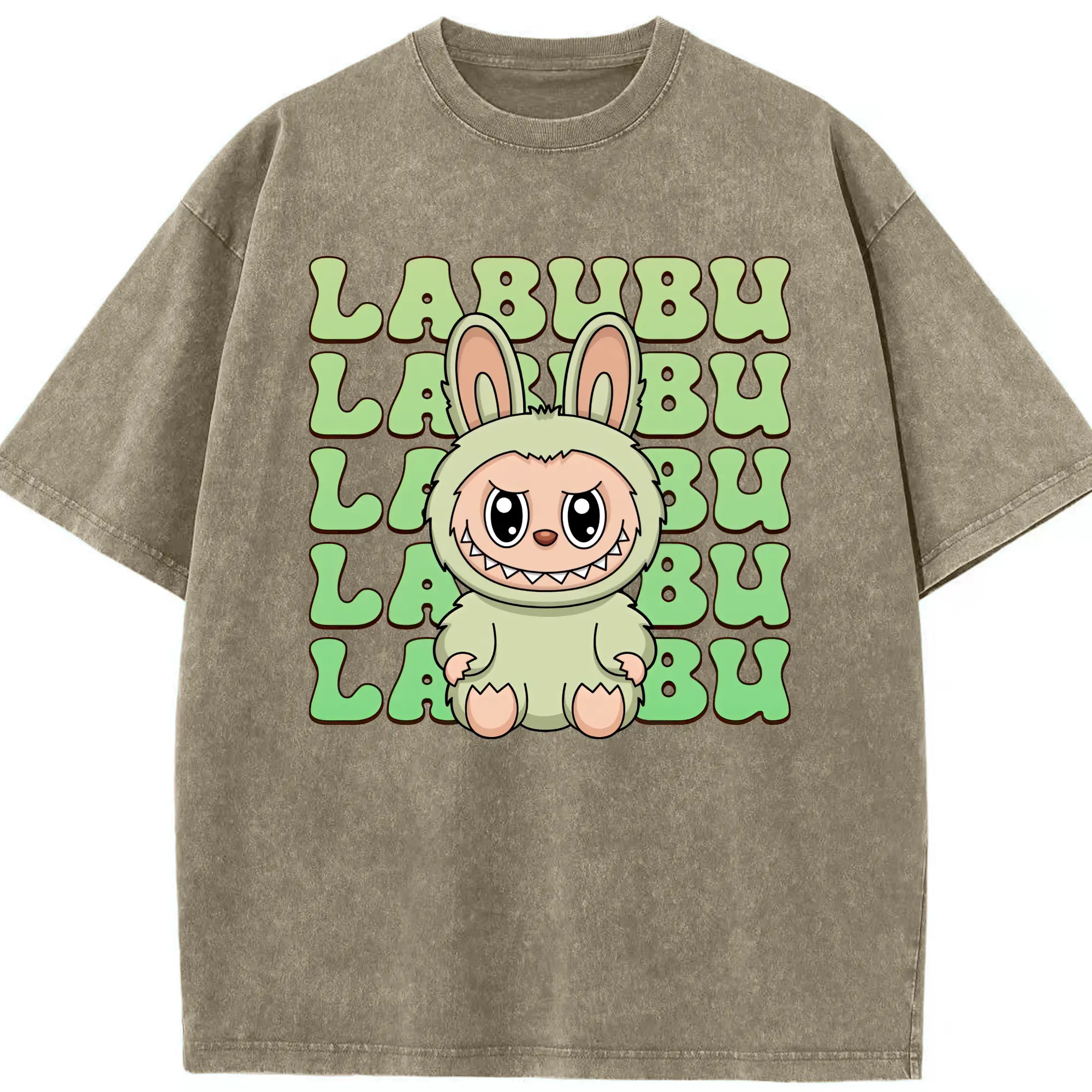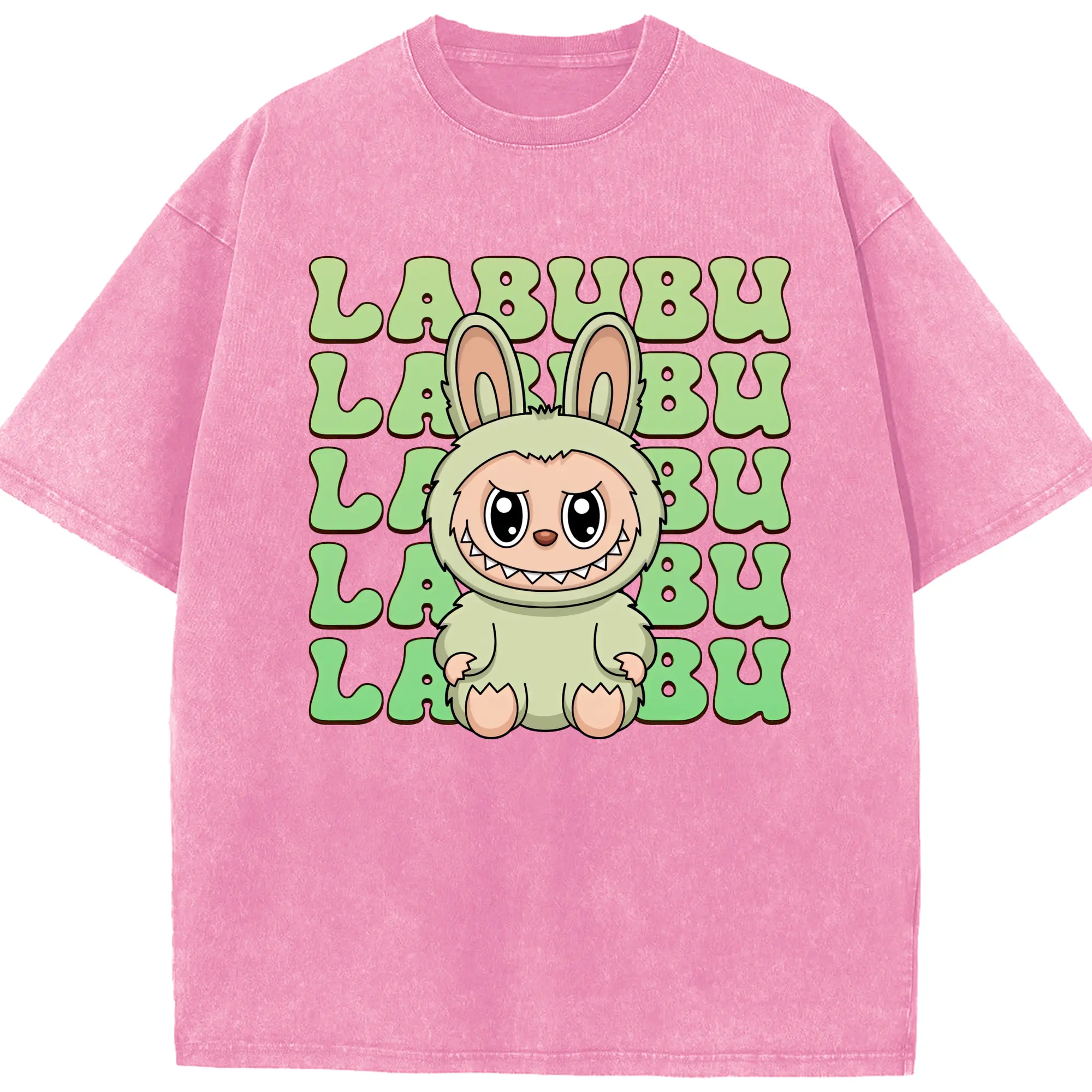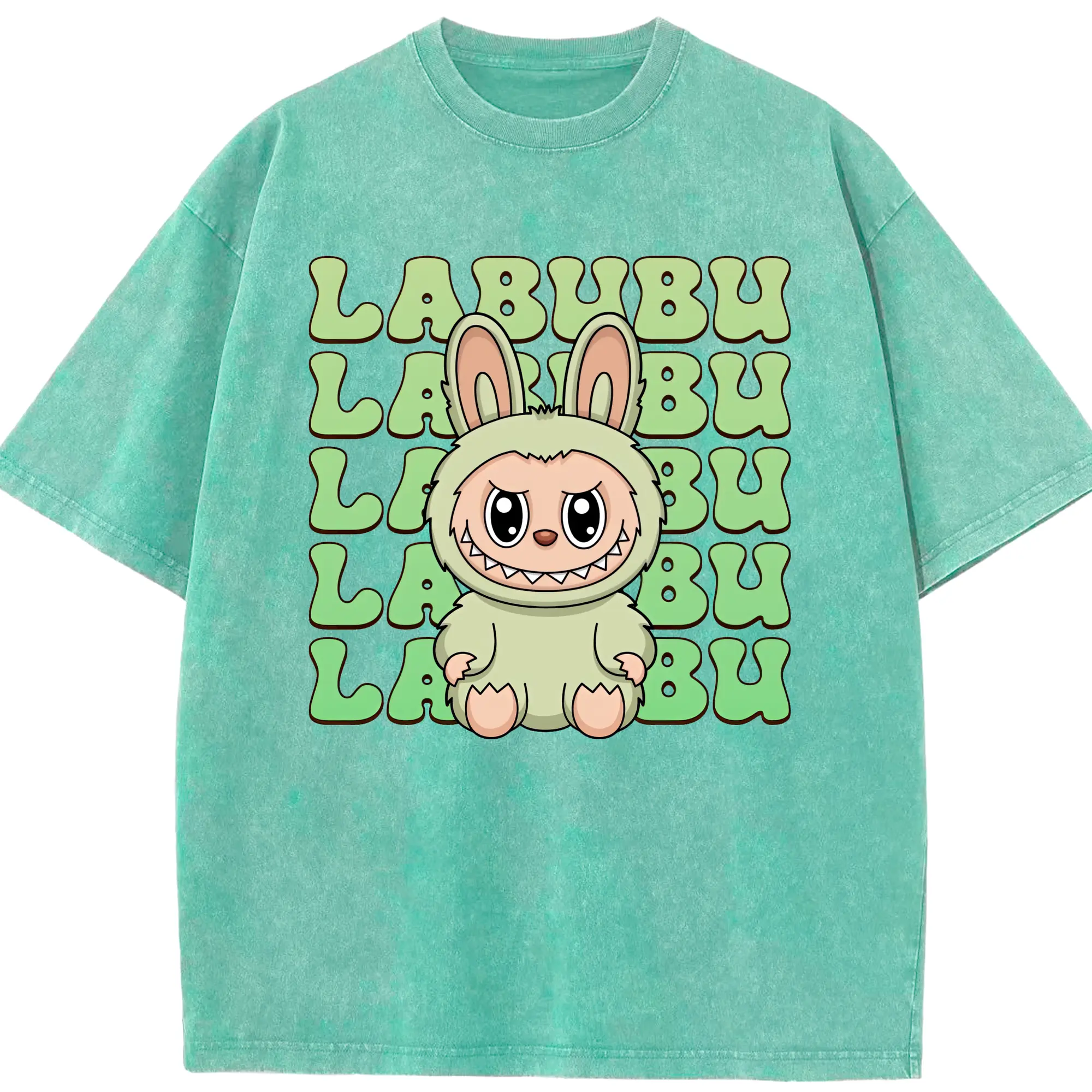 ラブブ グッズ ラブブ - 綿100% ヴィンテージ風 半袖Tシャツ ・ フロントプリント ・ 柔らか肌触り ・ 通気性 快適 ・ スポーツ カジュアル 外出用