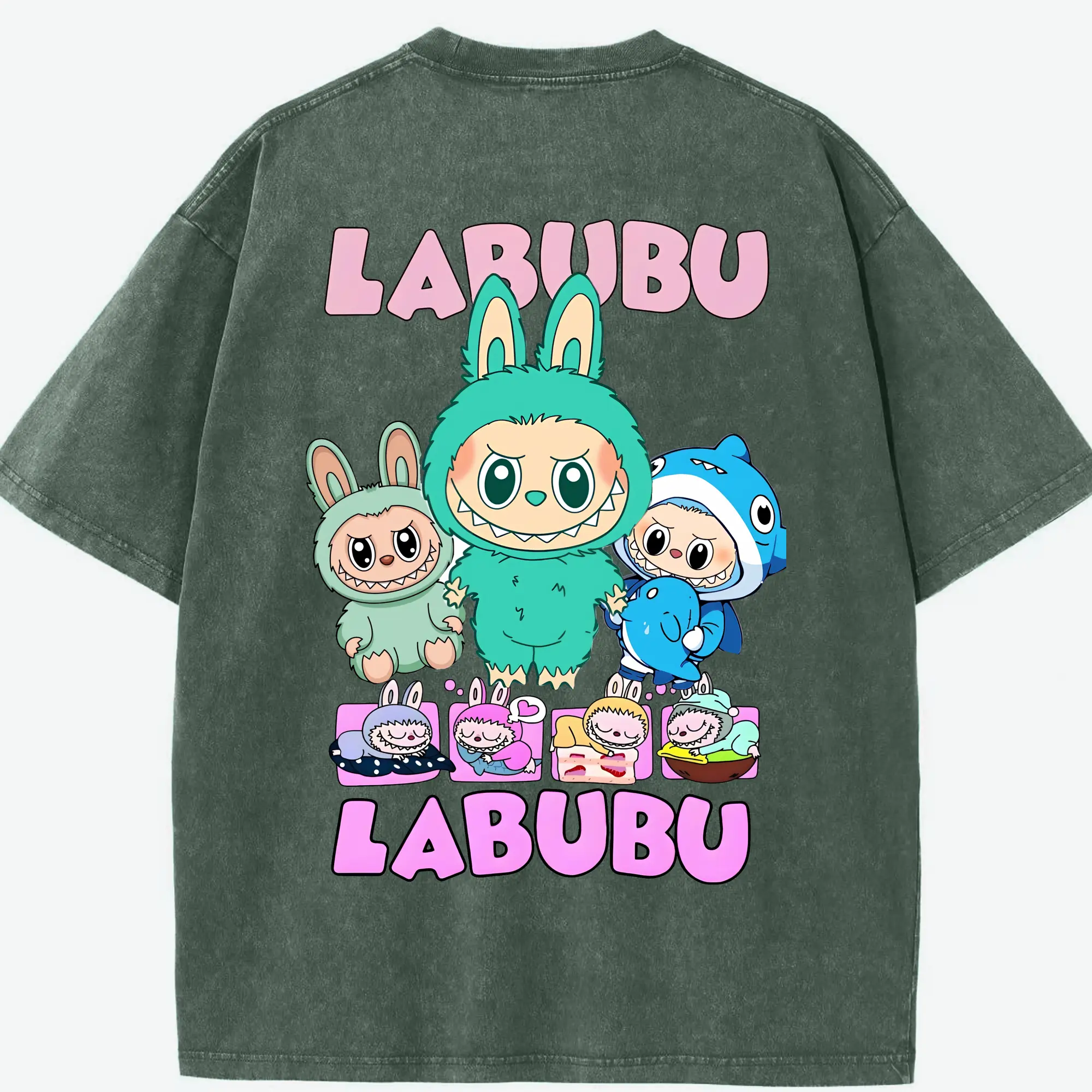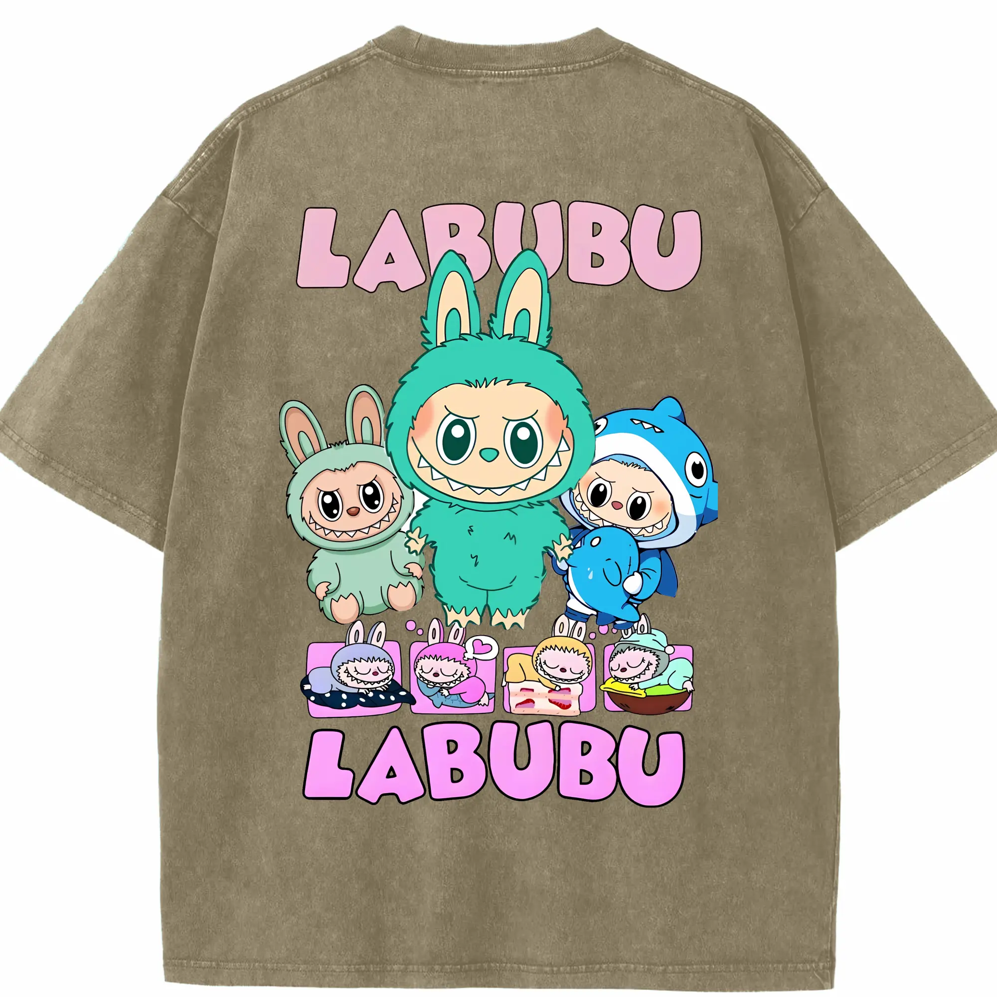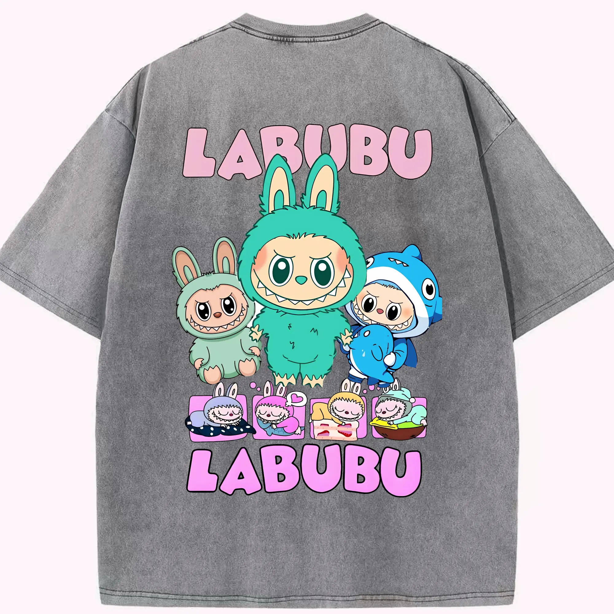 ラブブ グッズ ラブブ - 綿100% ヴィンテージ風 半袖Tシャツ ・ フロントプリント ・ 柔らか肌触り ・ 通気性 快適 ・ スポーツ カジュアル 外出用