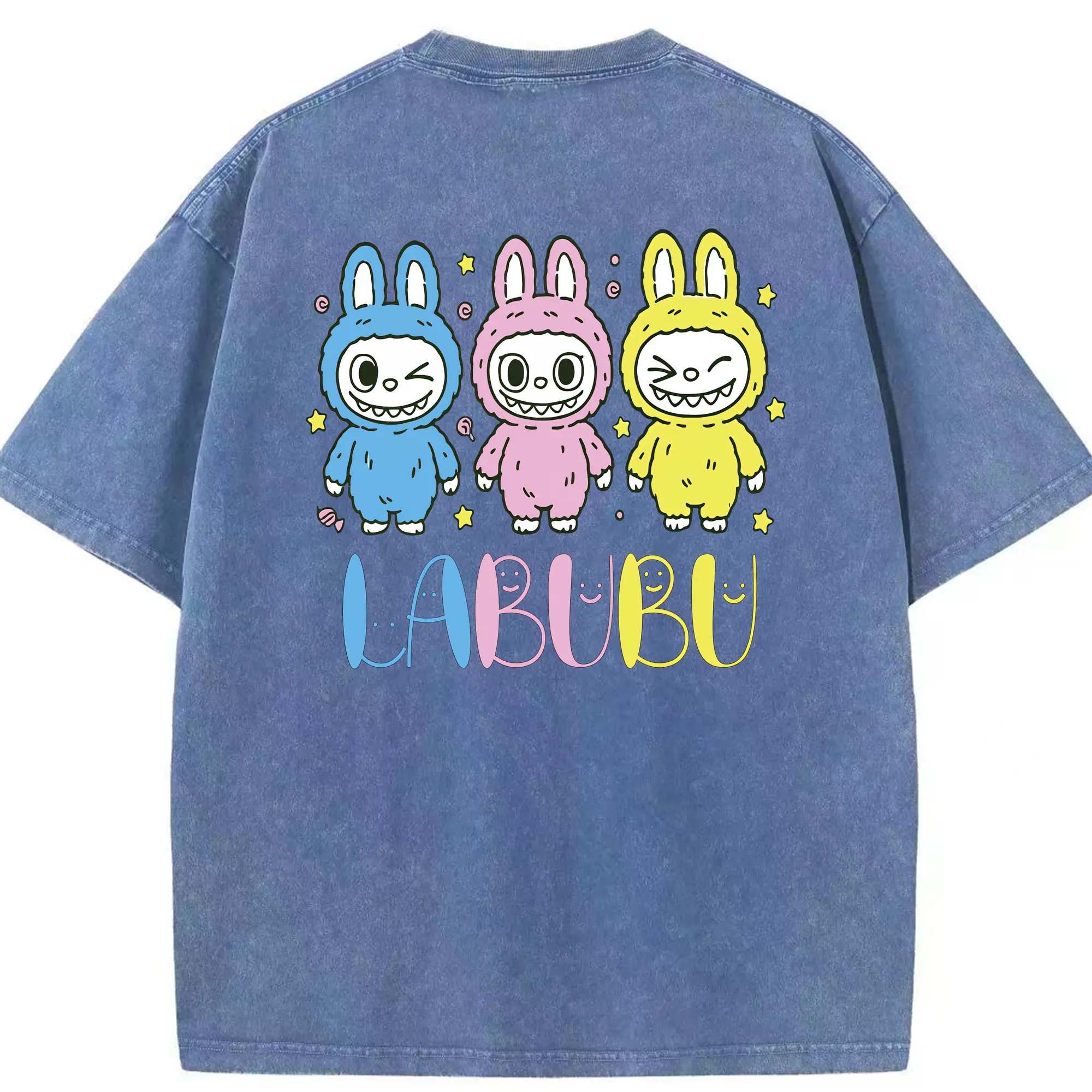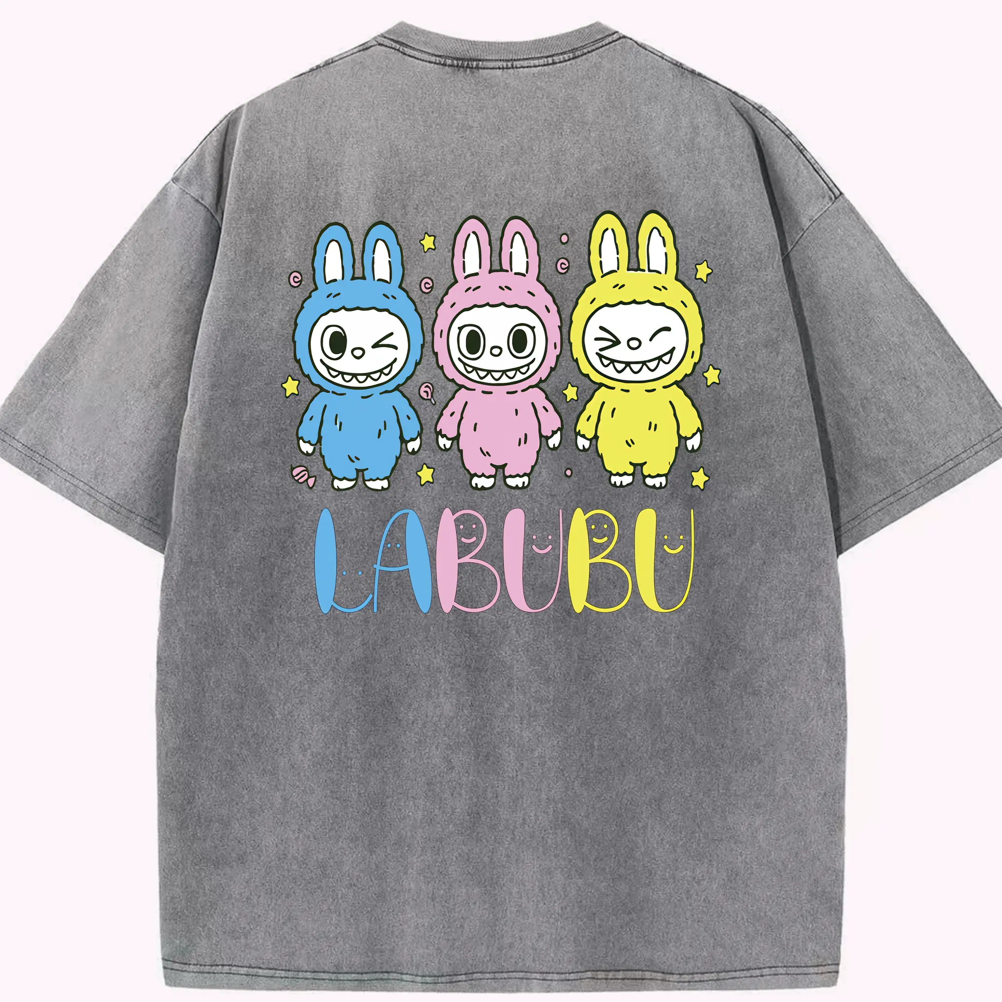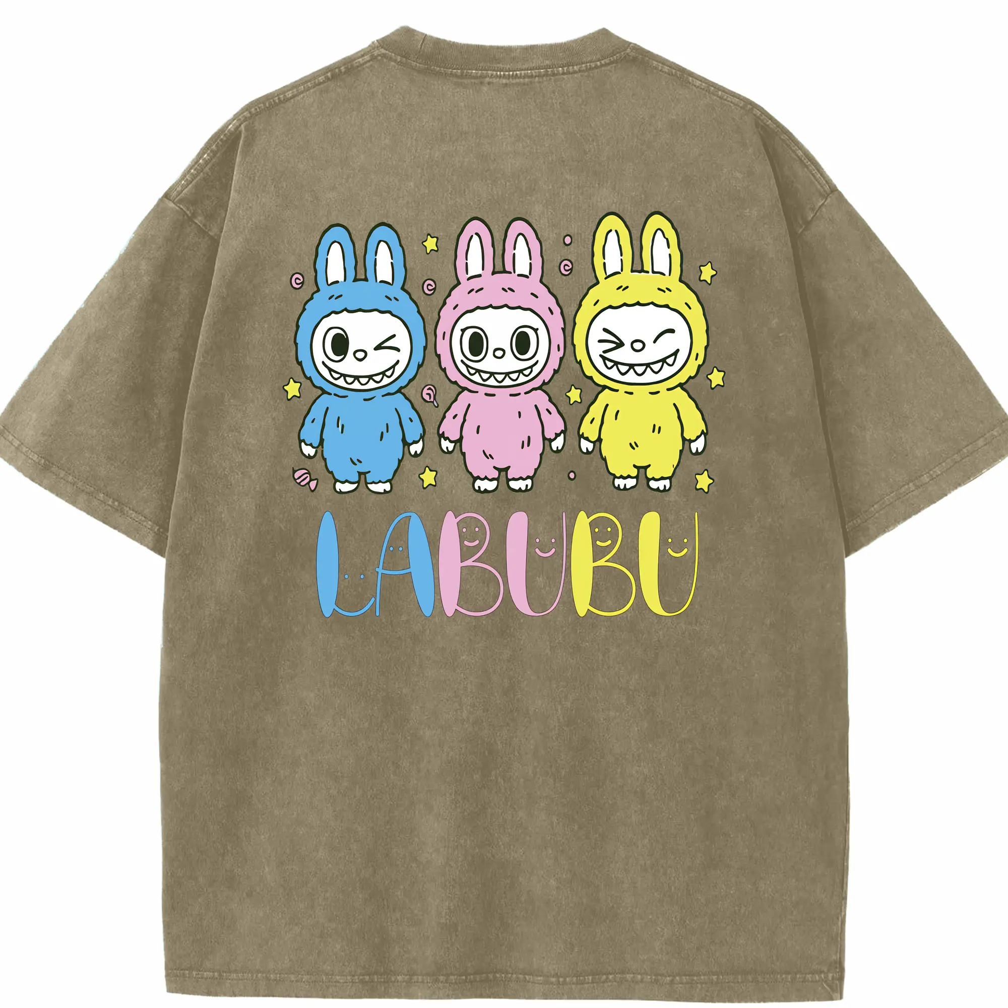 ラブブ グッズ ラブブ - 綿100% ヴィンテージ風 半袖Tシャツ ・ フロントプリント ・ 柔らか肌触り ・ 通気性 快適 ・ スポーツ カジュアル 外出用