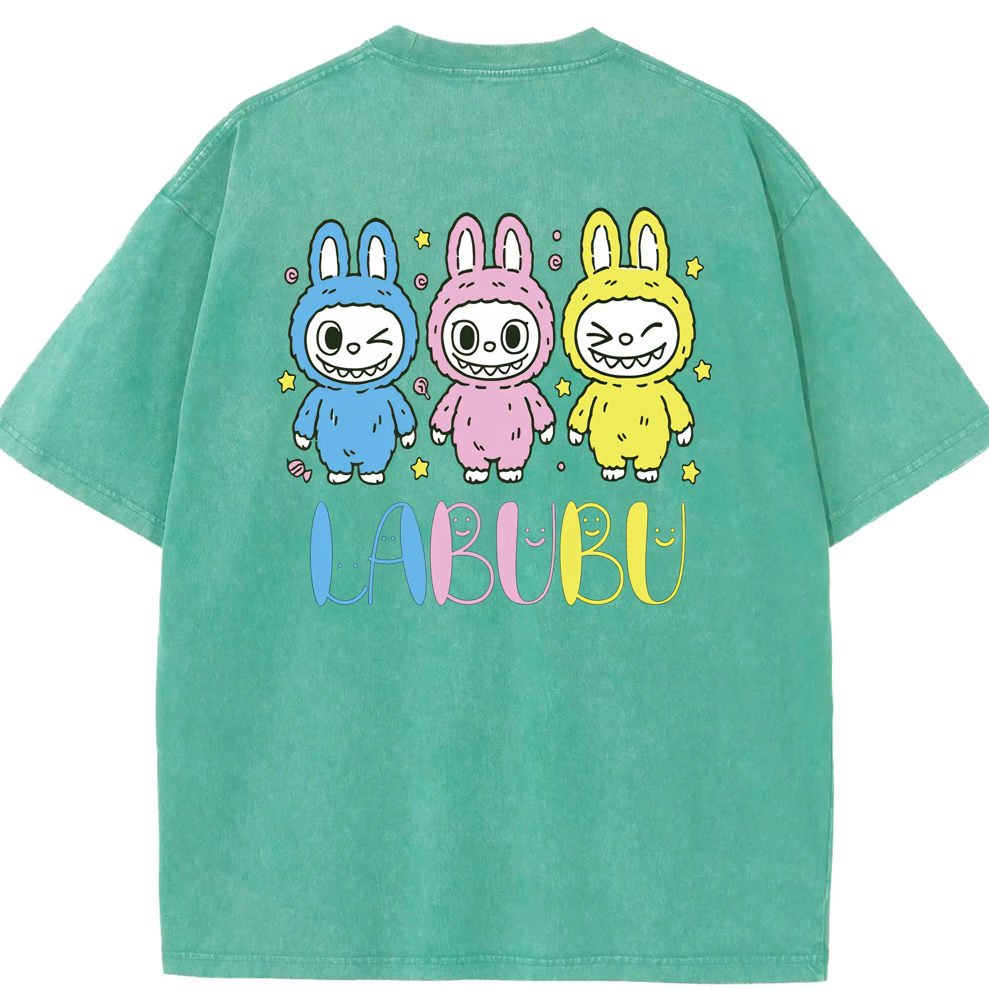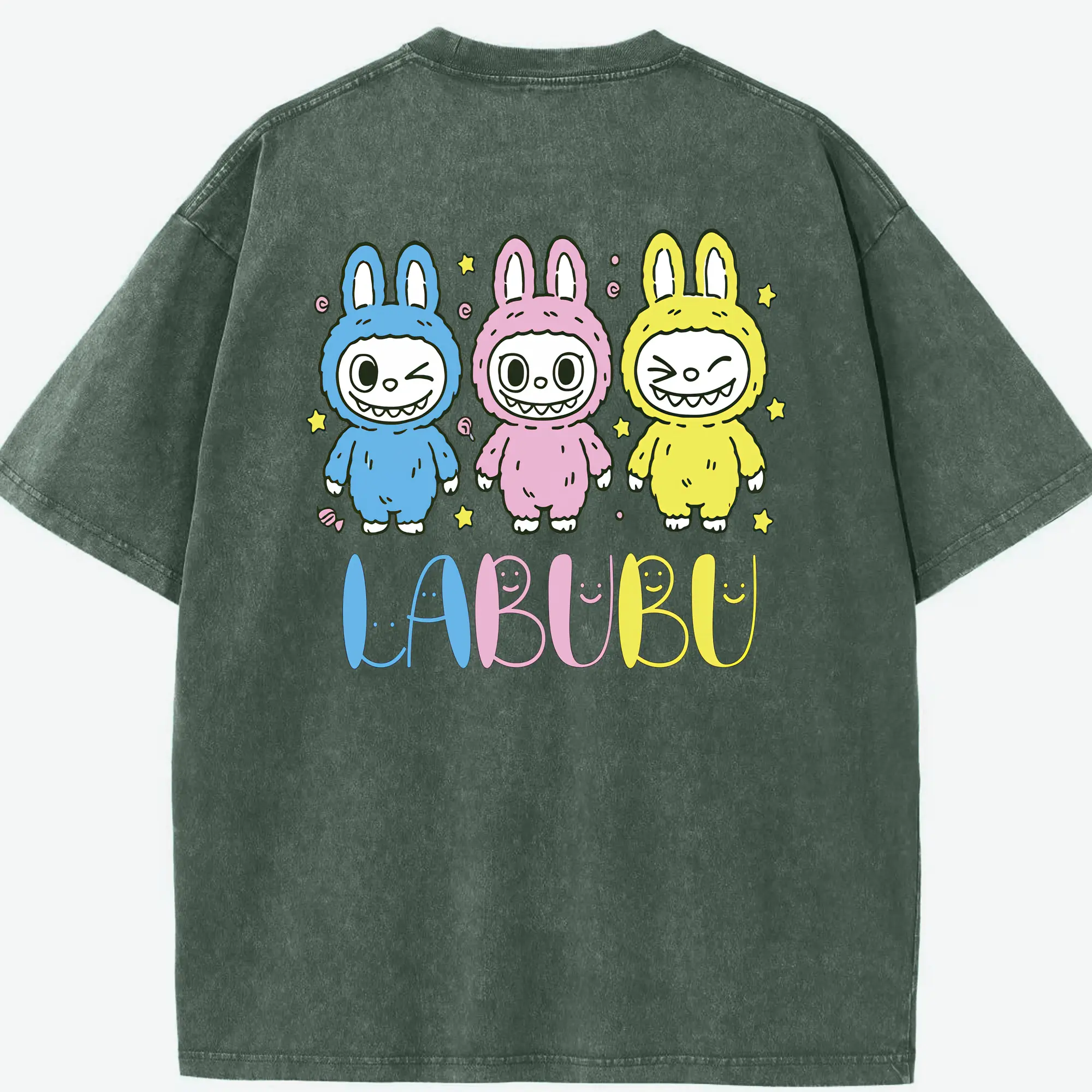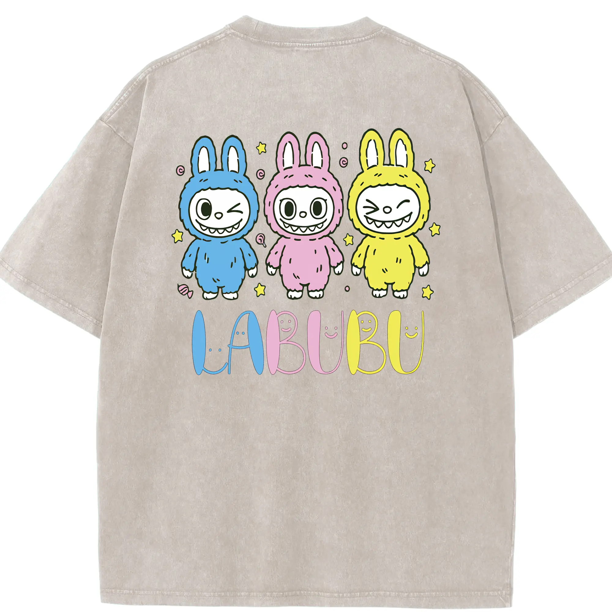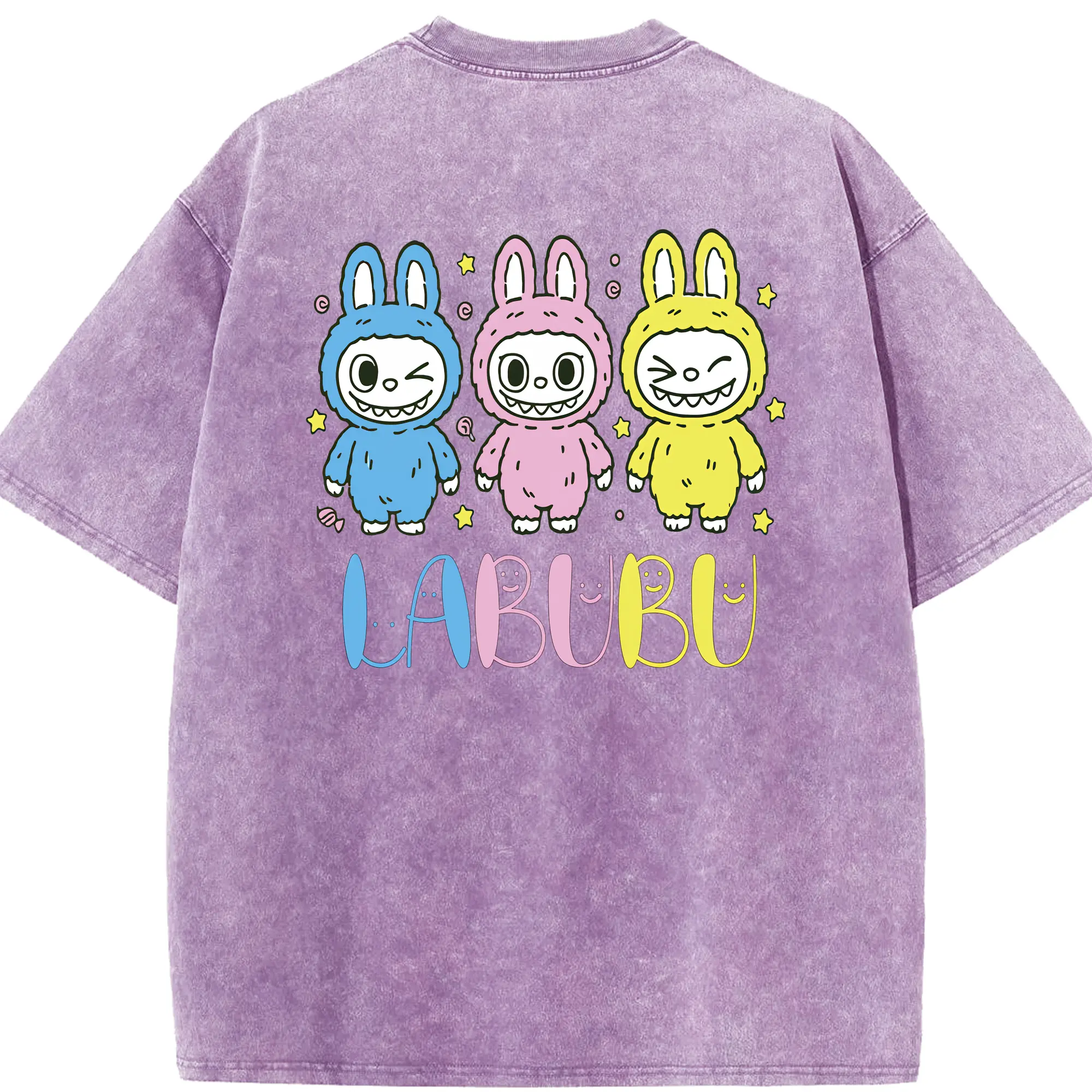 ラブブ グッズ ラブブ - 綿100% ヴィンテージ風 半袖Tシャツ ・ フロントプリント ・ 柔らか肌触り ・ 通気性 快適 ・ スポーツ カジュアル 外出用