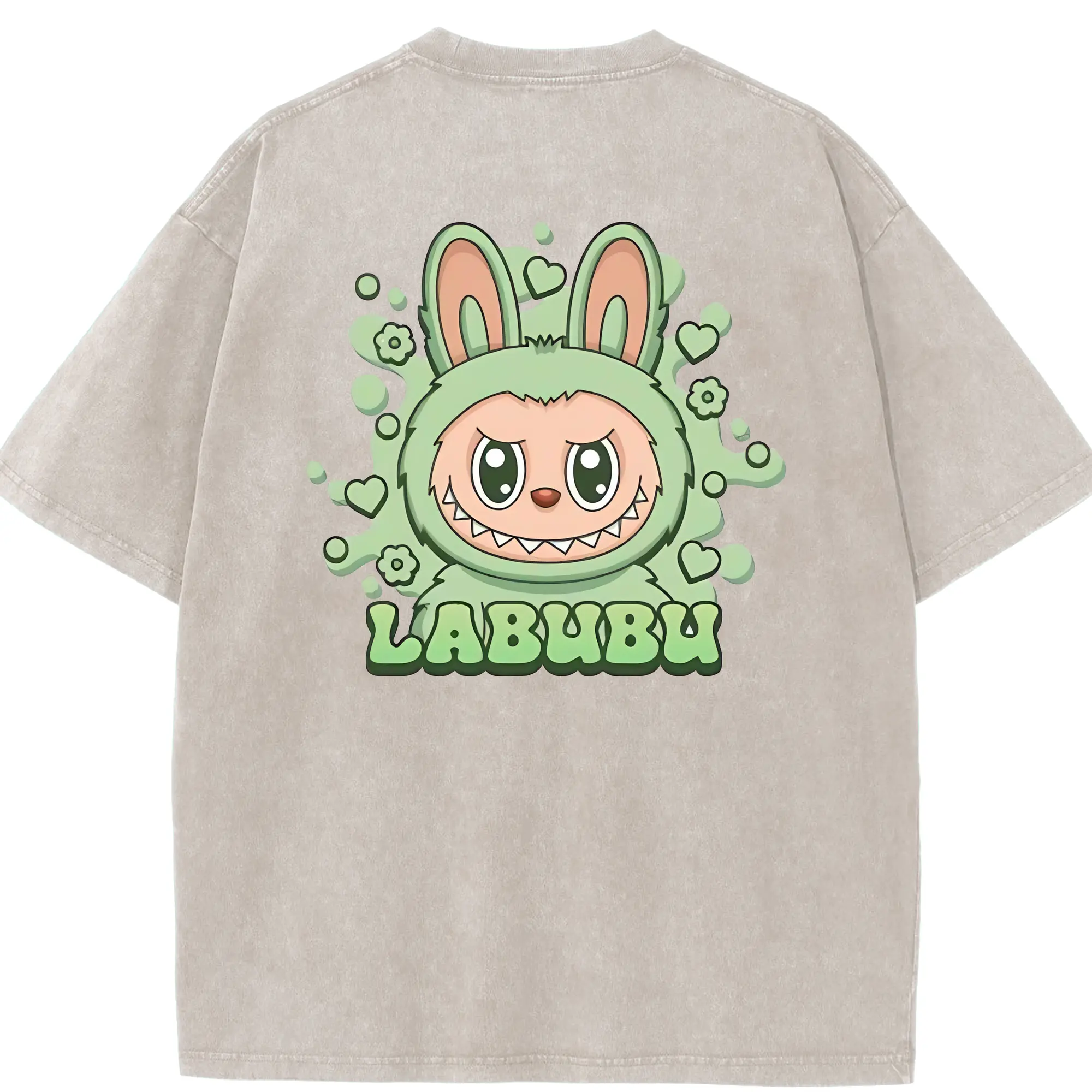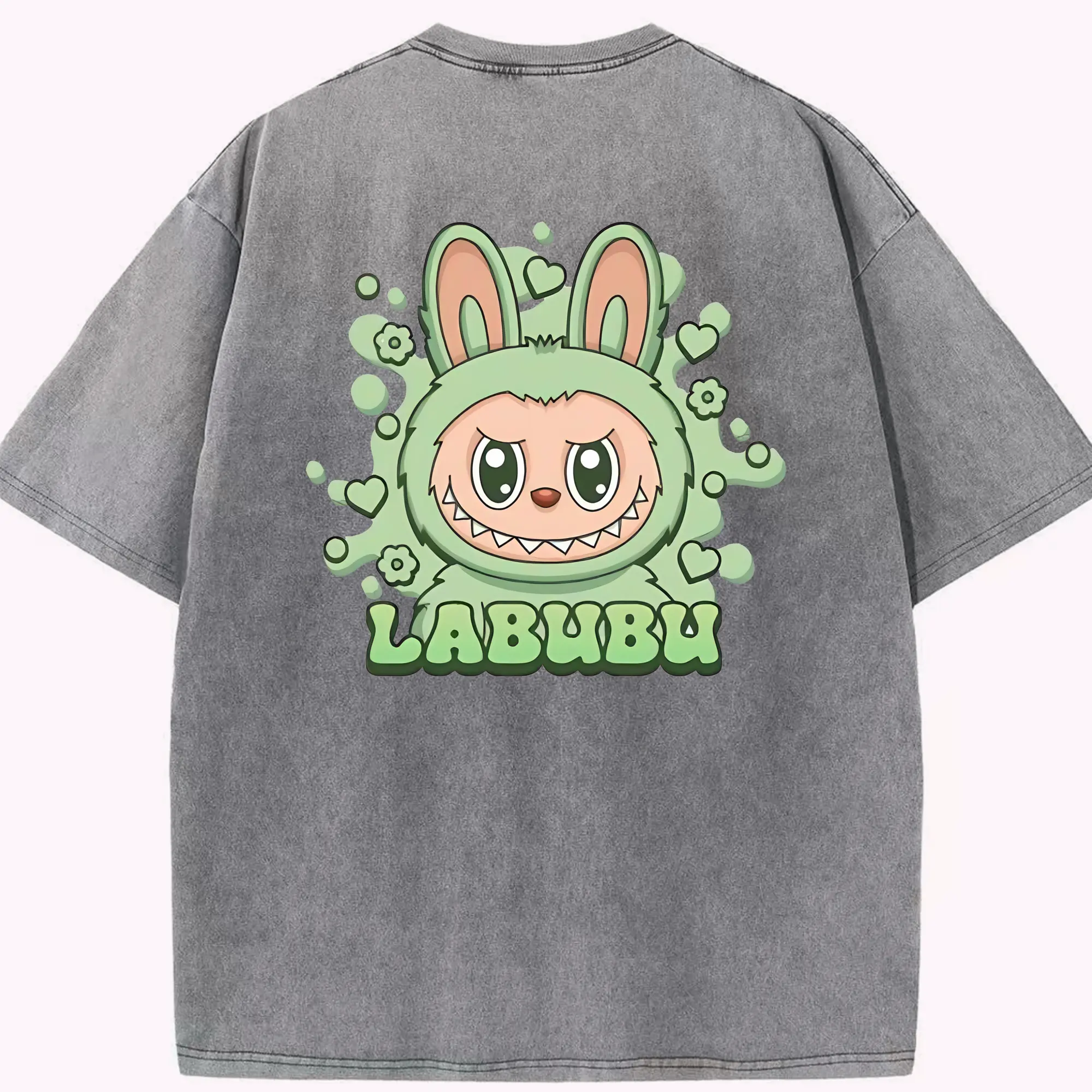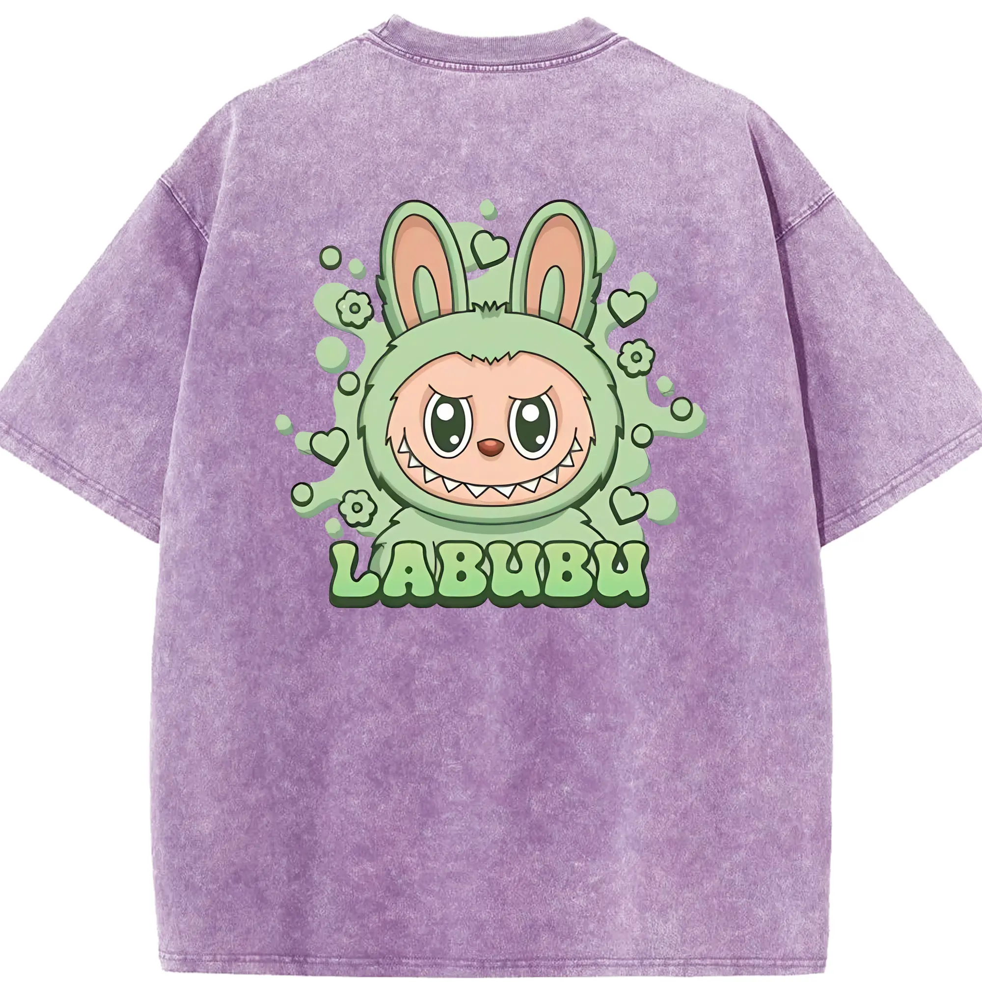 ラブブ グッズ ラブブ - 綿100% ヴィンテージ風 半袖Tシャツ ・ フロントプリント ・ 柔らか肌触り ・ 通気性 快適 ・ スポーツ カジュアル 外出用