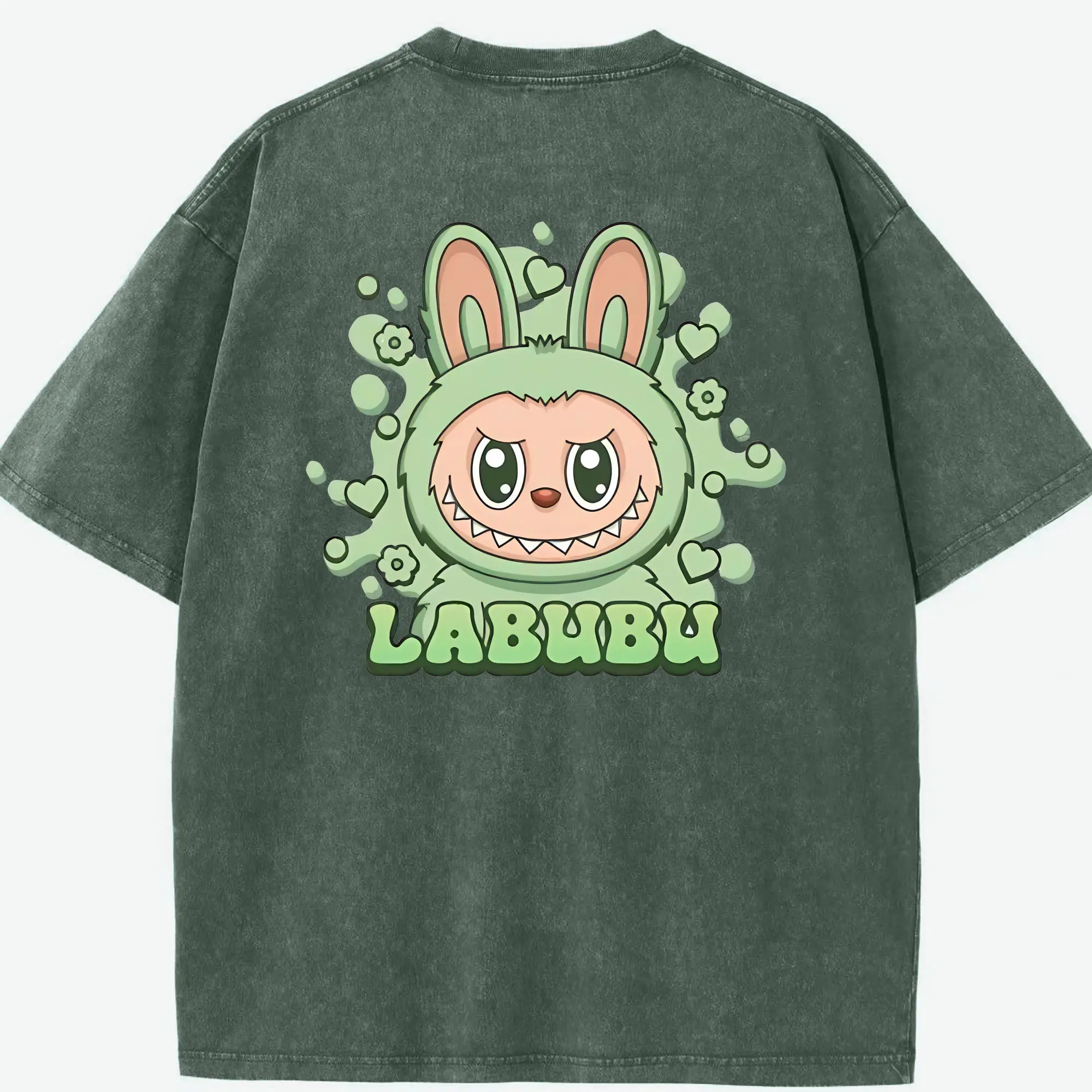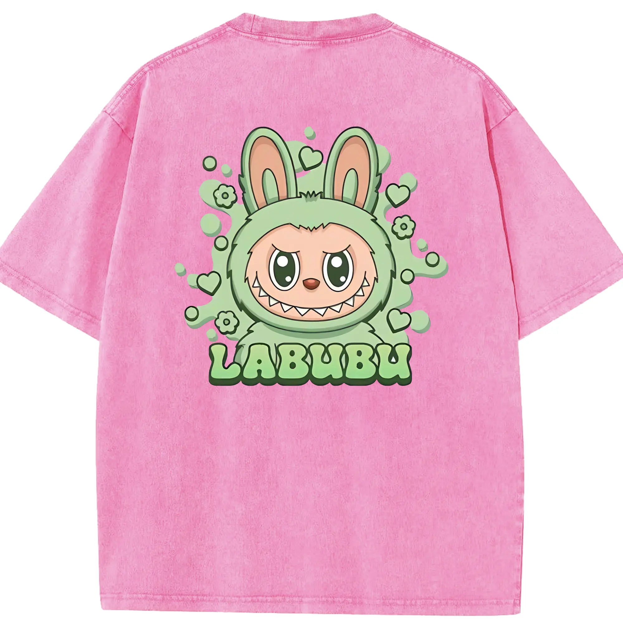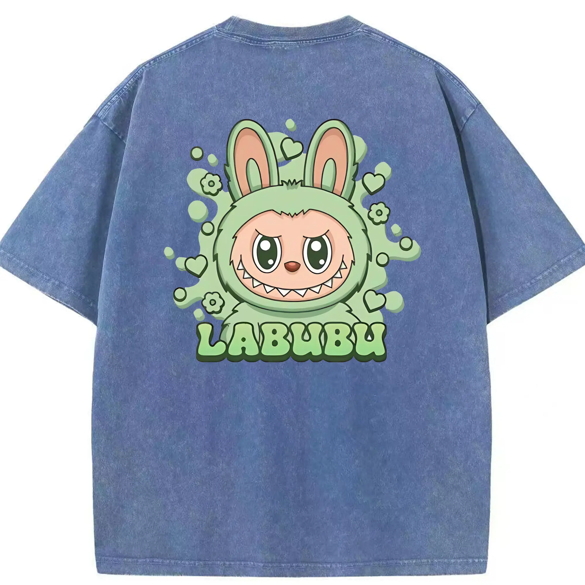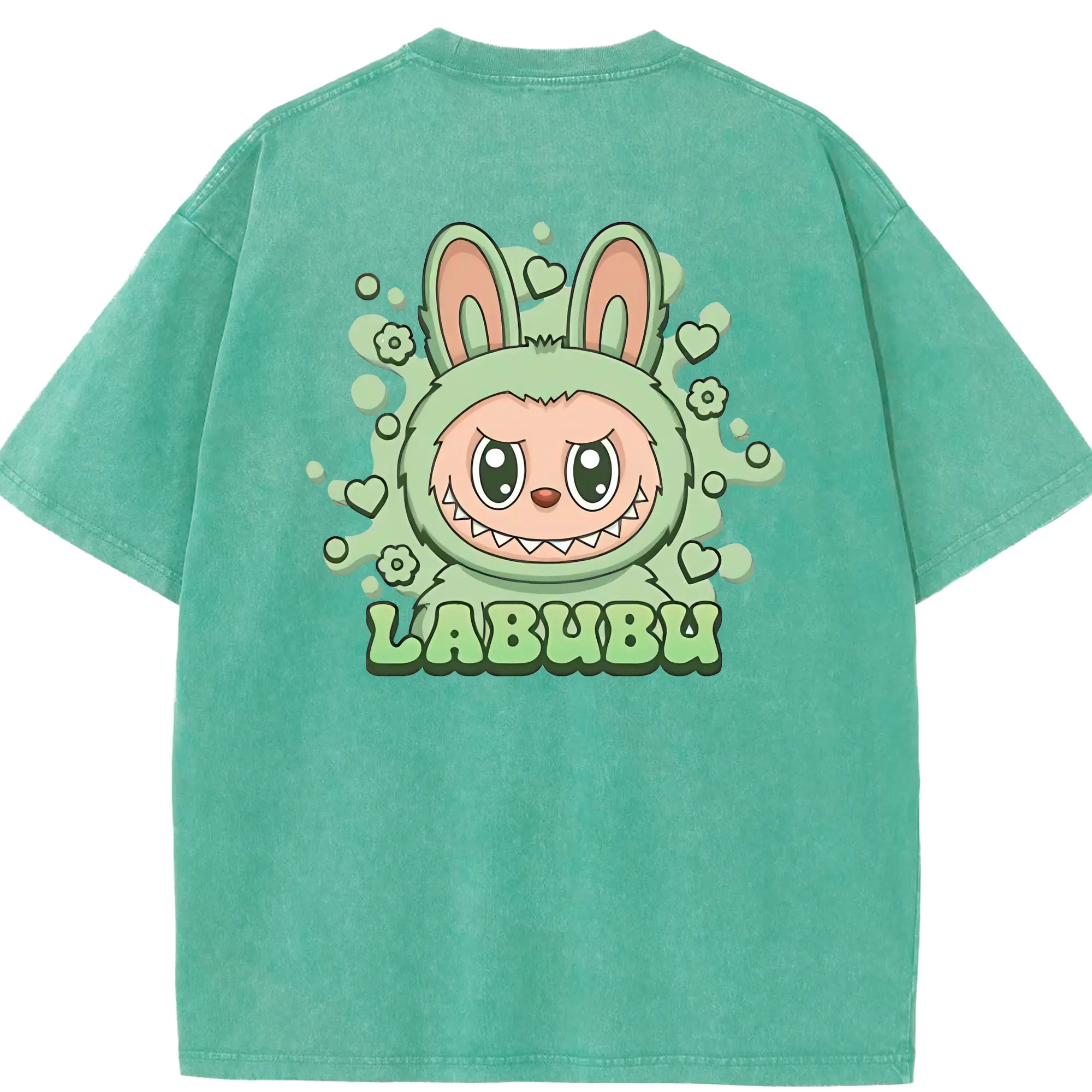 ラブブ グッズ ラブブ - 綿100% ヴィンテージ風 半袖Tシャツ ・ フロントプリント ・ 柔らか肌触り ・ 通気性 快適 ・ スポーツ カジュアル 外出用