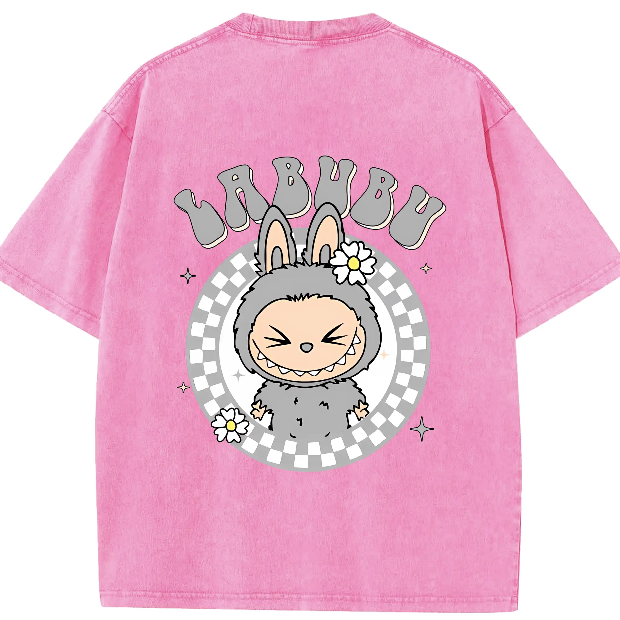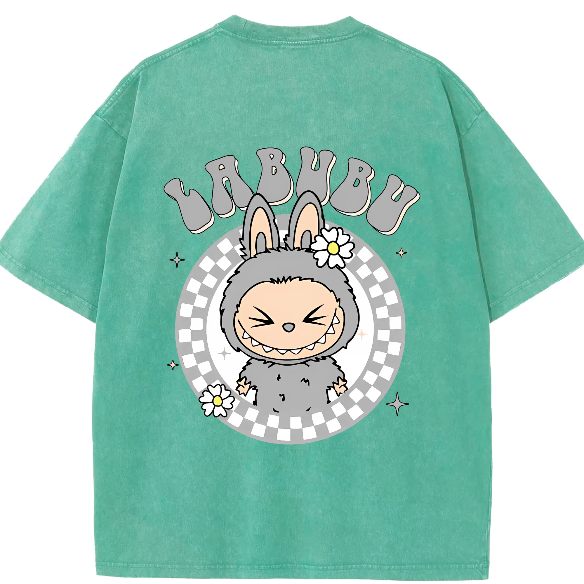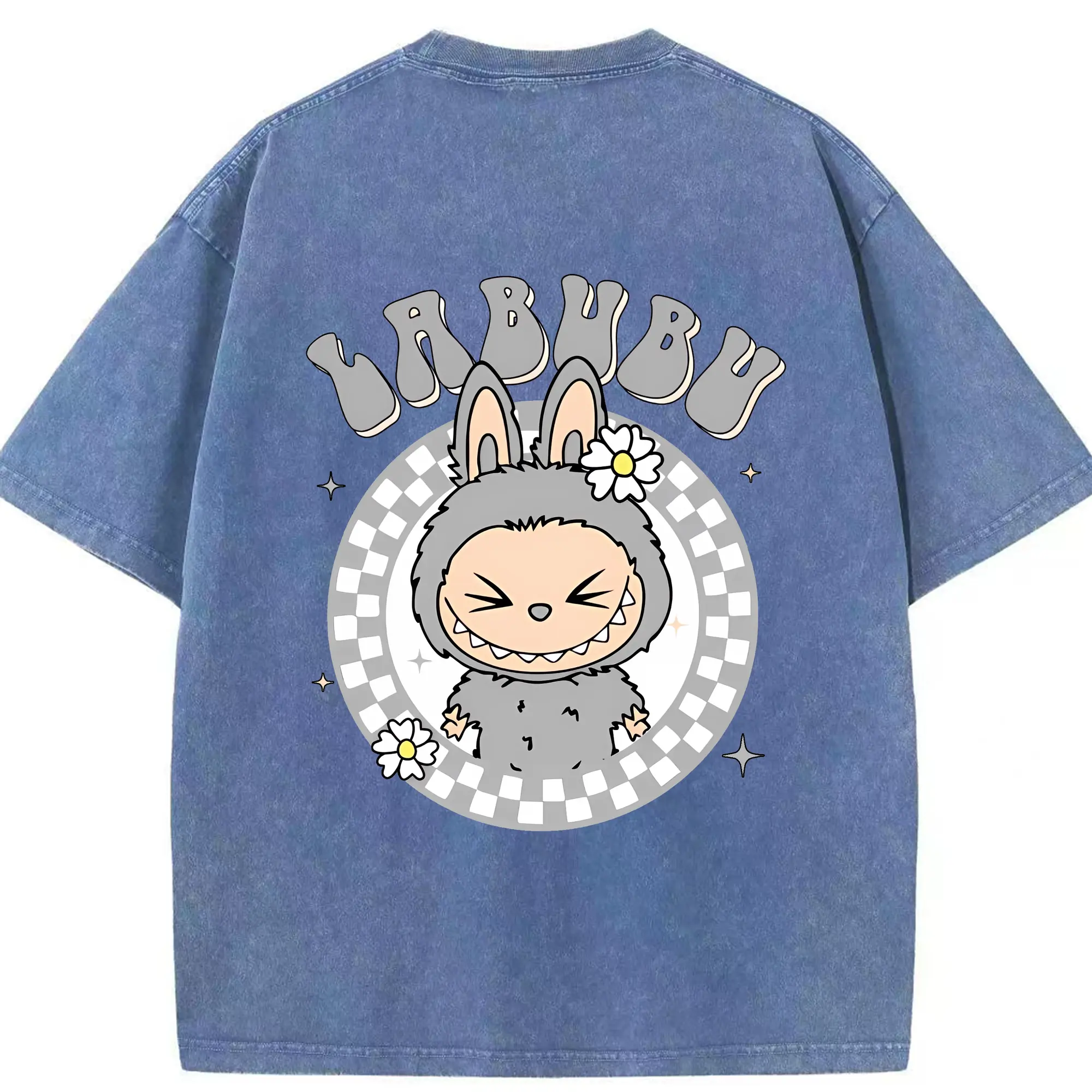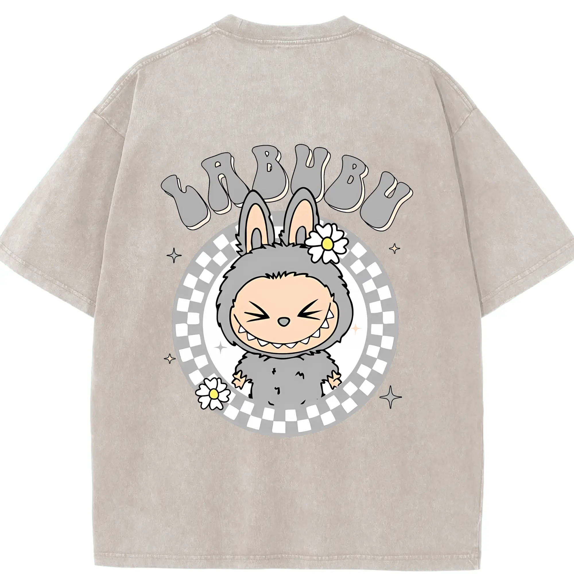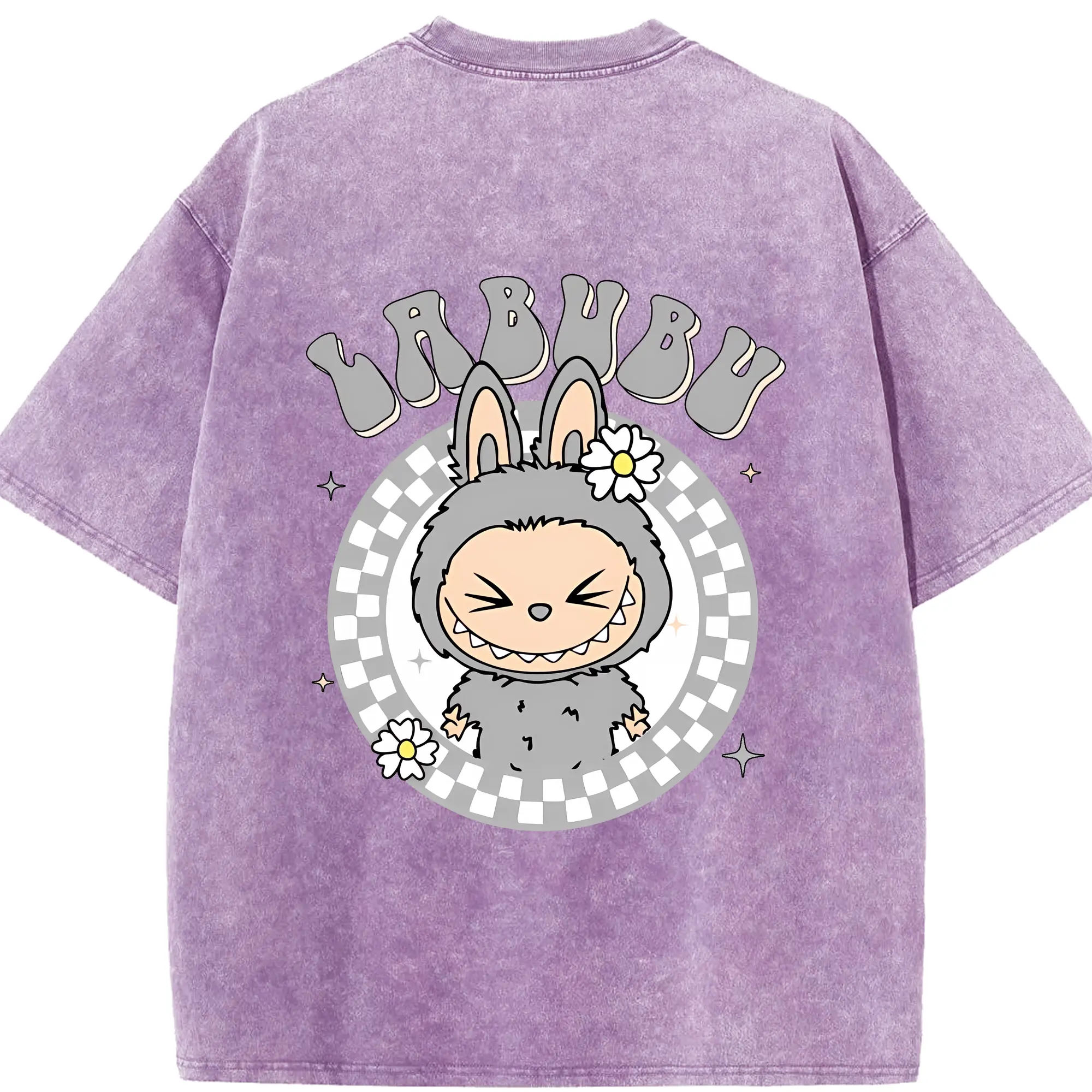 ラブブ グッズ ラブブ - 綿100% ヴィンテージ風 半袖Tシャツ ・ フロントプリント ・ 柔らか肌触り ・ 通気性 快適 ・ スポーツ カジュアル 外出用