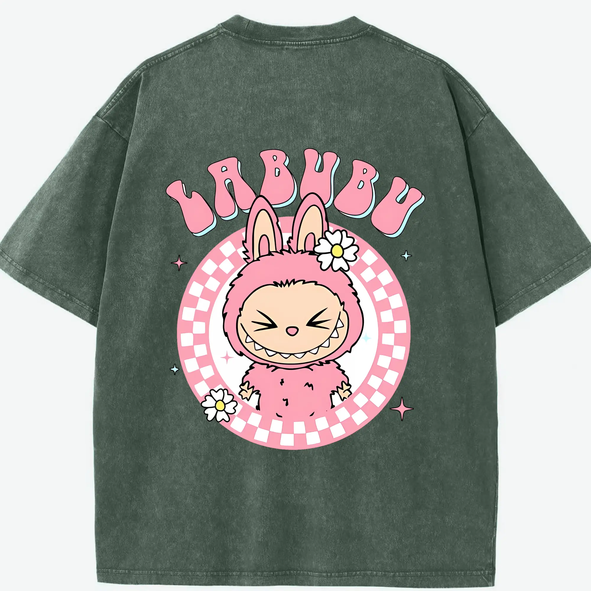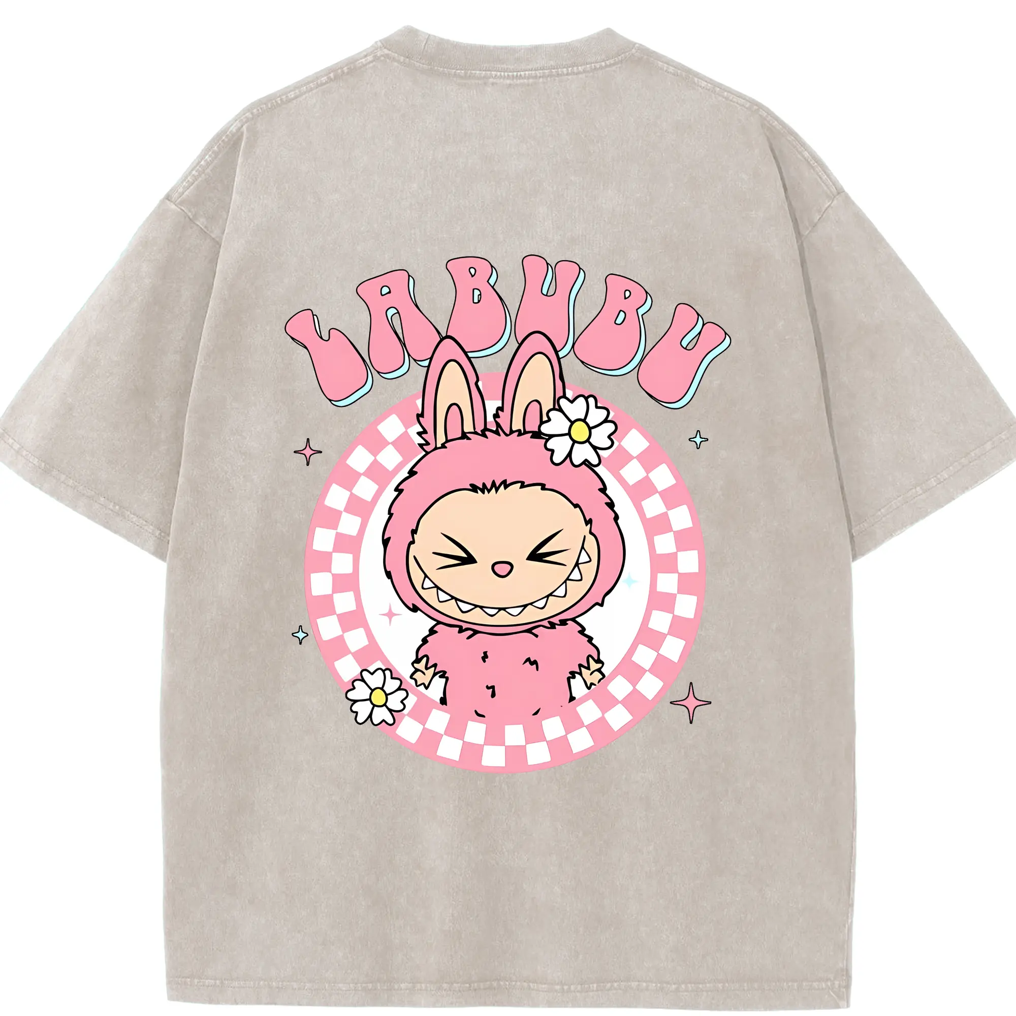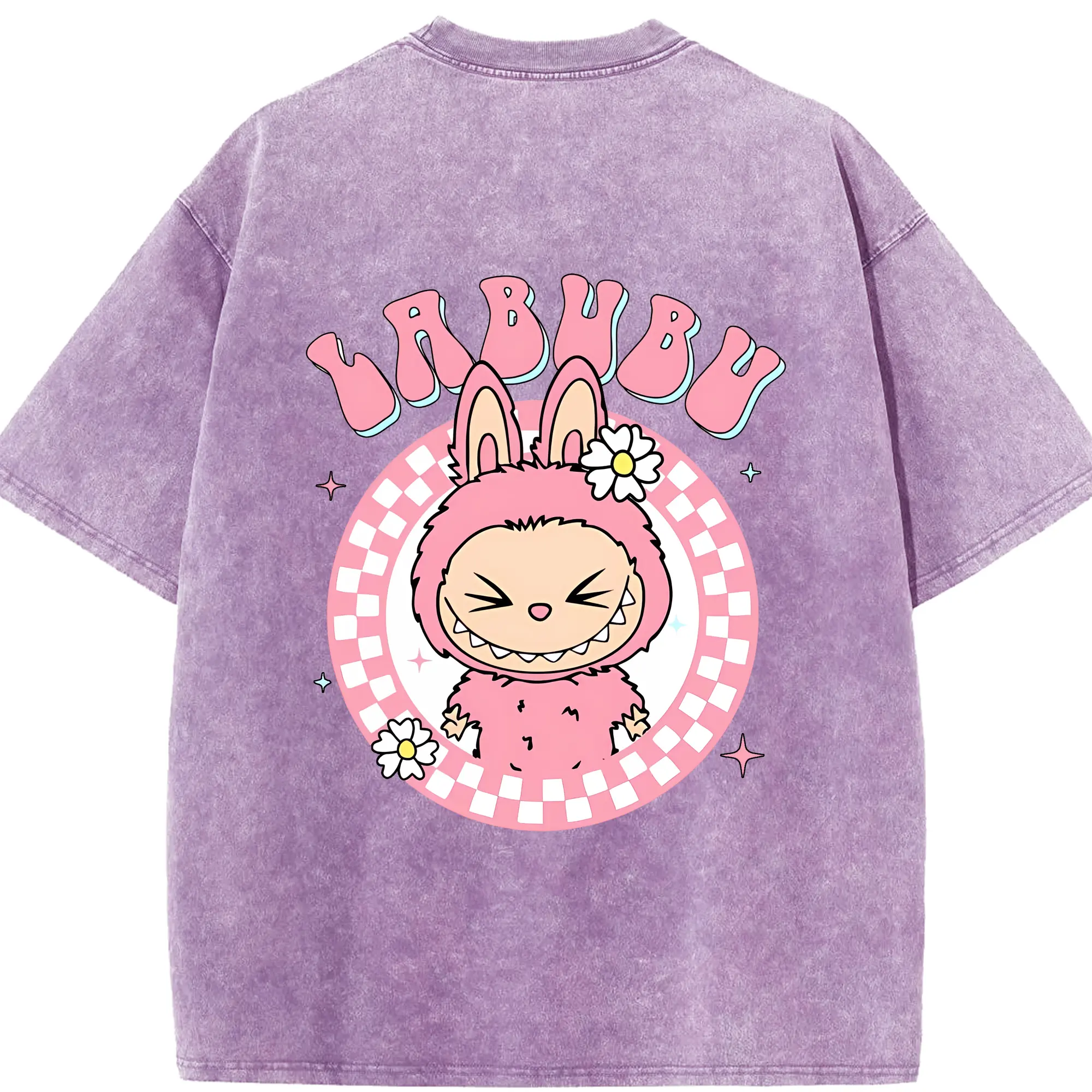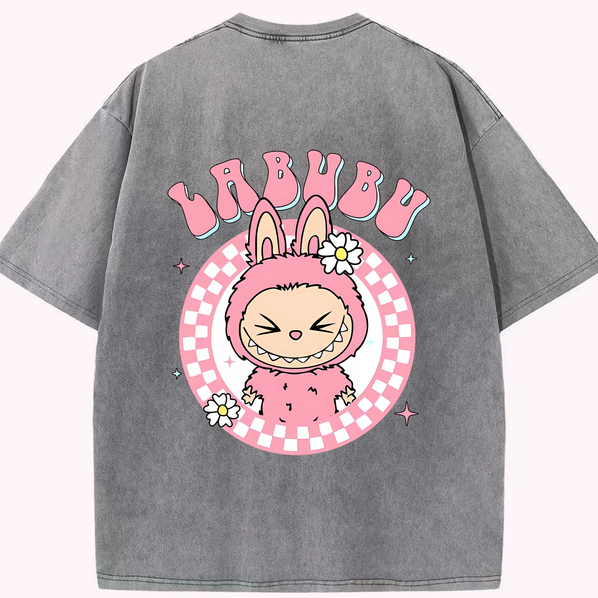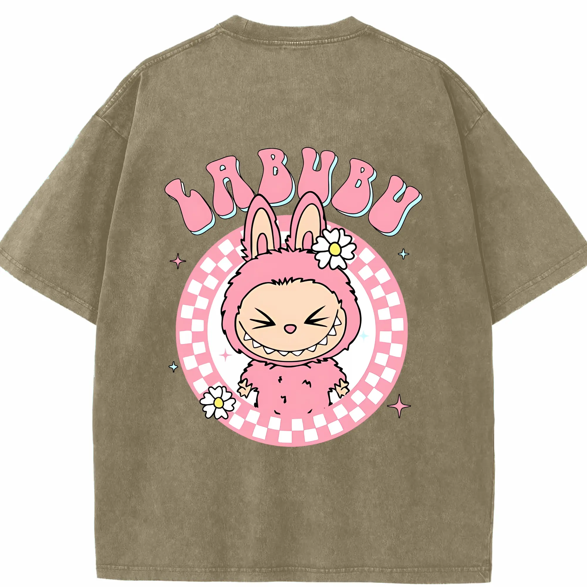 ラブブ グッズ ラブブ - 綿100% ヴィンテージ風 半袖Tシャツ ・ フロントプリント ・ 柔らか肌触り ・ 通気性 快適 ・ スポーツ カジュアル 外出用