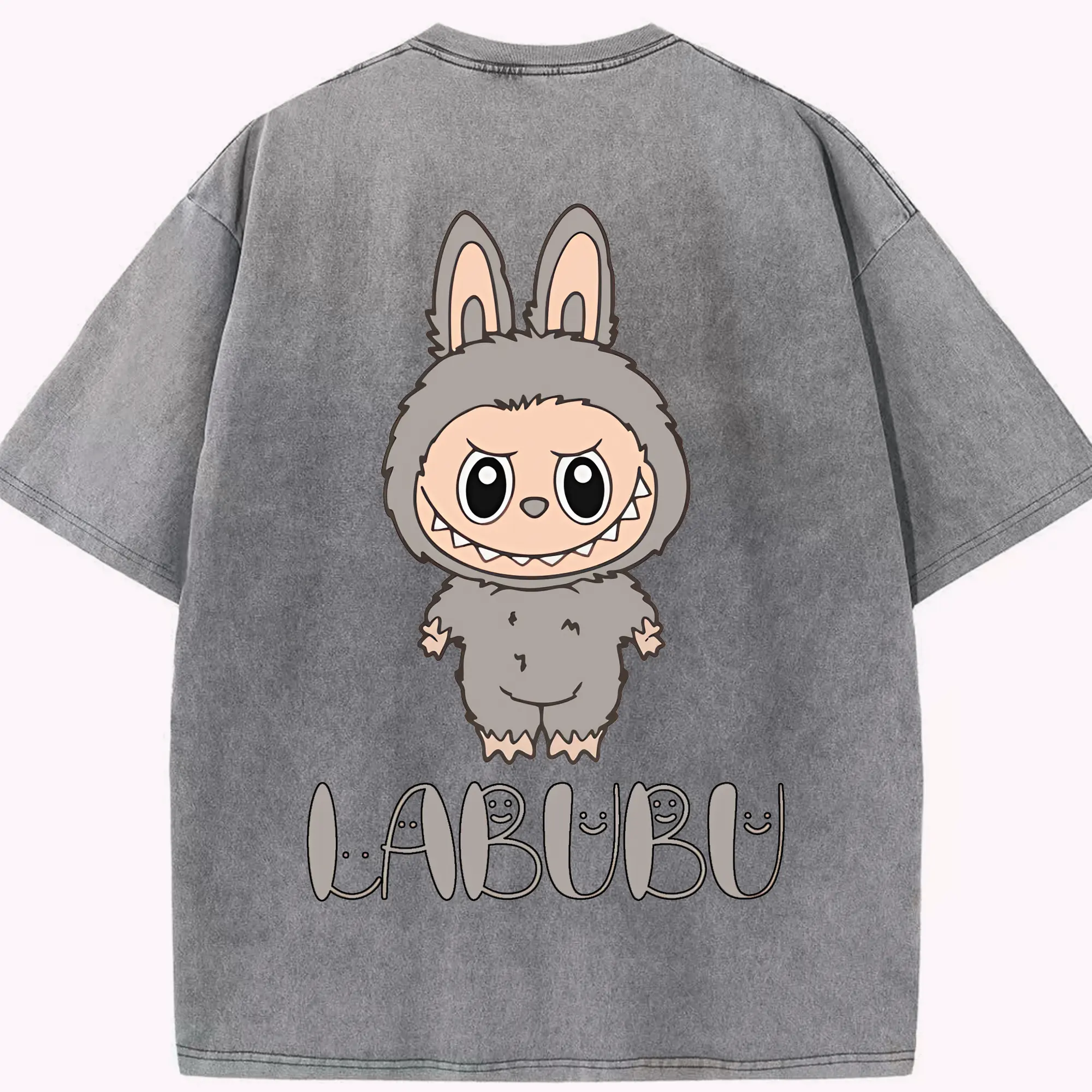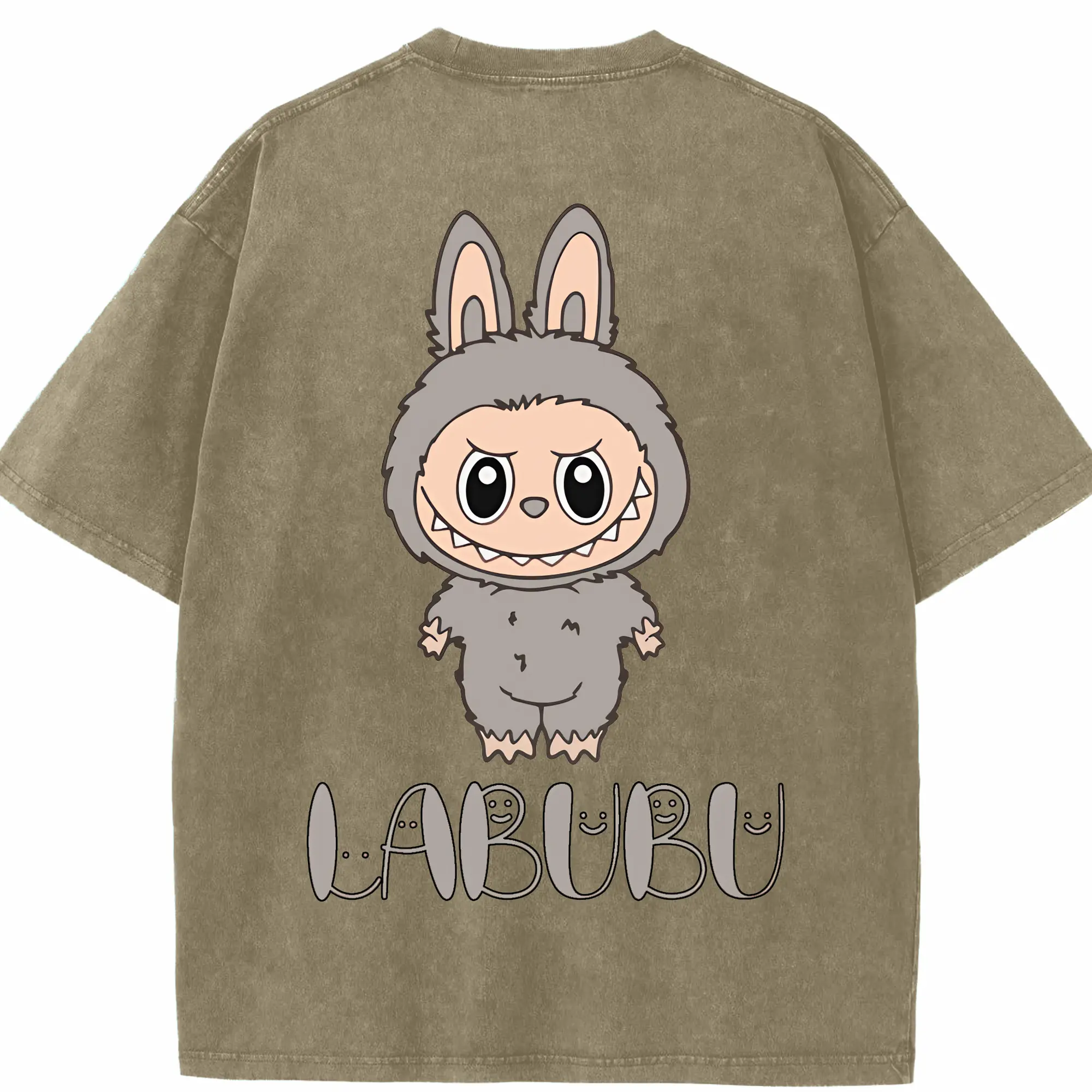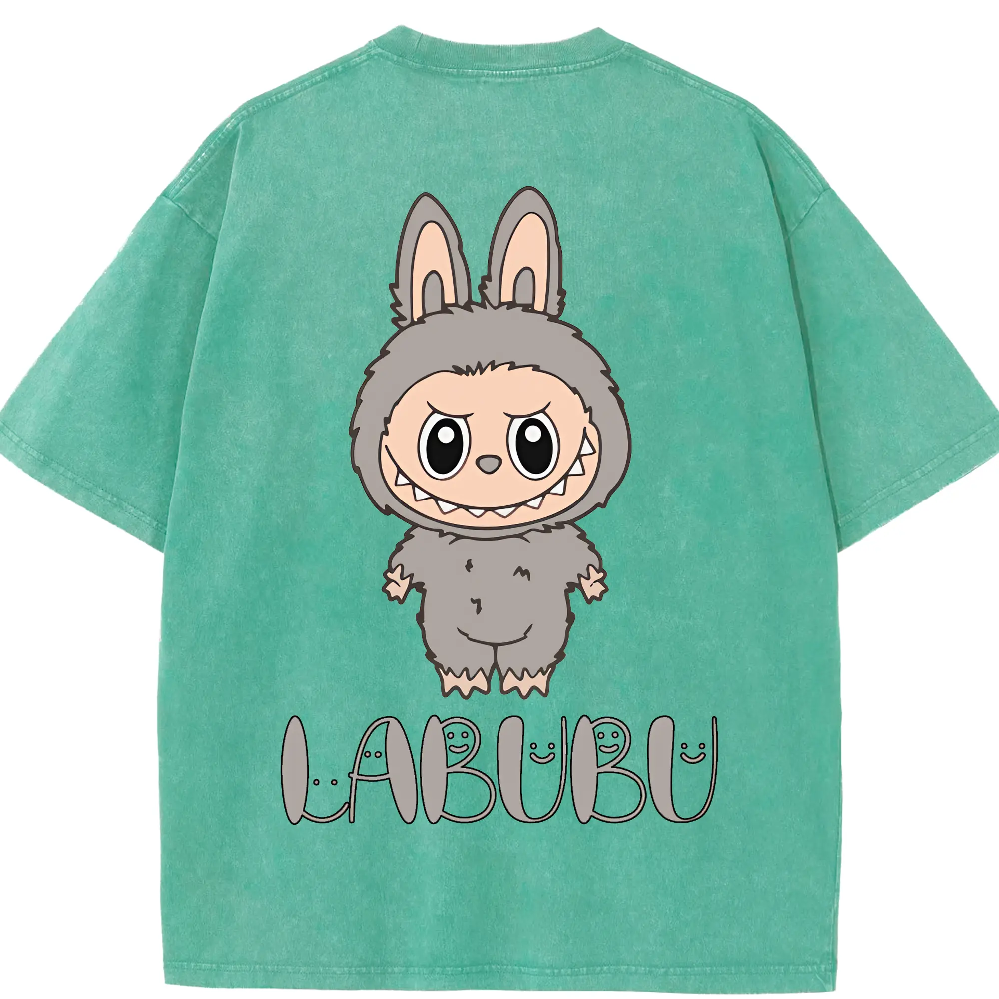 ラブブ グッズ ラブブ - 綿100% ヴィンテージ風 半袖Tシャツ ・ フロントプリント ・ 柔らか肌触り ・ 通気性 快適 ・ スポーツ カジュアル 外出用