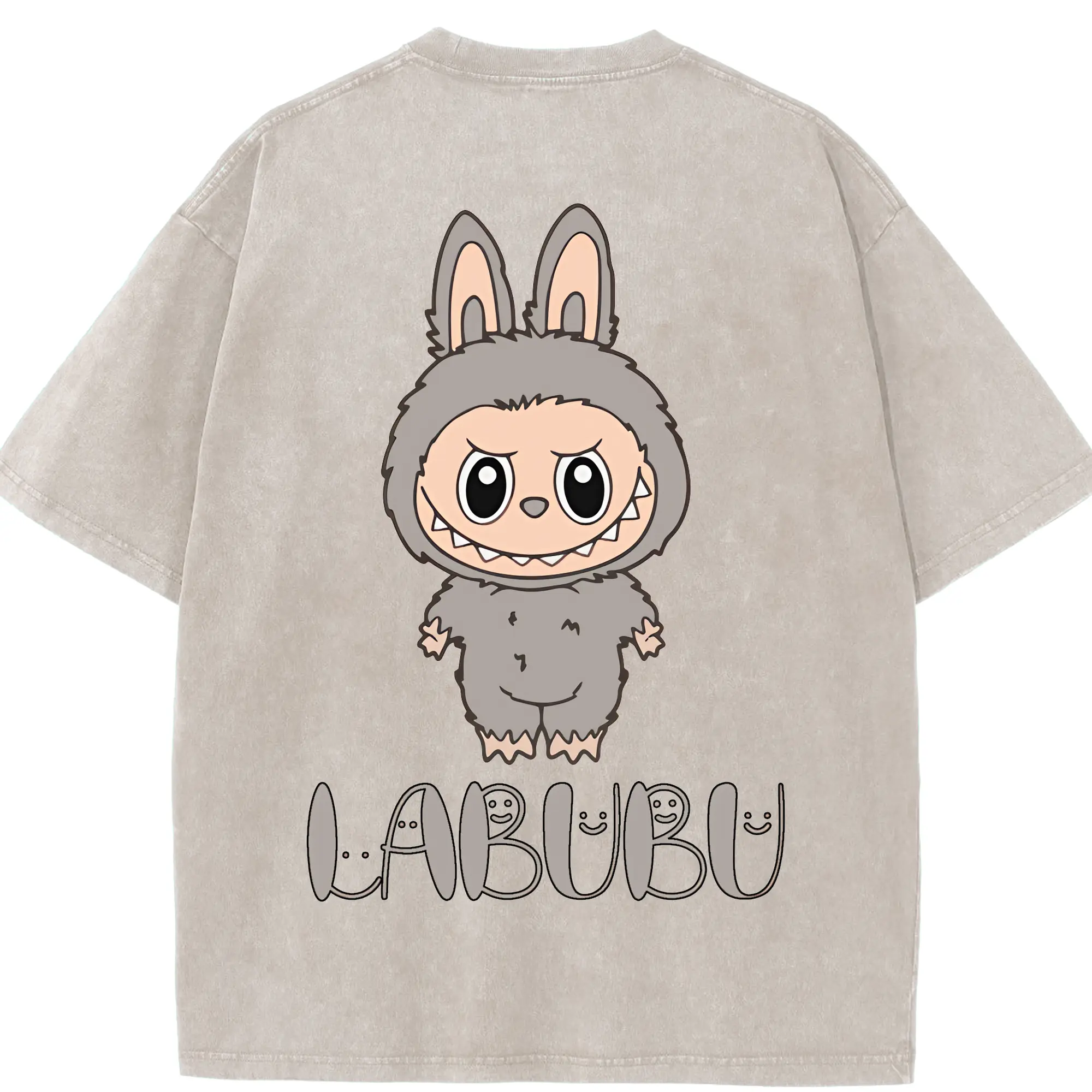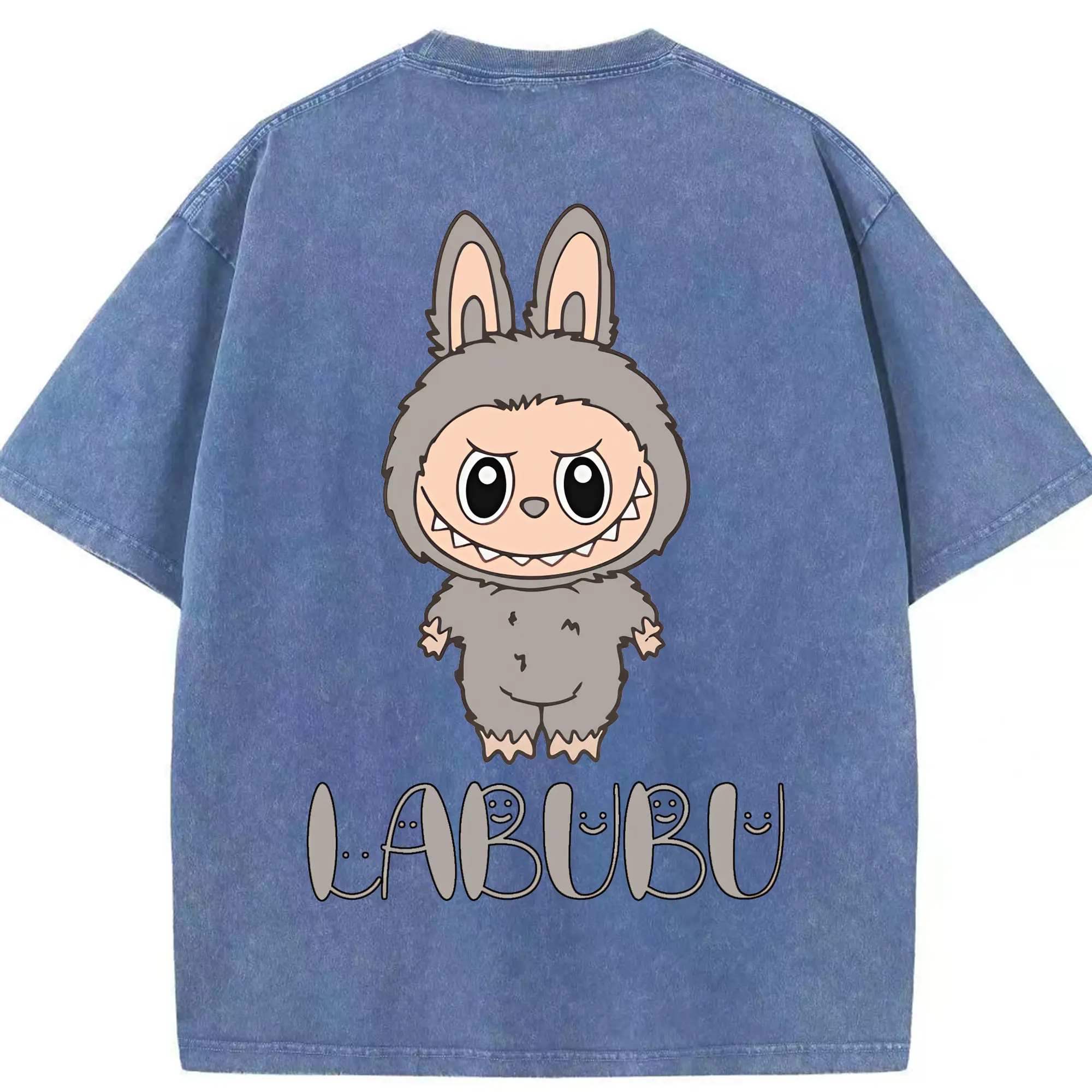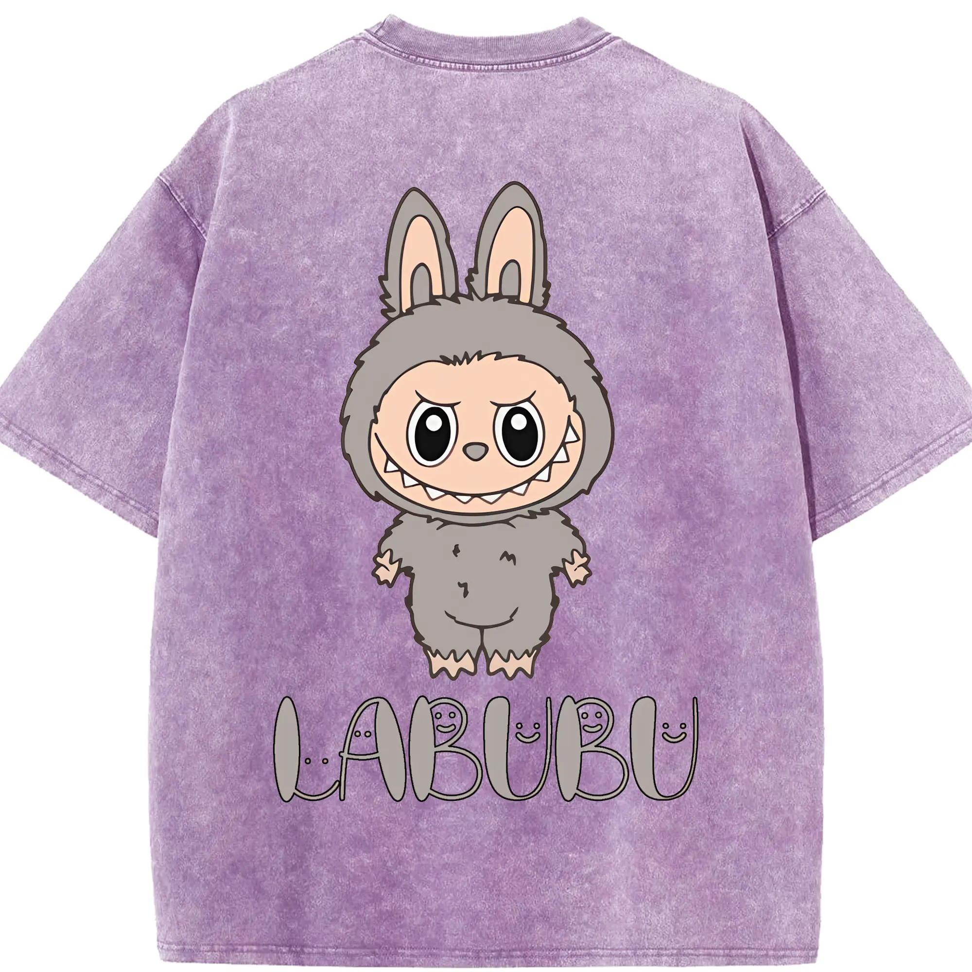 ラブブ グッズ ラブブ - 綿100% ヴィンテージ風 半袖Tシャツ ・ フロントプリント ・ 柔らか肌触り ・ 通気性 快適 ・ スポーツ カジュアル 外出用