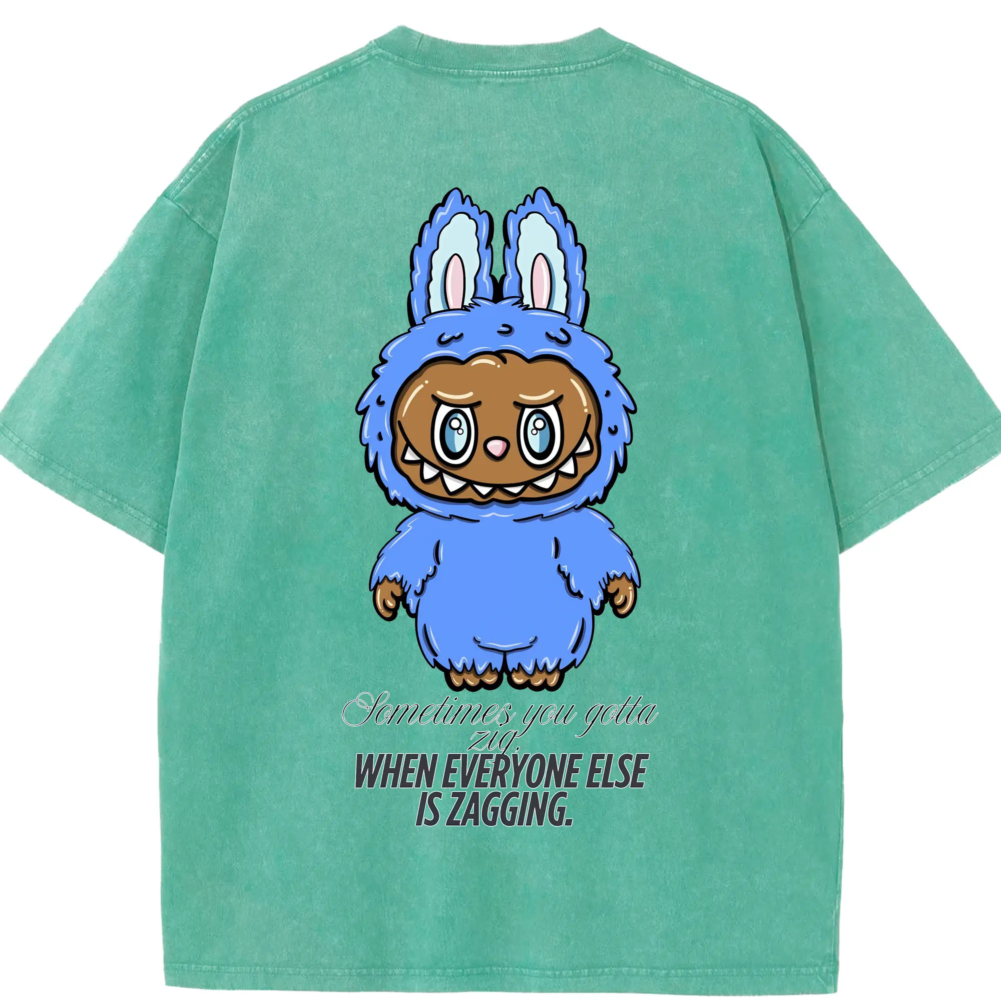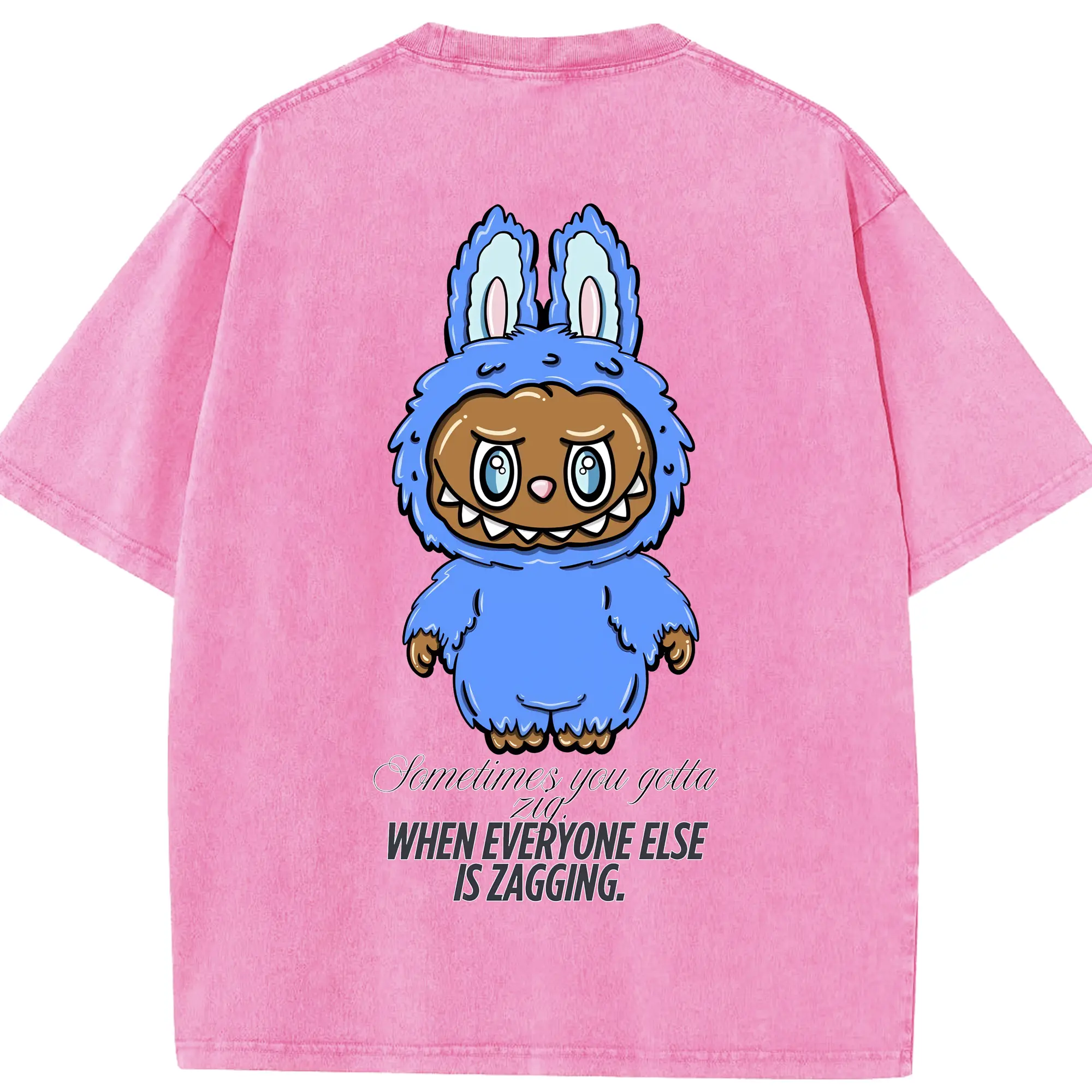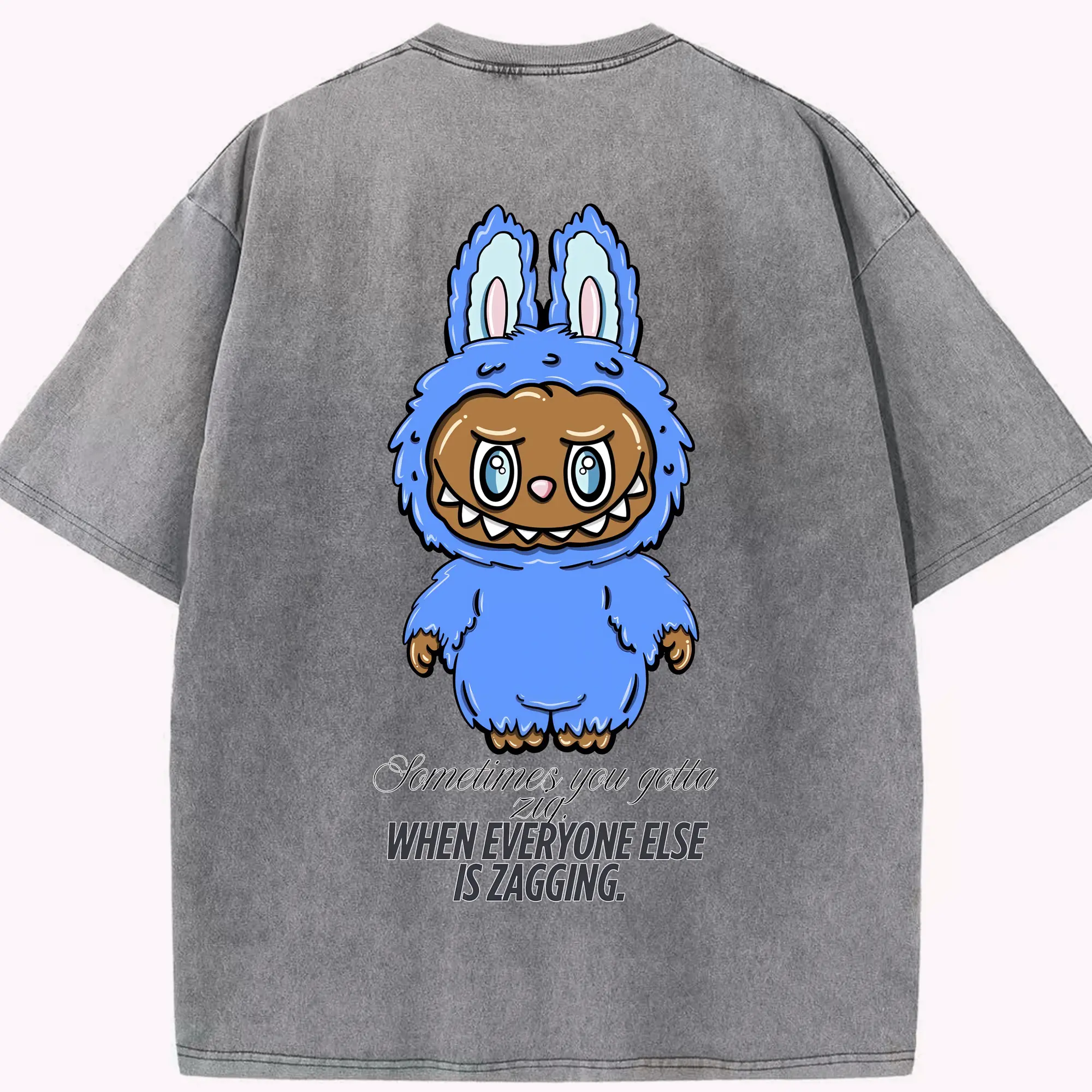 ラブブ グッズ ラブブ - 綿100% ヴィンテージ風 半袖Tシャツ ・ フロントプリント ・ 柔らか肌触り ・ 通気性 快適 ・ スポーツ カジュアル 外出用