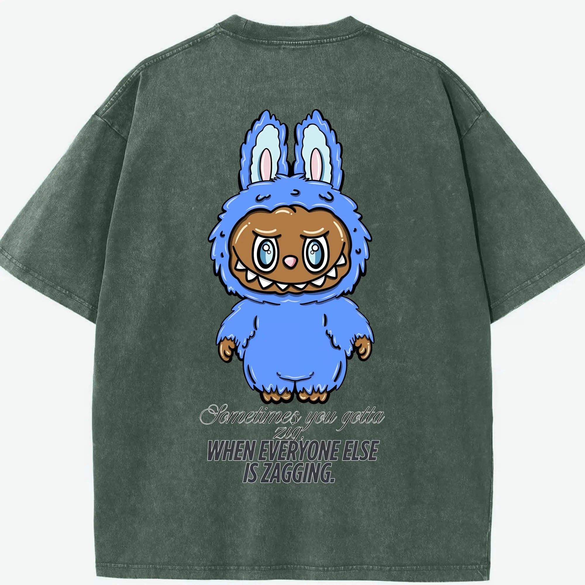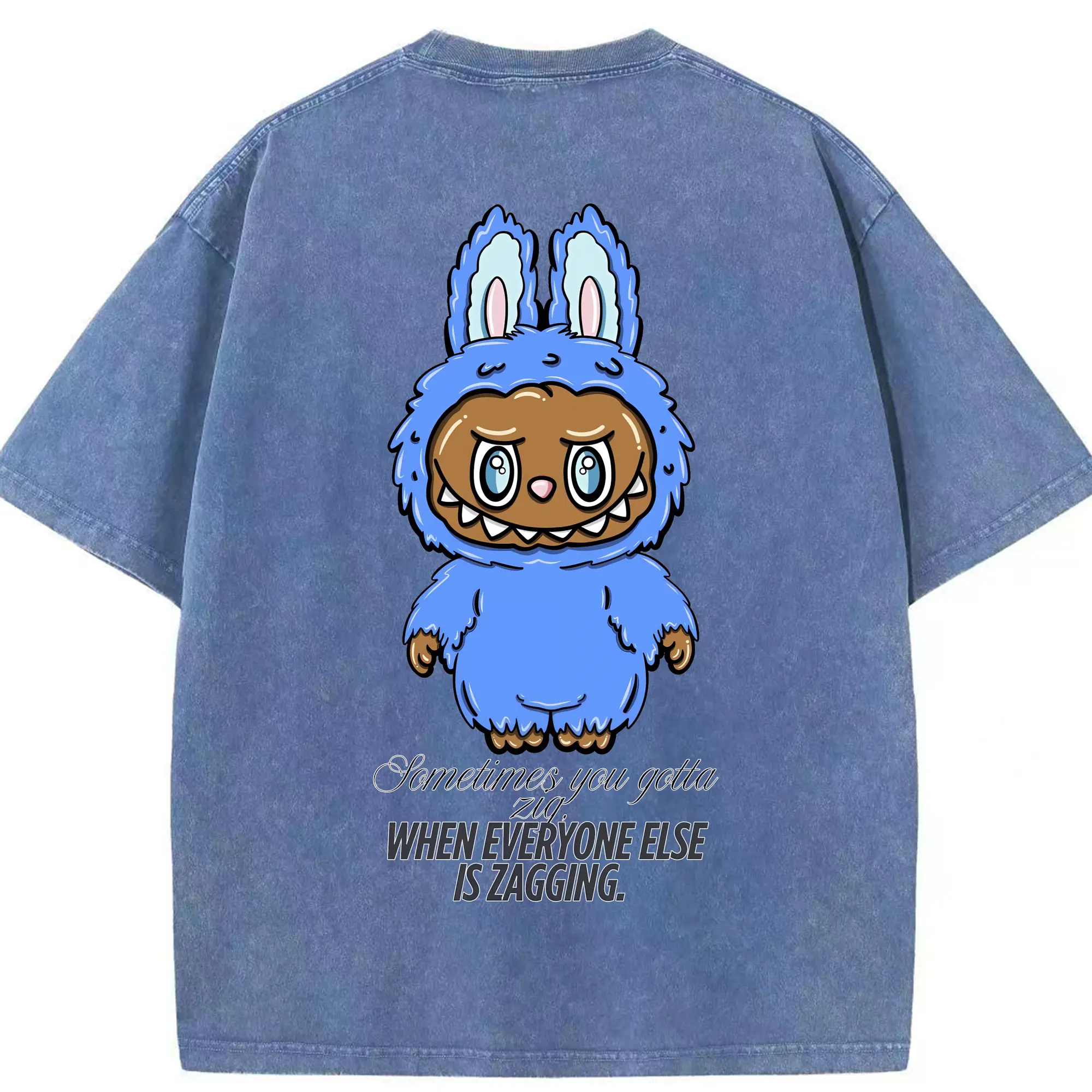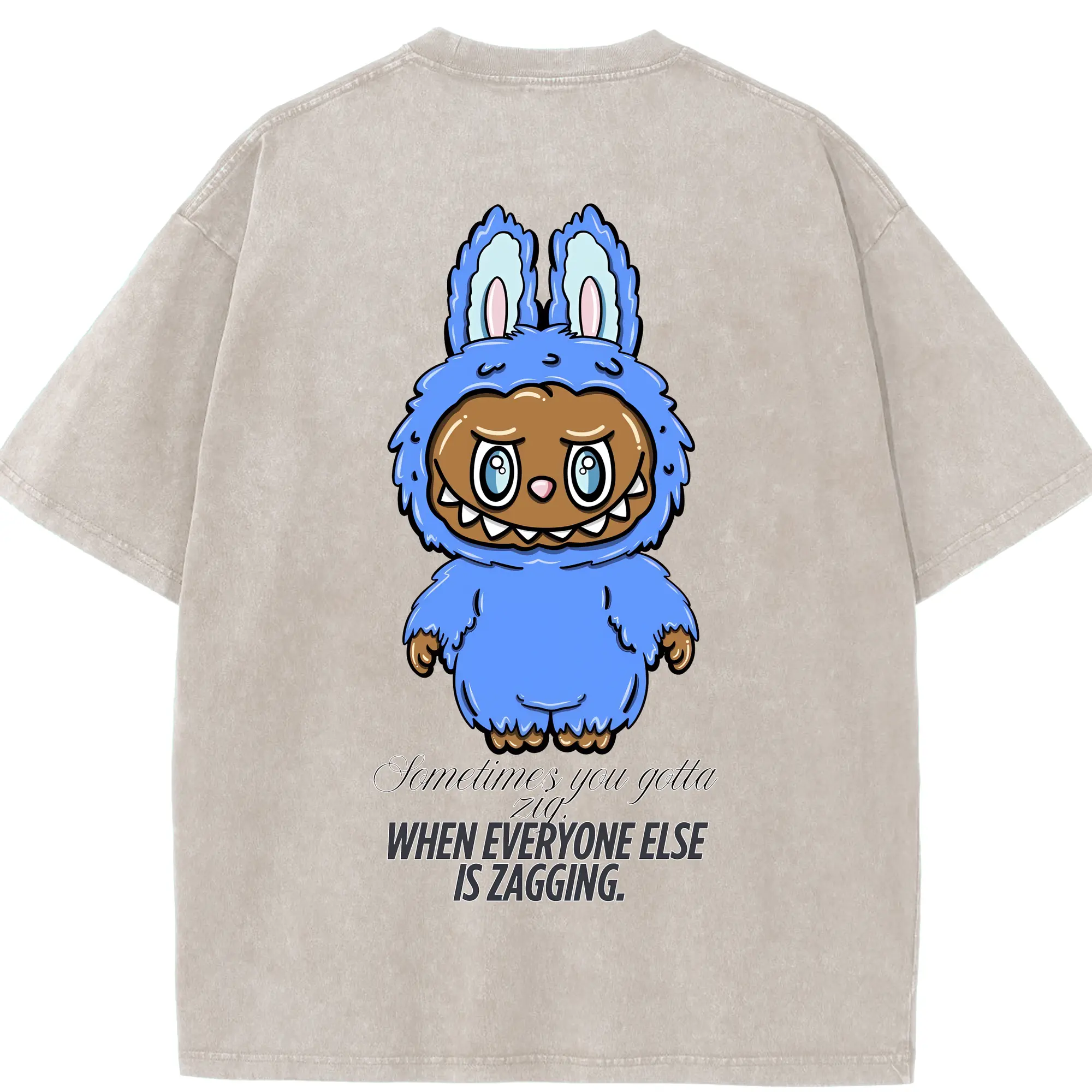 ラブブ グッズ ラブブ - 綿100% ヴィンテージ風 半袖Tシャツ ・ フロントプリント ・ 柔らか肌触り ・ 通気性 快適 ・ スポーツ カジュアル 外出用
