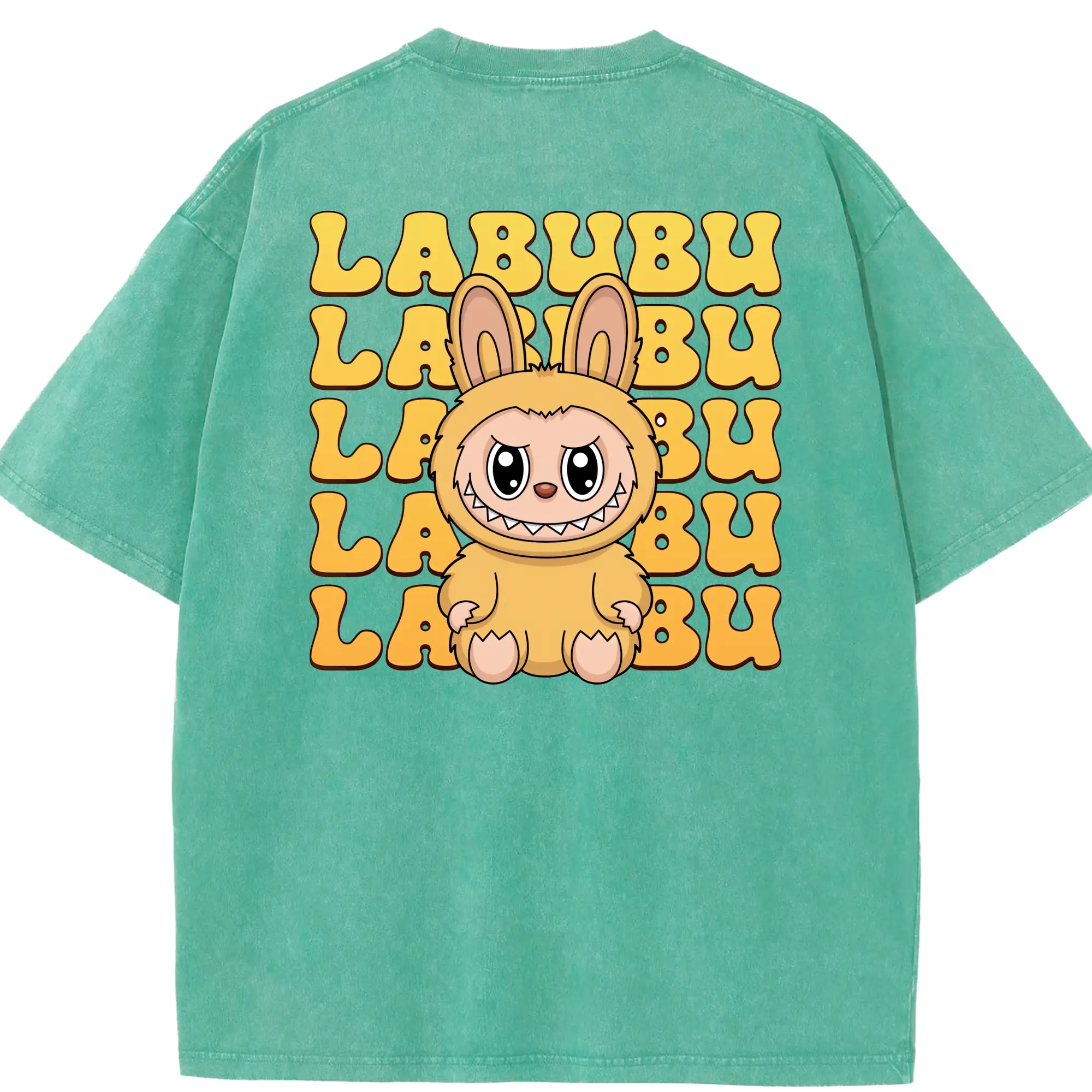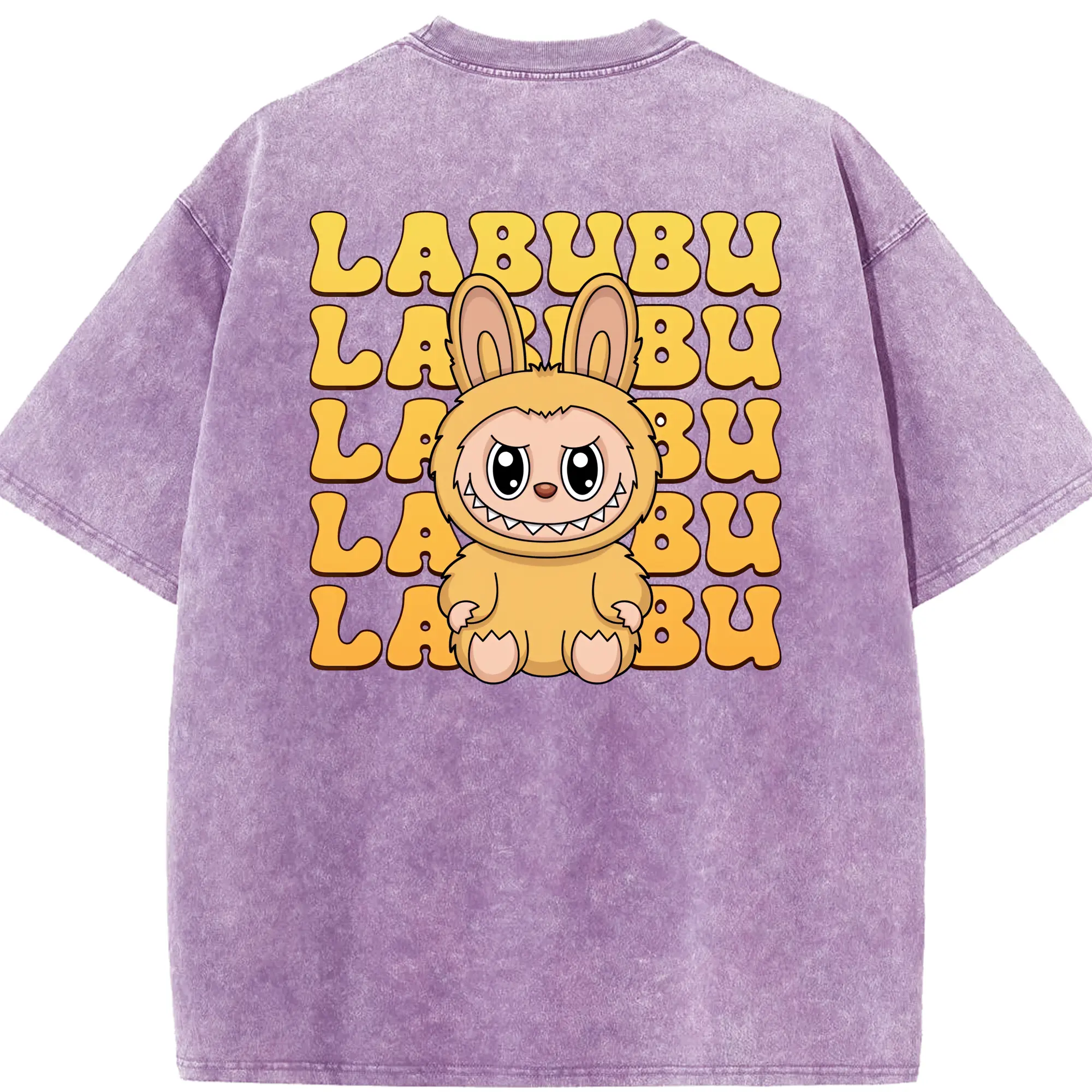 ラブブ グッズ ラブブ - 綿100% ヴィンテージ風 半袖Tシャツ ・ フロントプリント ・ 柔らか肌触り ・ 通気性 快適 ・ スポーツ カジュアル 外出用