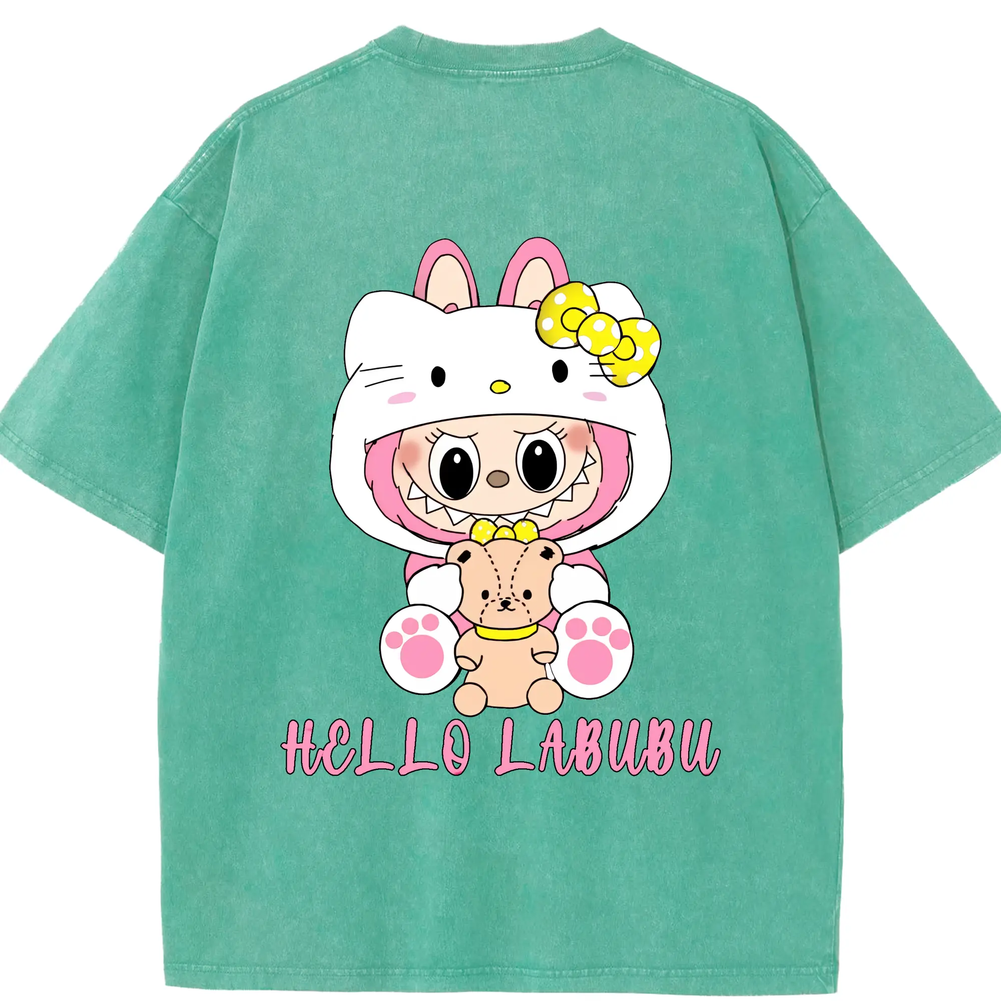 ラブブ グッズ ラブブ - 綿100% 半袖Tシャツ ・ バックプリント ・ 快適 通気性 ・ 日常使い 散歩 スポーツ用