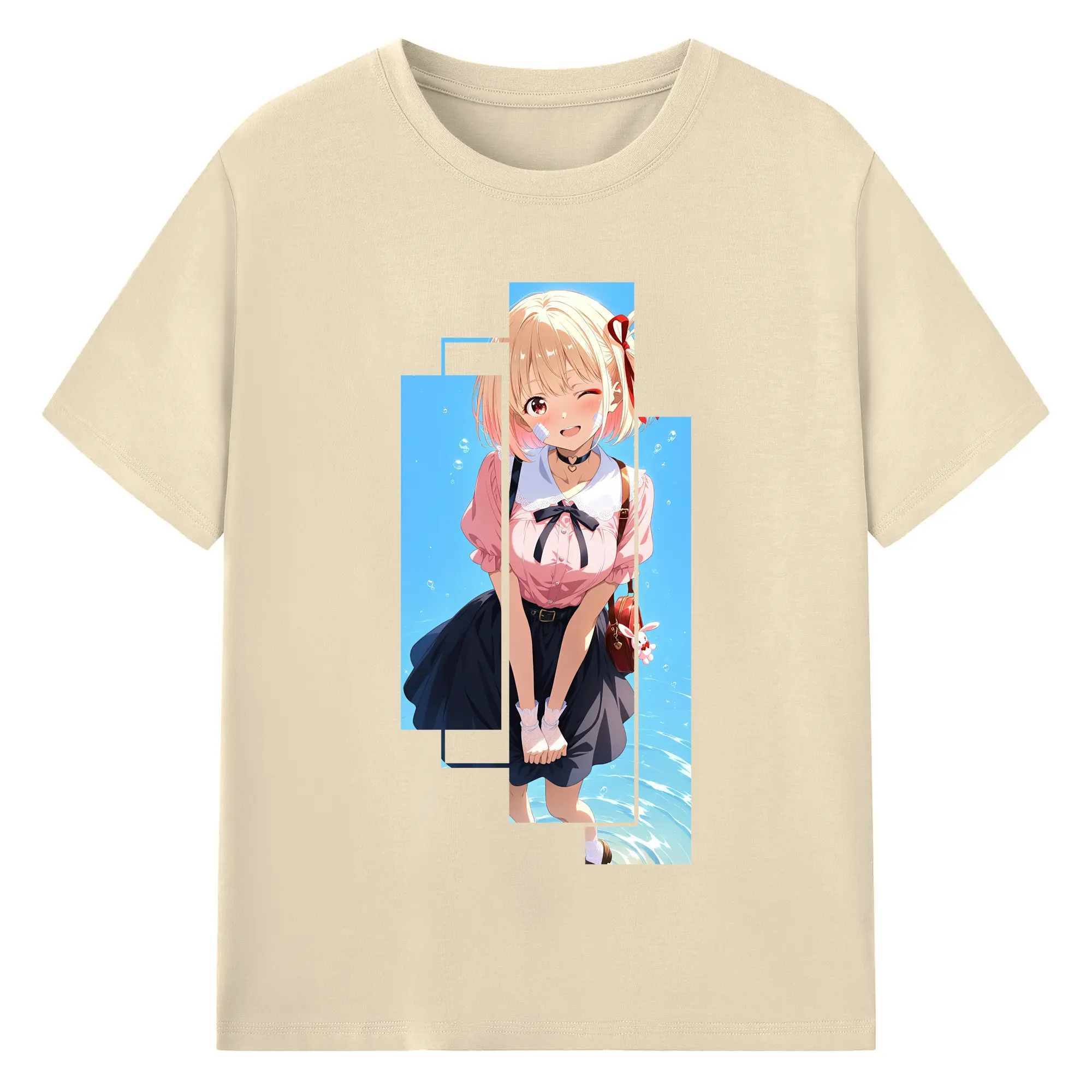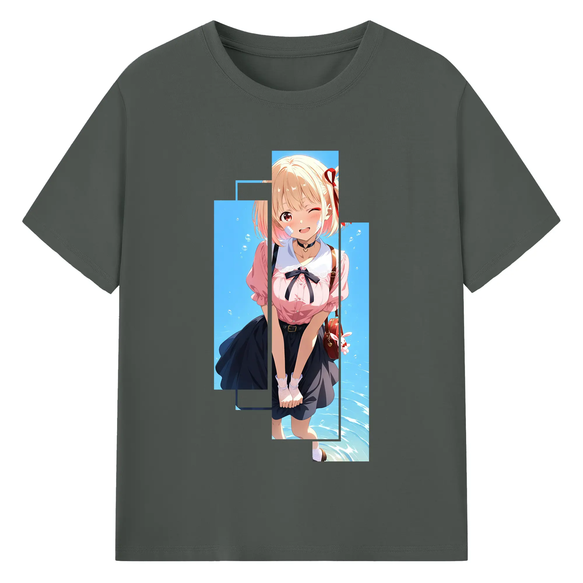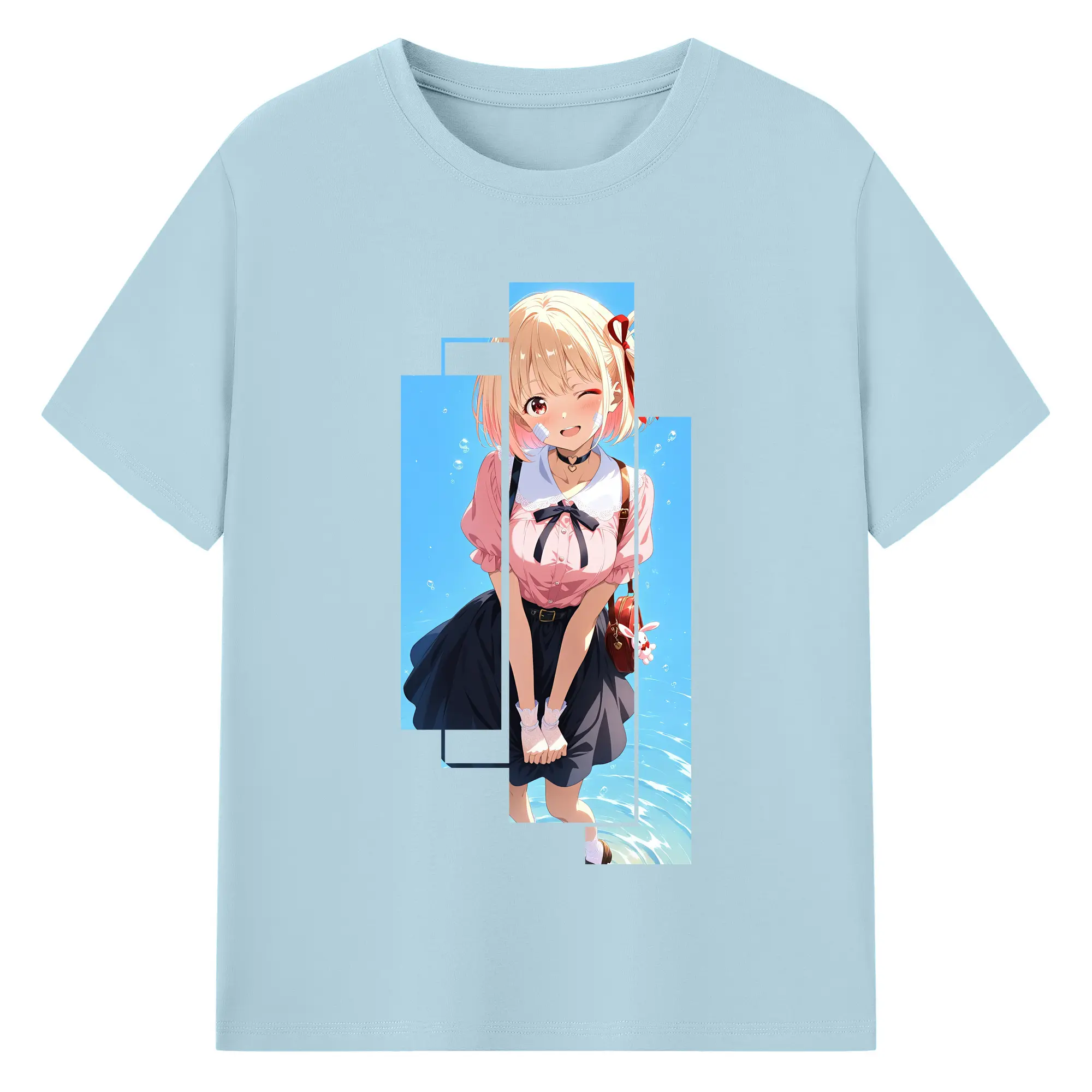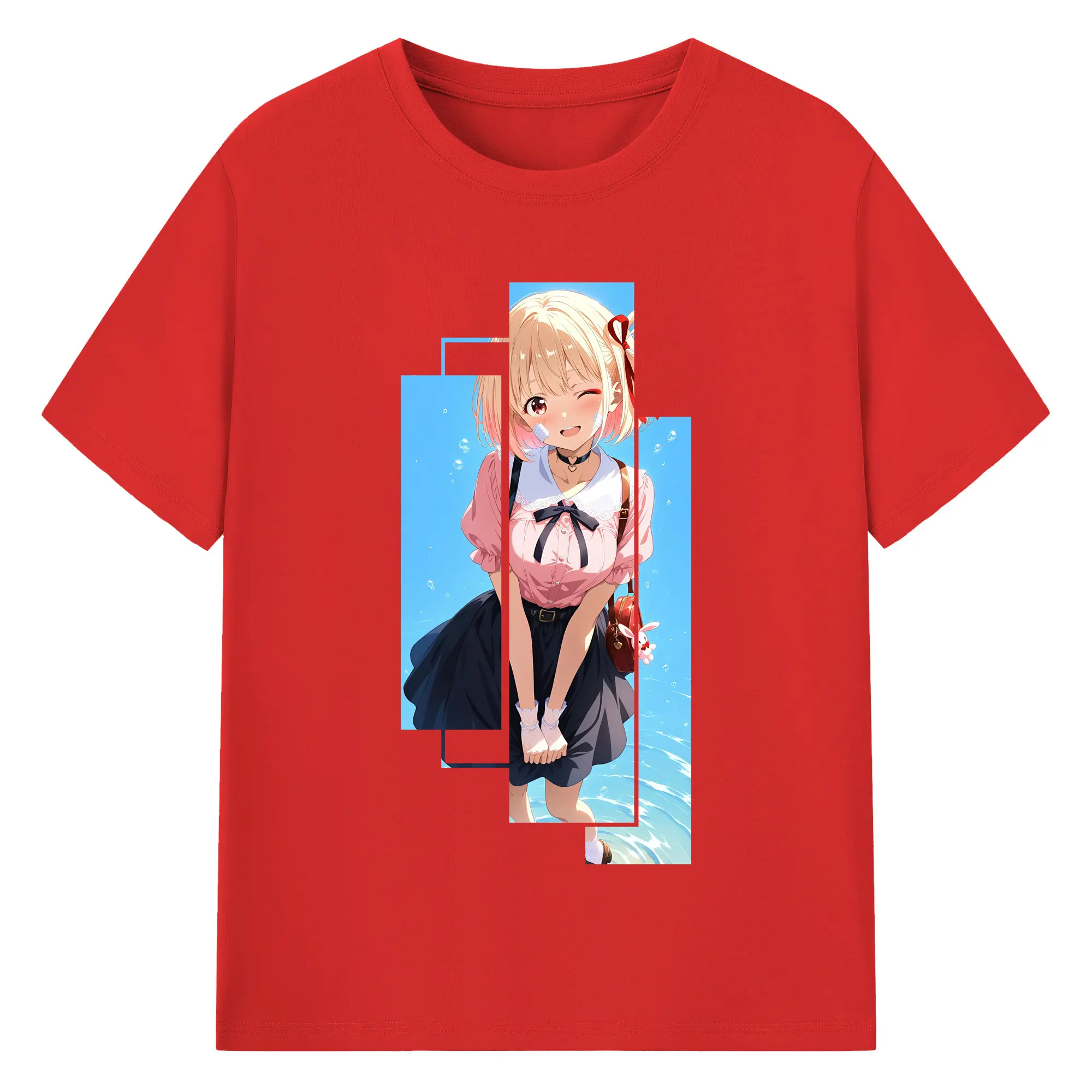 リコリス・リコイル グッズ,錦木千束 - 綿100% 半袖Tシャツ ・ バックプリント ・ 快適 通気性 ・ 日常使い 散歩 スポーツ用