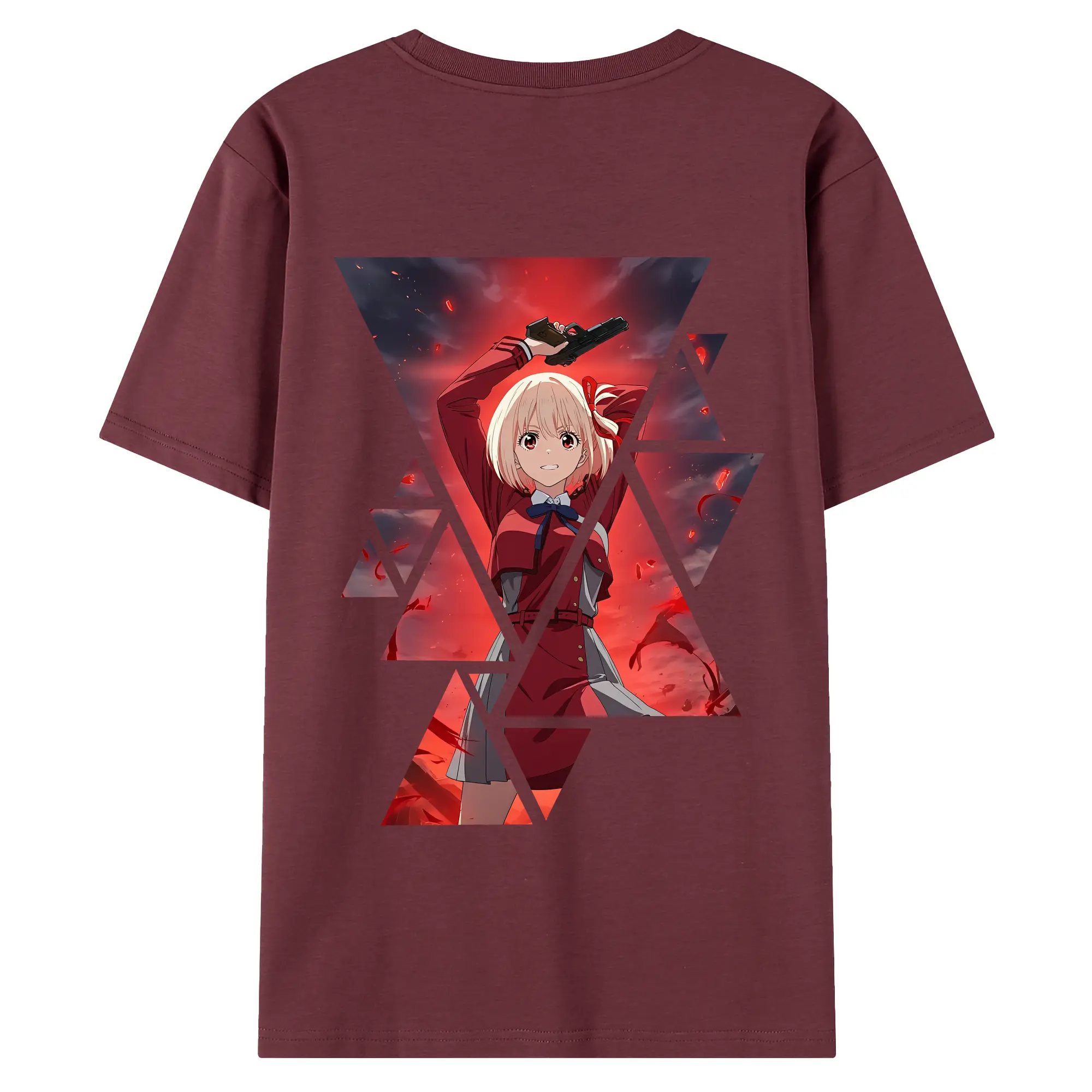 リコリス・リコイル グッズ,錦木千束 - 綿100% ヴィンテージ風 半袖Tシャツ ・ 背面プリント ・ 柔らか肌触り ・ 通気性 快適 ・ スポーツ カジュアル 外出用