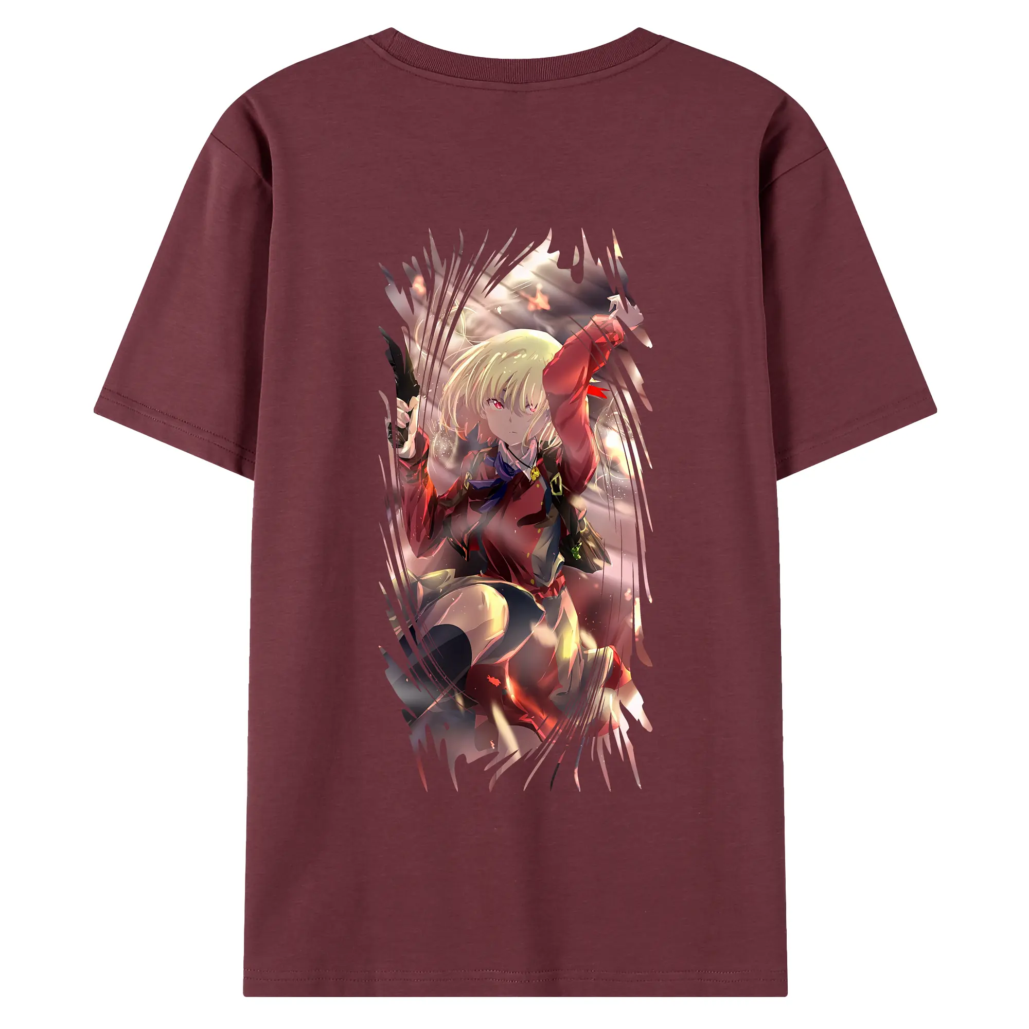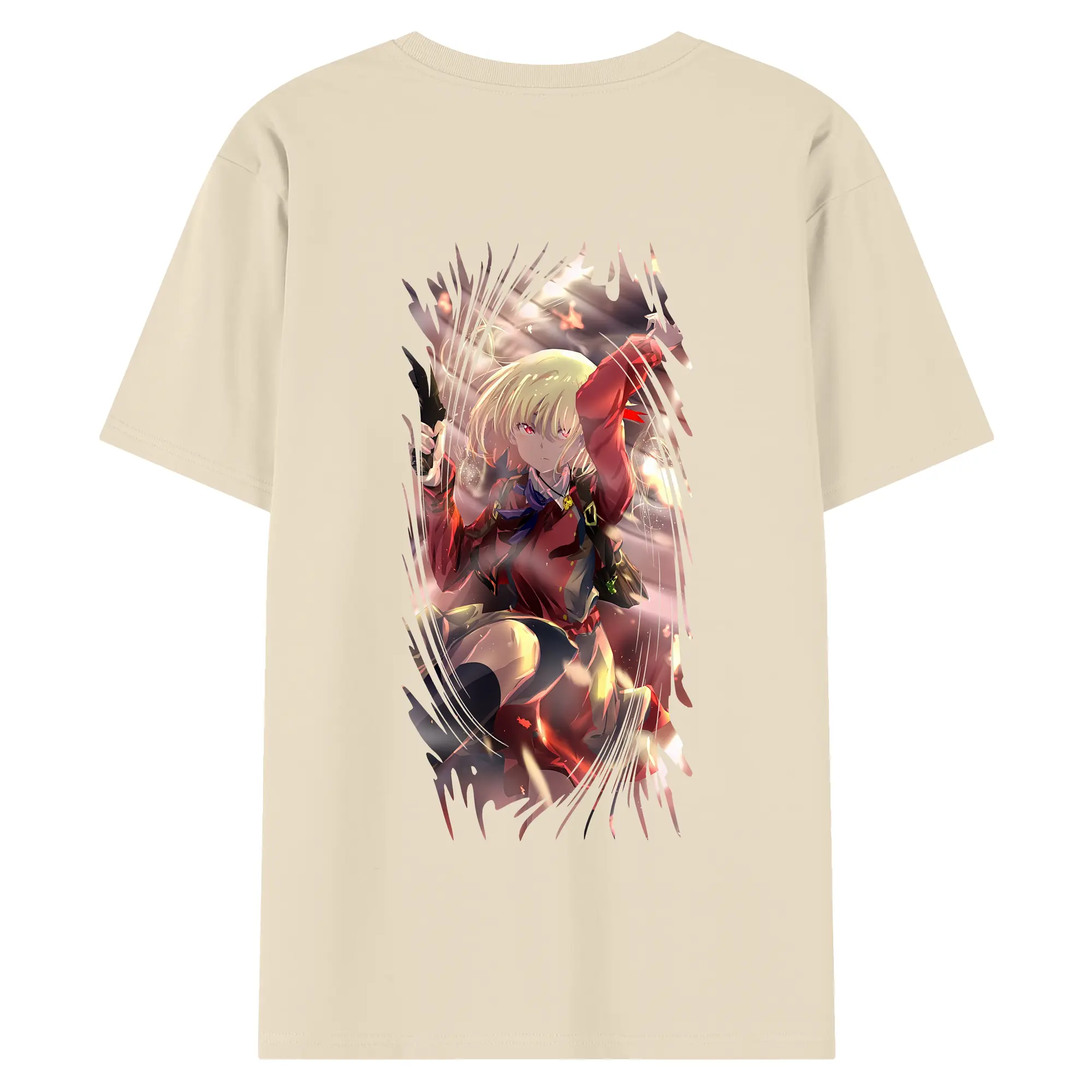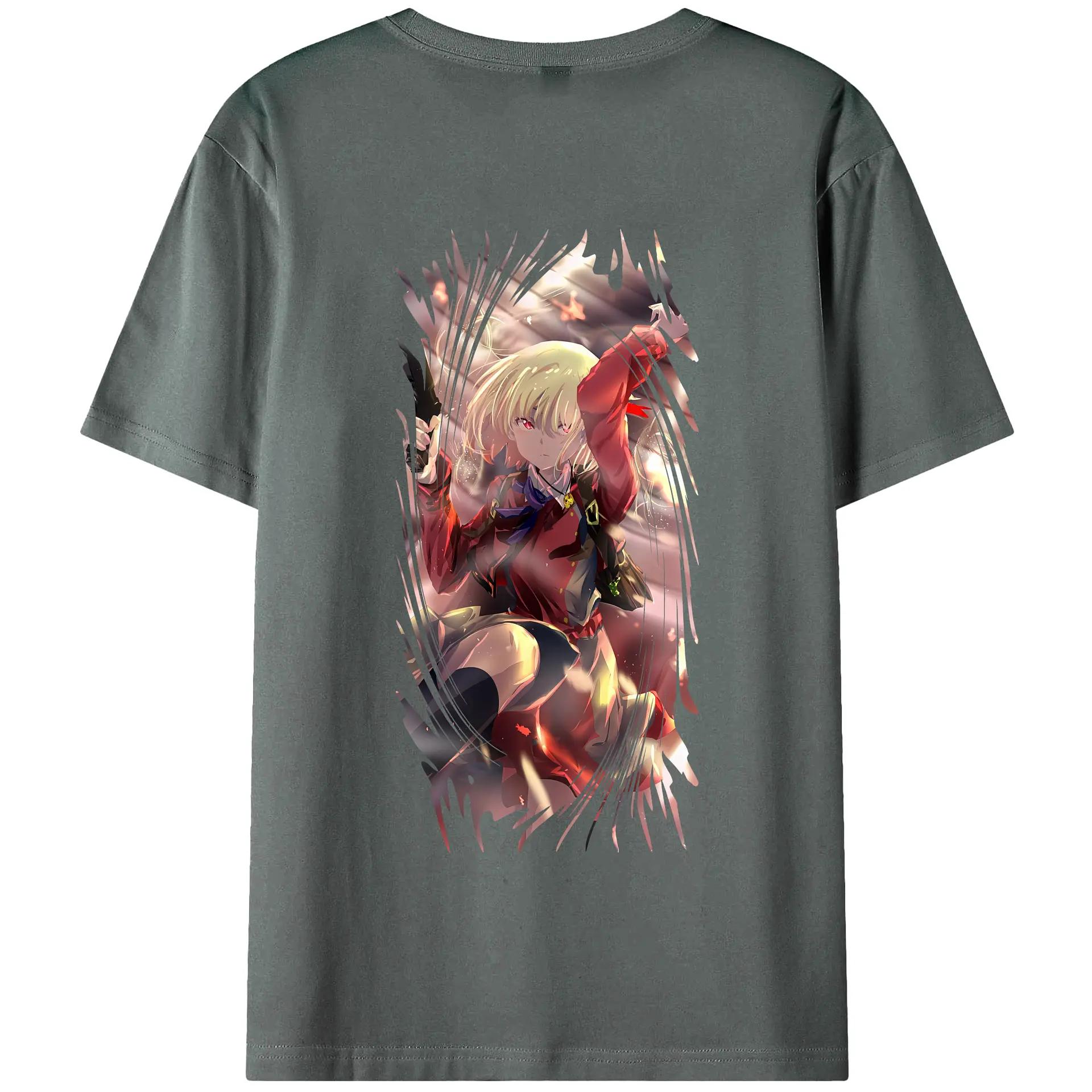 リコリス・リコイル グッズ,錦木千束 - 綿100% ヴィンテージ風 半袖Tシャツ ・ 背面プリント ・ 柔らか肌触り ・ 通気性 快適 ・ スポーツ カジュアル 外出用