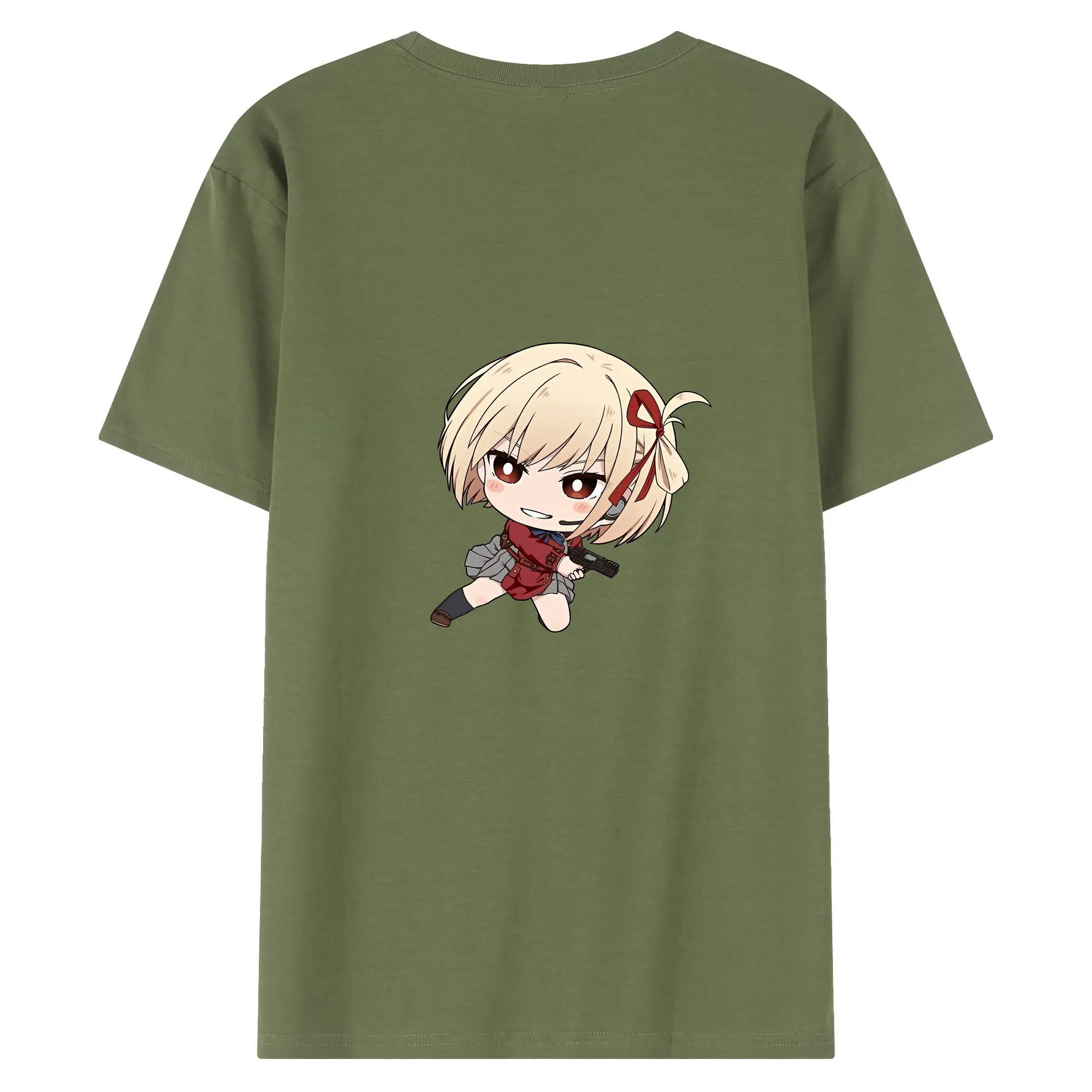 リコリス・リコイル グッズ,錦木千束 - 綿100% 半袖Tシャツ ・ フロントプリント ・ 快適 通気性 ・ 日常使い 散歩 スポーツ用