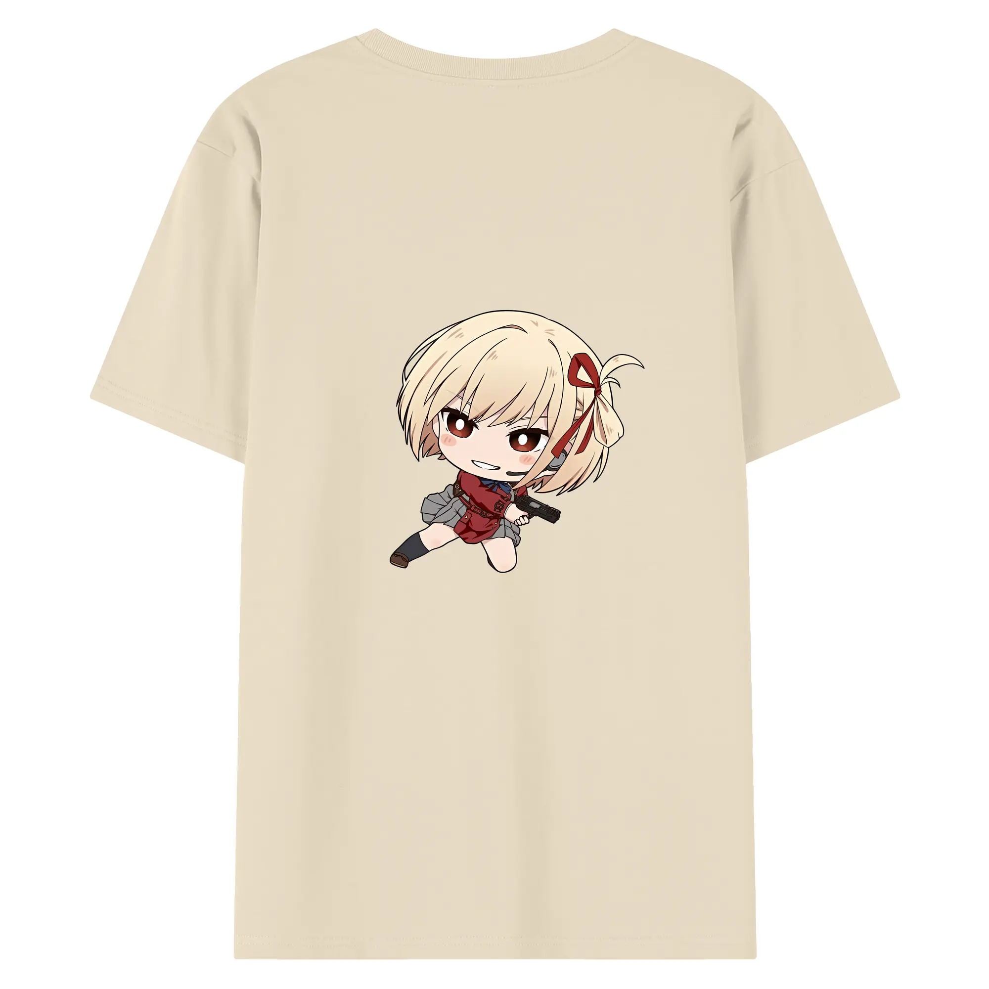 リコリス・リコイル グッズ,錦木千束 - 綿100% ヴィンテージ風 半袖Tシャツ ・ 背面プリント ・ 柔らか肌触り ・ 通気性 快適 ・ スポーツ カジュアル 外出用