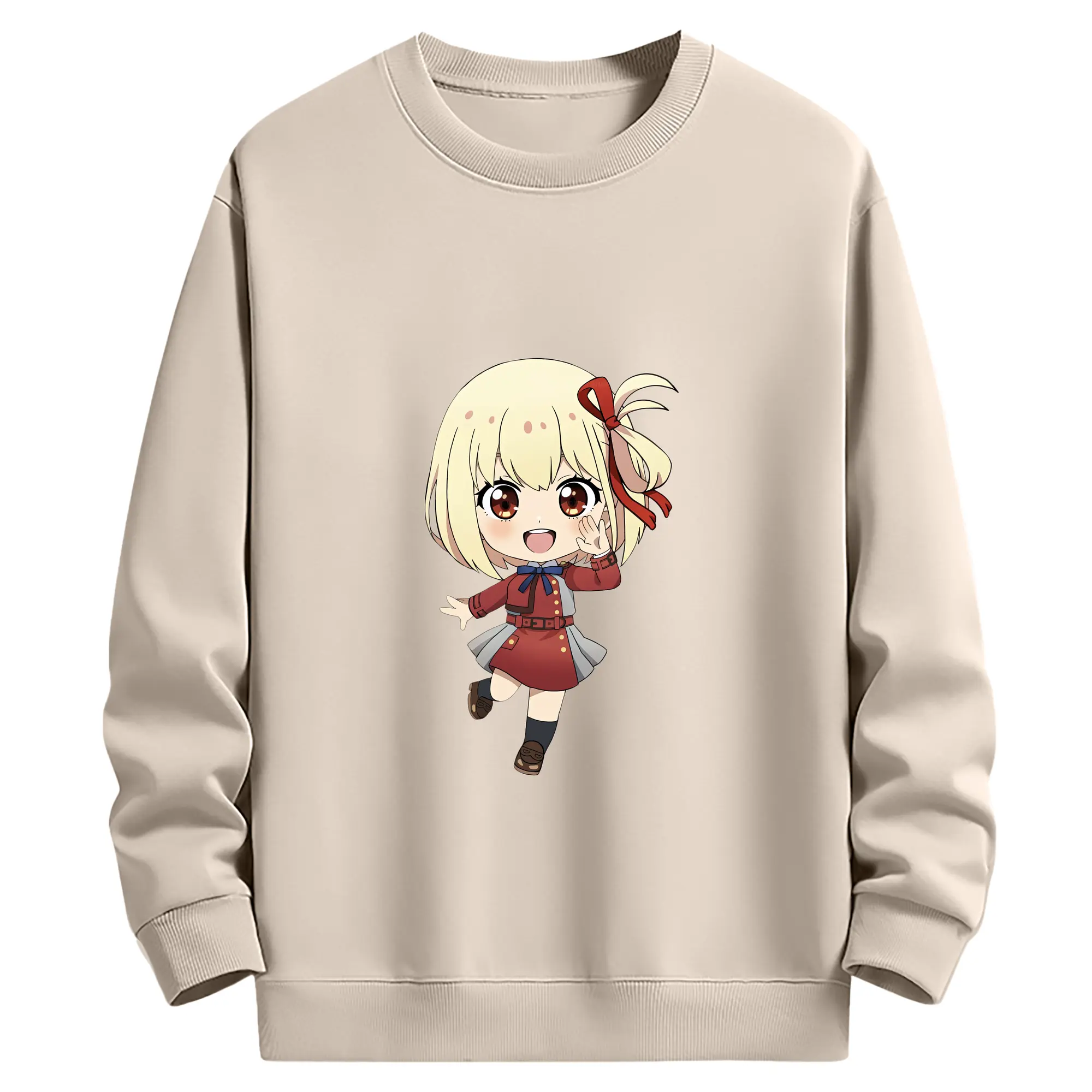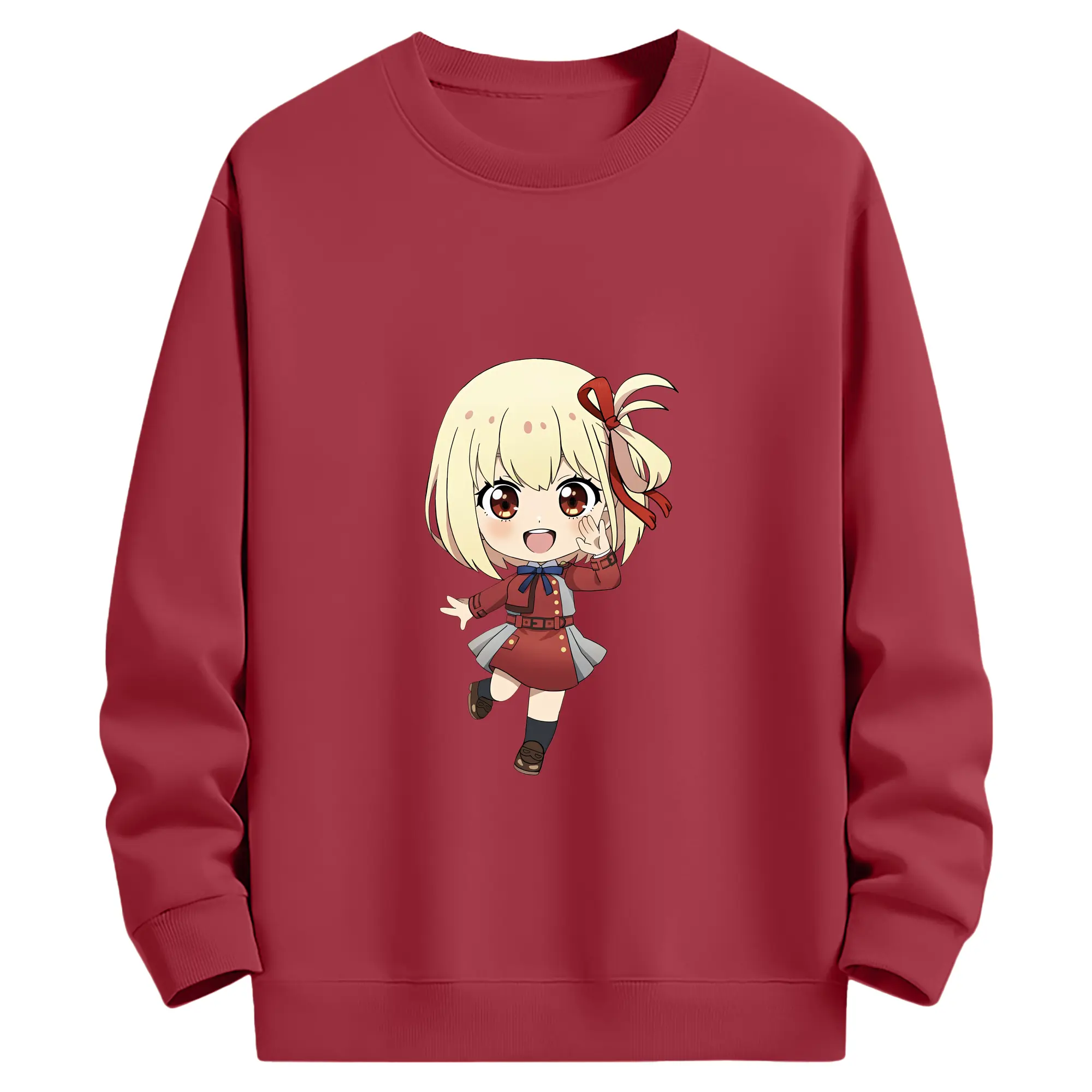 リコリス・リコイル グッズ,錦木千束 - 薄手 クルーネック スウェット 裏毛260g · ポリエステル 春秋向け カジュアル 男女兼用 · トレーナー デイリー スポーツ 散歩に最適