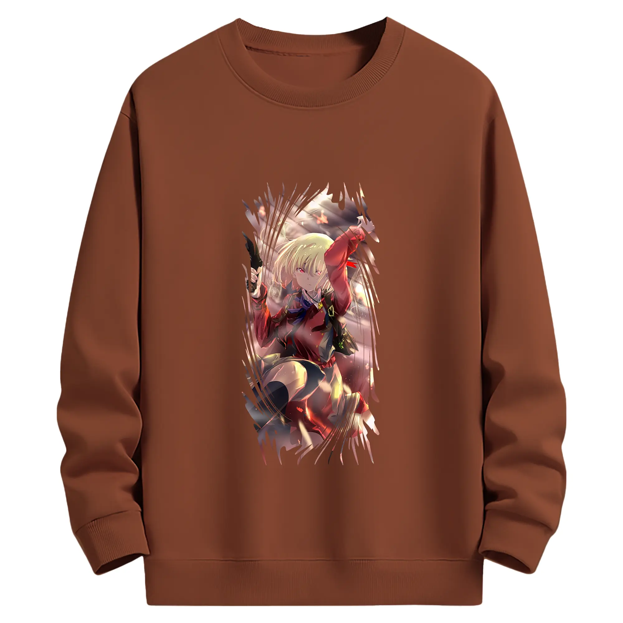 リコリス・リコイル グッズ,錦木千束 - 薄手 クルーネック スウェット 裏毛260g · ポリエステル 春秋向け カジュアル 男女兼用 · トレーナー デイリー スポーツ 散歩に最適