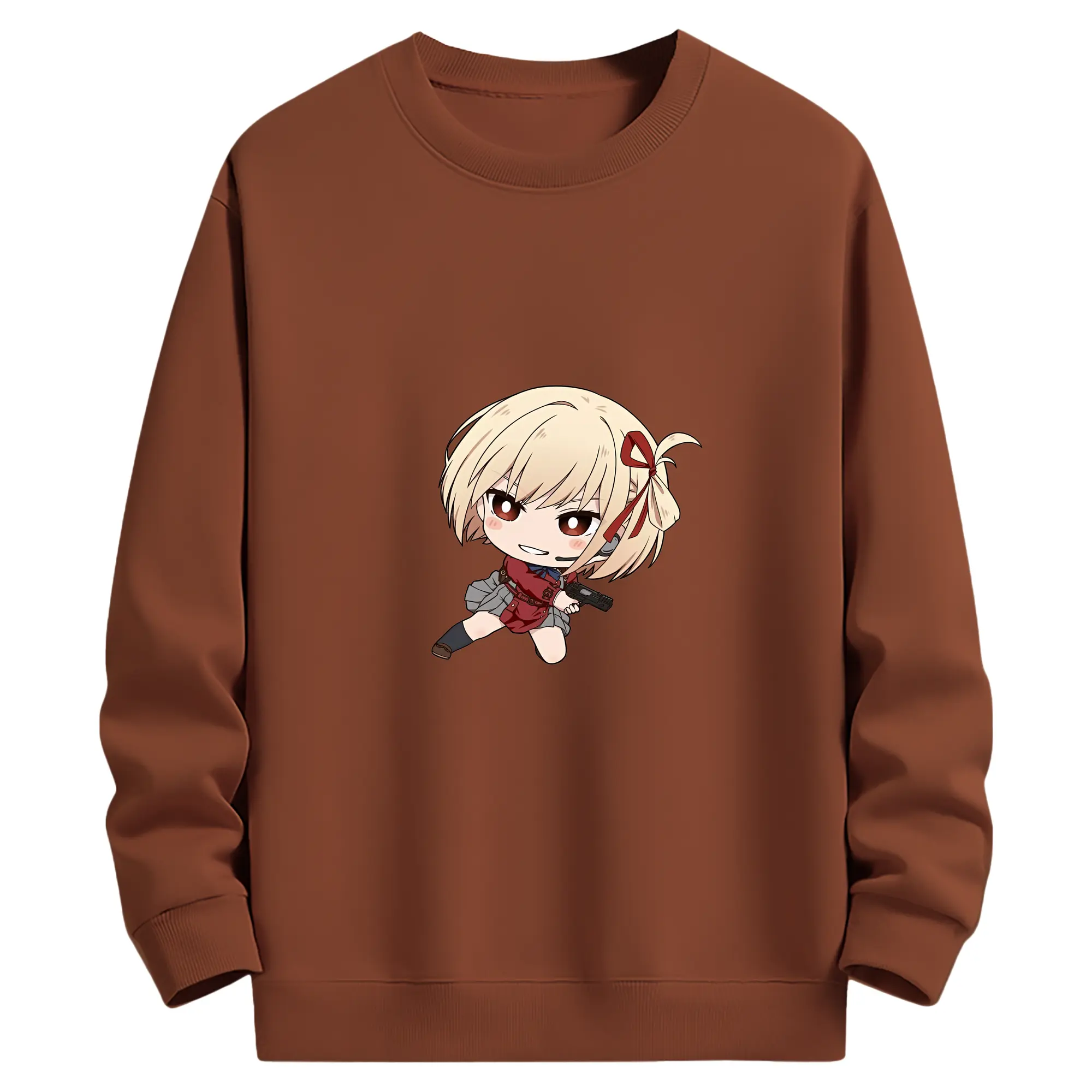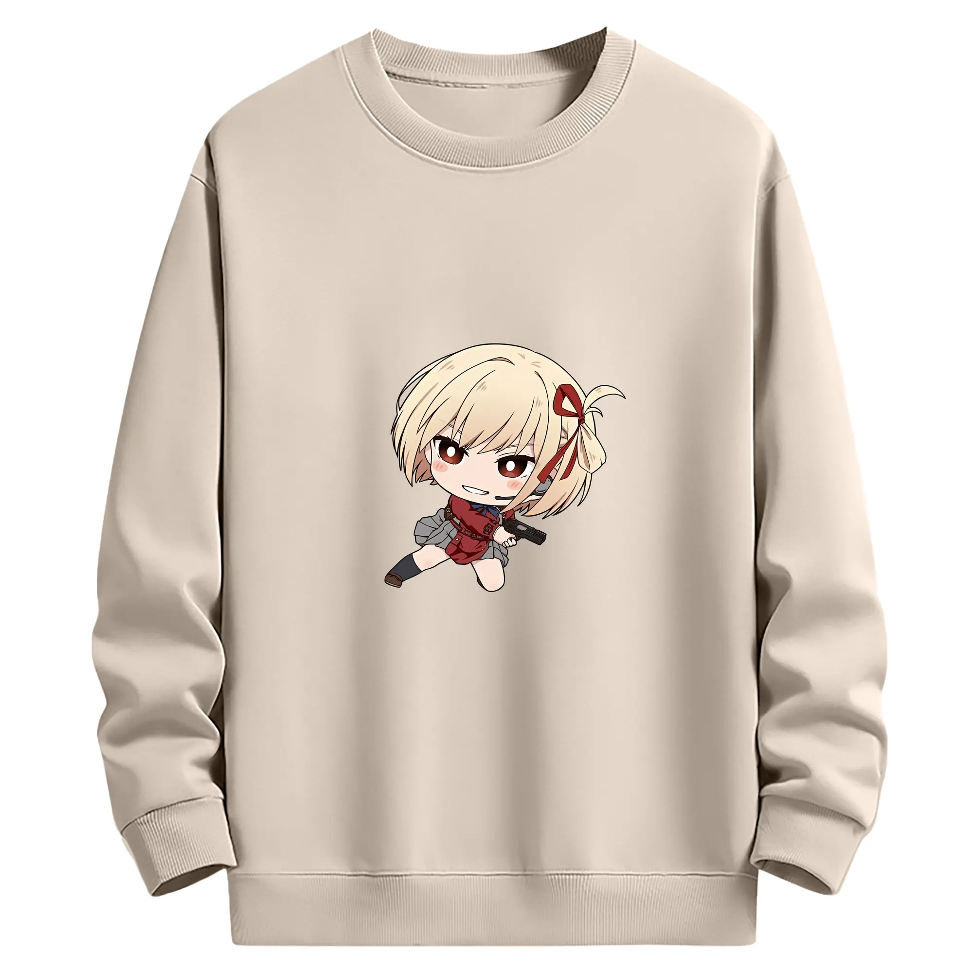 リコリス・リコイル グッズ,錦木千束 - 薄手 クルーネック スウェット 裏毛260g · ポリエステル 春秋向け カジュアル 男女兼用 · トレーナー デイリー スポーツ 散歩に最適