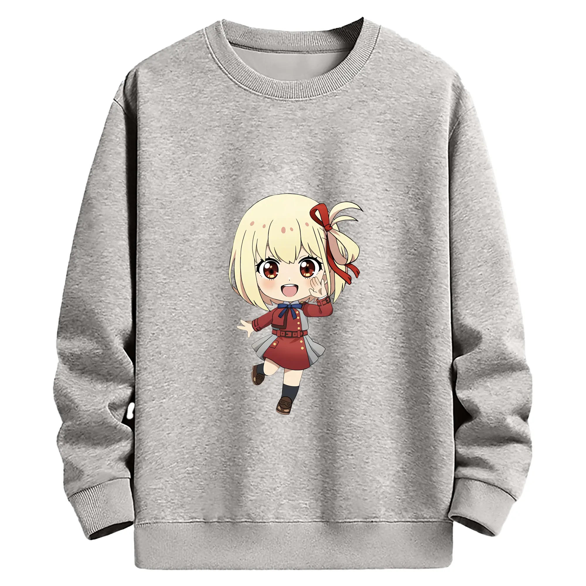 リコリス・リコイル グッズ,錦木千束 - 薄手 クルーネック スウェット 裏毛260g · ポリエステル 春秋向け カジュアル 男女兼用 · トレーナー デイリー スポーツ 散歩に最適