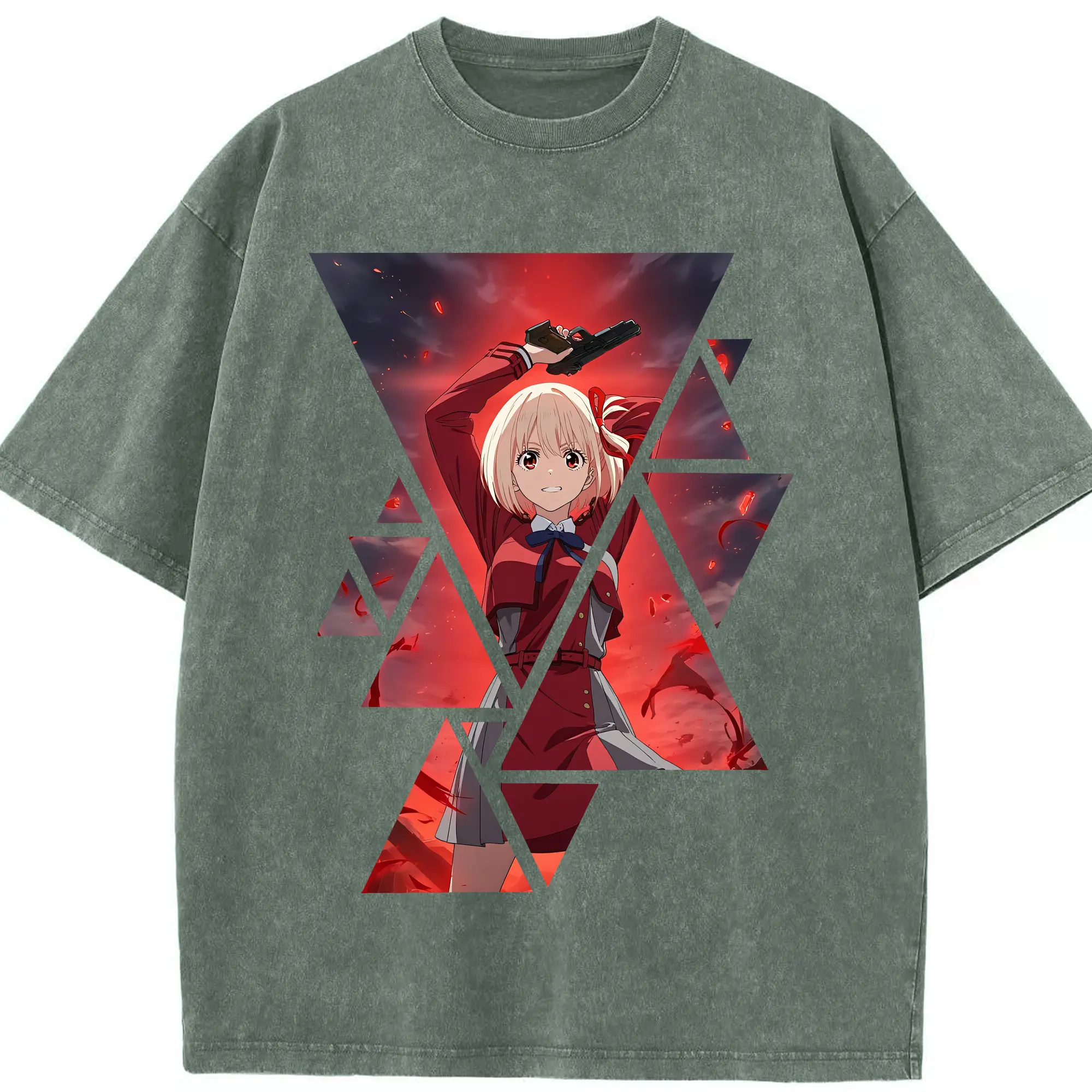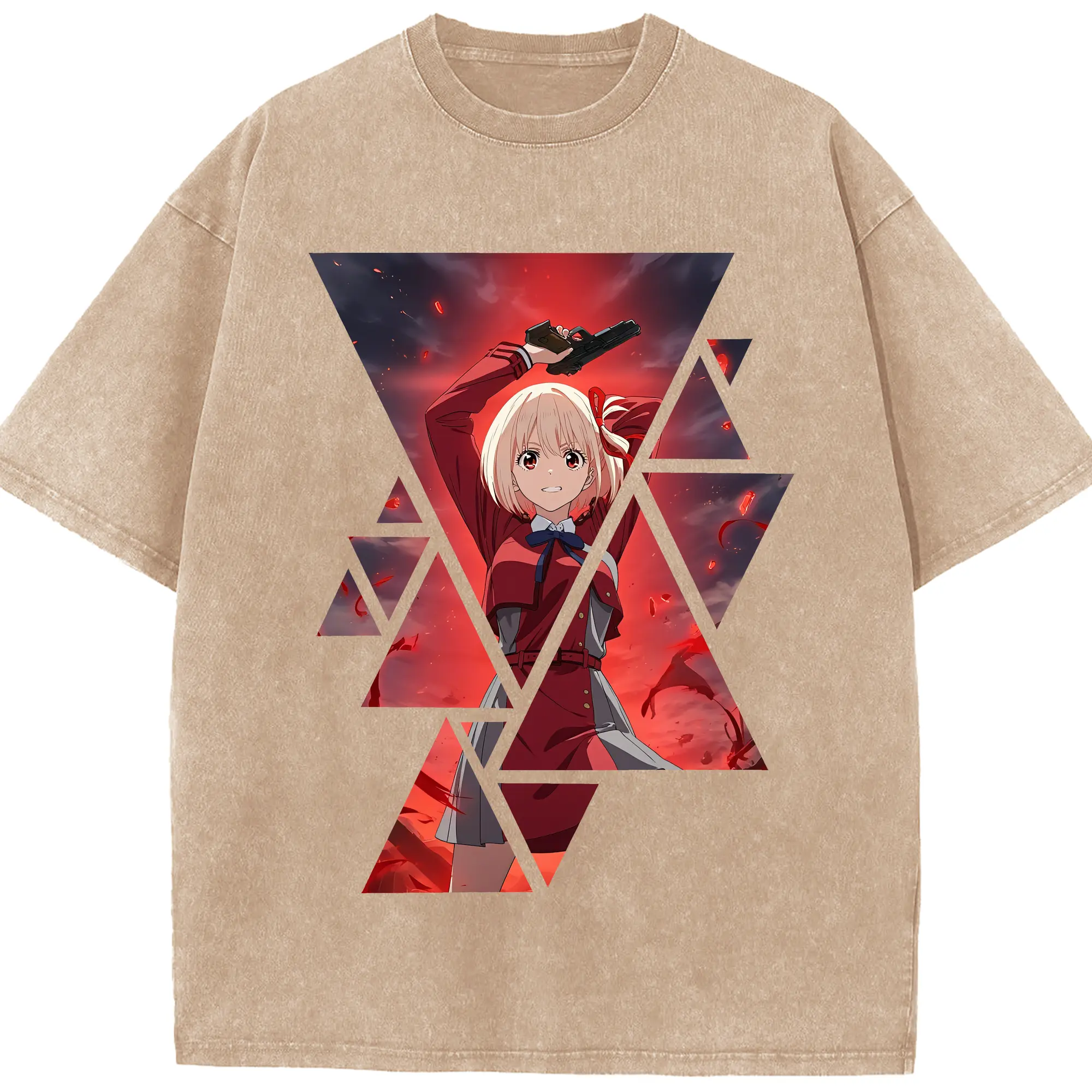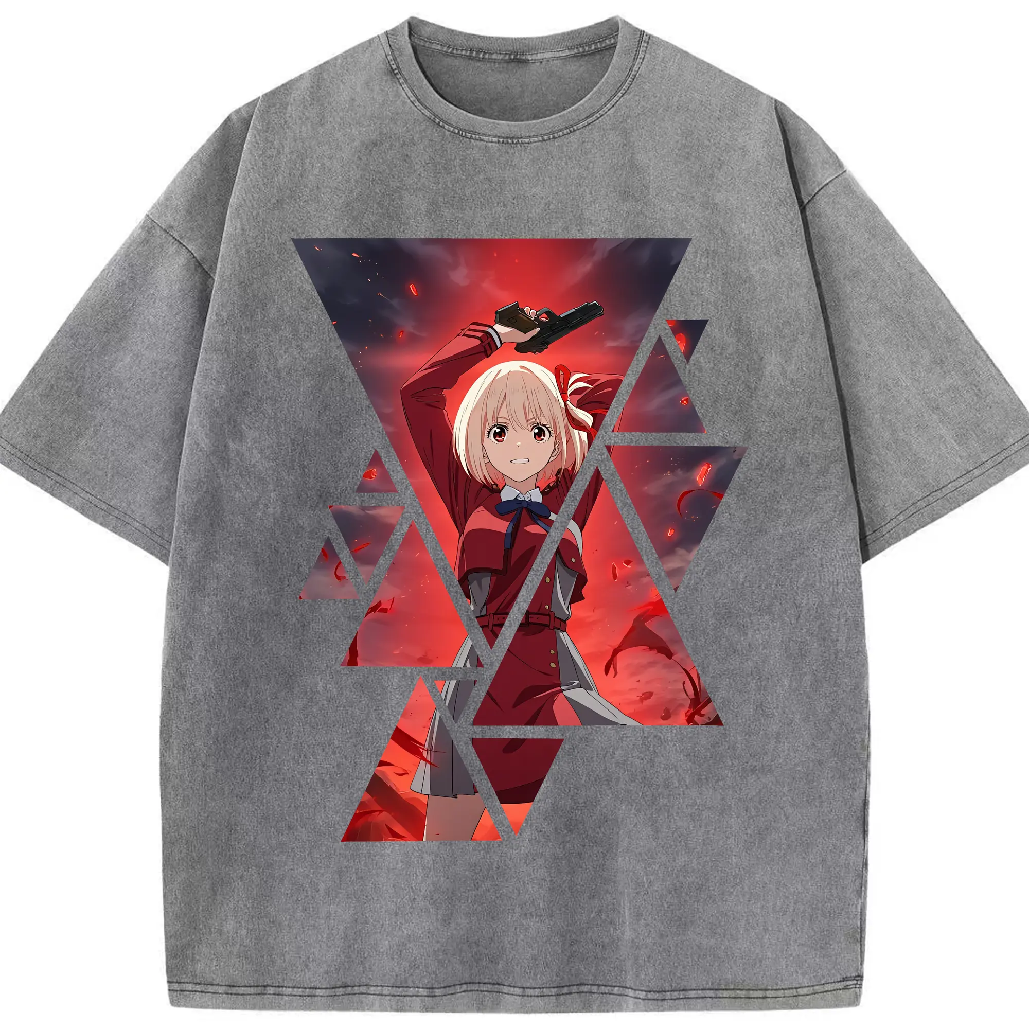 リコリス・リコイル グッズ,錦木千束 - 綿100% ヴィンテージ風 半袖Tシャツ ・ 背面プリント ・ 柔らか肌触り ・ 通気性 快適 ・ スポーツ カジュアル 外出用