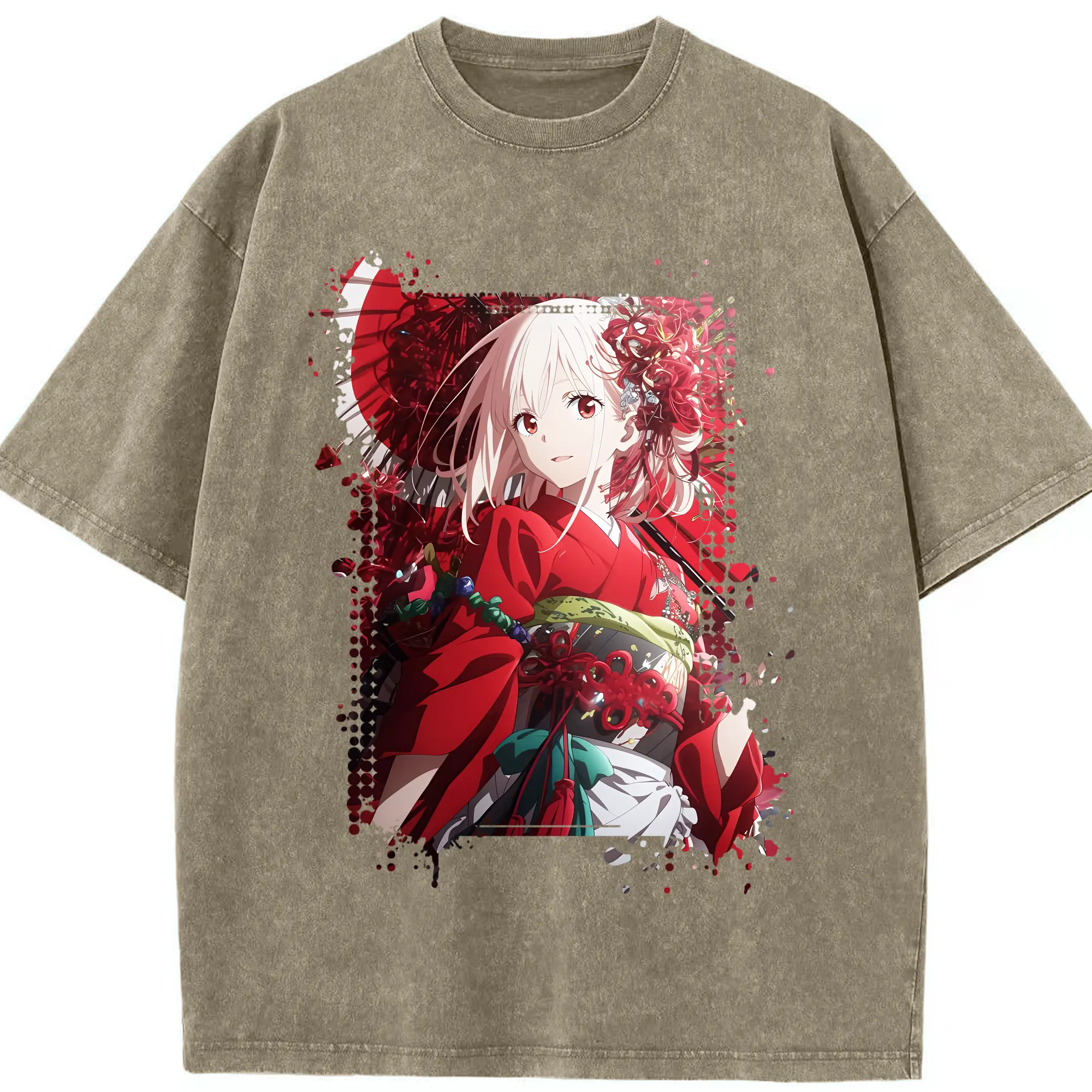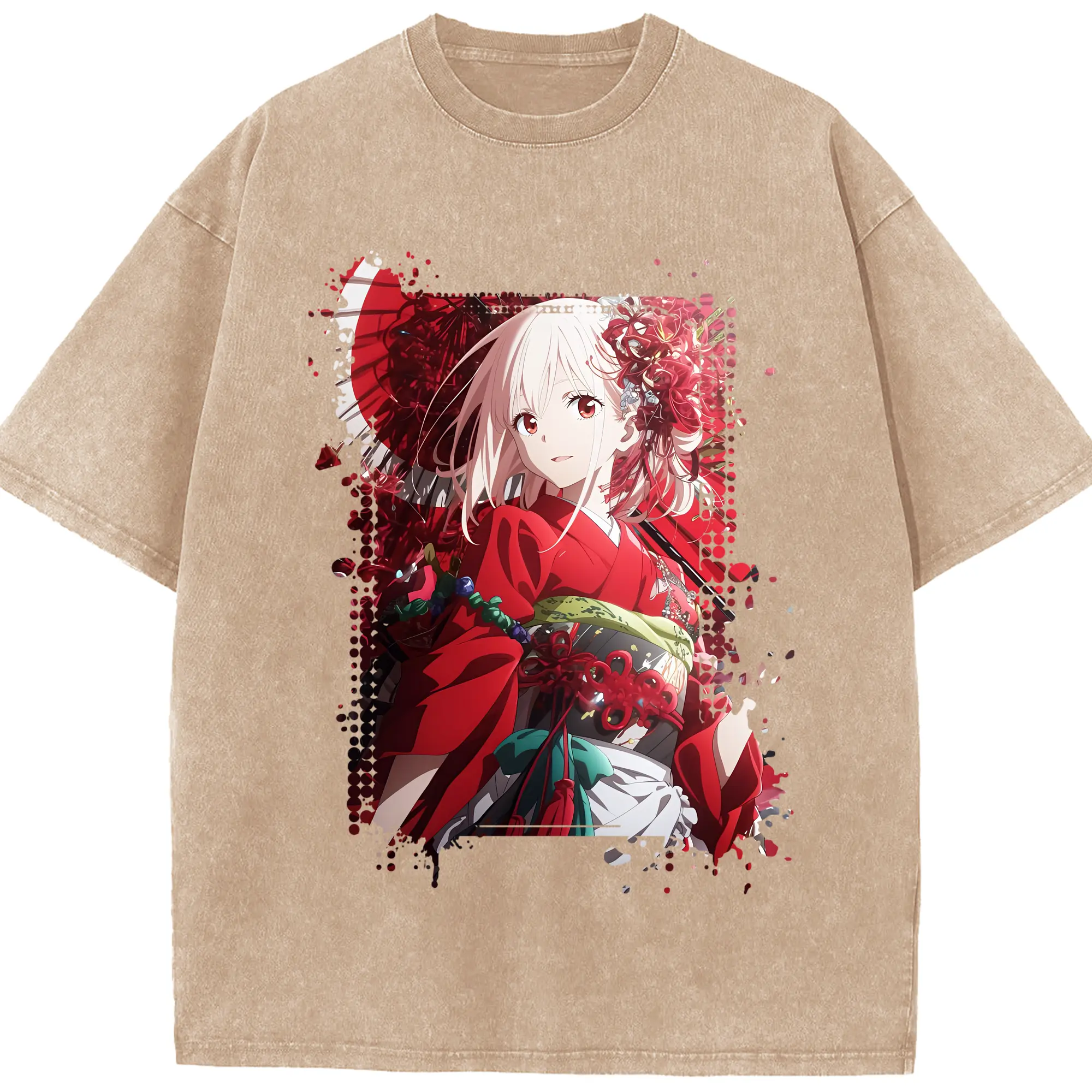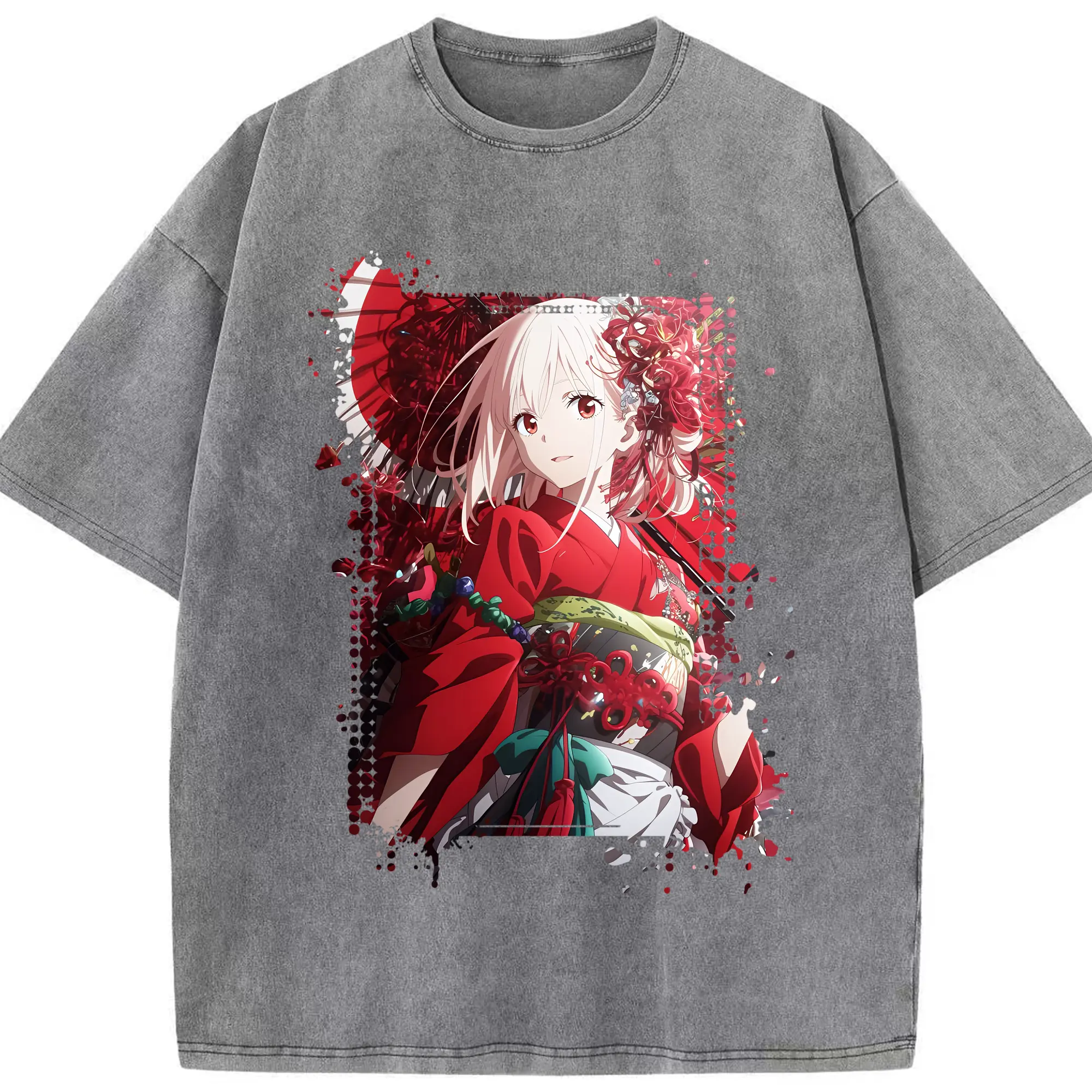 リコリス・リコイル グッズ,錦木千束 - 綿100% ヴィンテージ風 半袖Tシャツ ・ 背面プリント ・ 柔らか肌触り ・ 通気性 快適 ・ スポーツ カジュアル 外出用