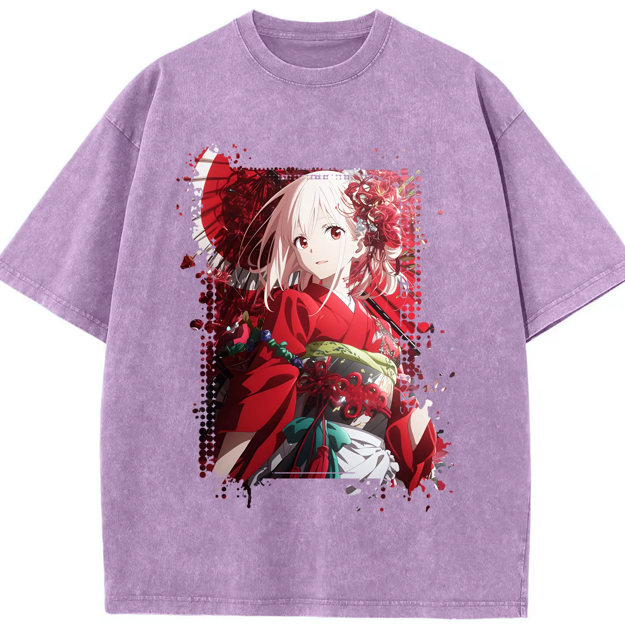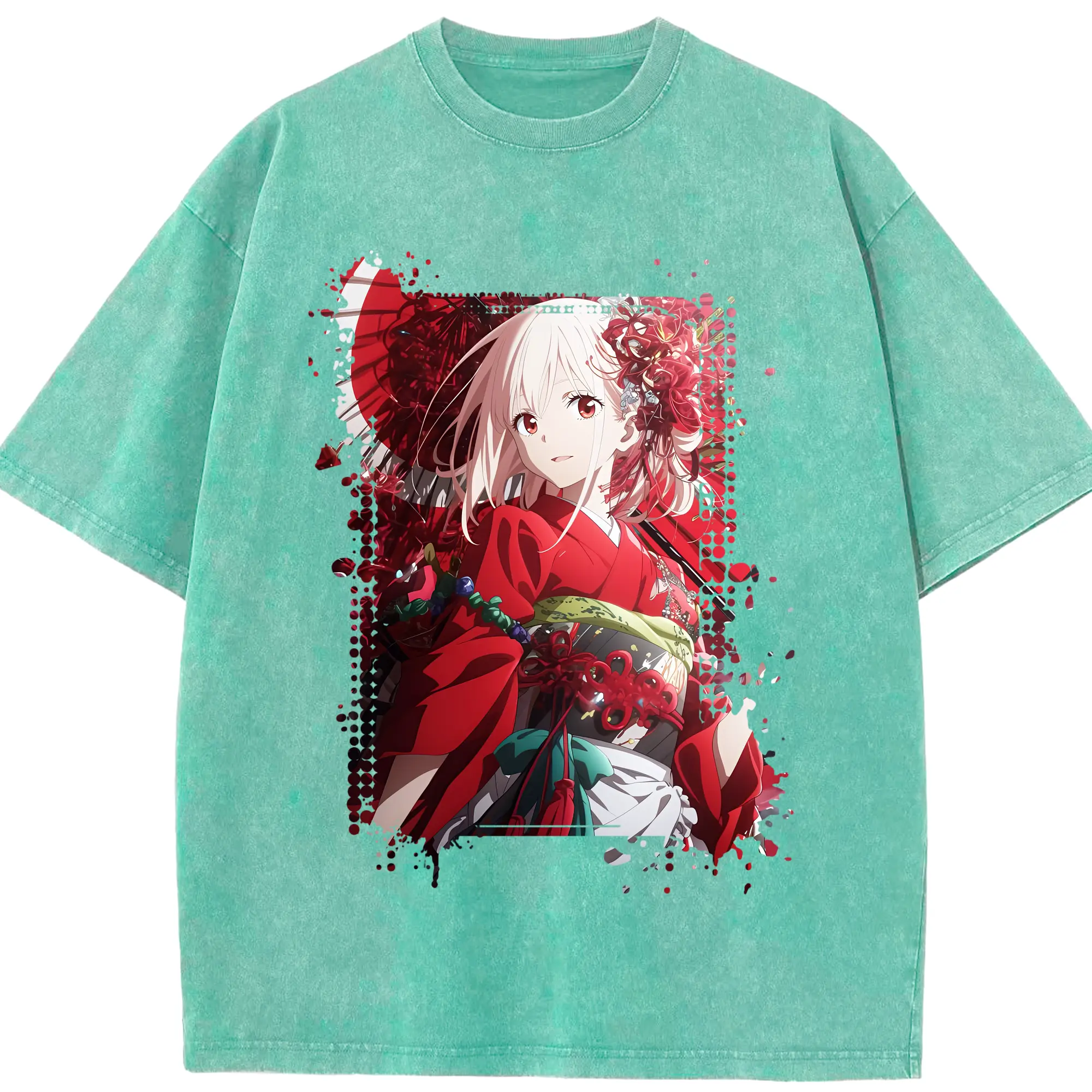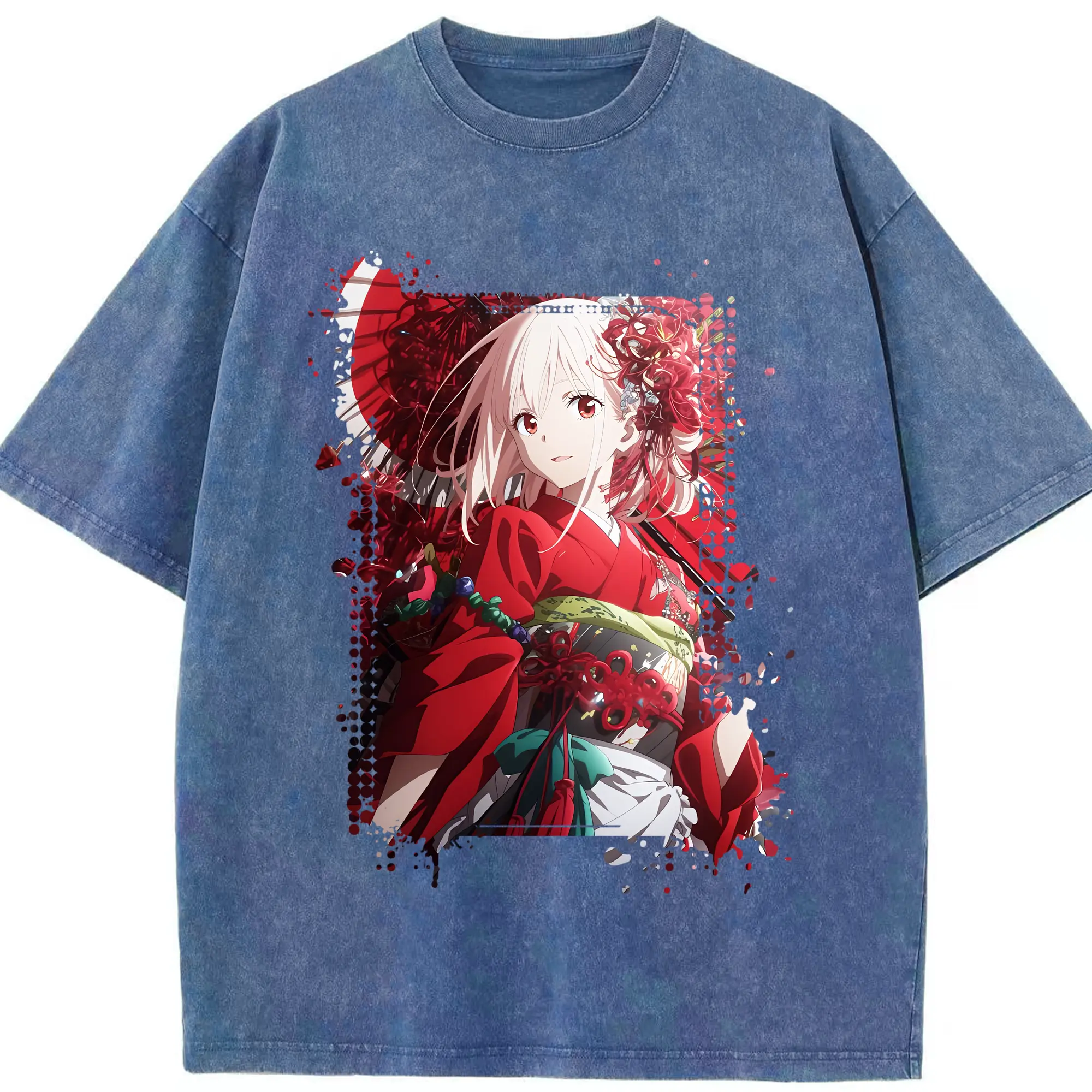 リコリス・リコイル グッズ,錦木千束 - 綿100% ヴィンテージ風 半袖Tシャツ ・ 背面プリント ・ 柔らか肌触り ・ 通気性 快適 ・ スポーツ カジュアル 外出用