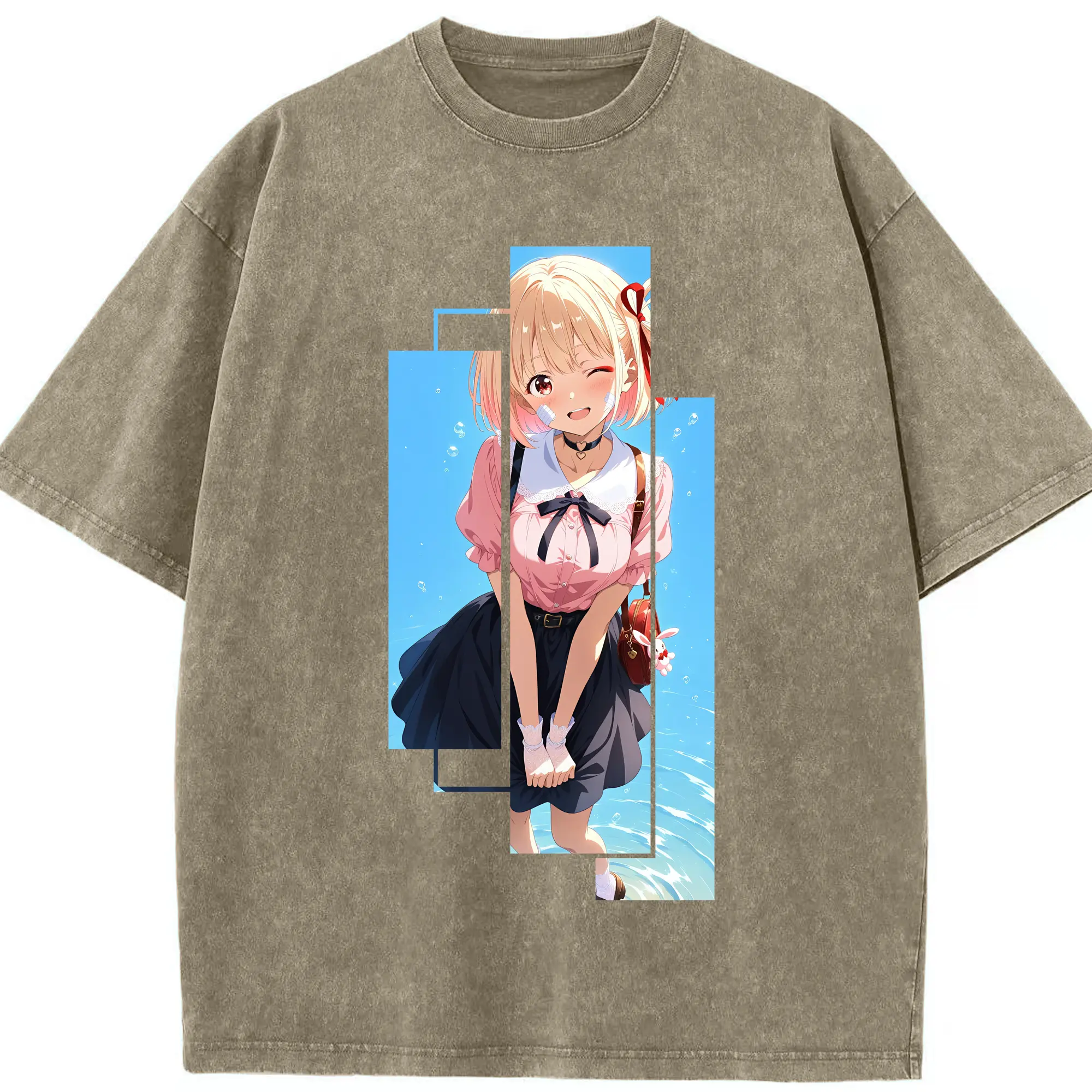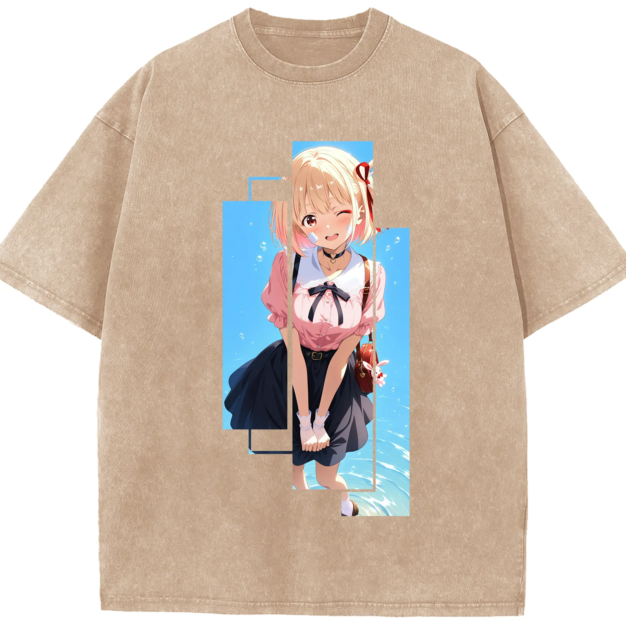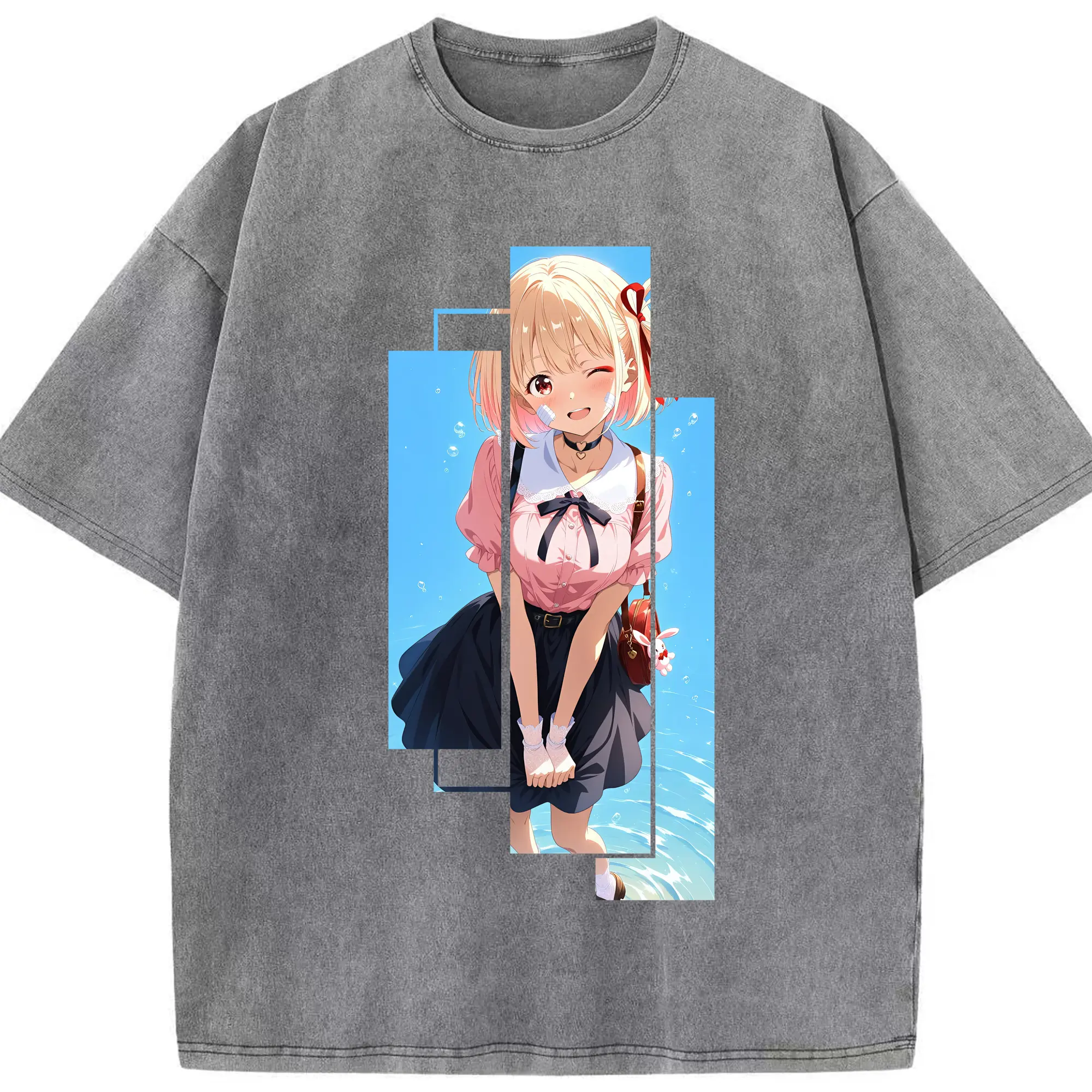 リコリス・リコイル グッズ,錦木千束 - 綿100% ヴィンテージ風 半袖Tシャツ ・ 背面プリント ・ 柔らか肌触り ・ 通気性 快適 ・ スポーツ カジュアル 外出用