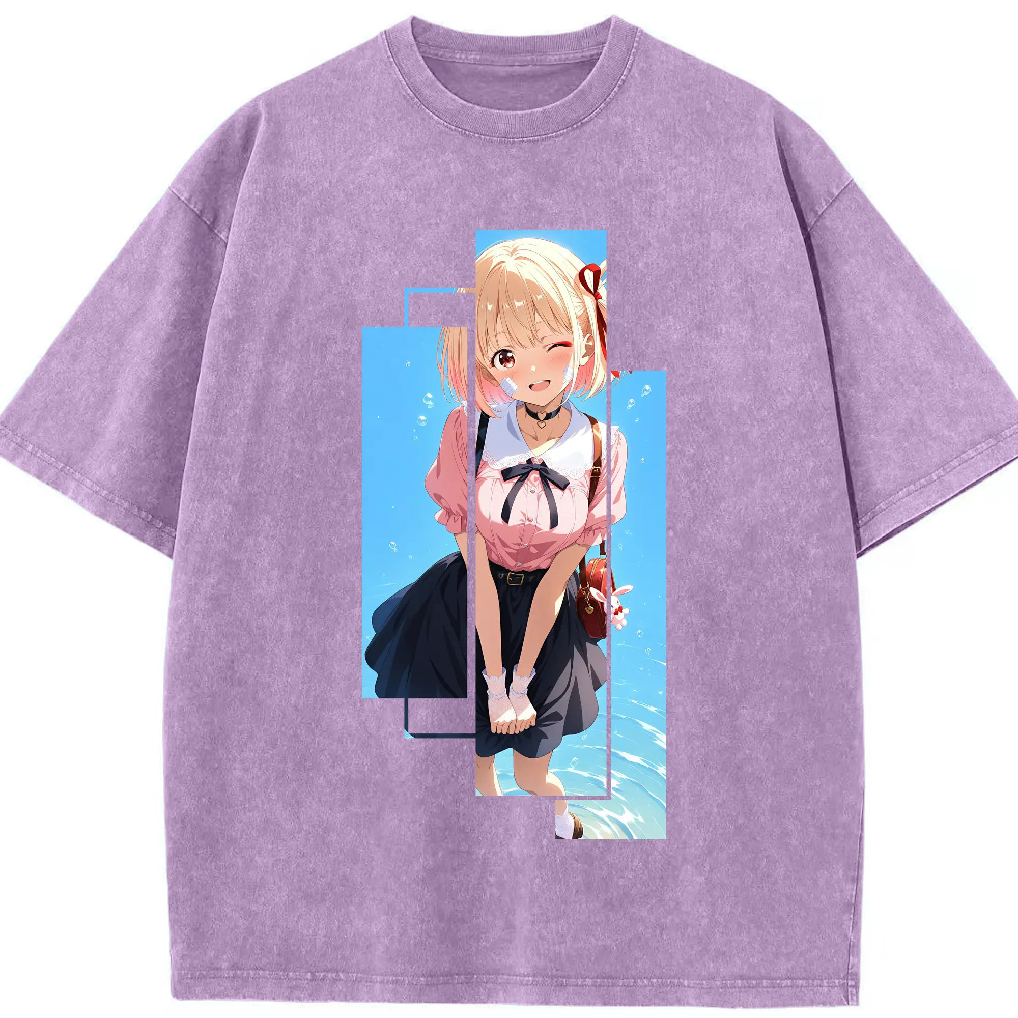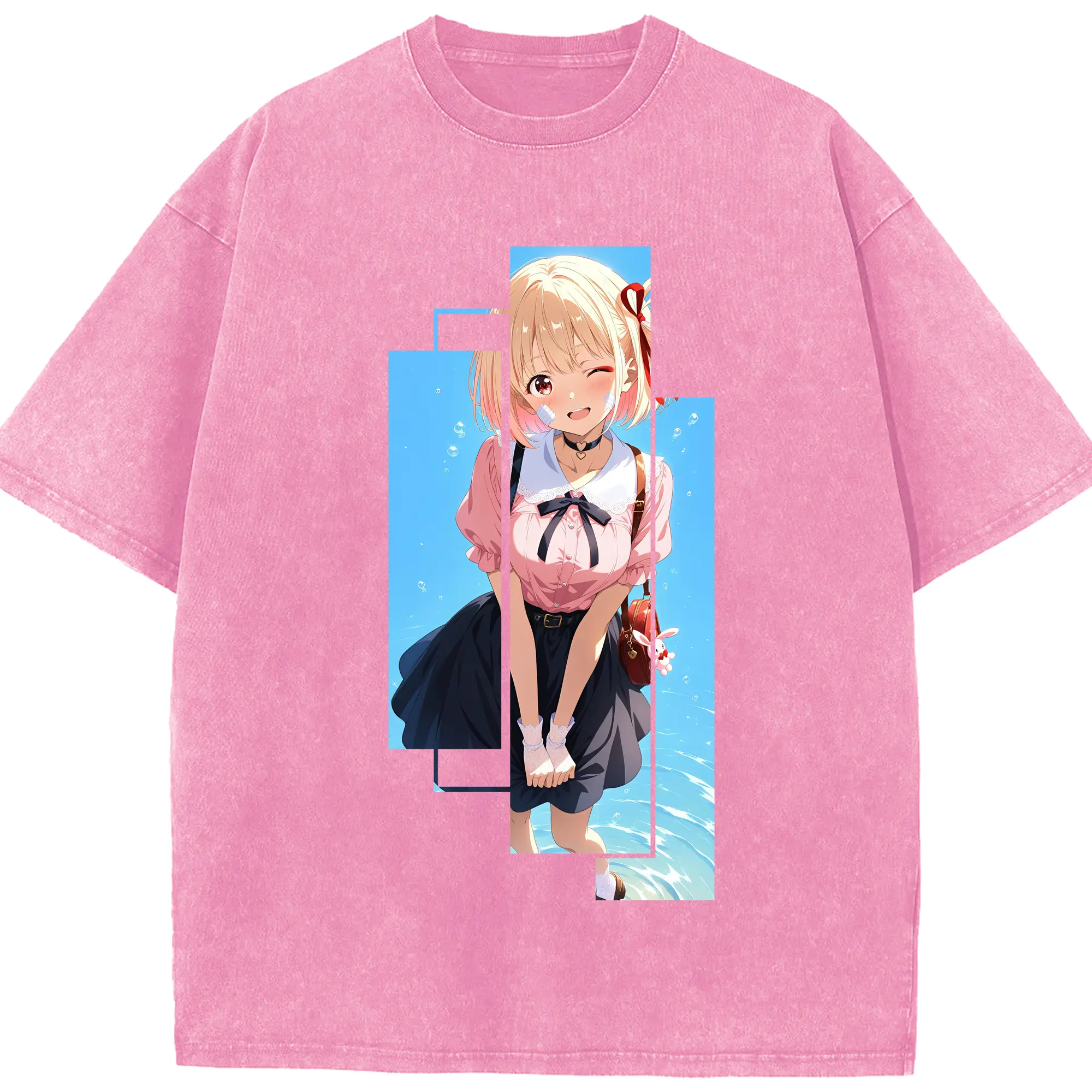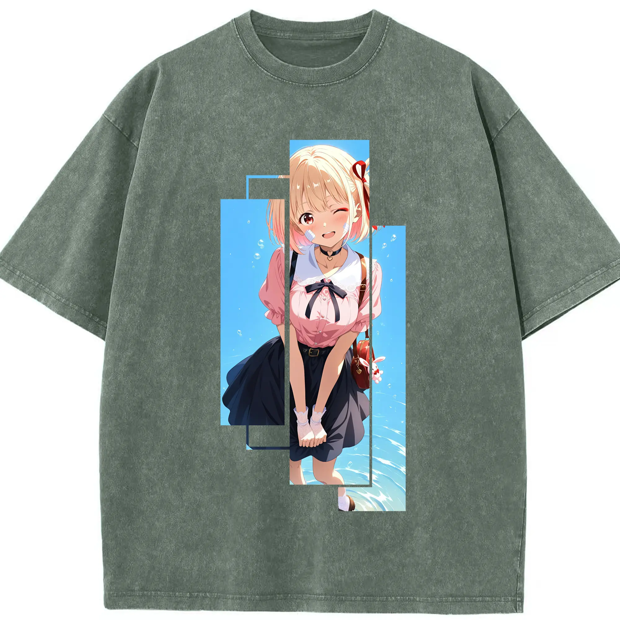 リコリス・リコイル グッズ,錦木千束 - 綿100% ヴィンテージ風 半袖Tシャツ ・ 背面プリント ・ 柔らか肌触り ・ 通気性 快適 ・ スポーツ カジュアル 外出用