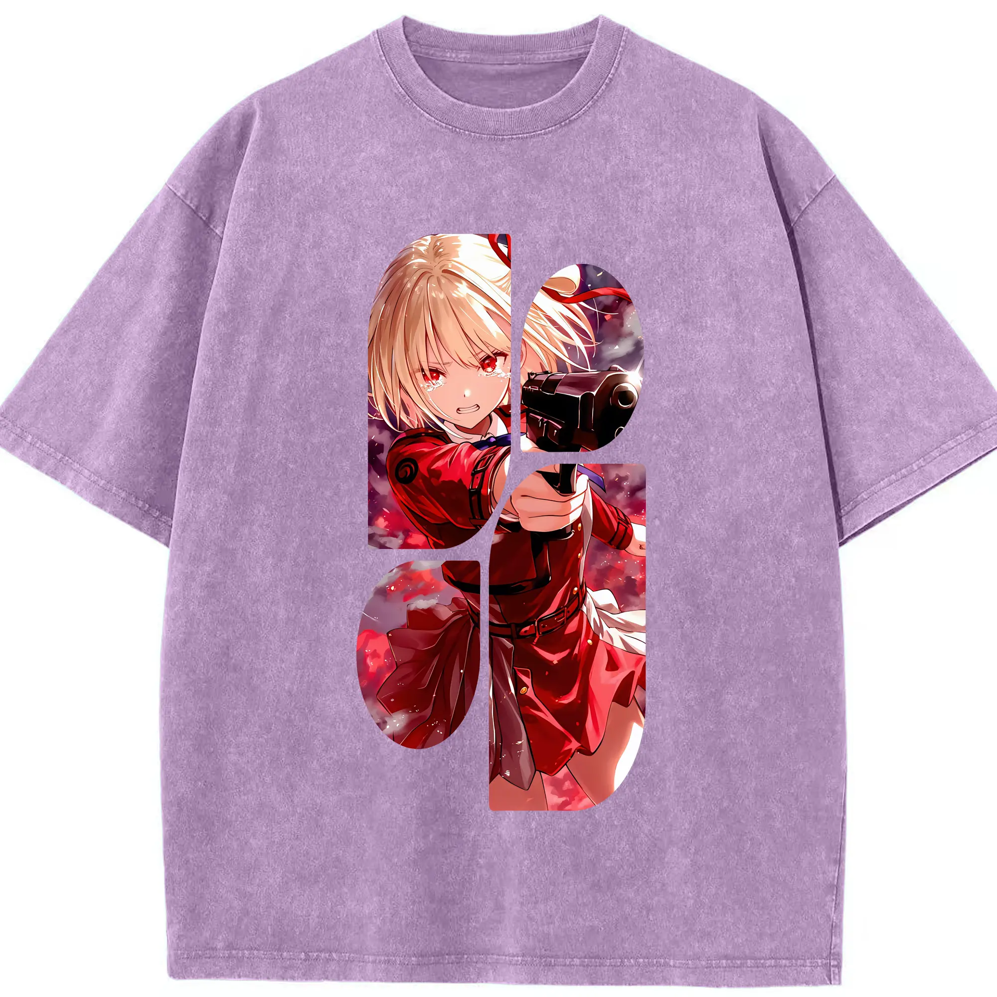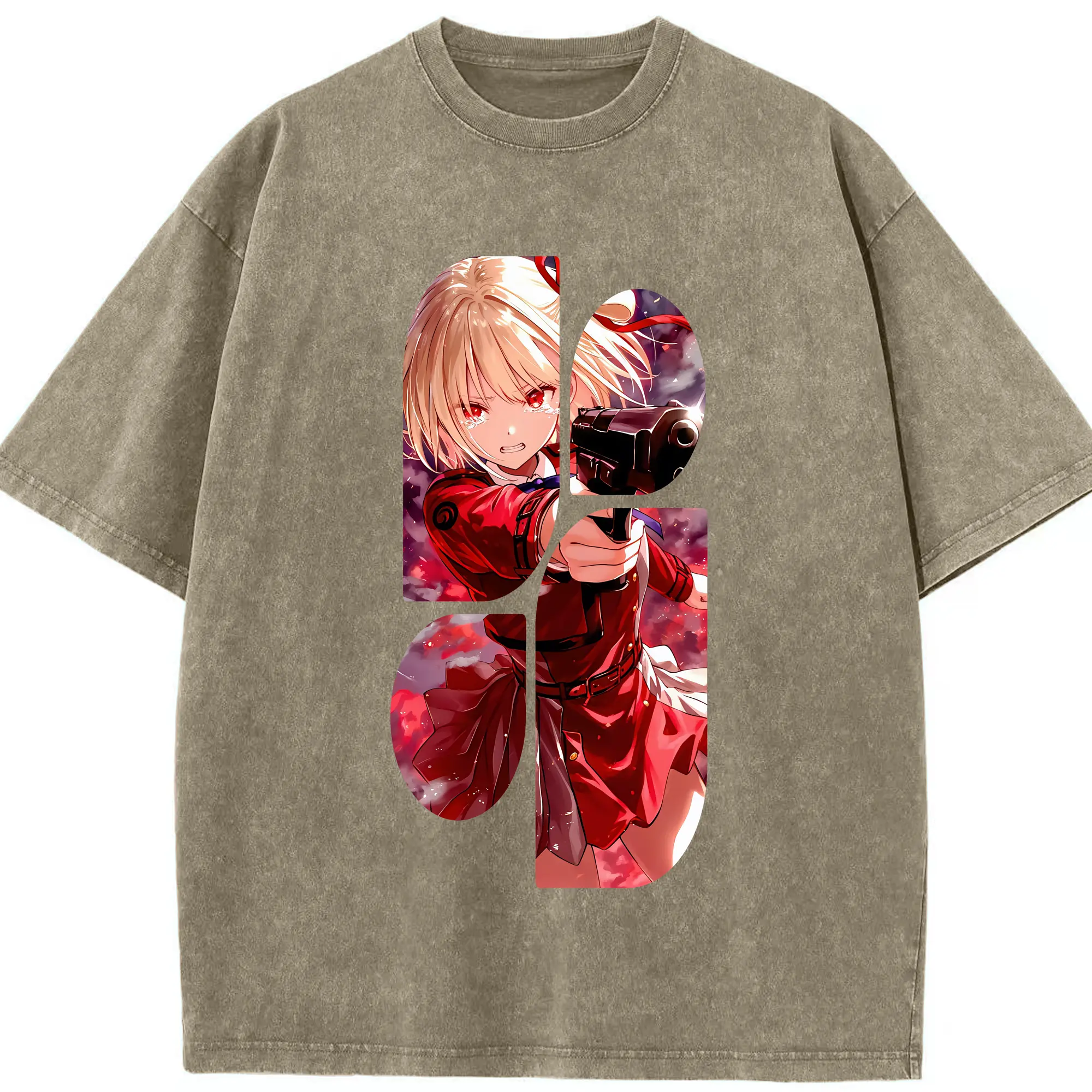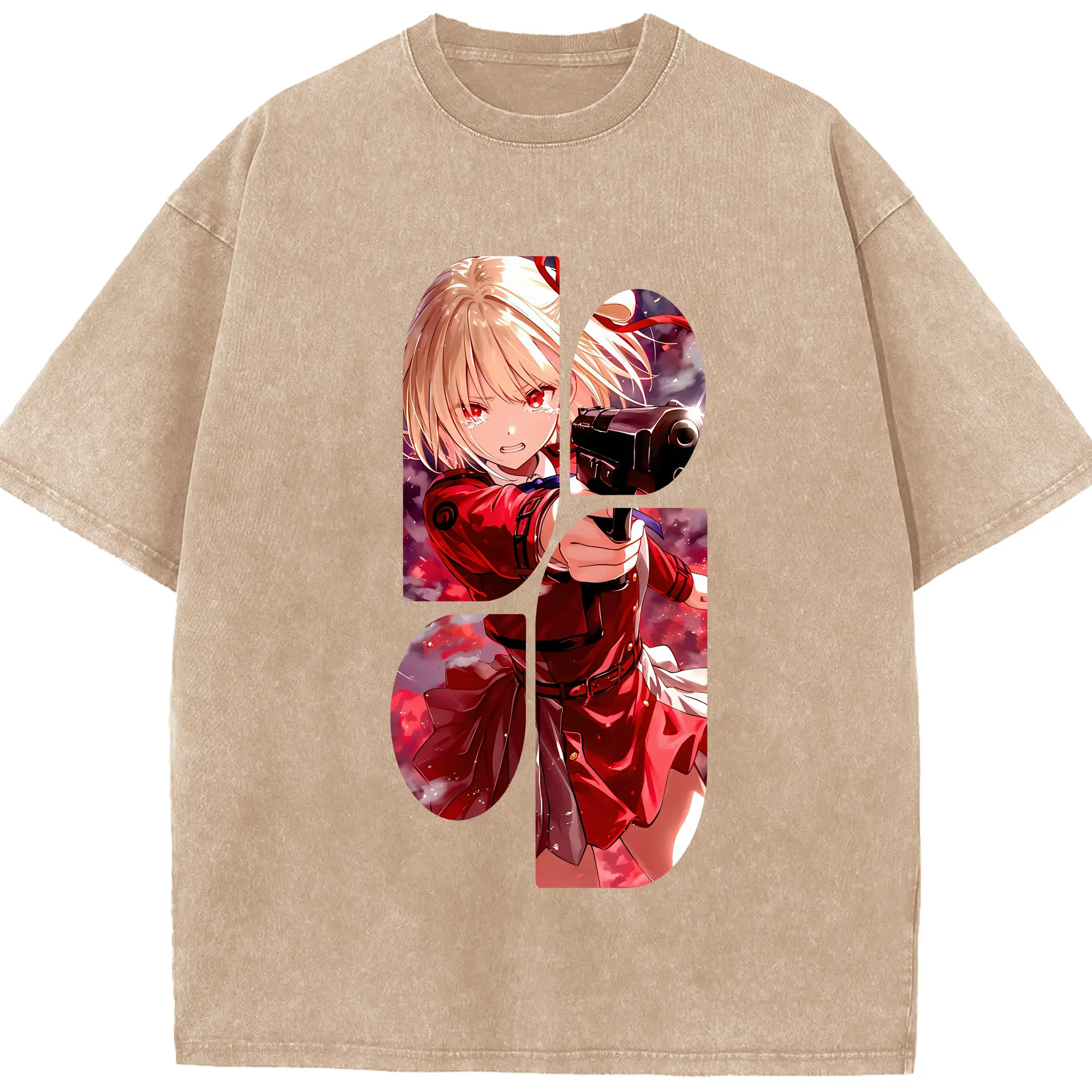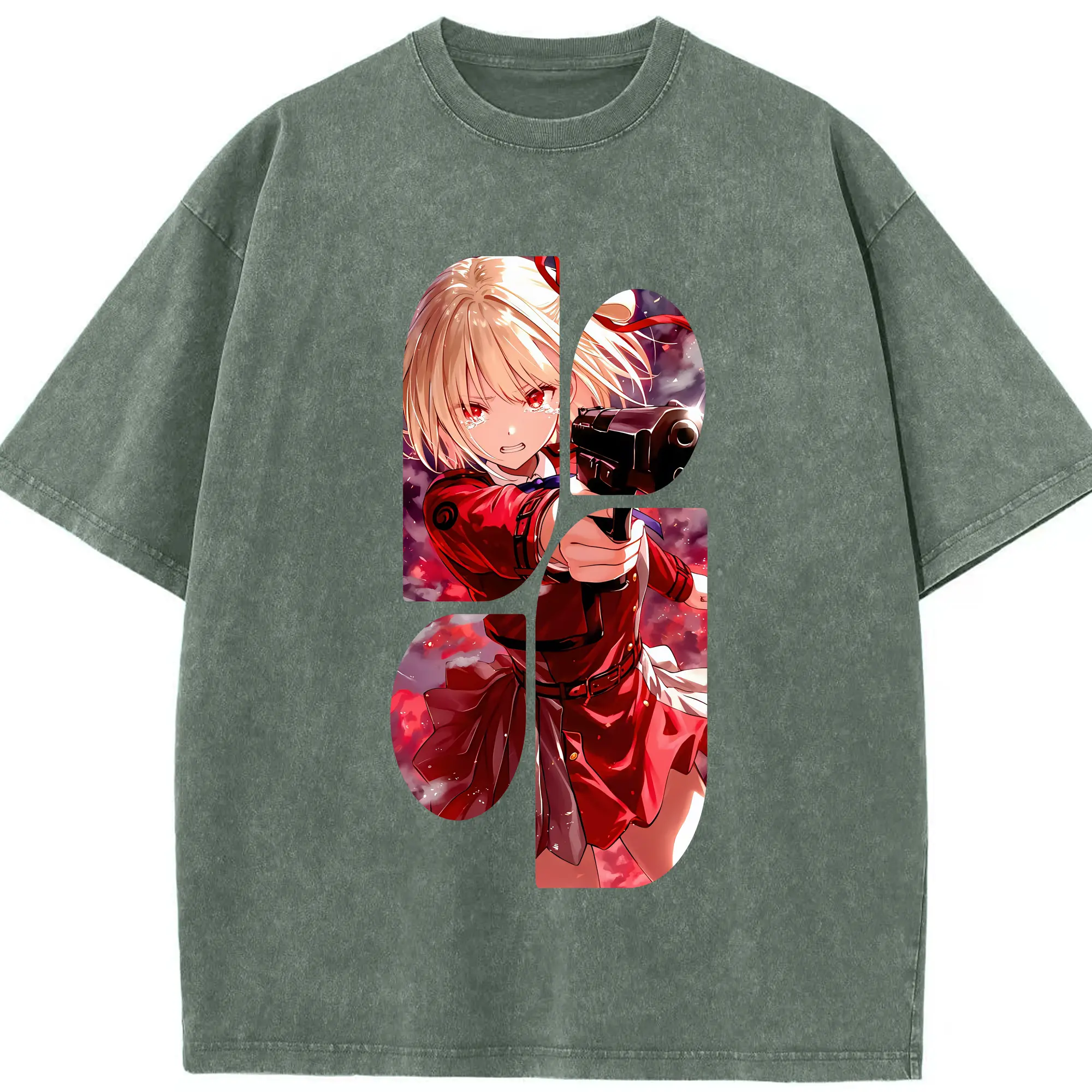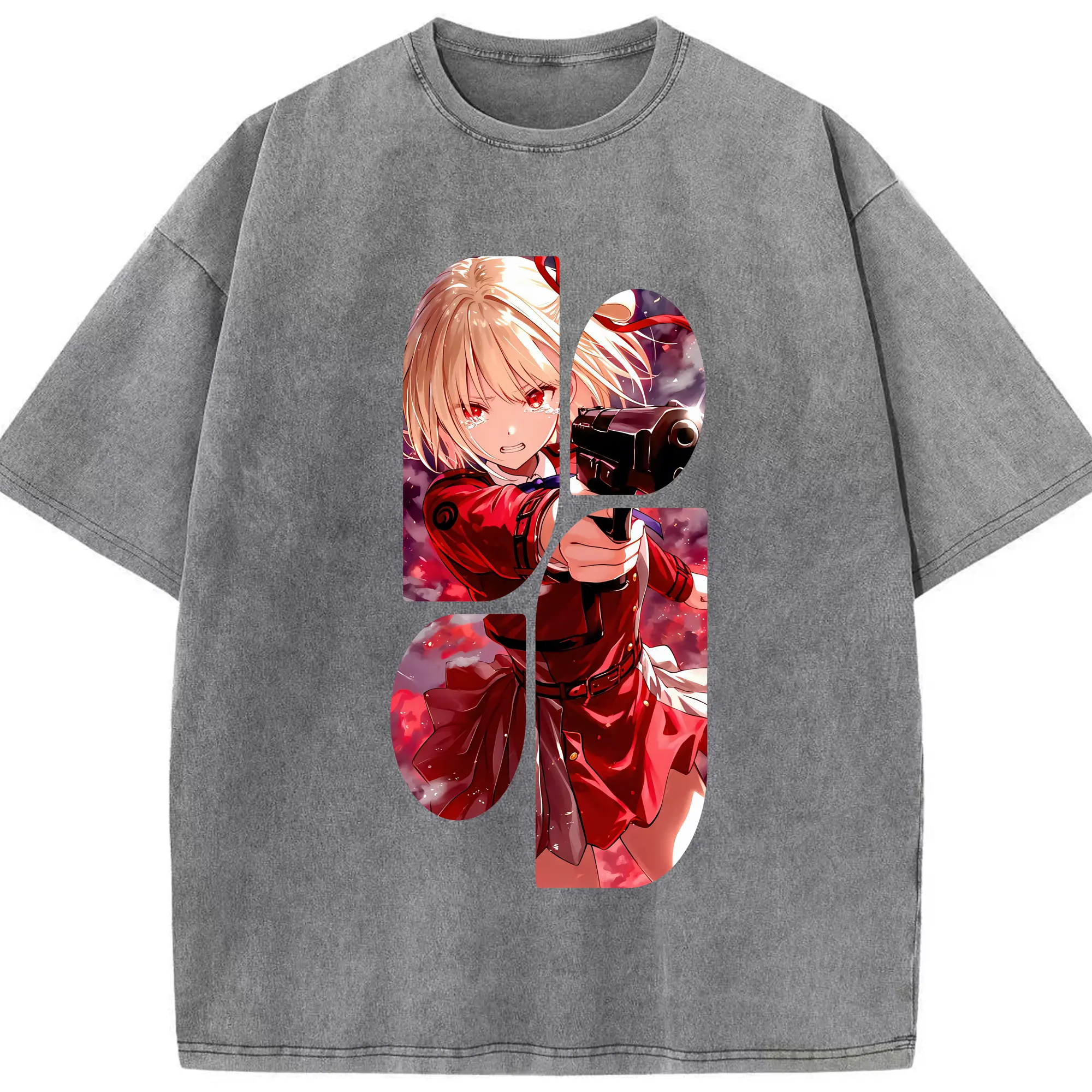 リコリス・リコイル グッズ,錦木千束 - 綿100% ヴィンテージ風 半袖Tシャツ ・ 背面プリント ・ 柔らか肌触り ・ 通気性 快適 ・ スポーツ カジュアル 外出用